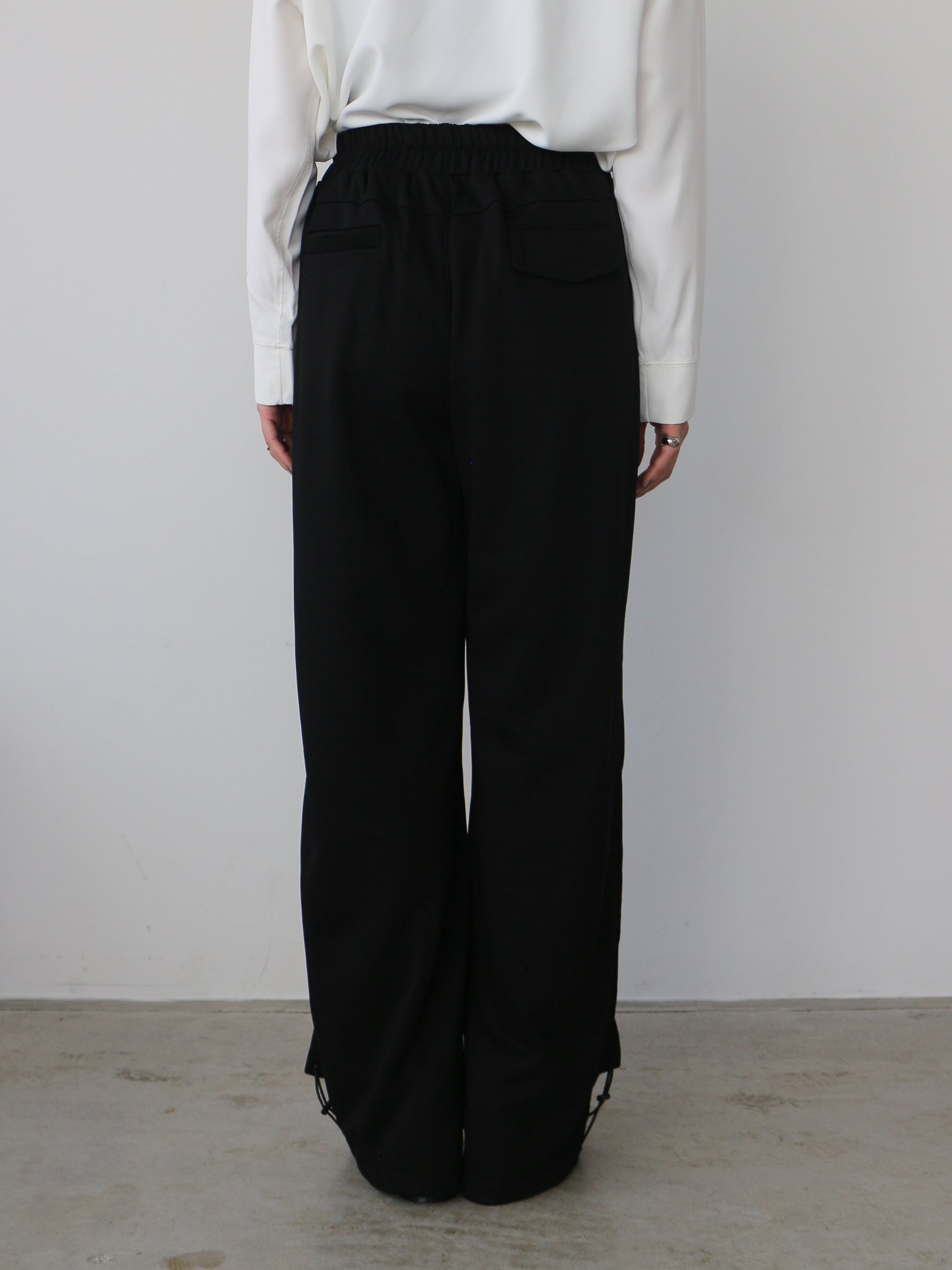 裏毛のパンツにリメイク風のデザインアレンジをほどこしたパンツ 裏毛はは肌触りもよく、ウェストゴムで穿き心地も抜群。