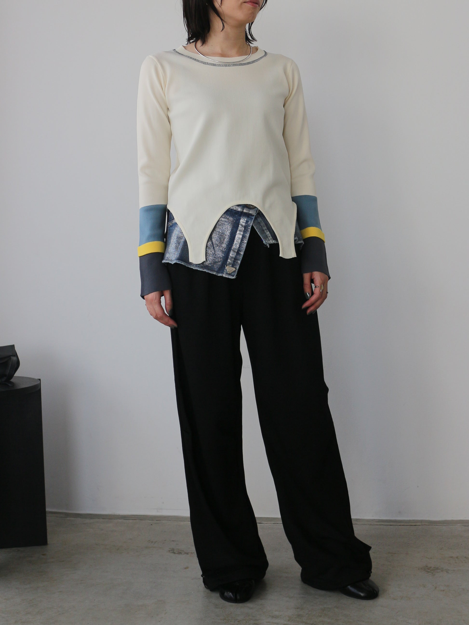 eru ウエストデニム切り替え裏毛パンツ