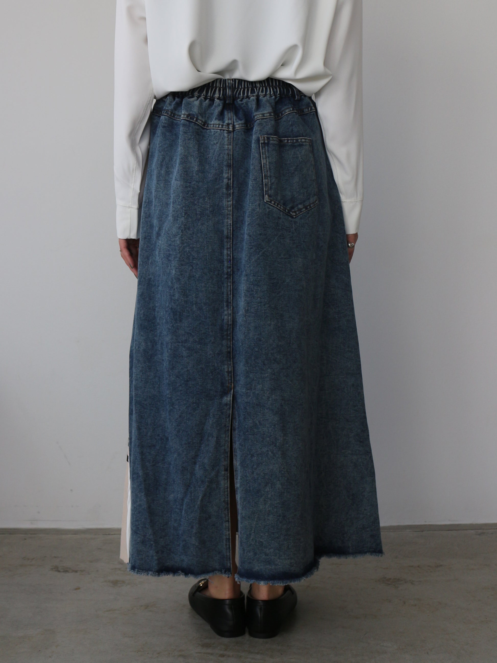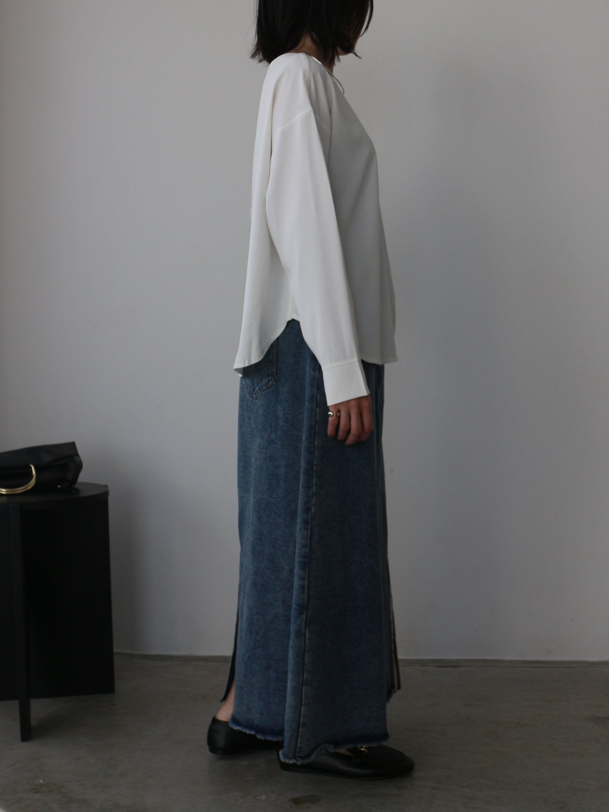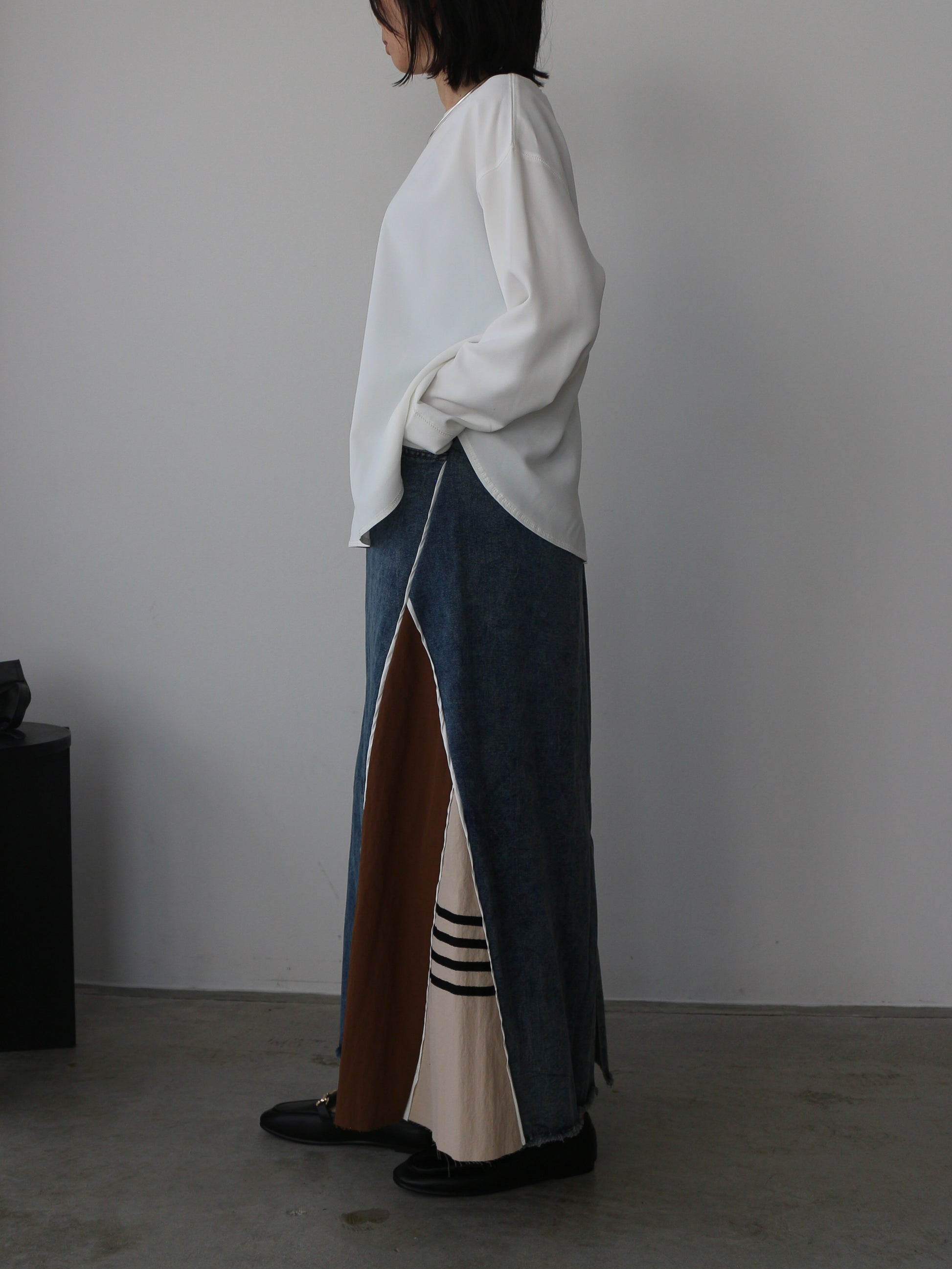 デニムと切り替える事での配色感かコーディネート幅を広げる1枚。