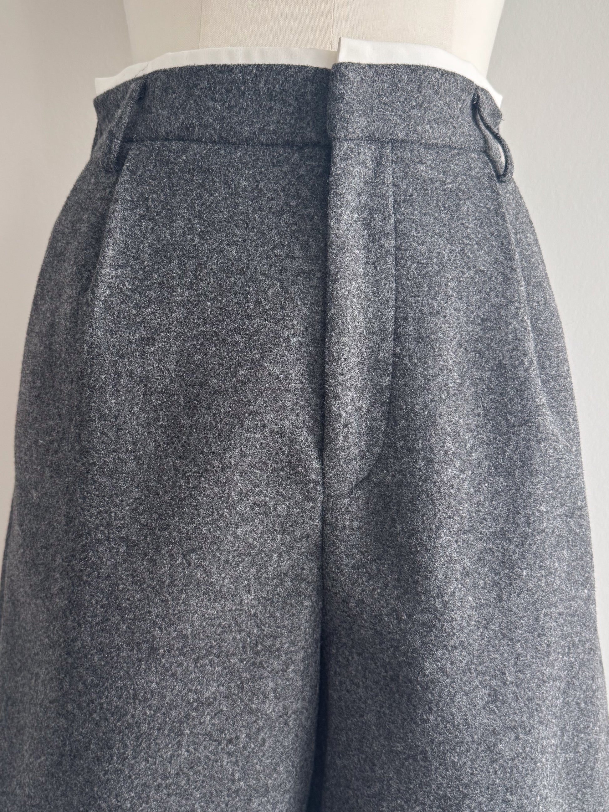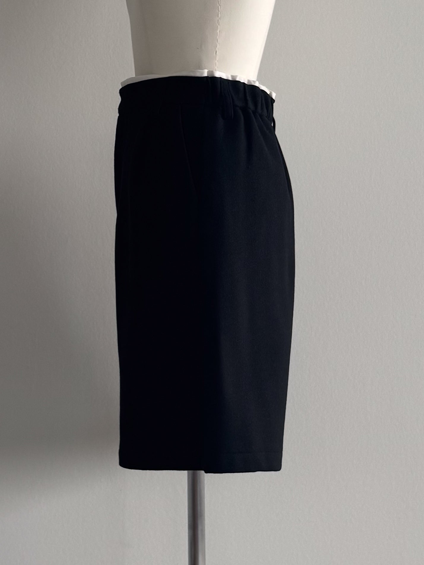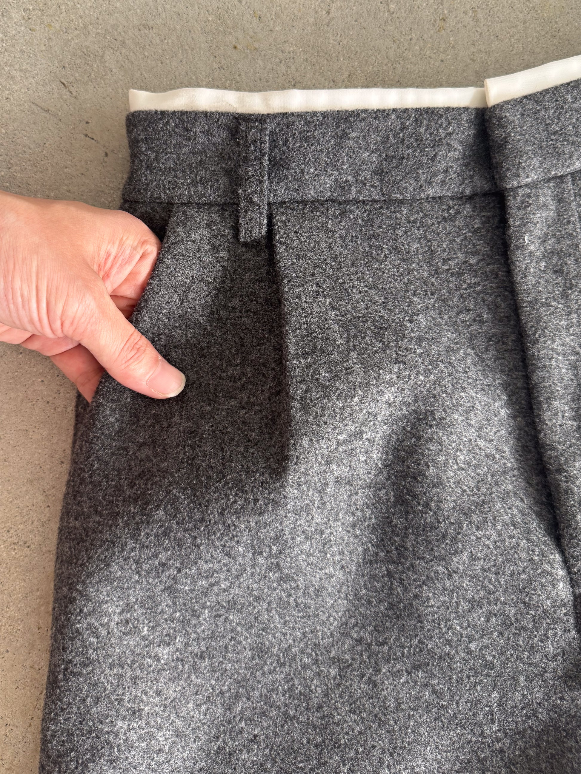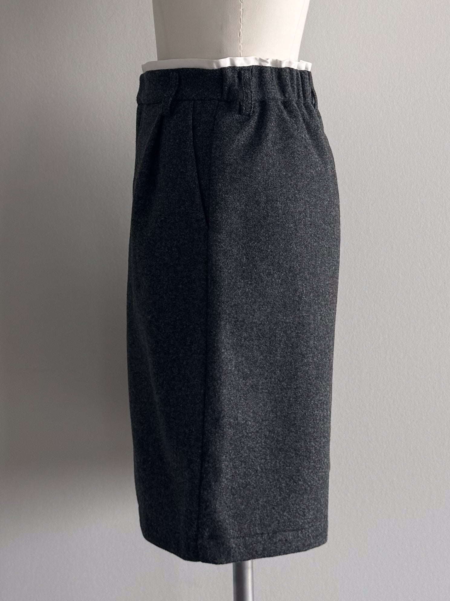 程よくゆとりを持たせたシルエットと絶妙な膝上丈で細見えを誘い、トレンドのロングブーツとの相性も抜群。後ポケットのパールボタンもアクセントに。