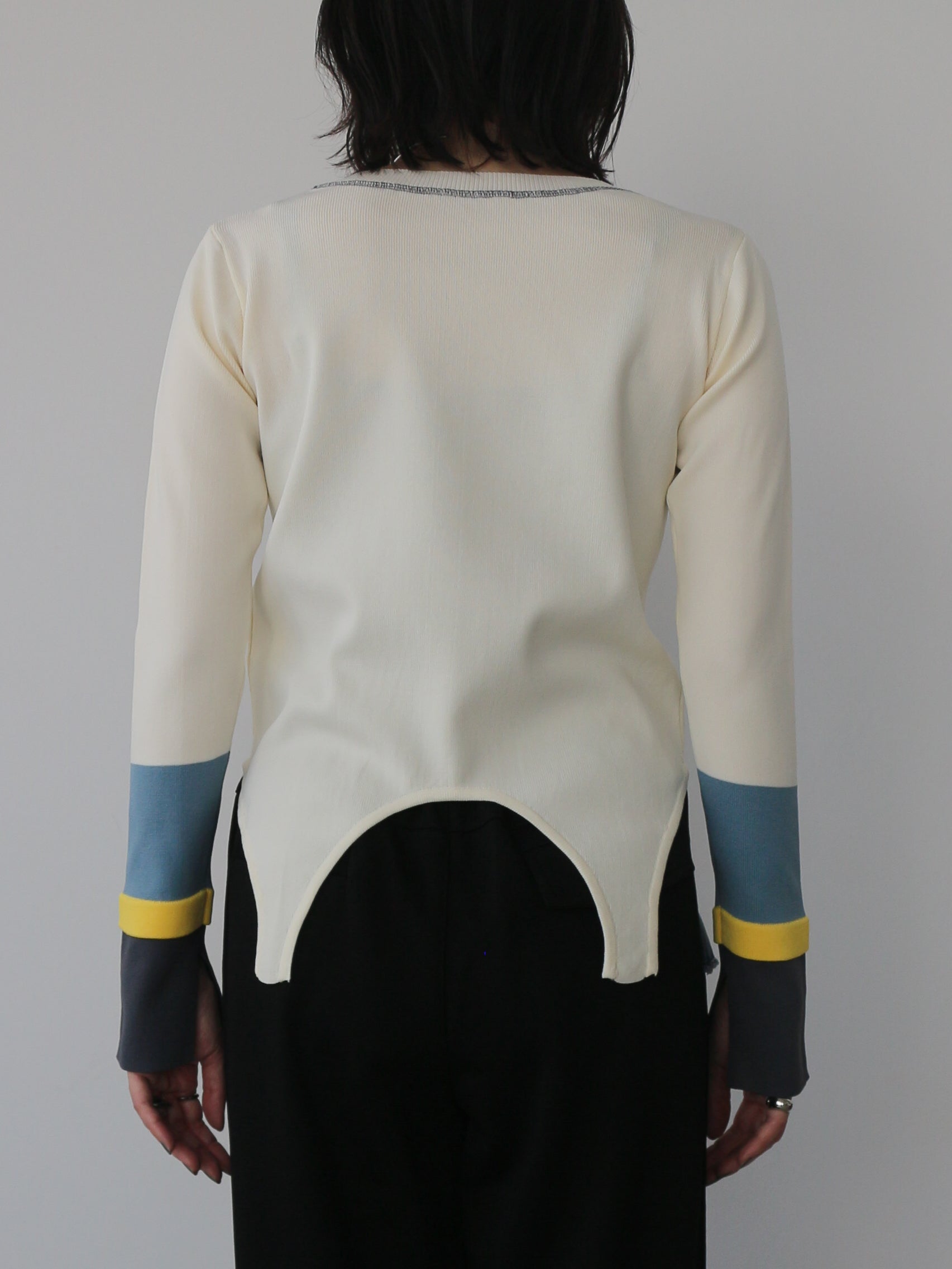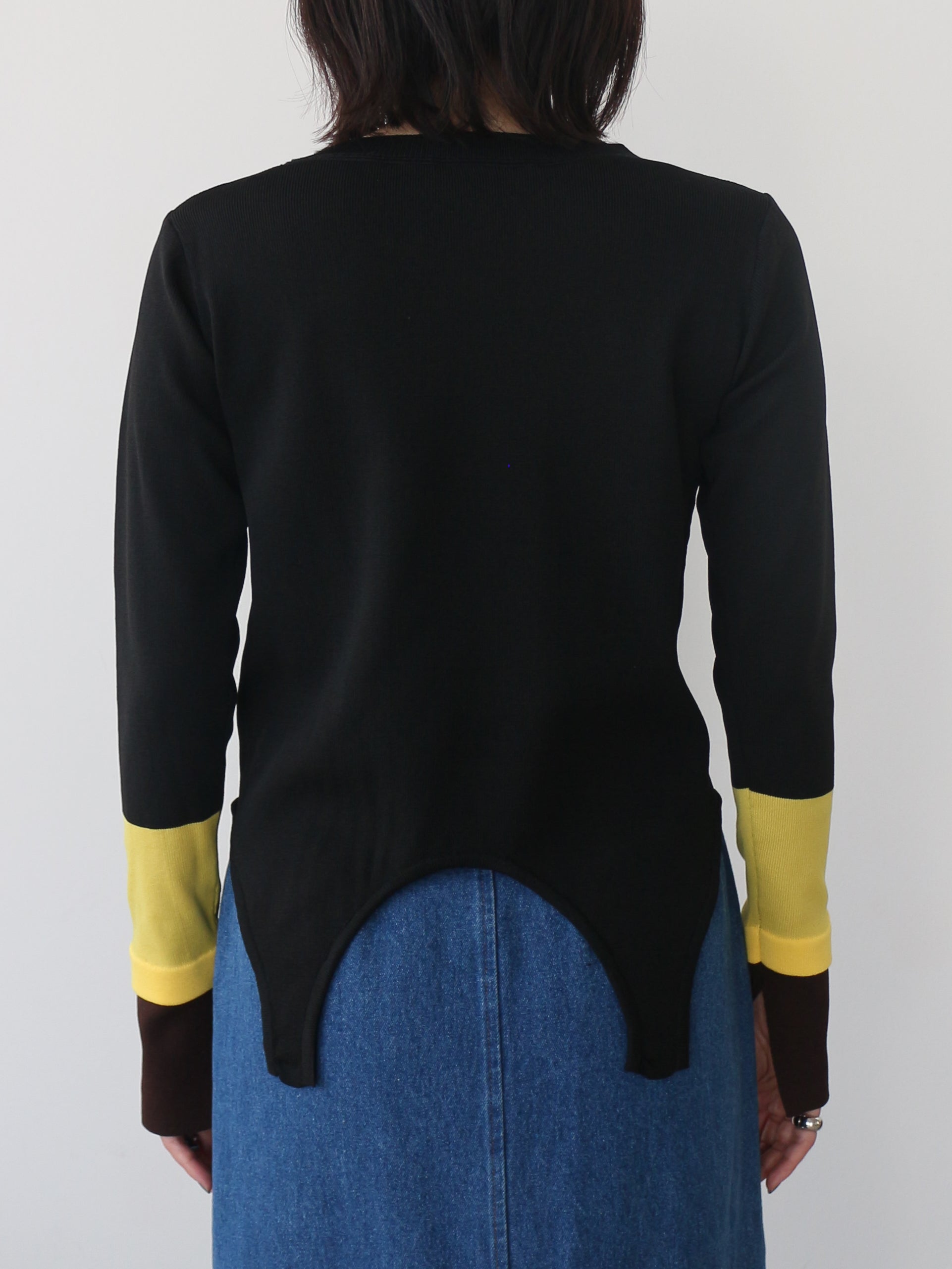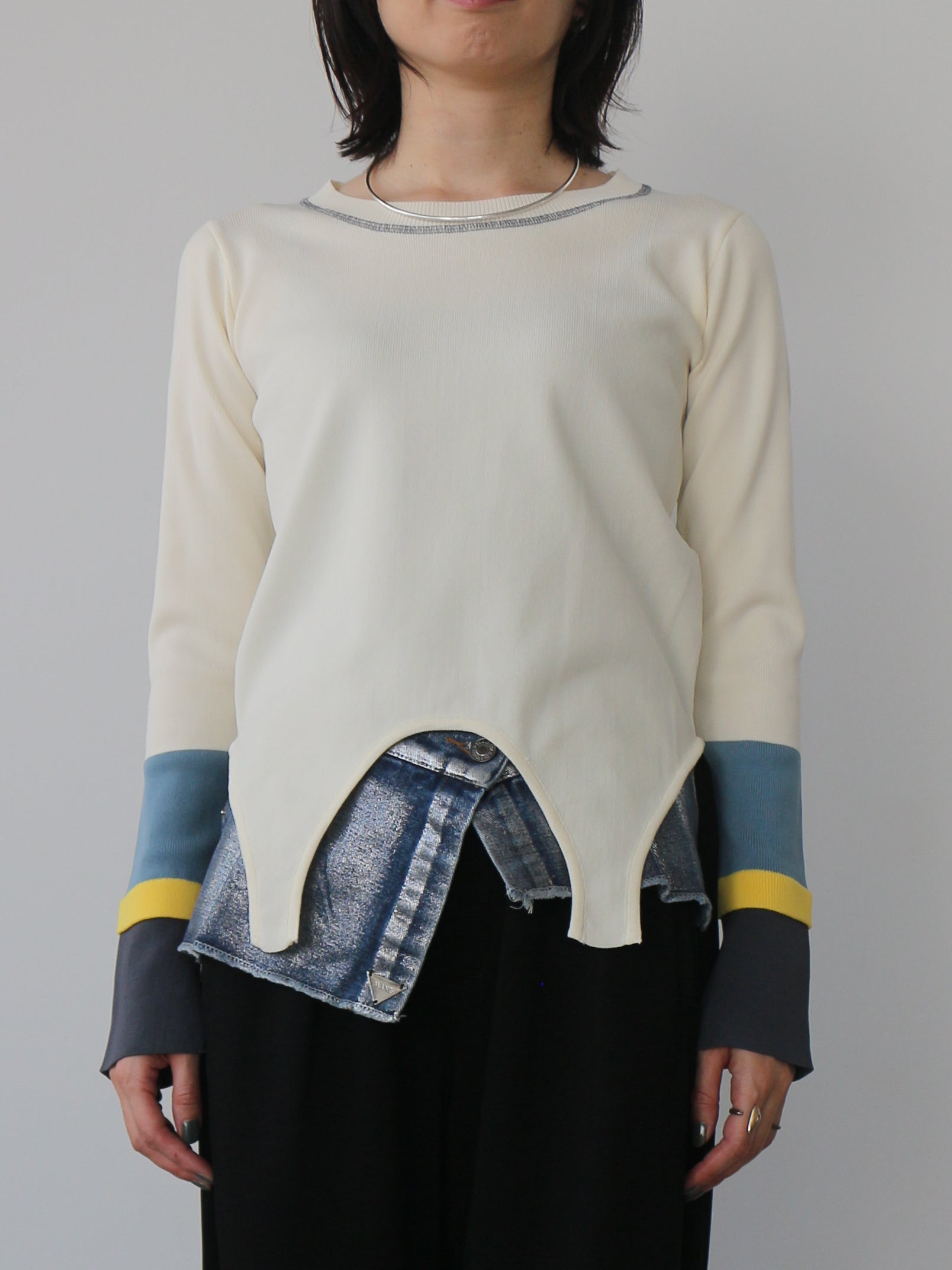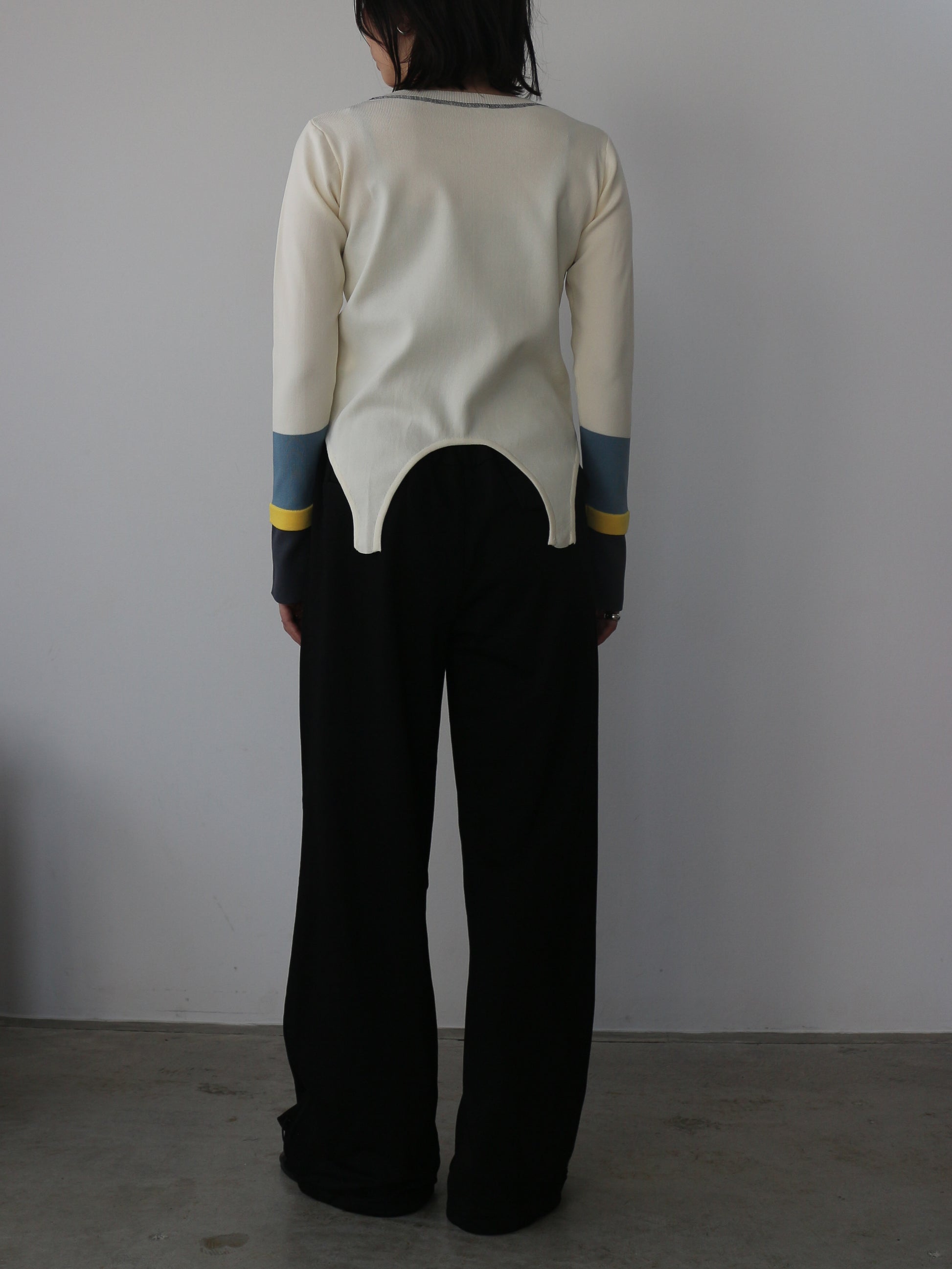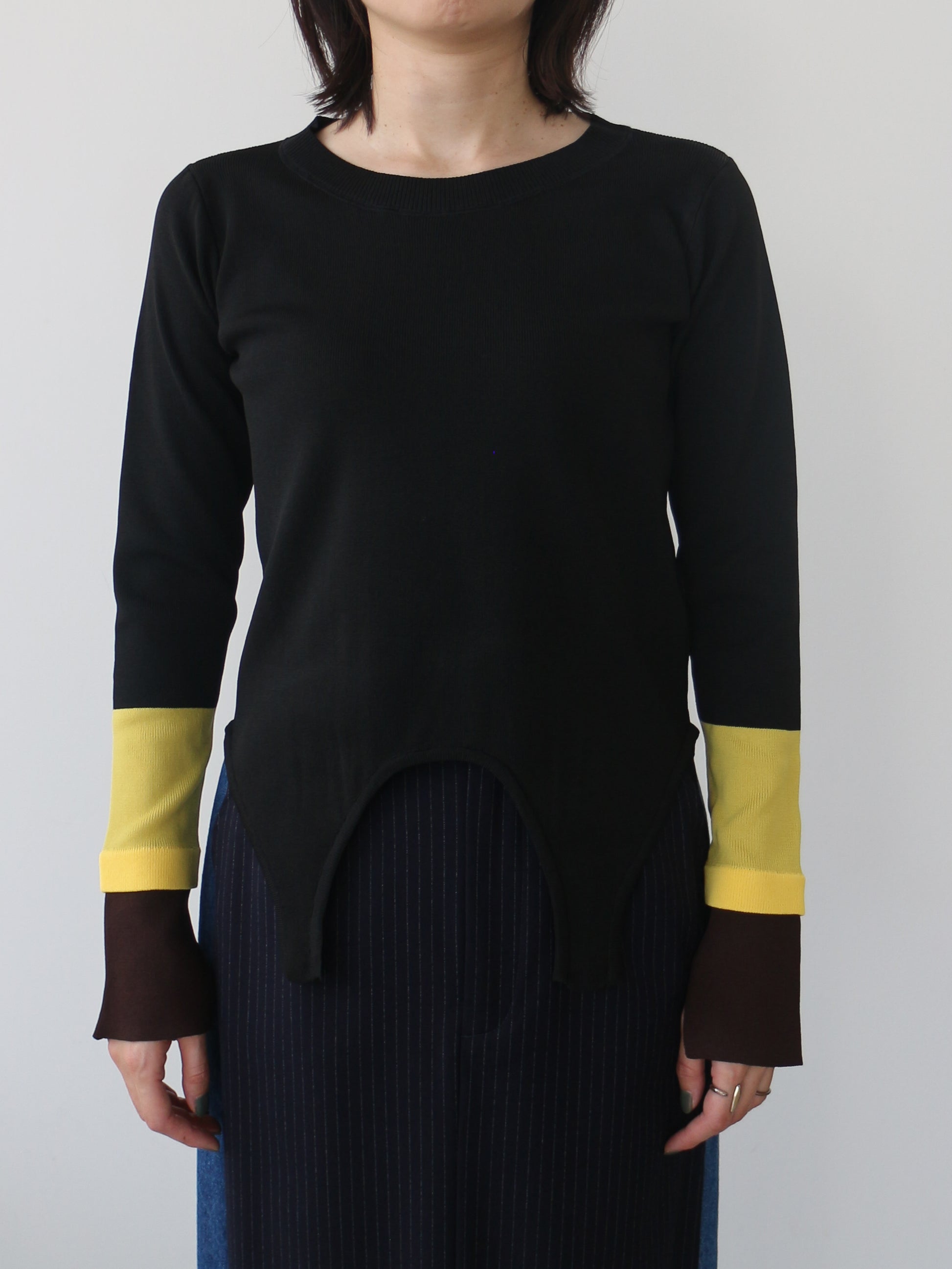 タイトながらも、伸縮性のある柔らかなリブニット素材で造り上げた着心地◎なトップス。程よくもちっとした手触りも魅力です。目を惹く配色スリーブとボディースーツを思わせるラウンドラインの裾で、今季らしいデザインに。カジュアルからキレイ目テイストまで相性抜群!インナーとしても、主役トップスとしてもコーディネートを華やかに彩るおすすめの1枚です。