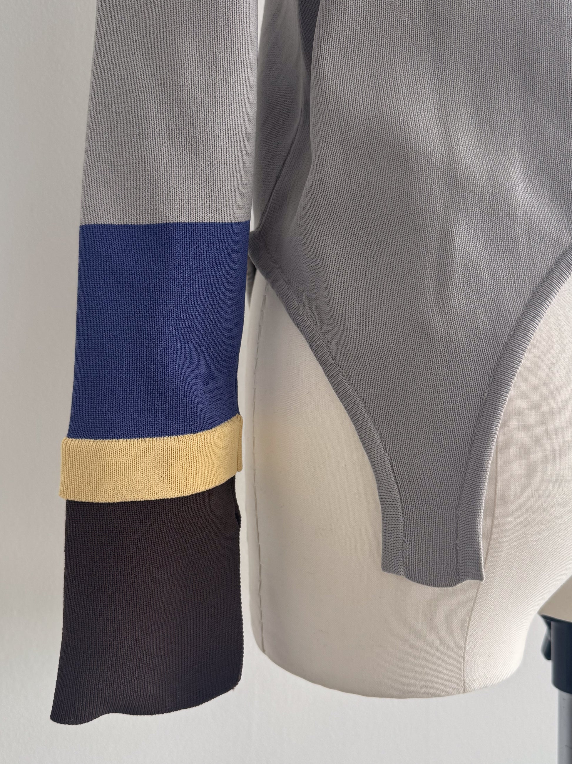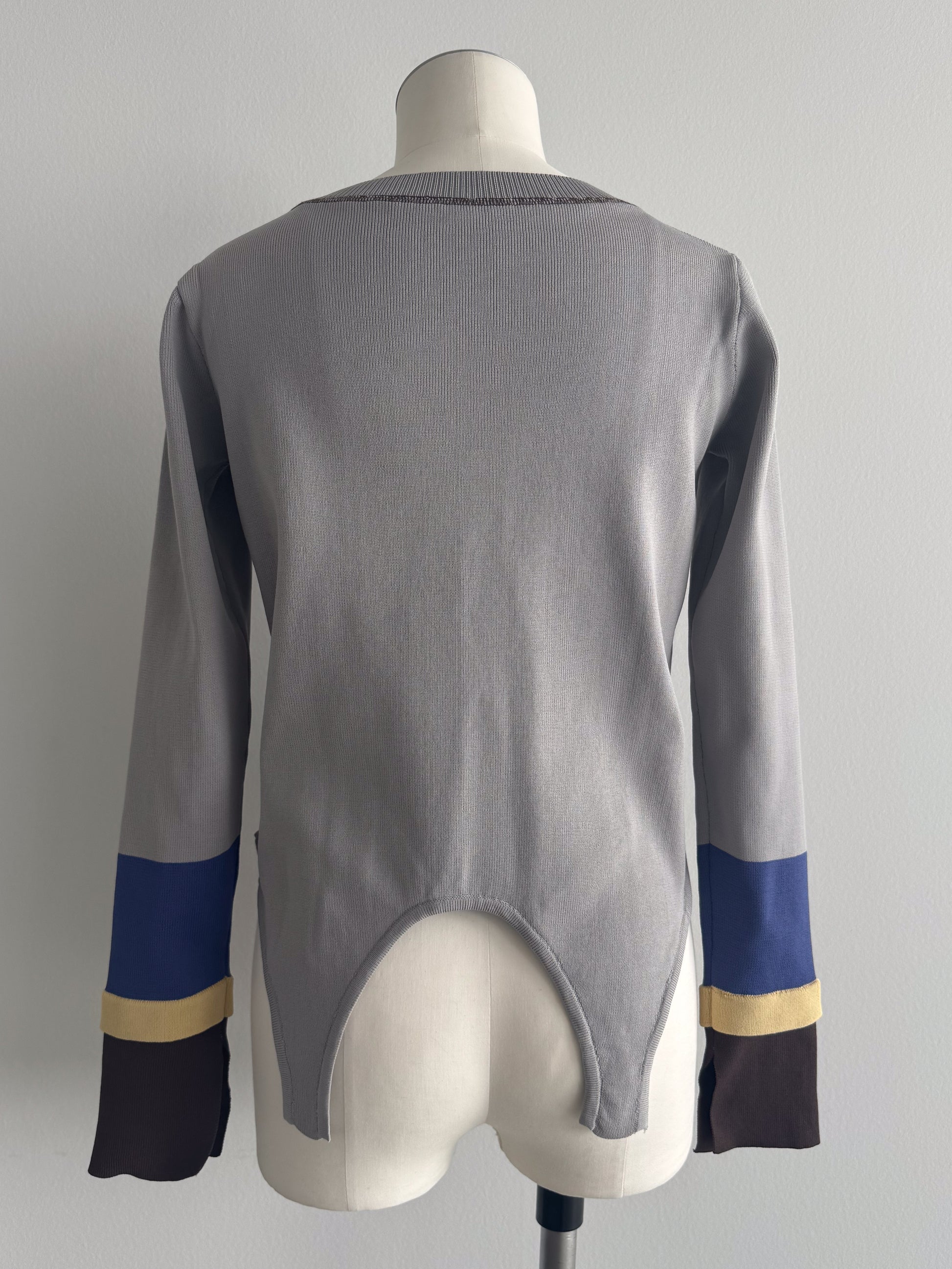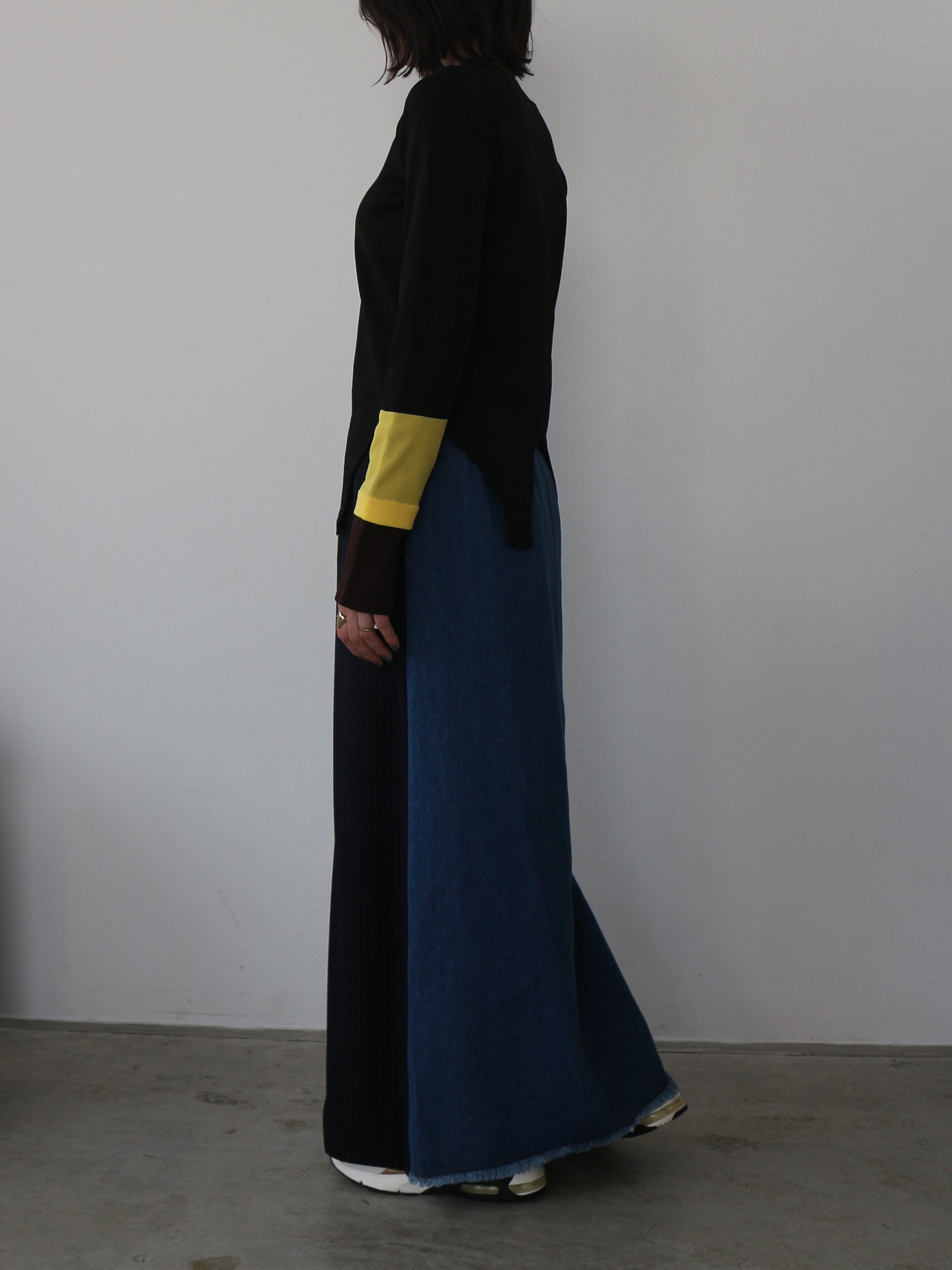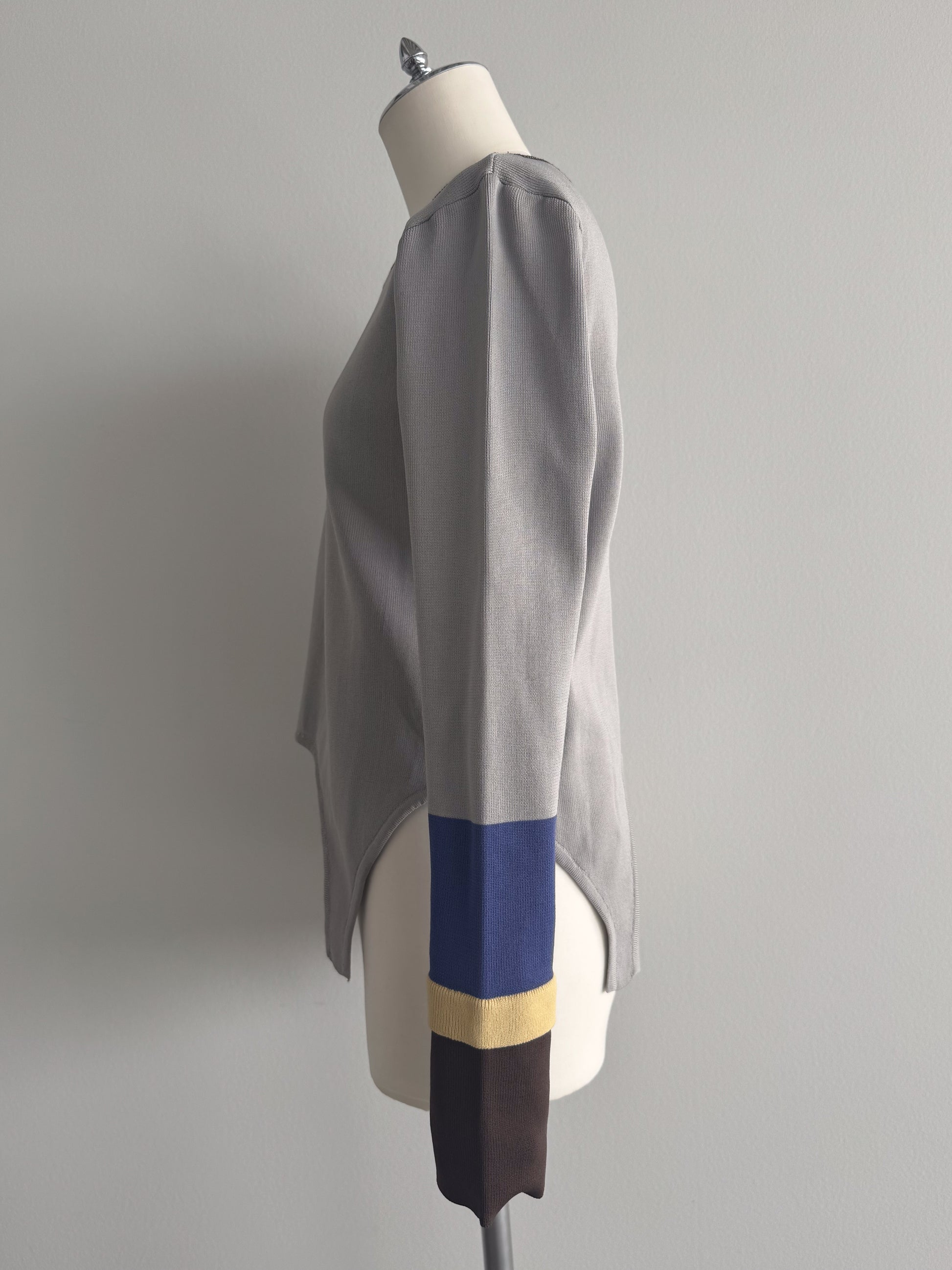 タイトながらも、伸縮性のある柔らかなリブニット素材で造り上げた着心地◎なトップス。程よくもちっとした手触りも魅力です。目を惹く配色スリーブとボディースーツを思わせるラウンドラインの裾で、今季らしいデザインに。カジュアルからキレイ目テイストまで相性抜群!インナーとしても、主役トップスとしてもコーディネートを華やかに彩るおすすめの1枚です。