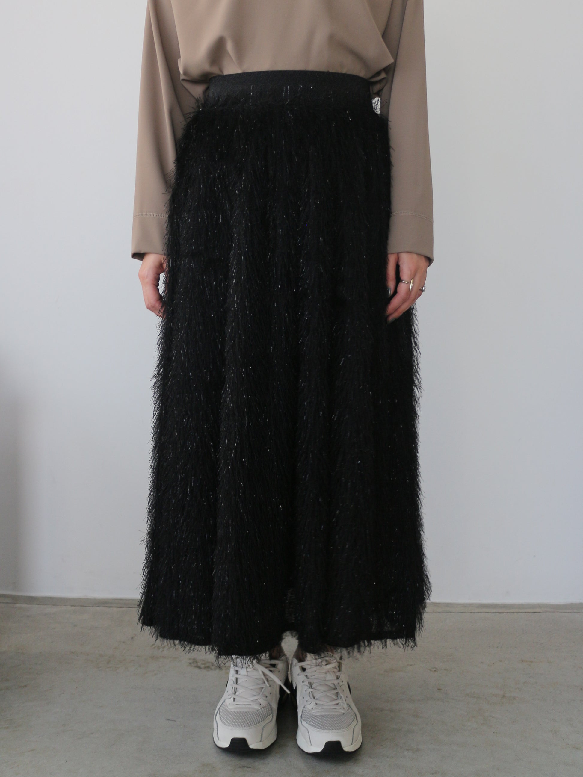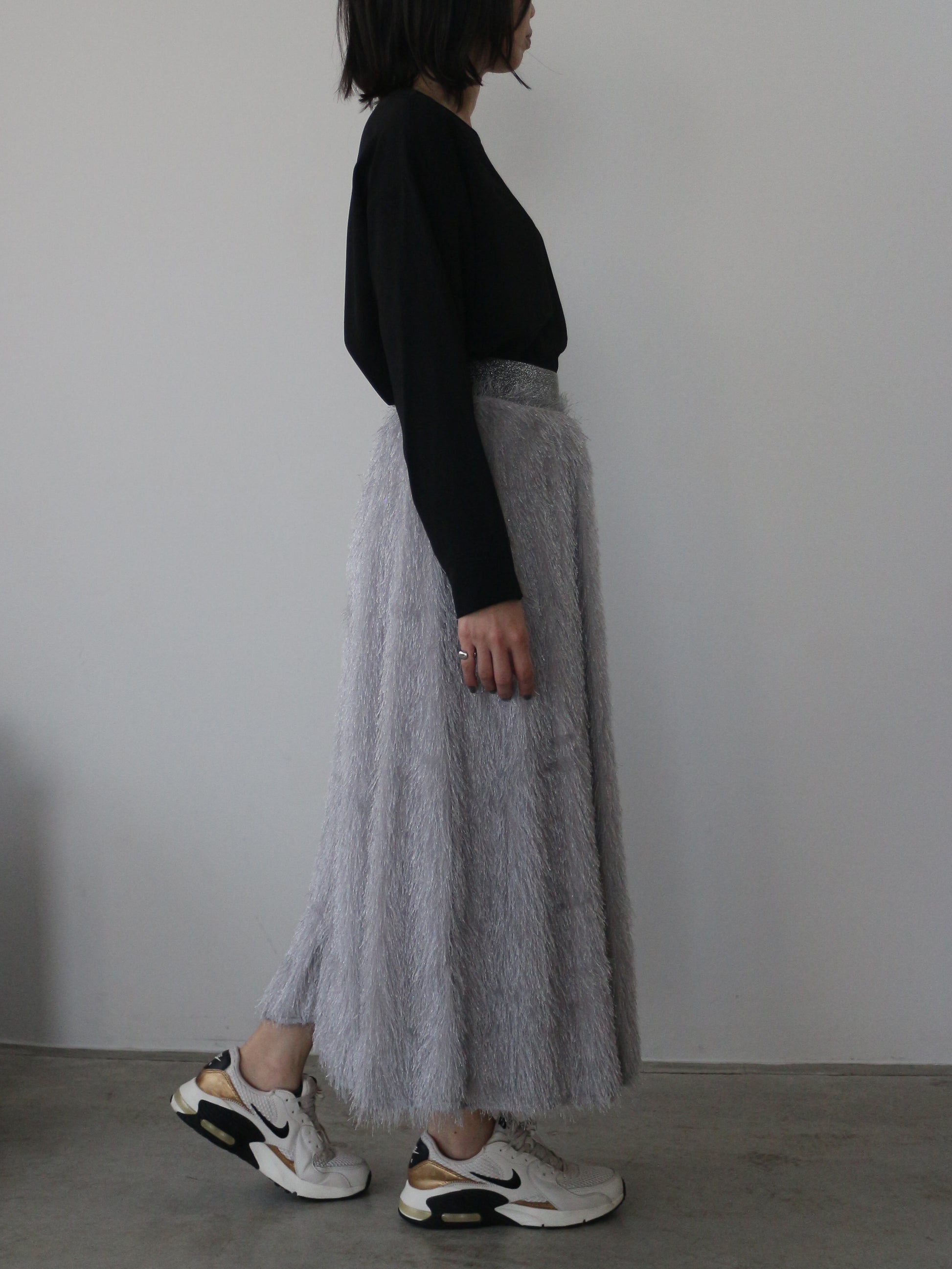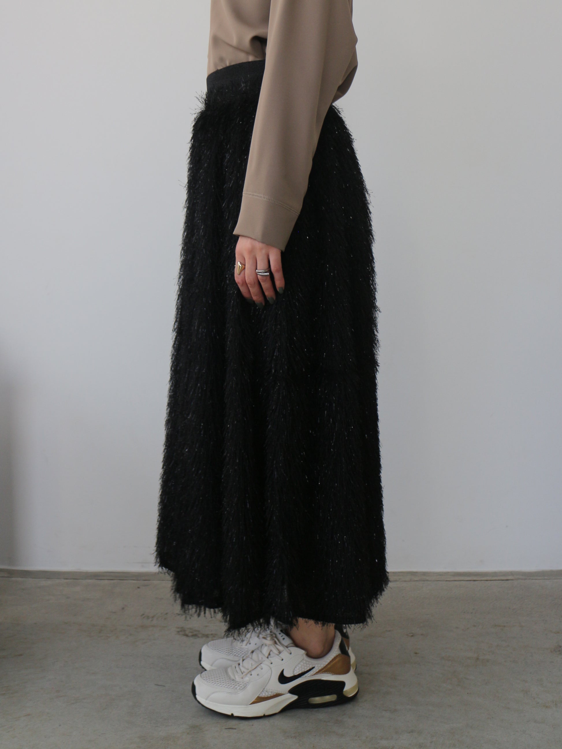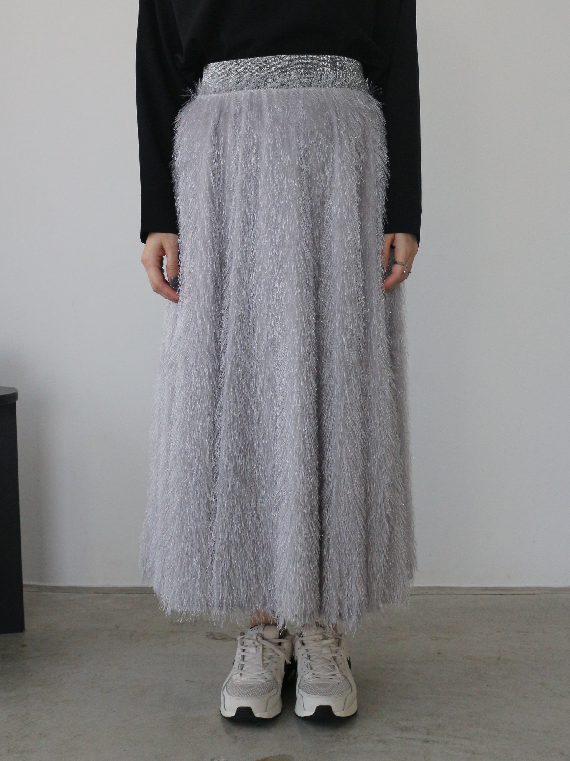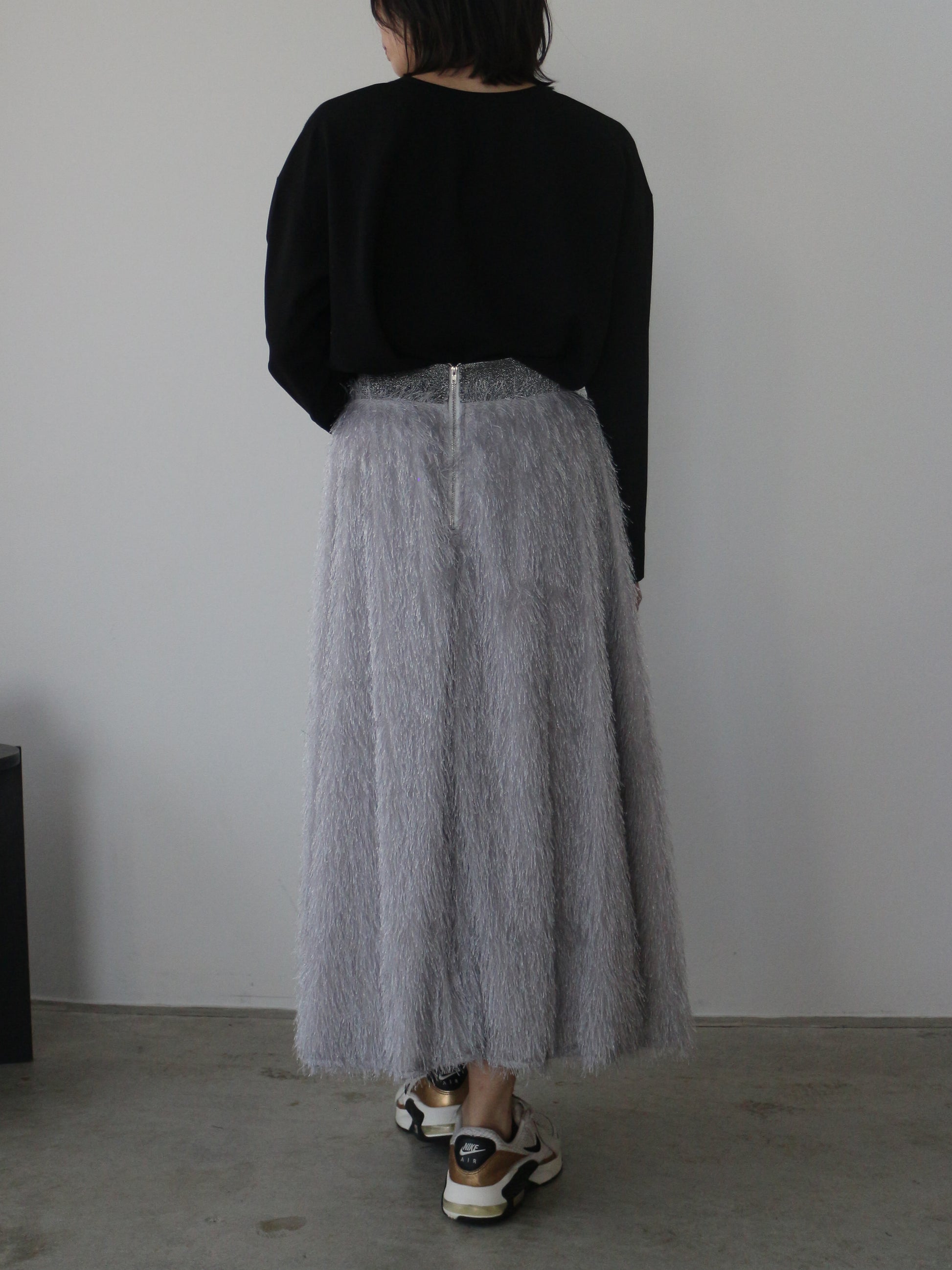 キラキラと光るラメ混のシャギーが印象的なボリュームスカート。