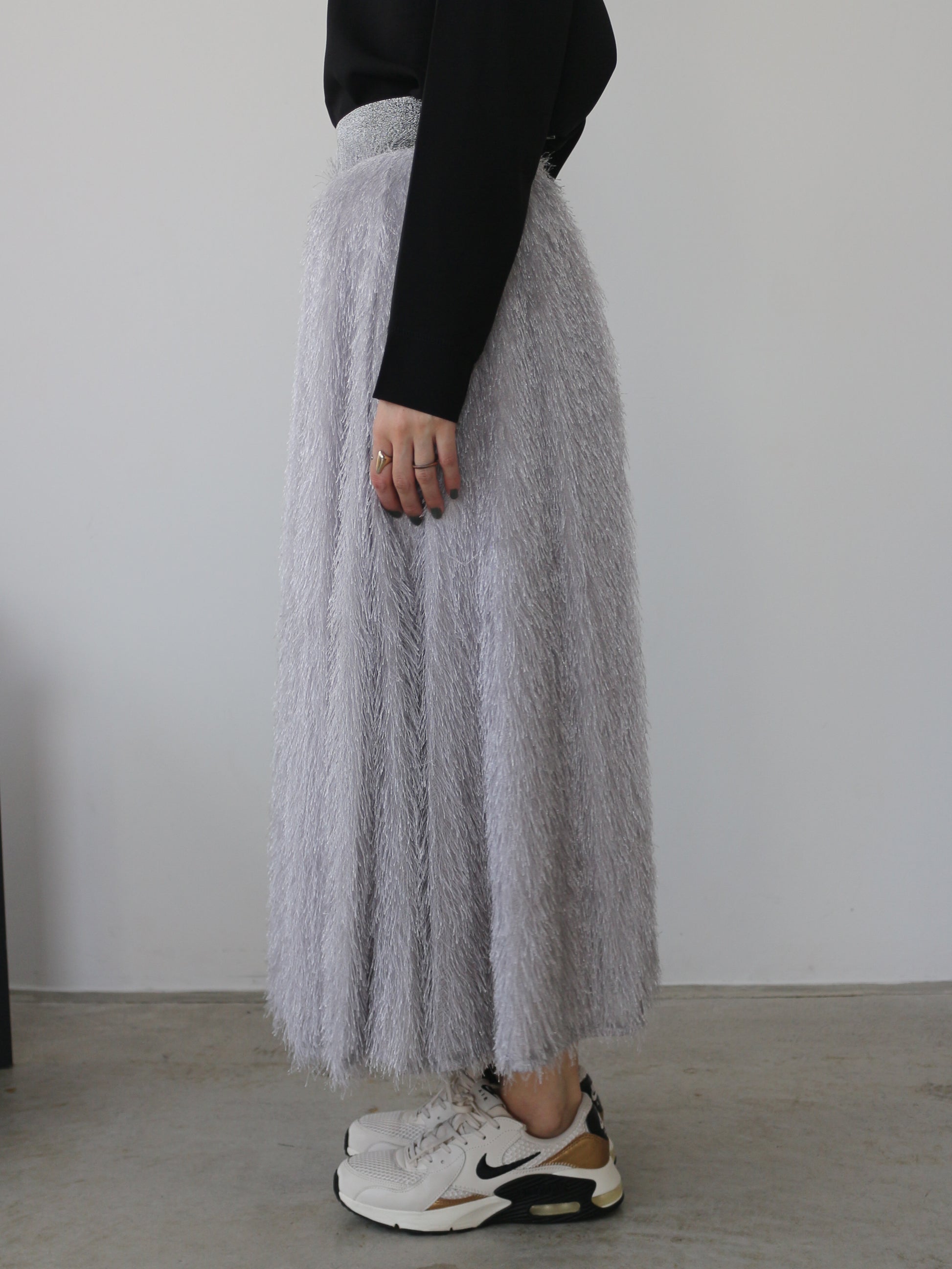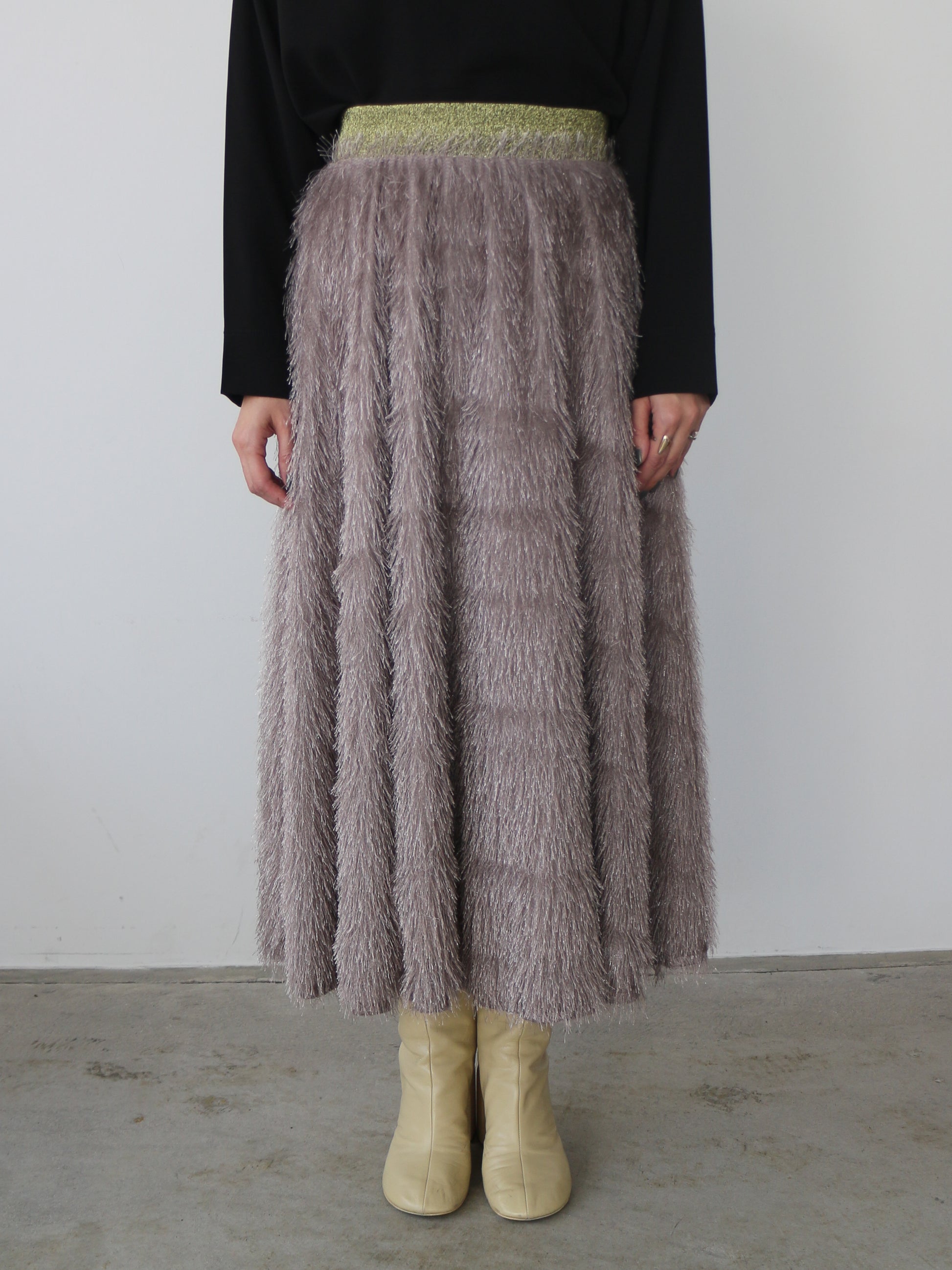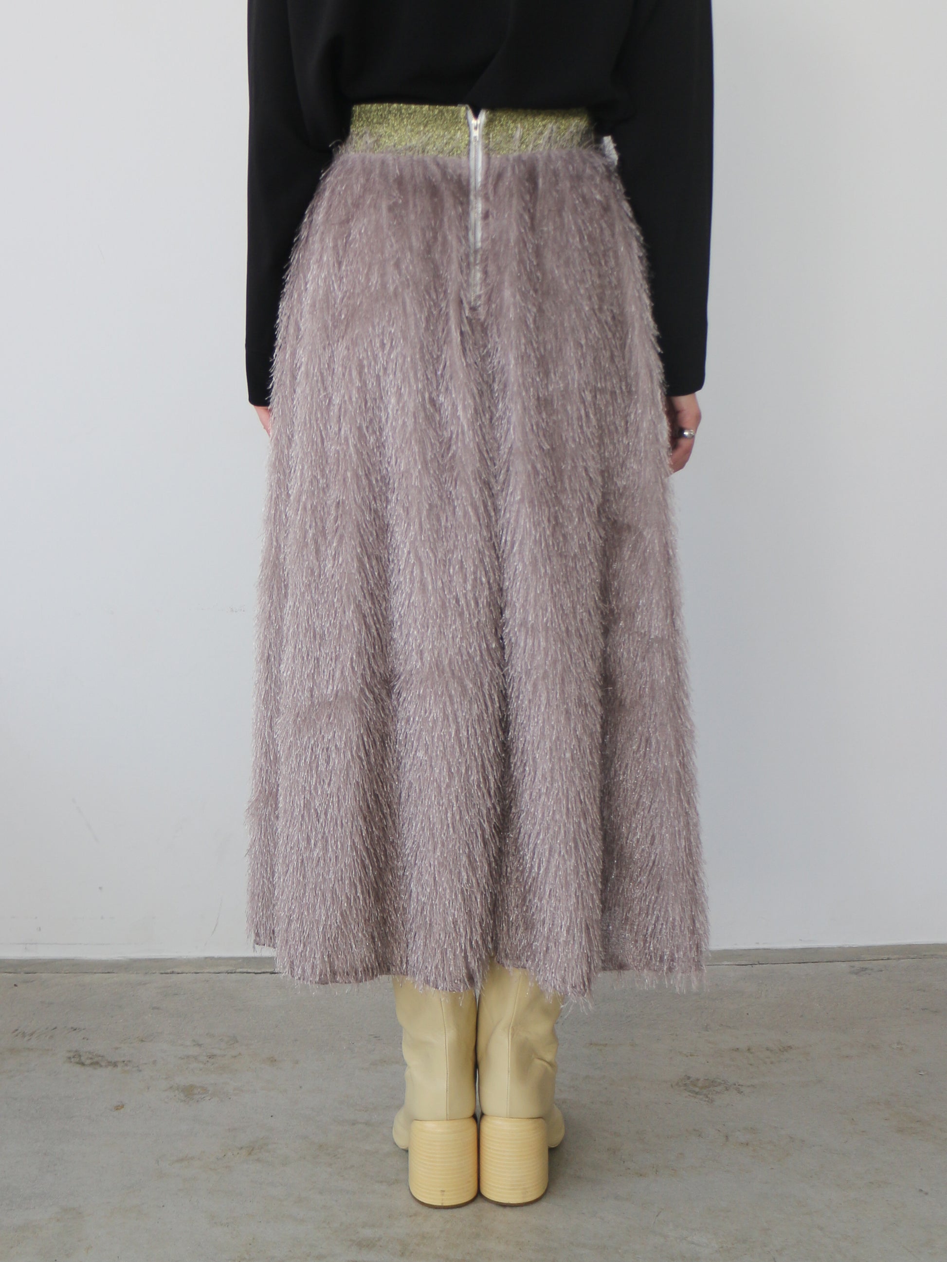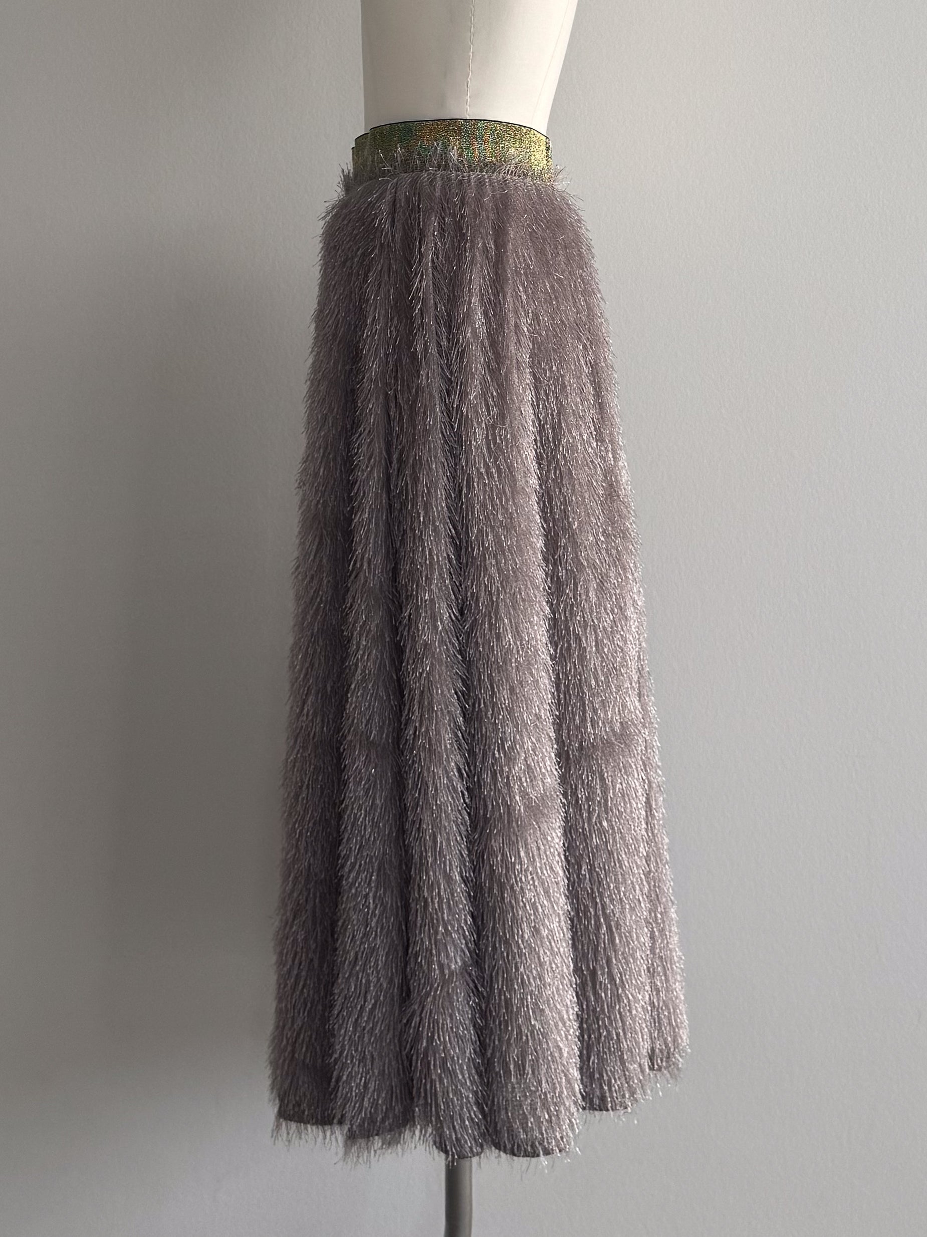 キラキラと光るラメ混のシャギーが印象的なボリュームスカート。