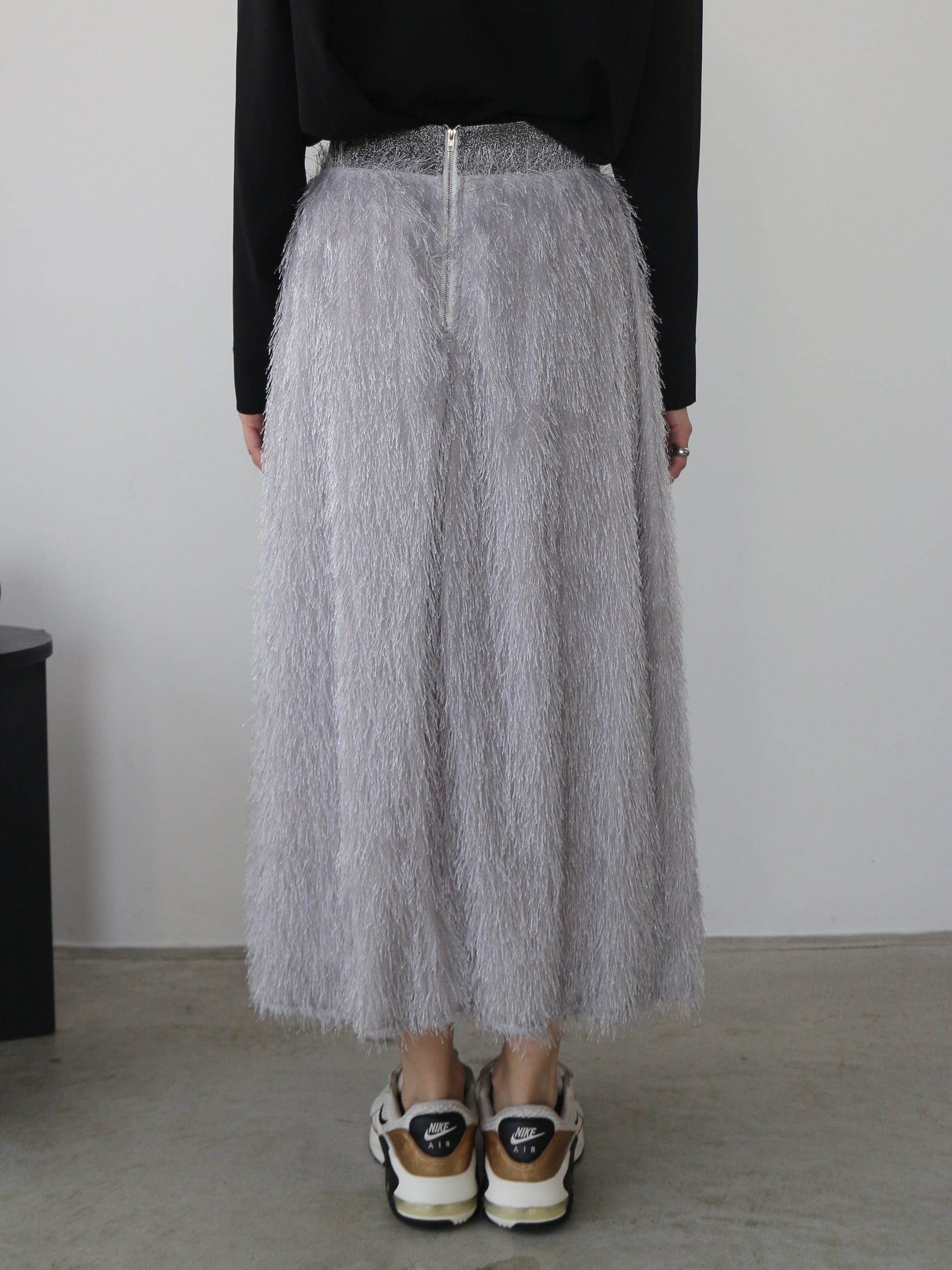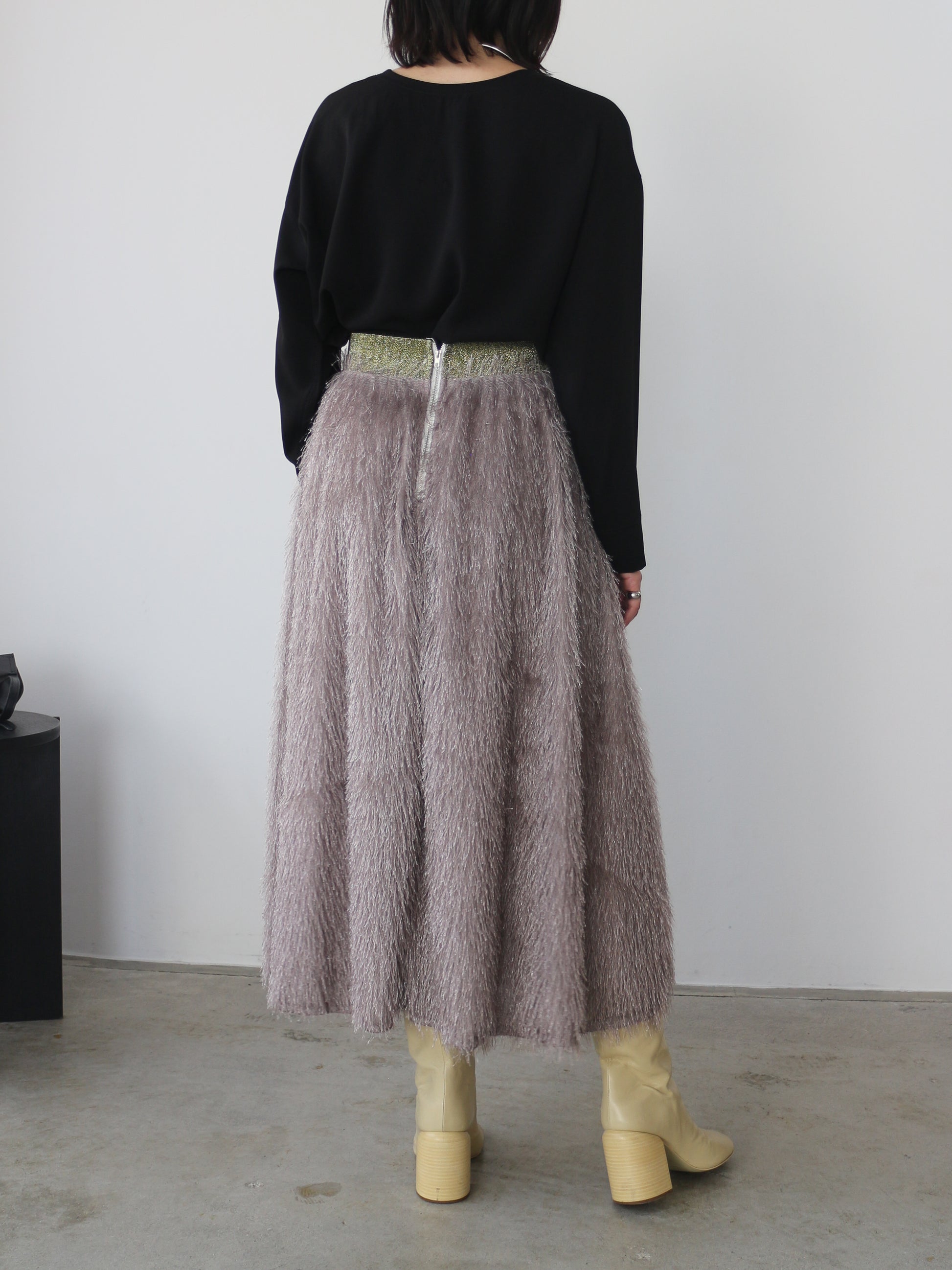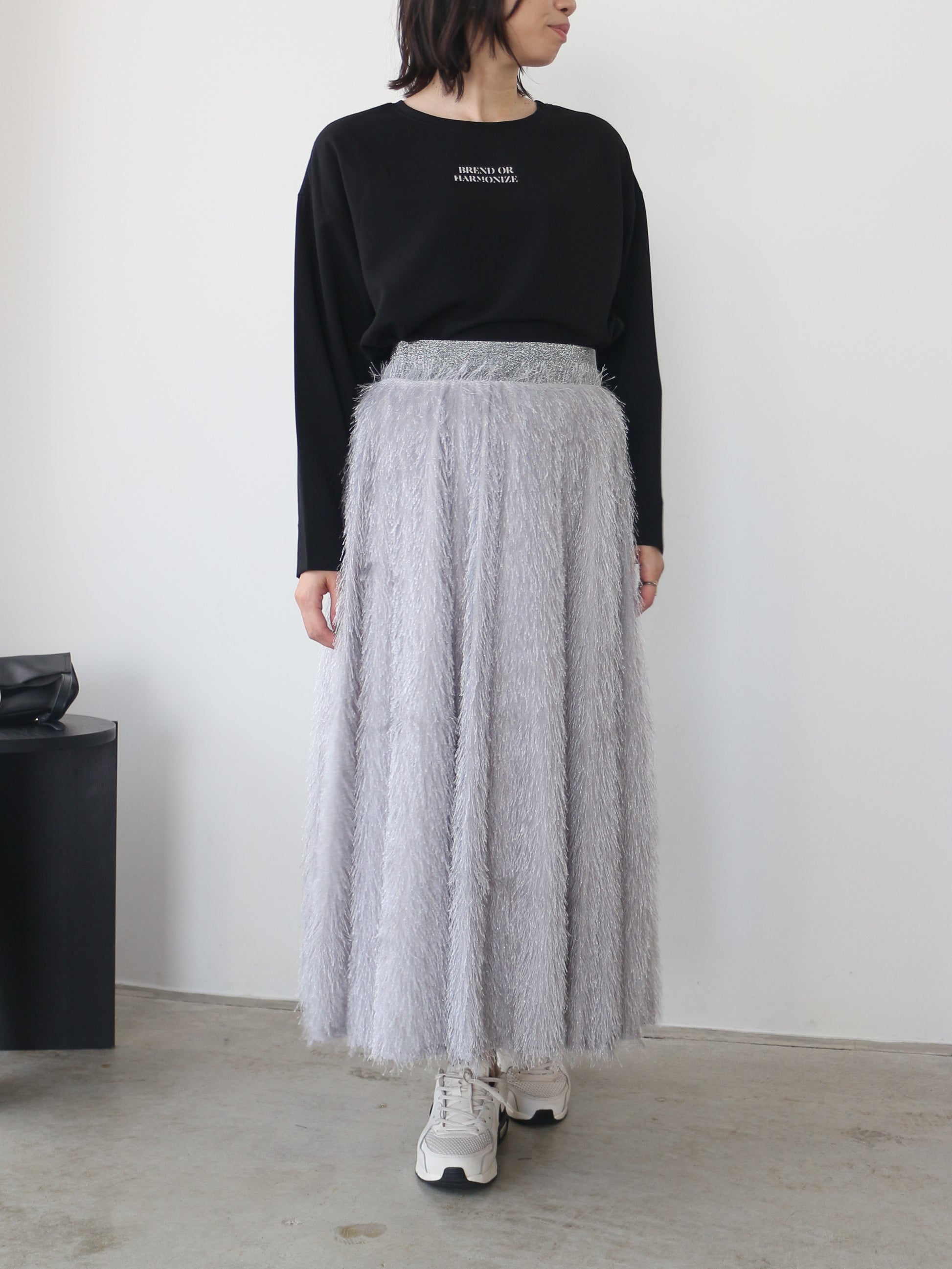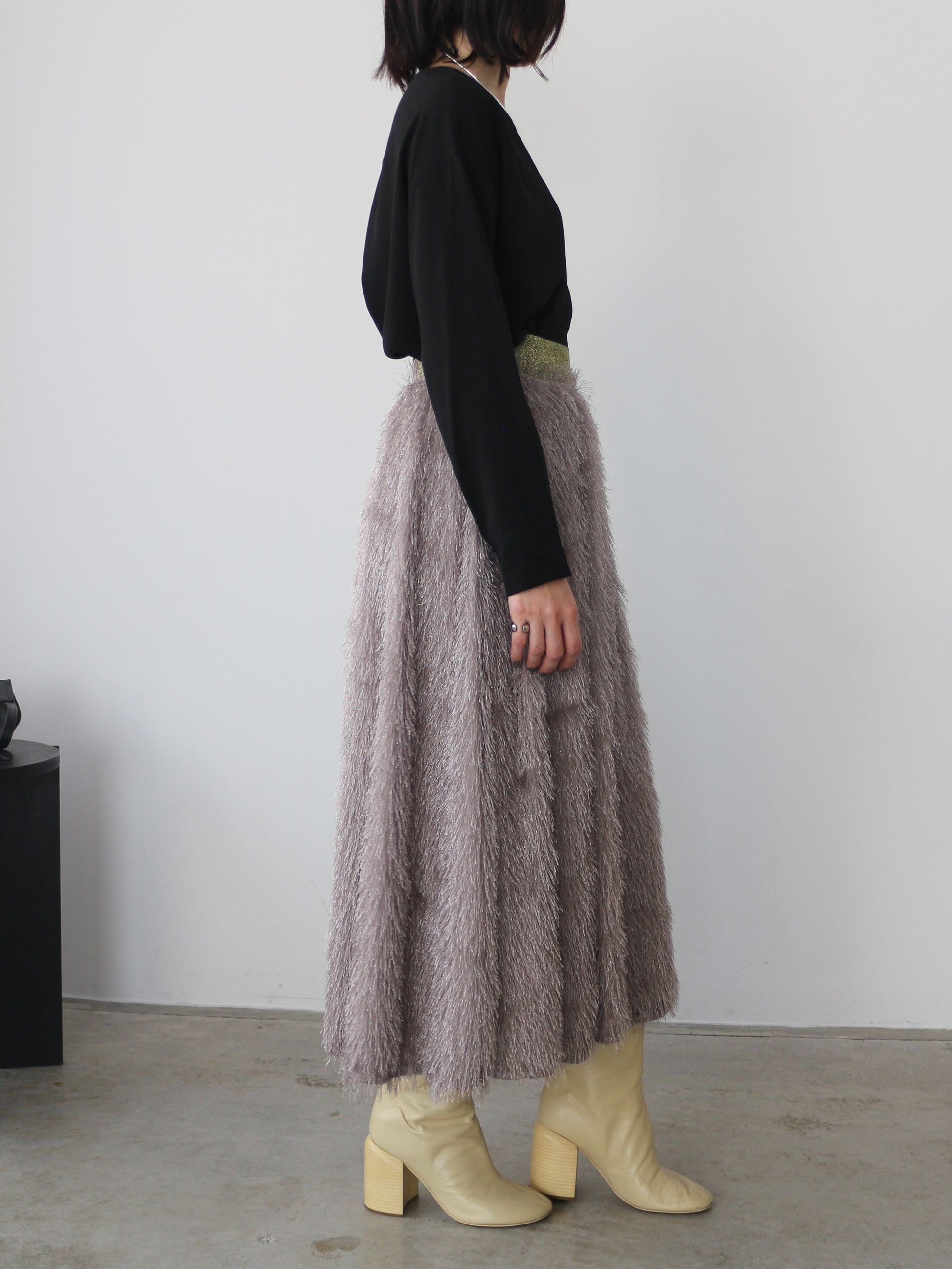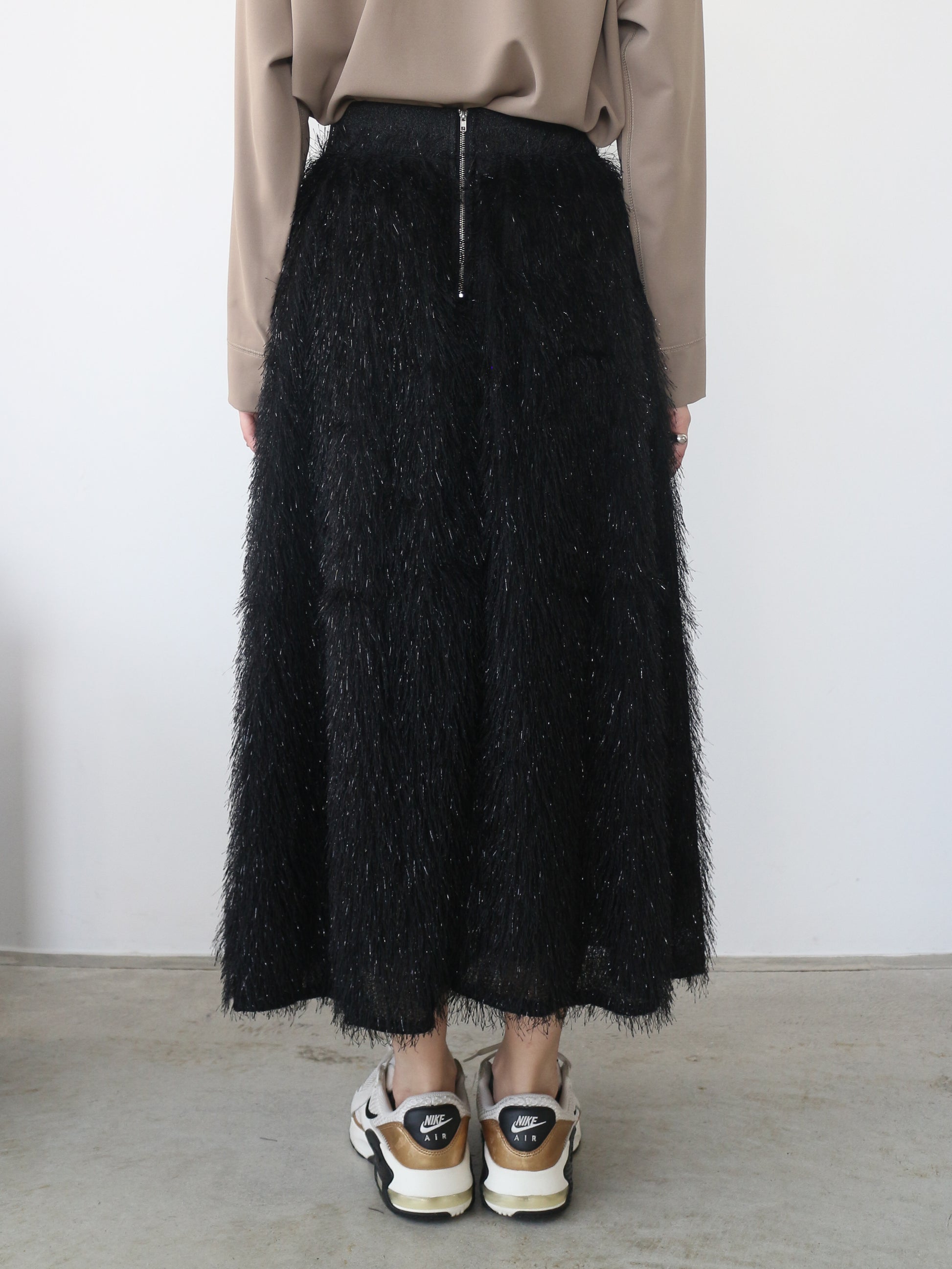 キラキラと光るラメ混のシャギーが印象的なボリュームスカート。