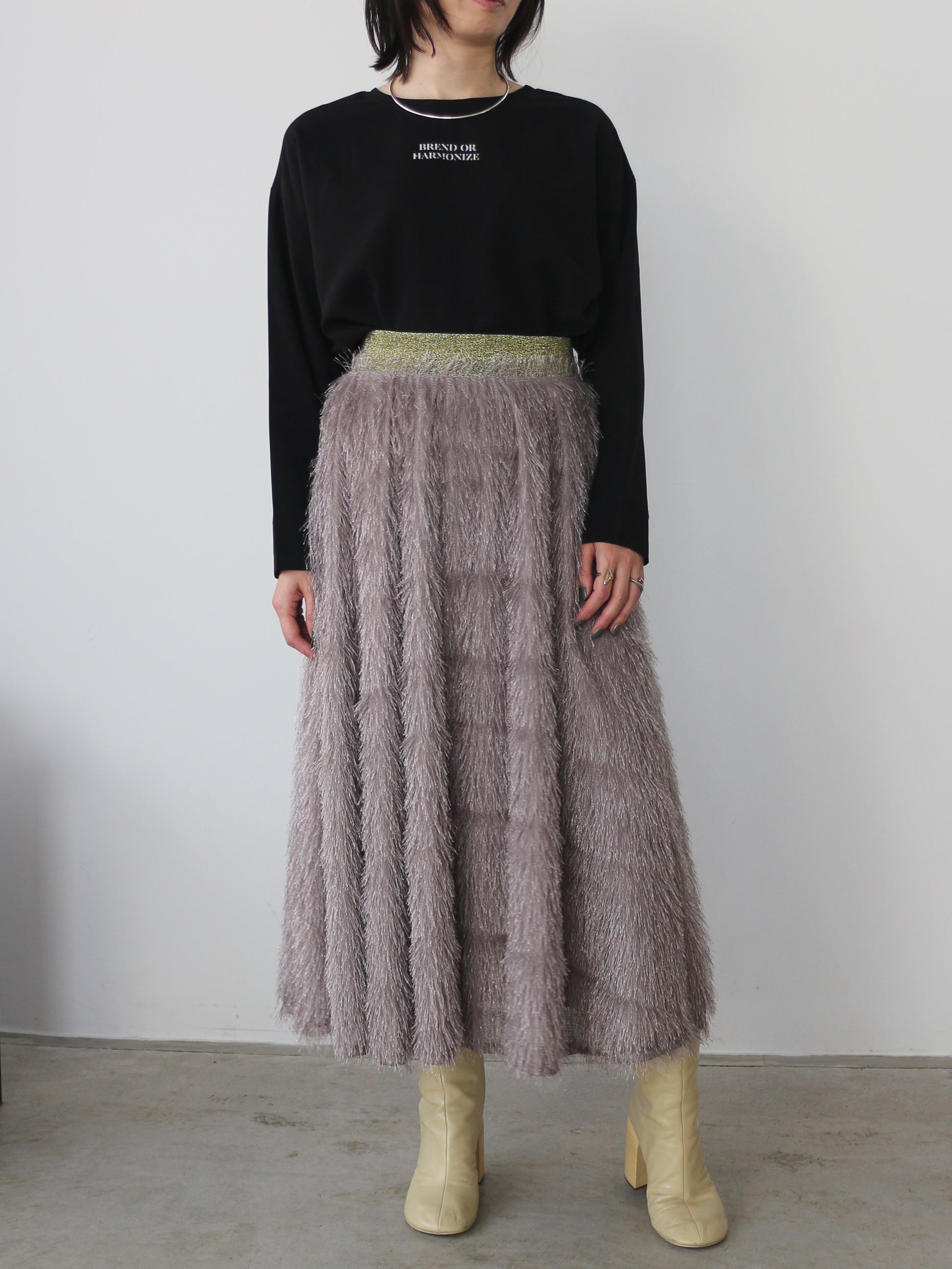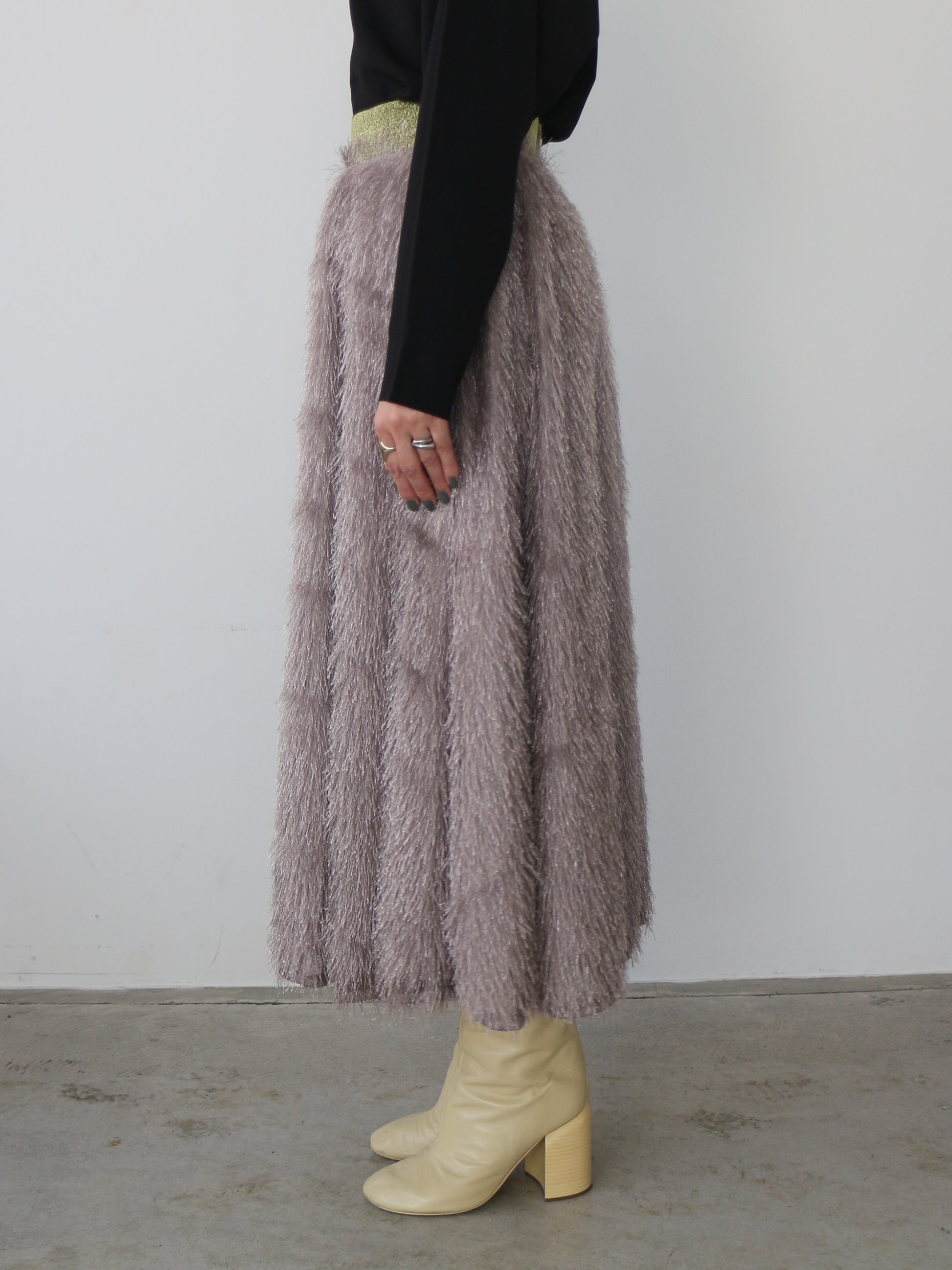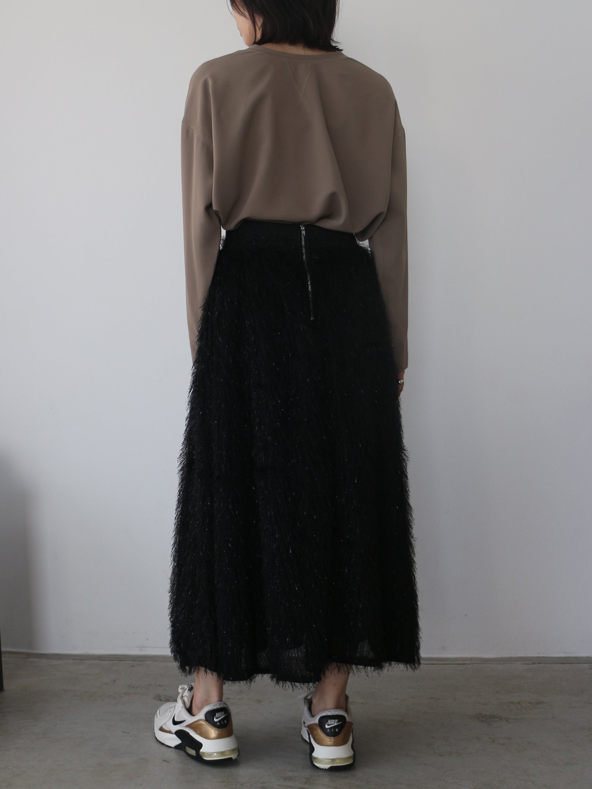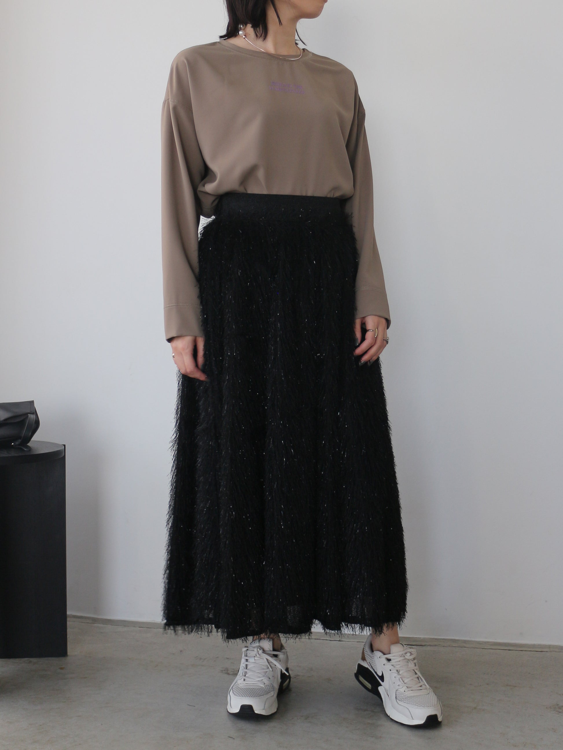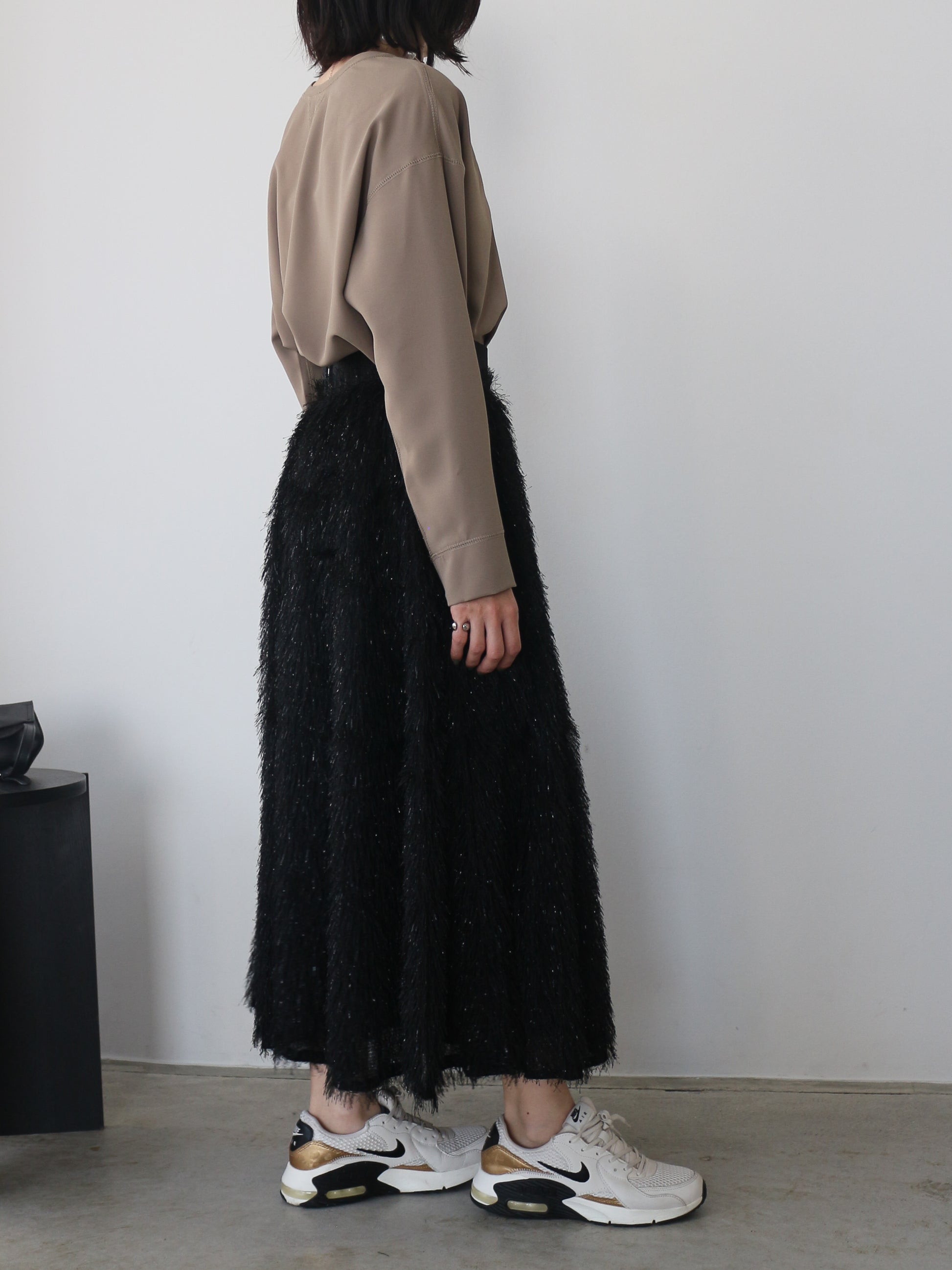 キラキラと光るラメ混のシャギーが印象的なボリュームスカート。