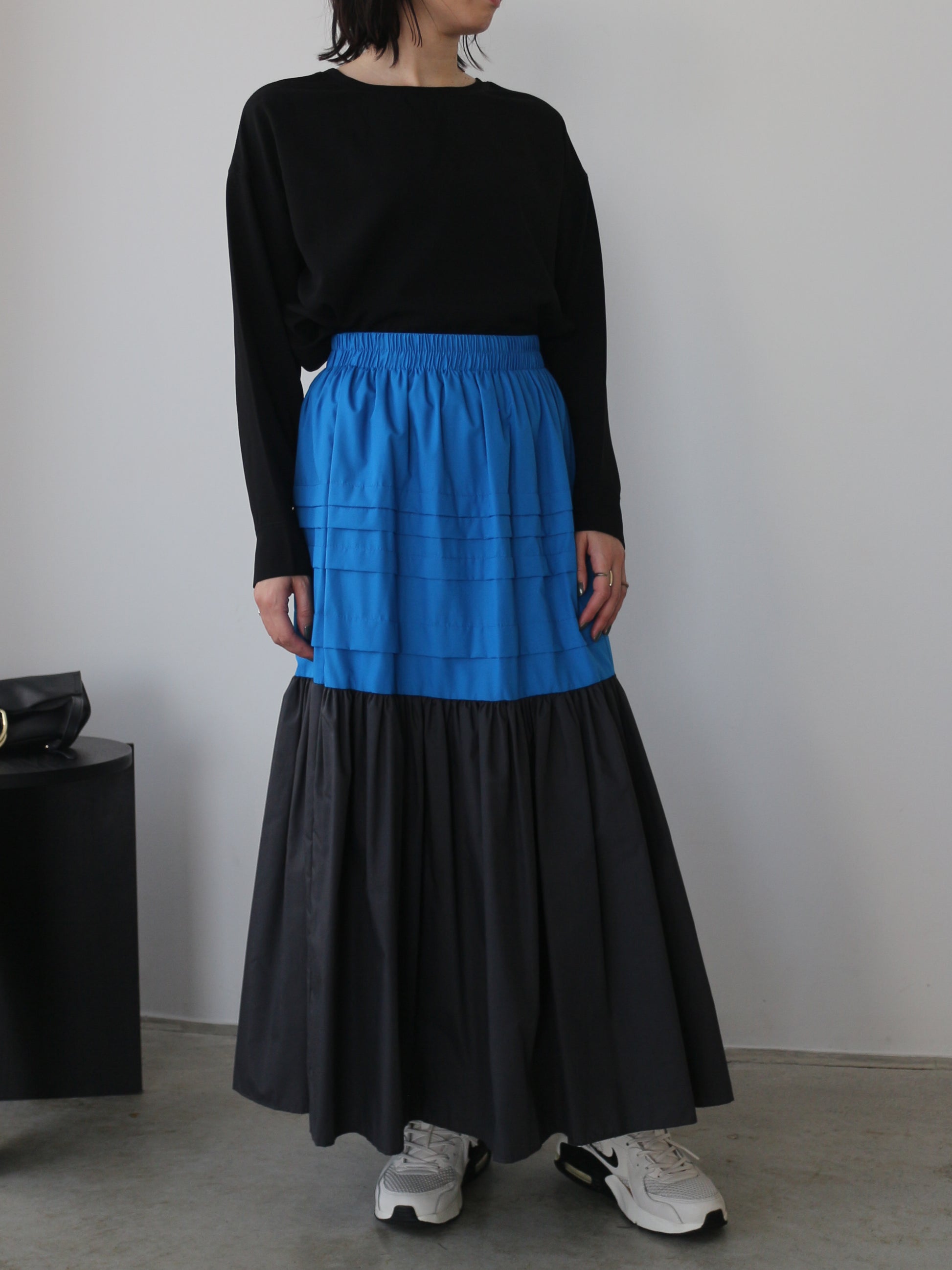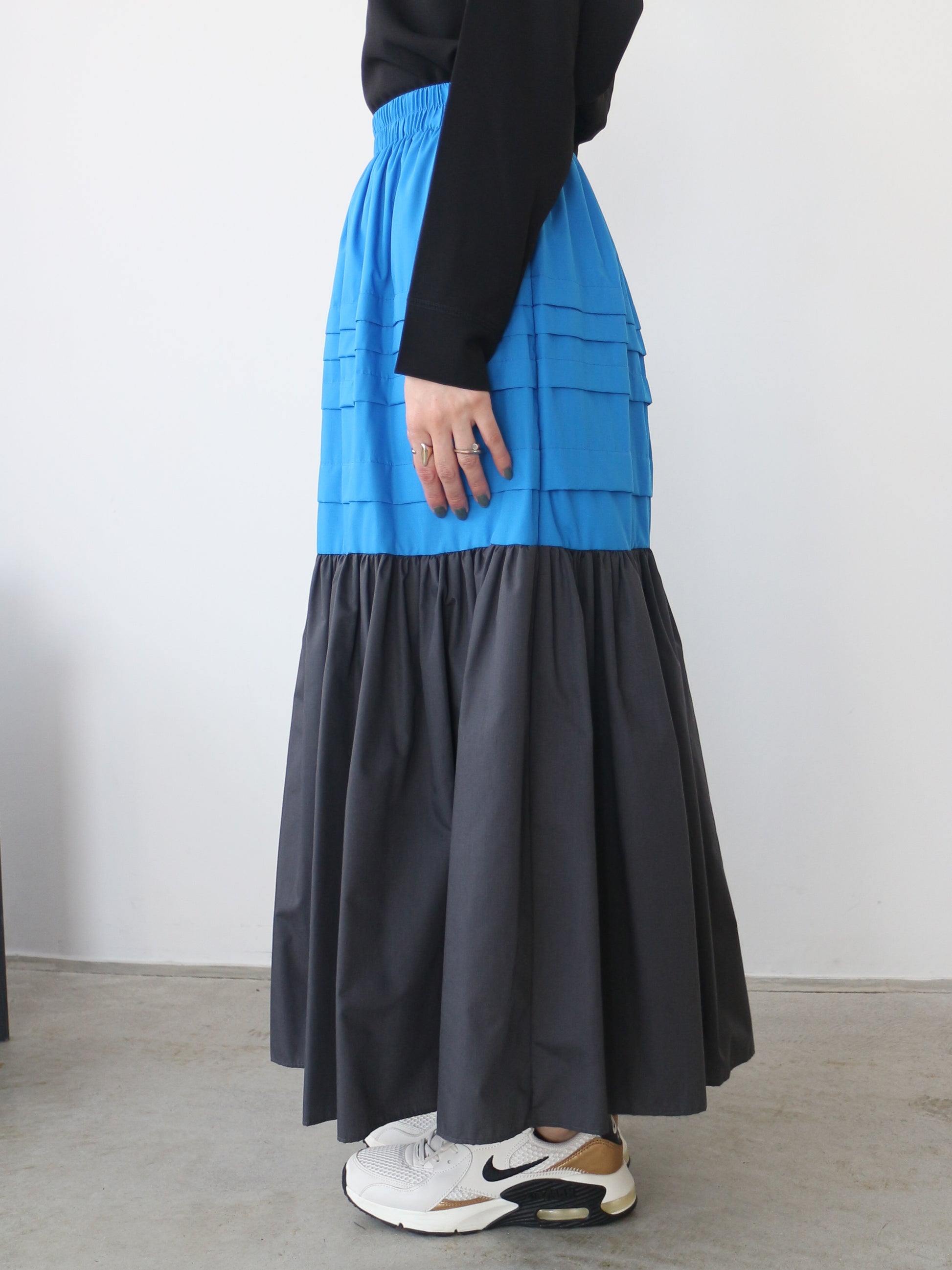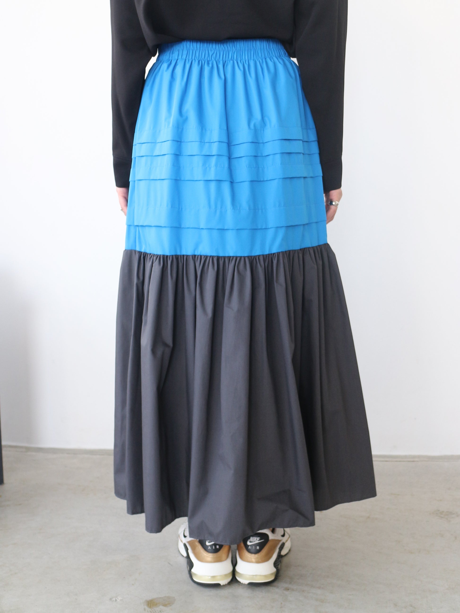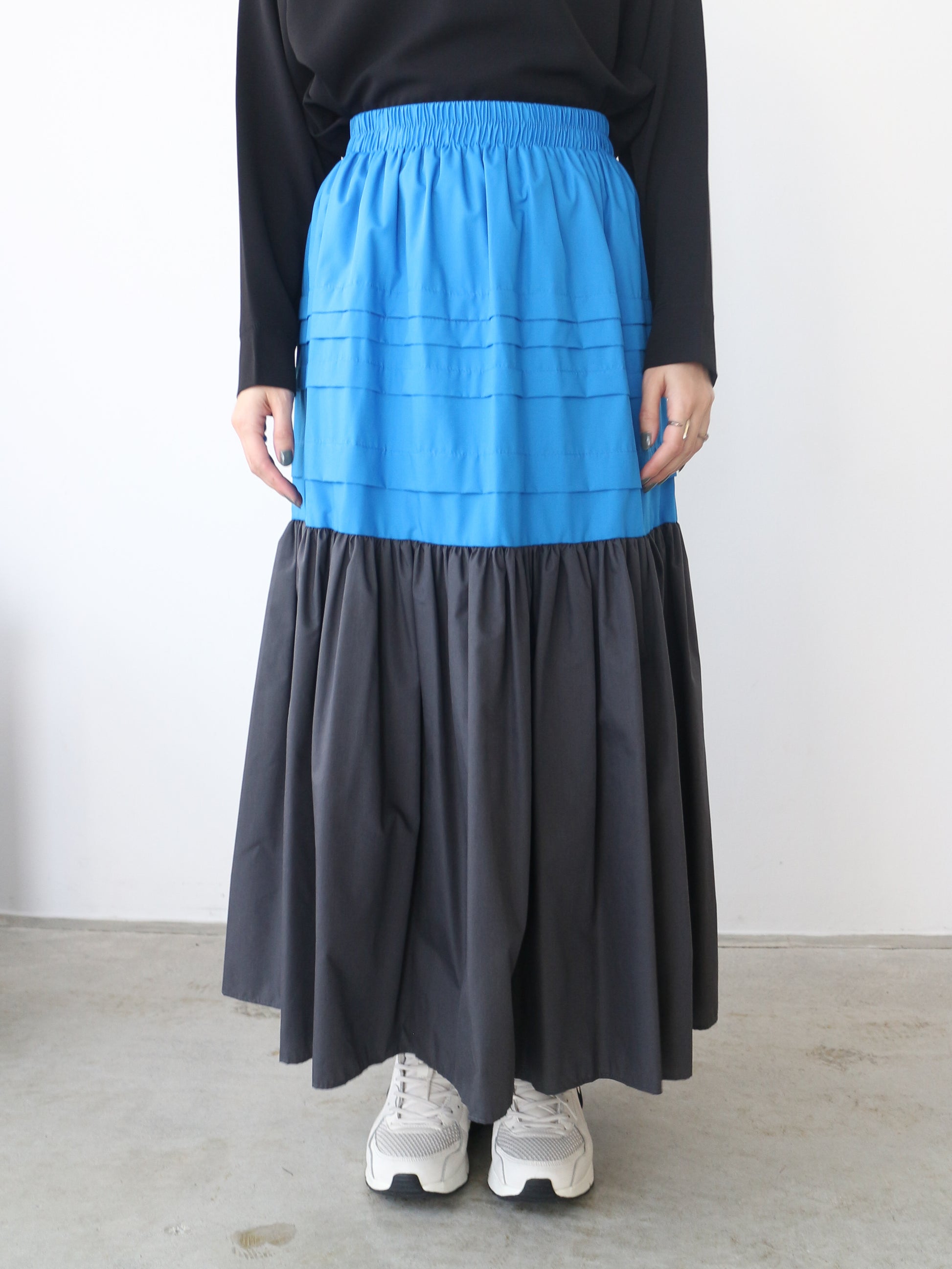 贅沢なボリューム感が愛らしい、洗練顔のバイカラーロングスカート。