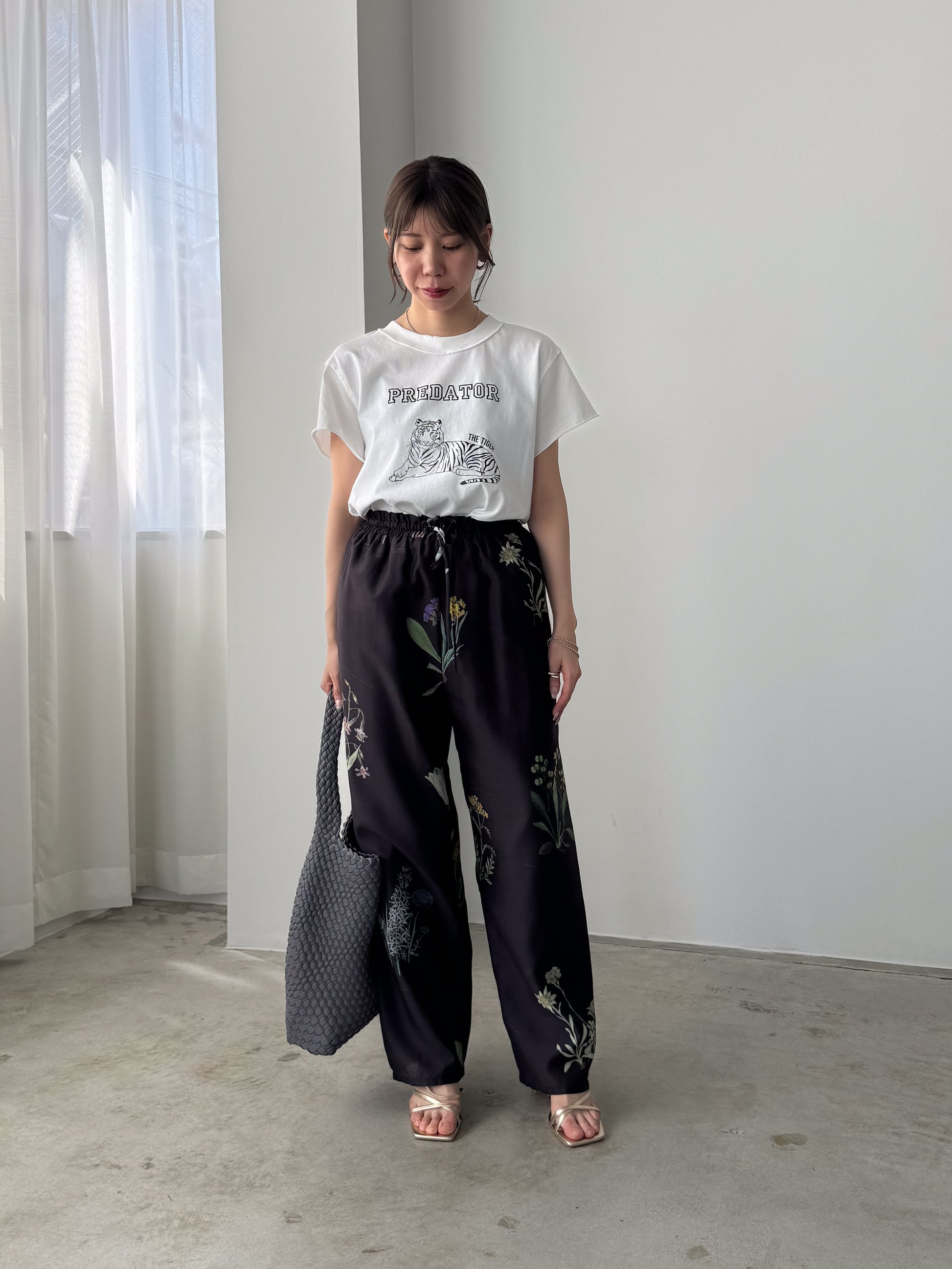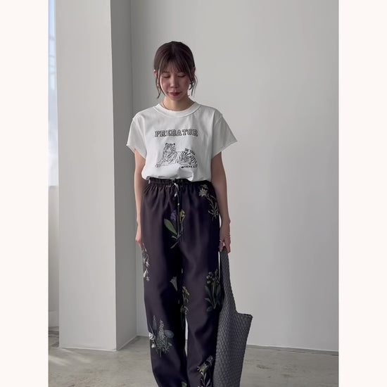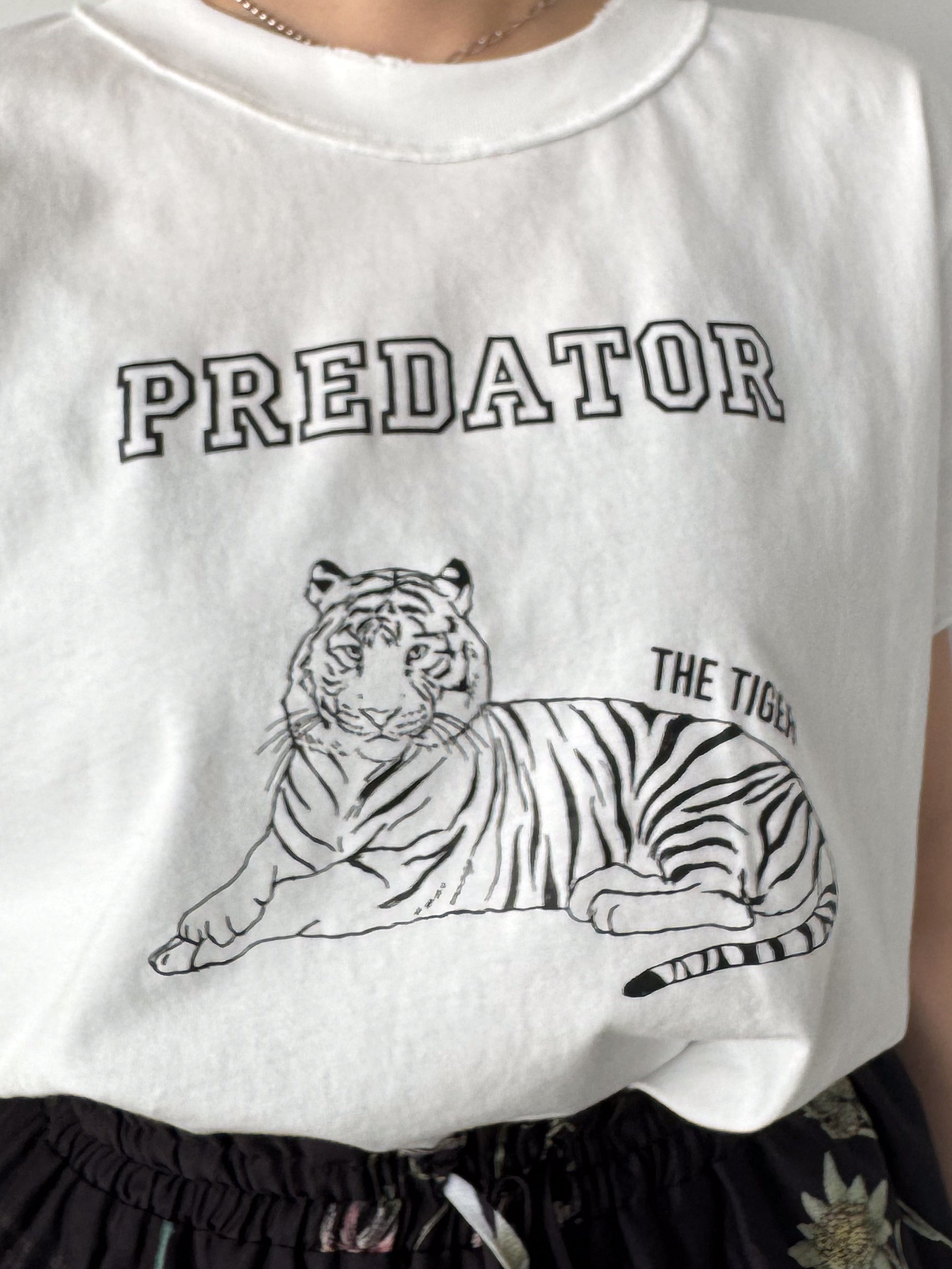 猫とトラをモチーフにしたオリジナルのプリントが遊び心のあるデザイン。