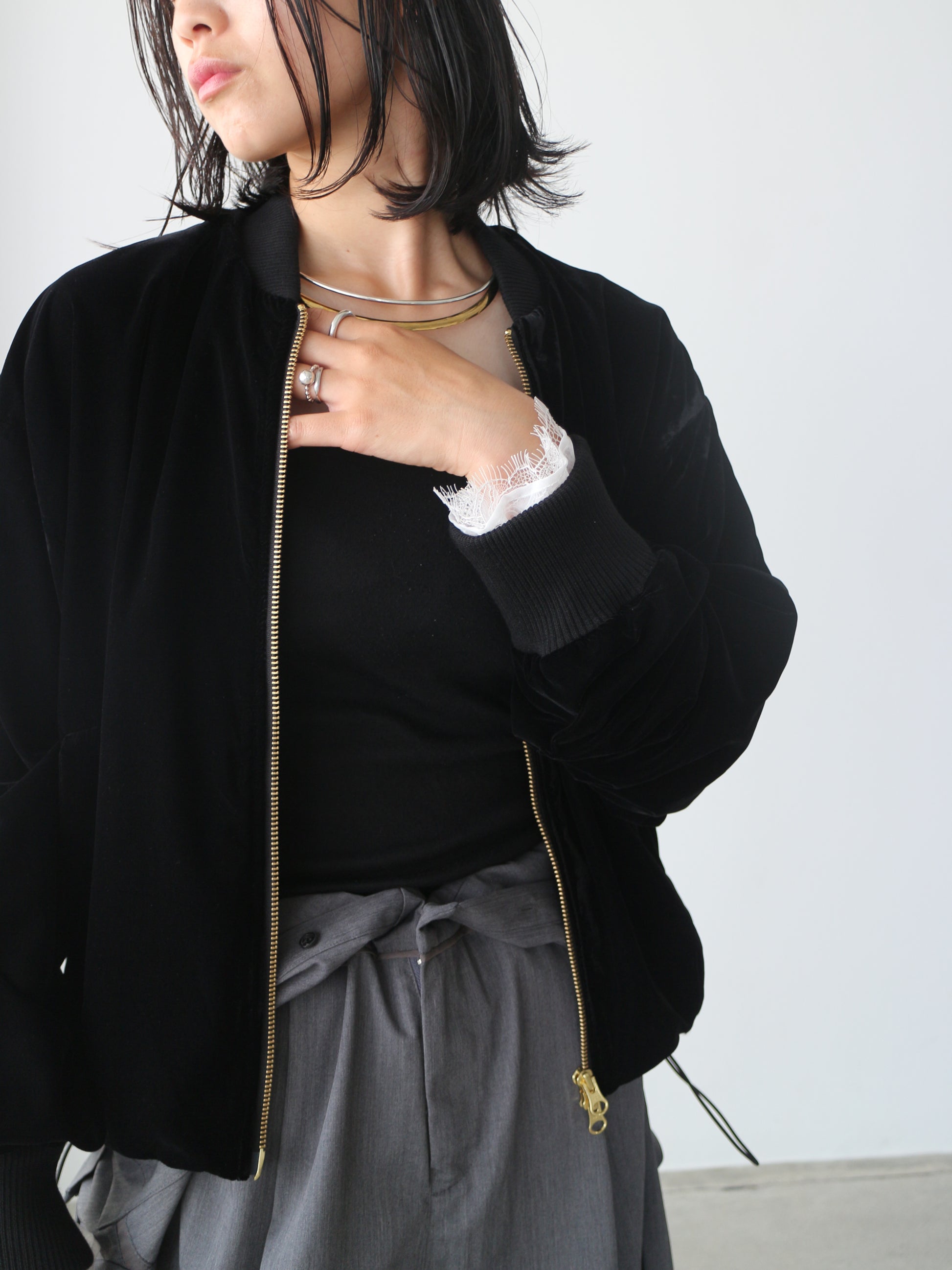 高級感のあるベルベット素材を使用したジップアップブルゾン。
