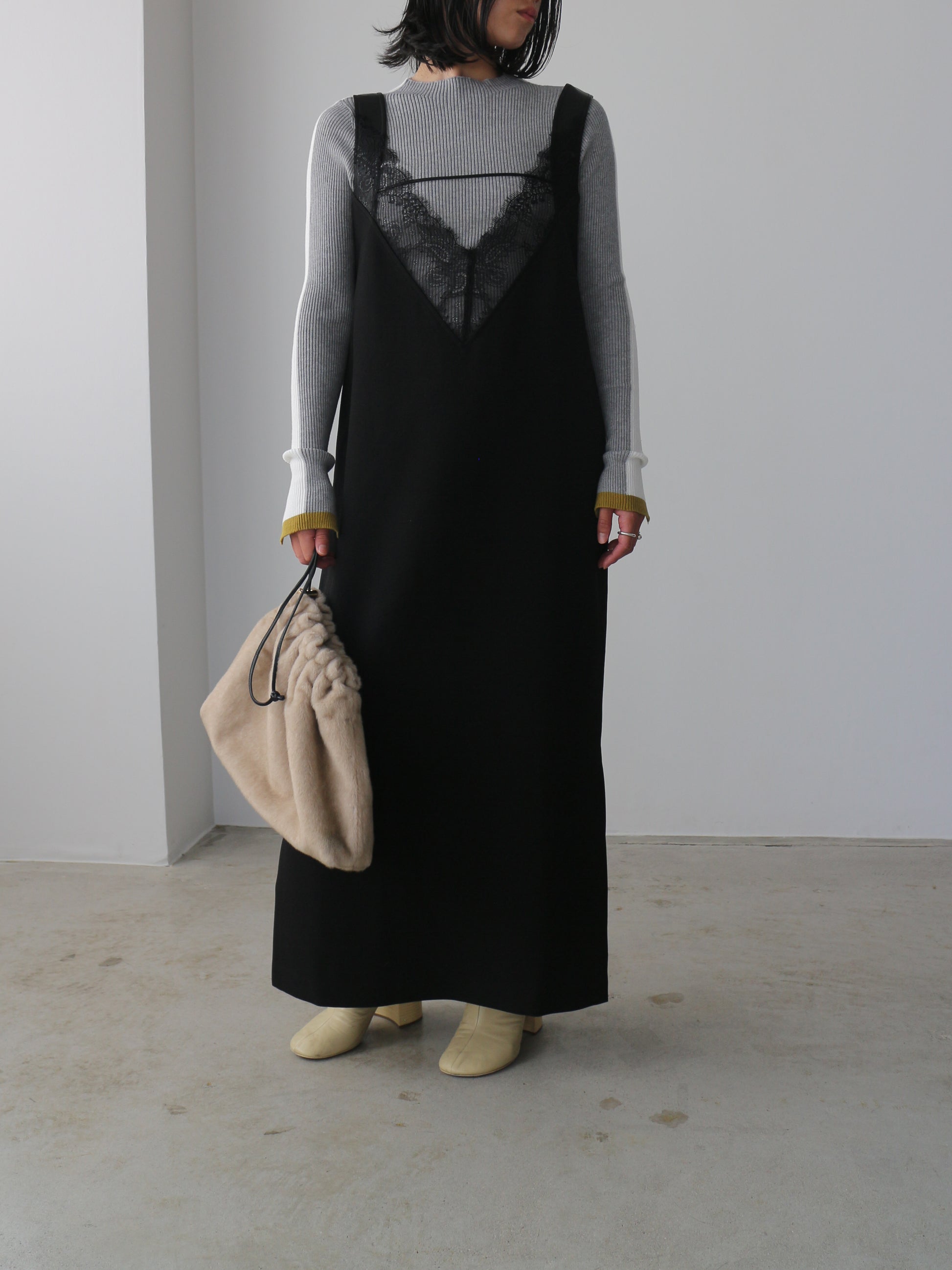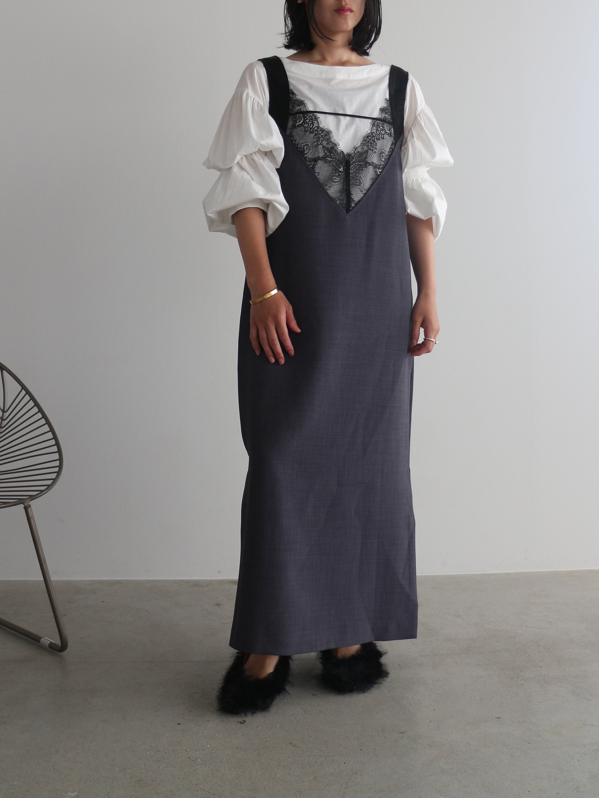 ネックラインはややスクエアなすっきりとしたラインと、ランジェリー風のレースをあしらった