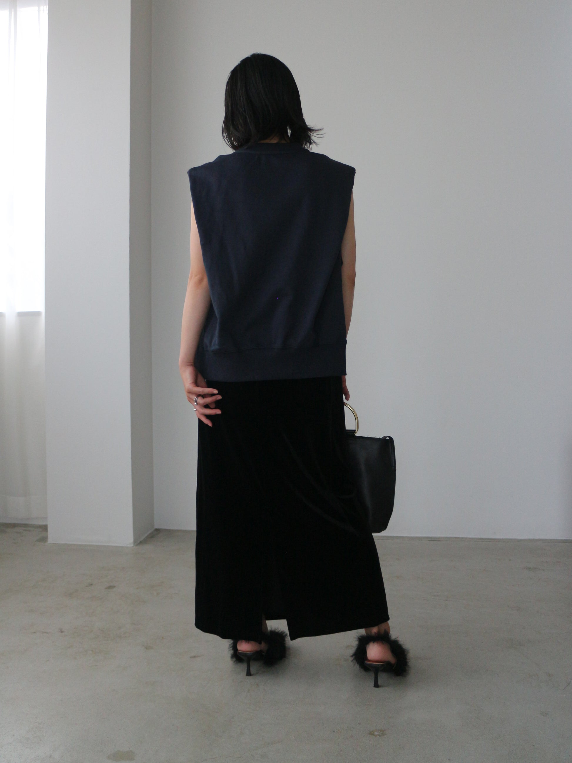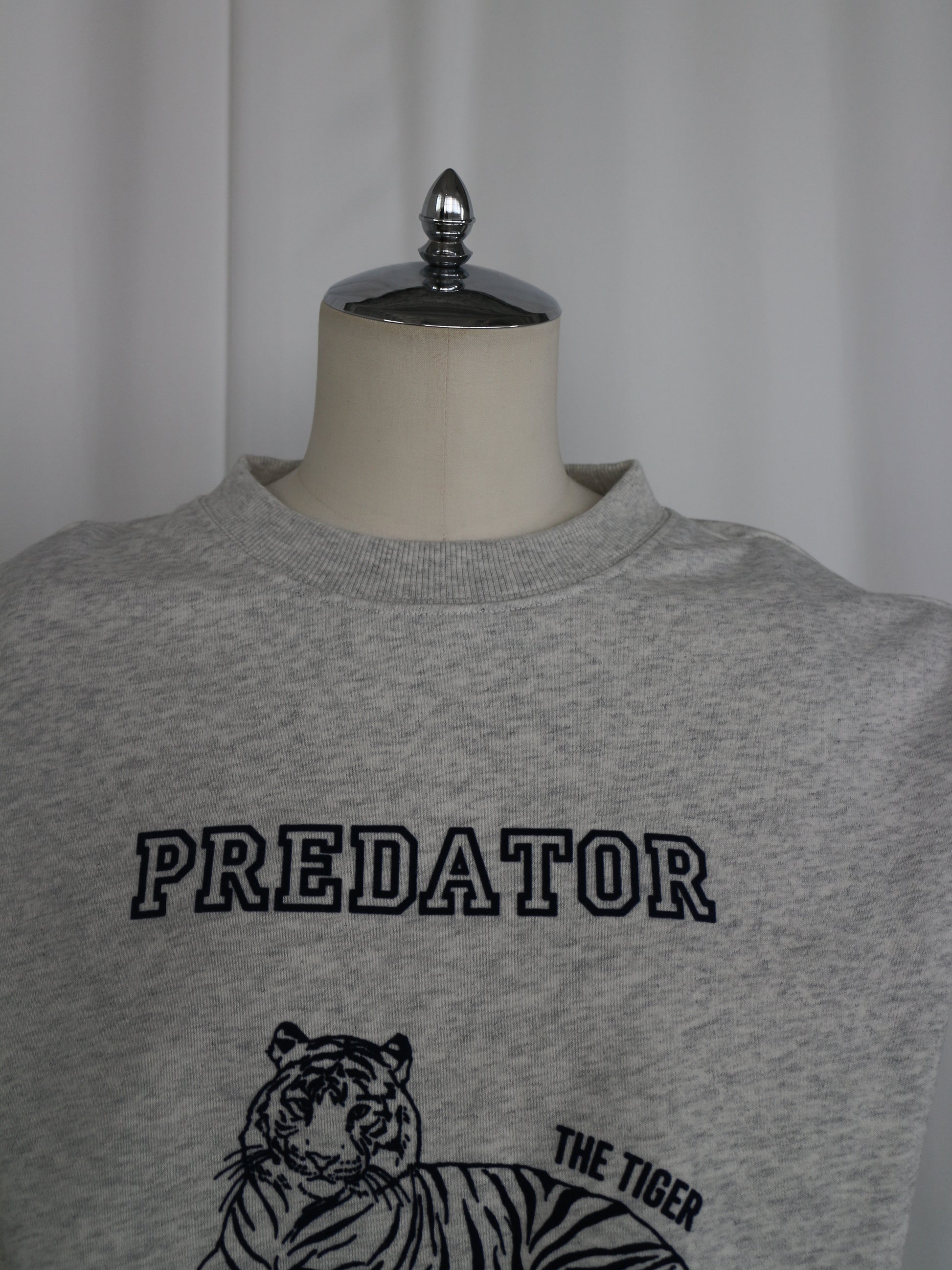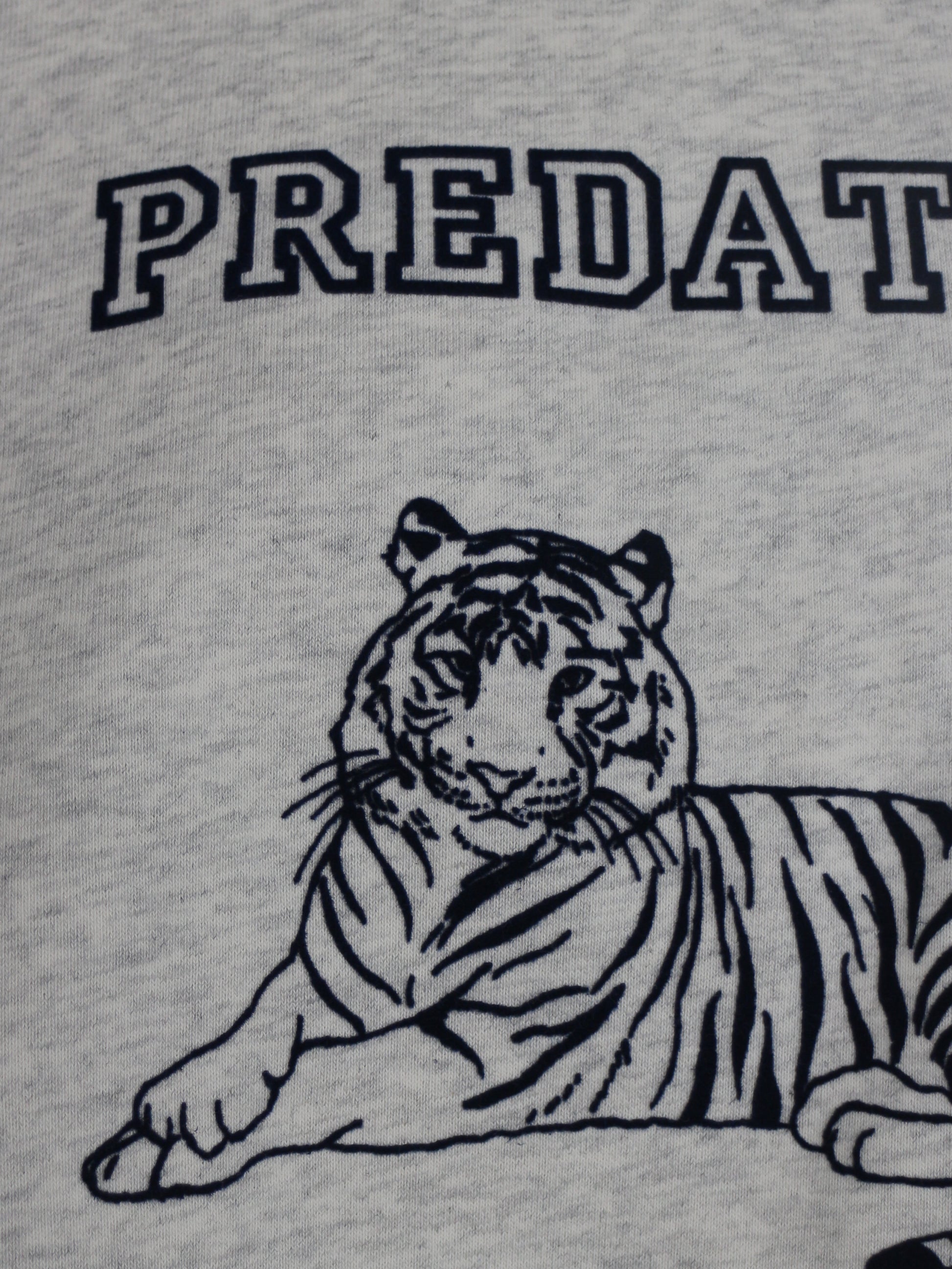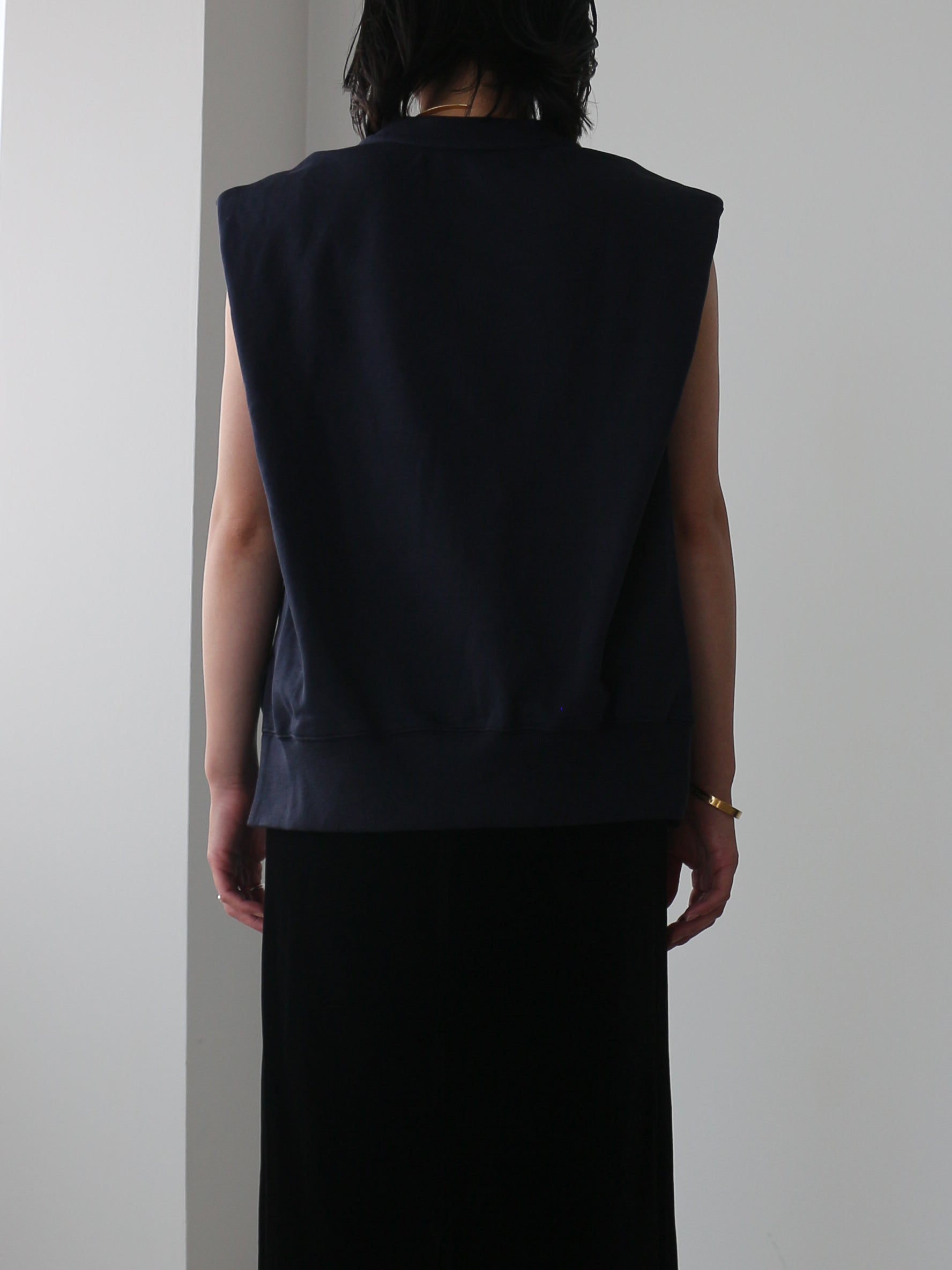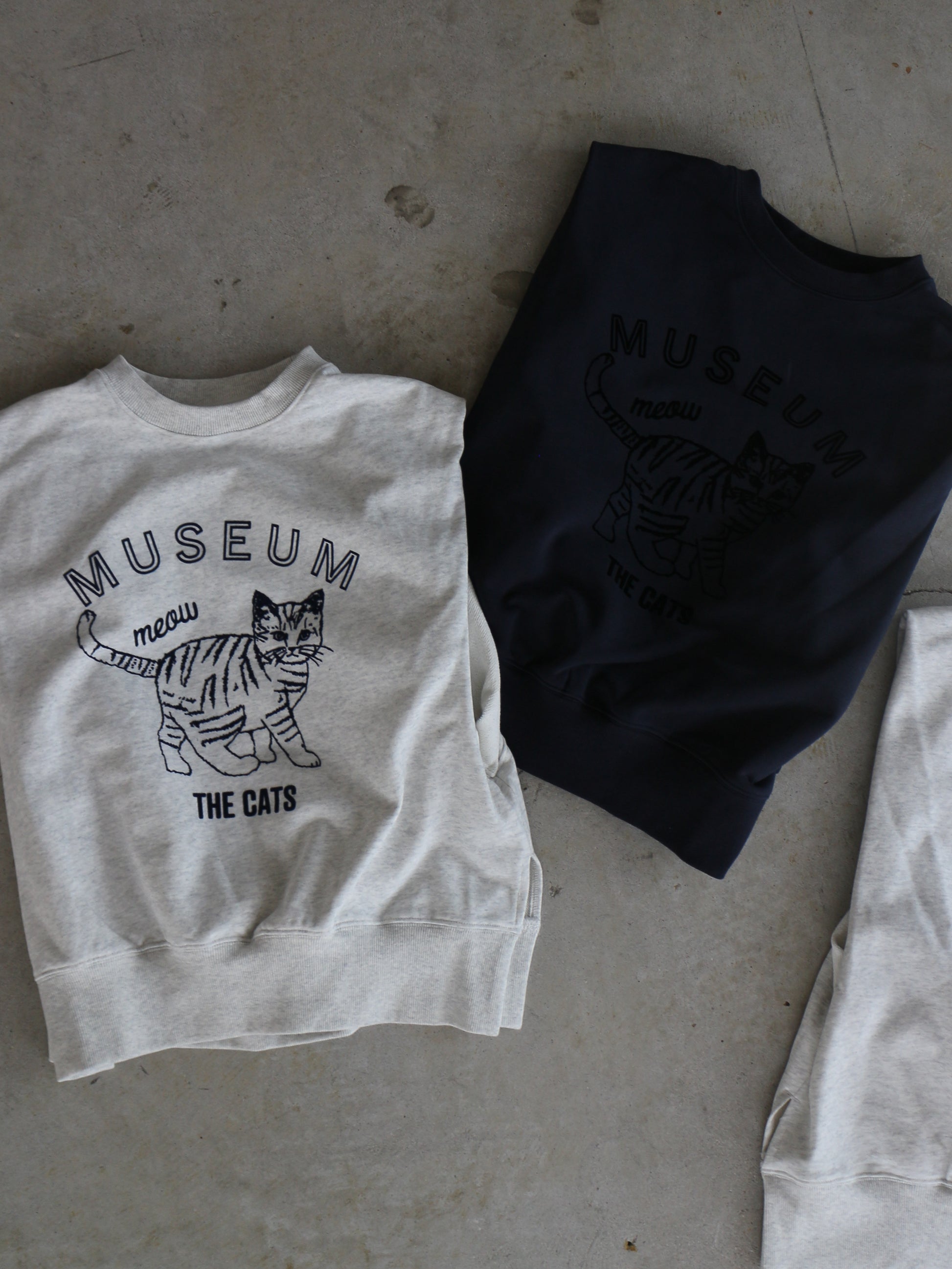 ハリのある裏毛にフロッキープリントのネコ&トラが映えるノースリーブプルオーバー。