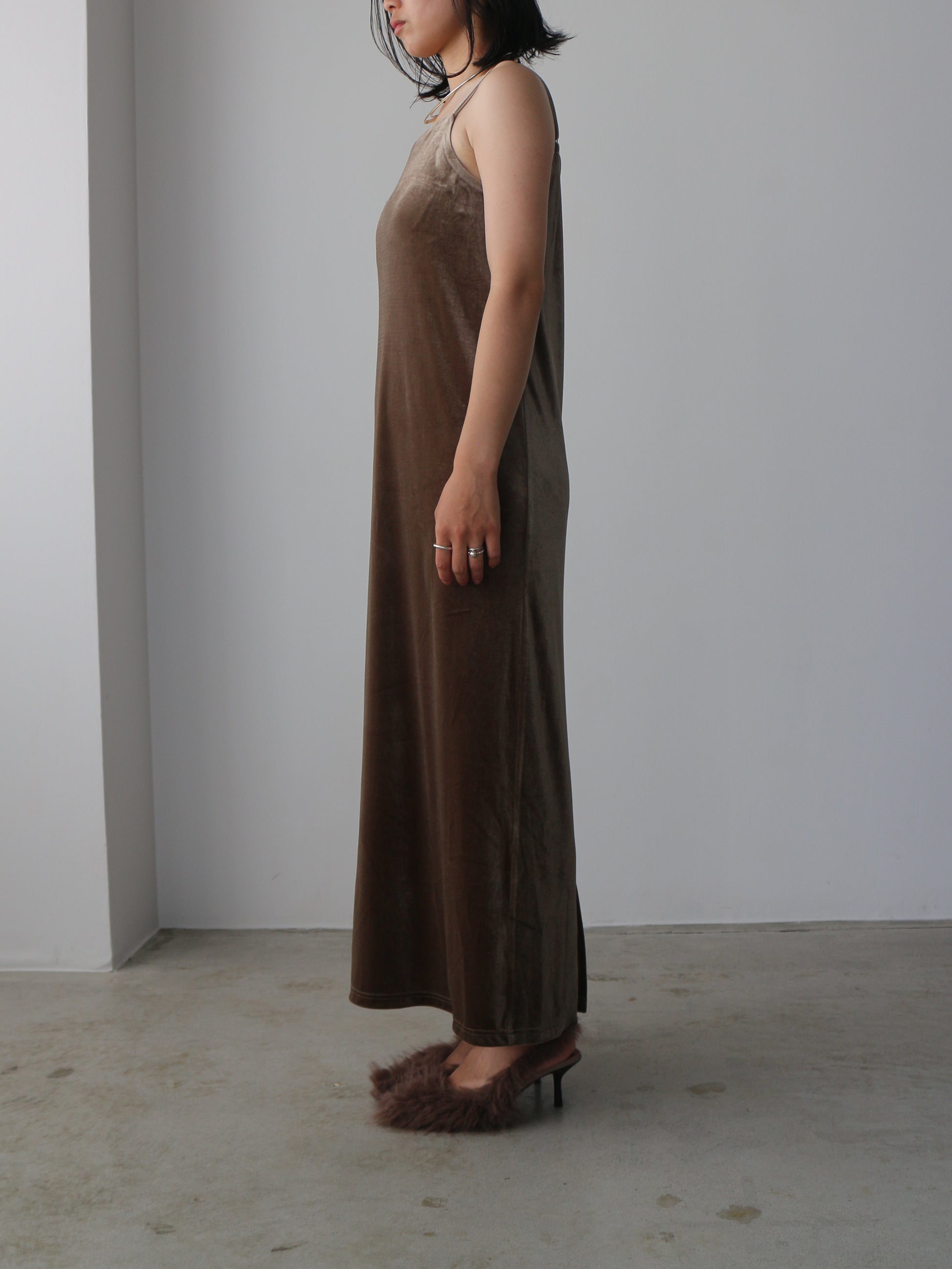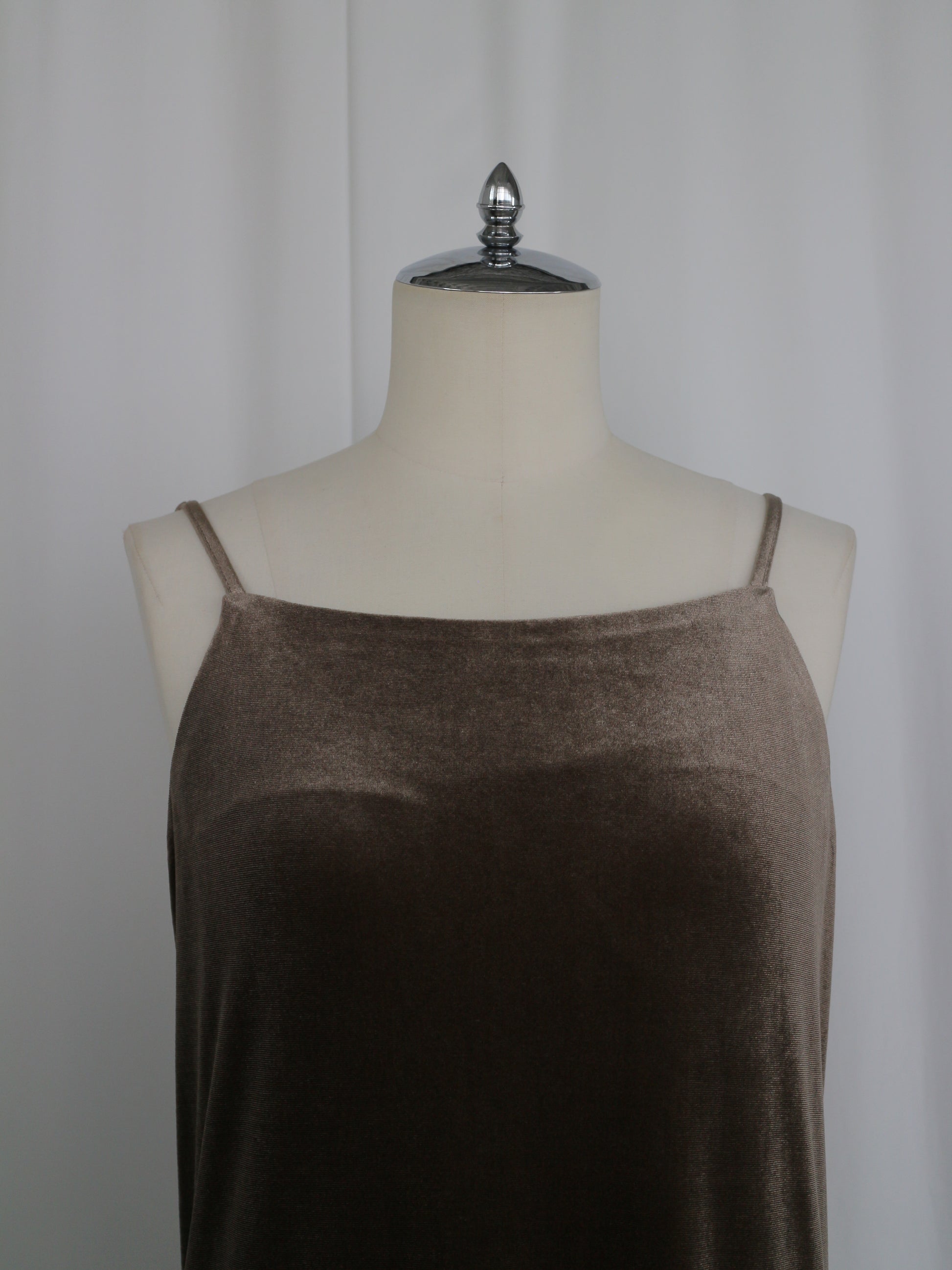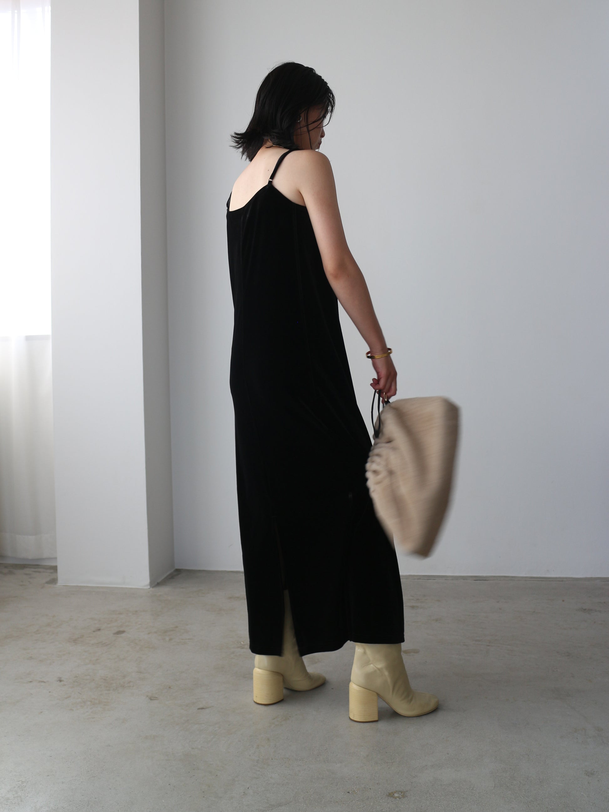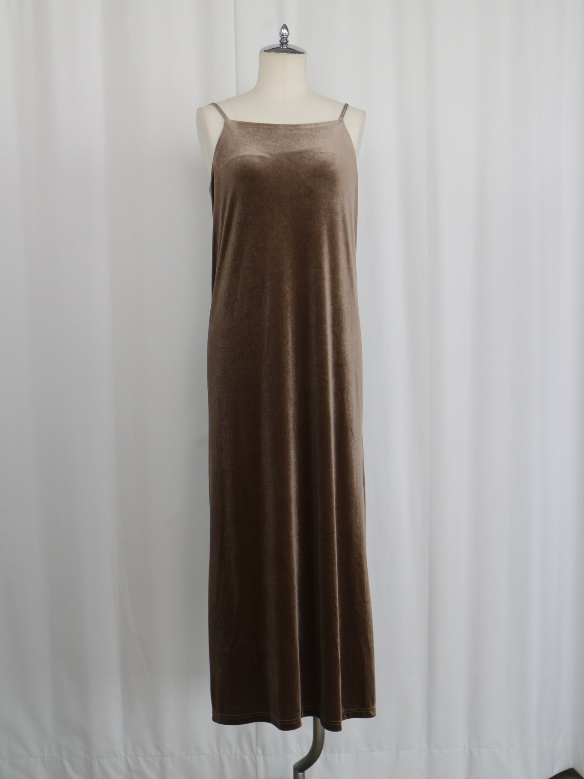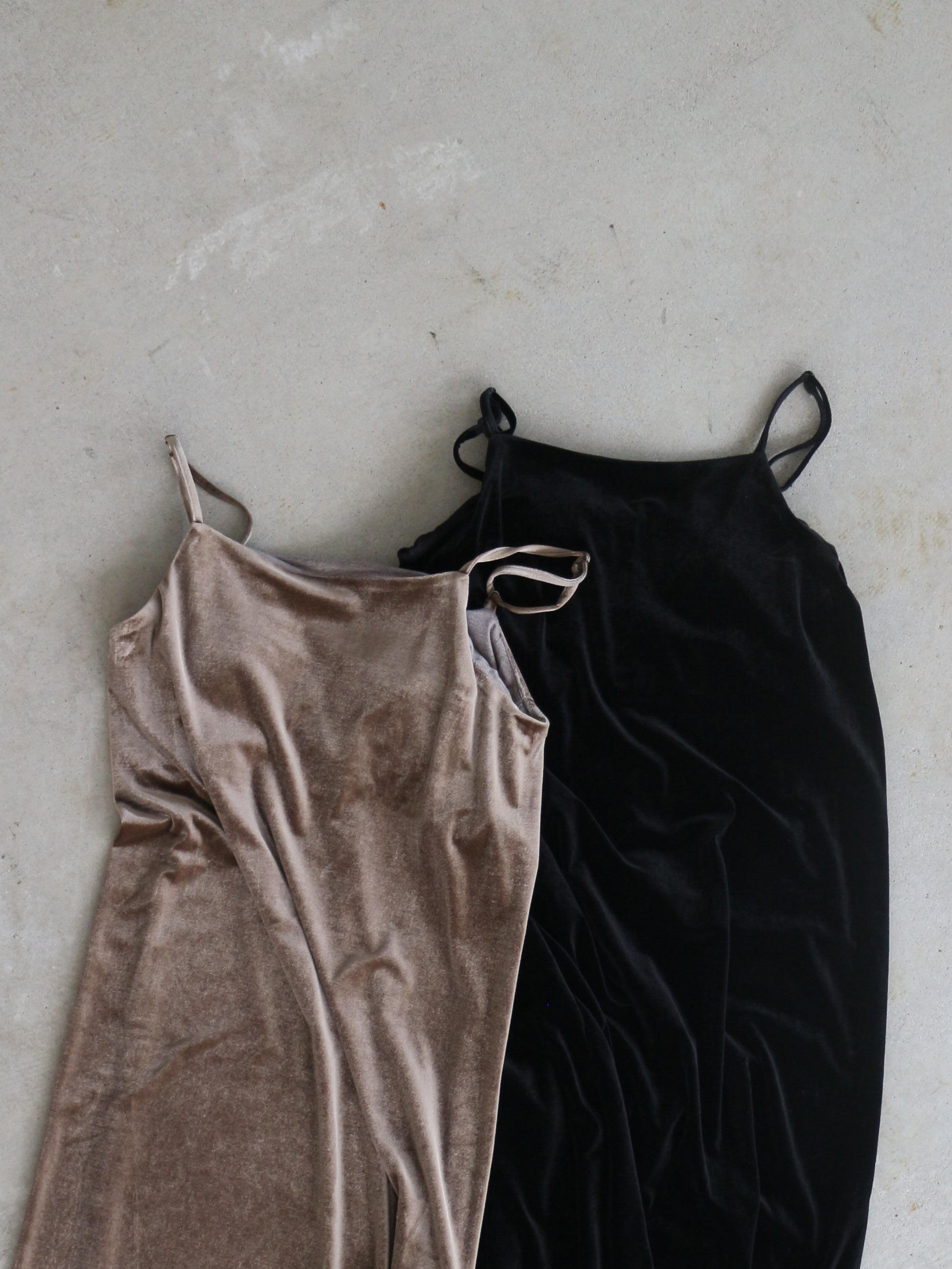 シーズンレスで着用できるベロア素材のカップ付きワンピース。