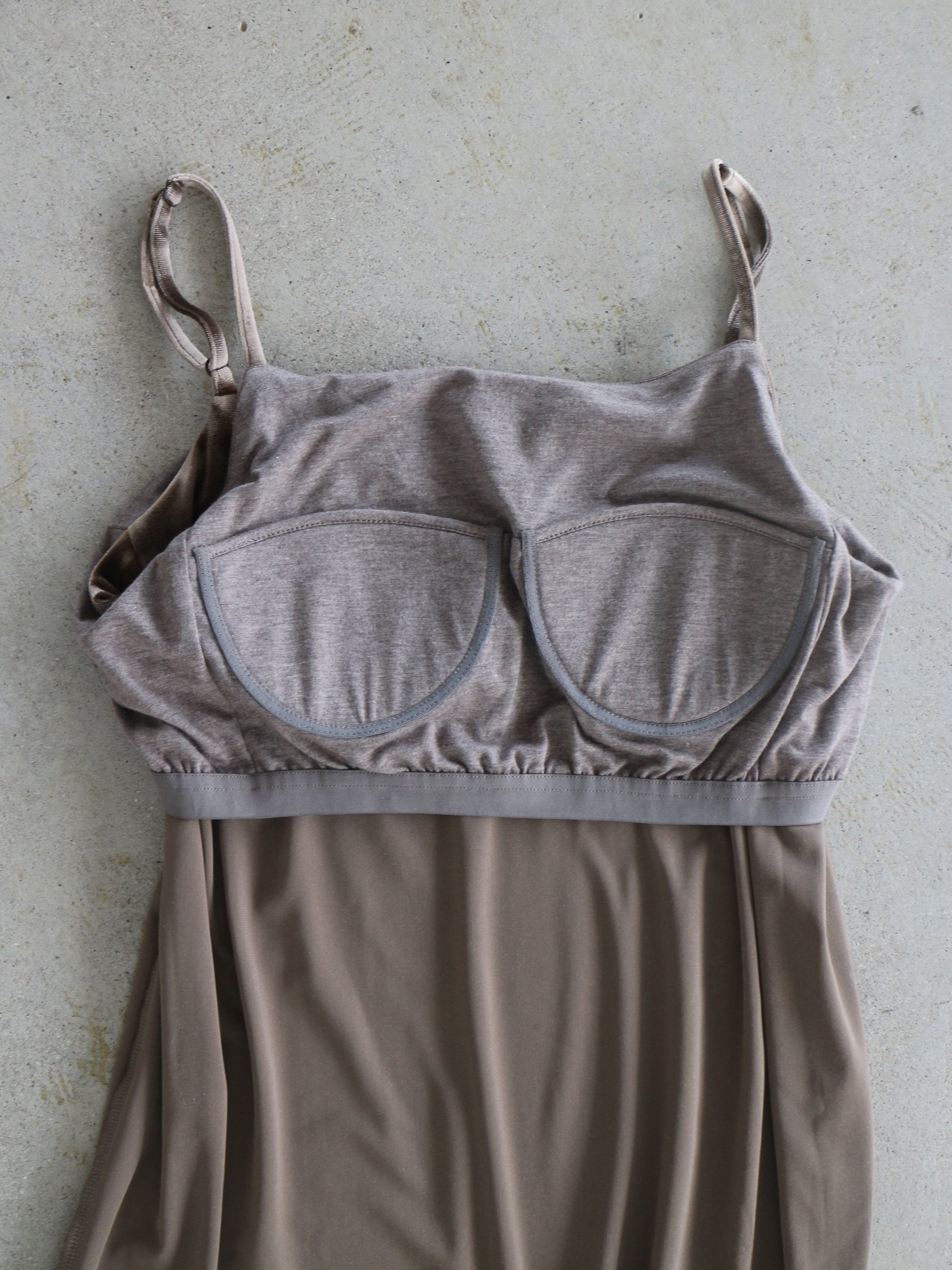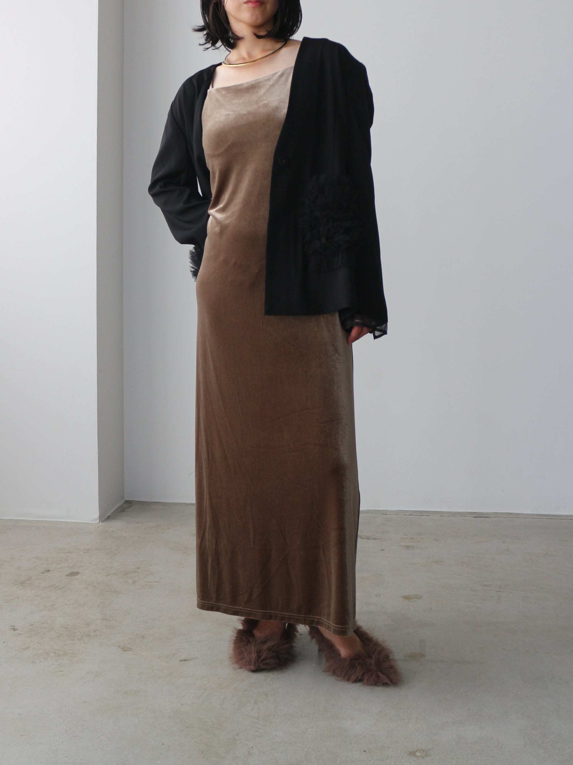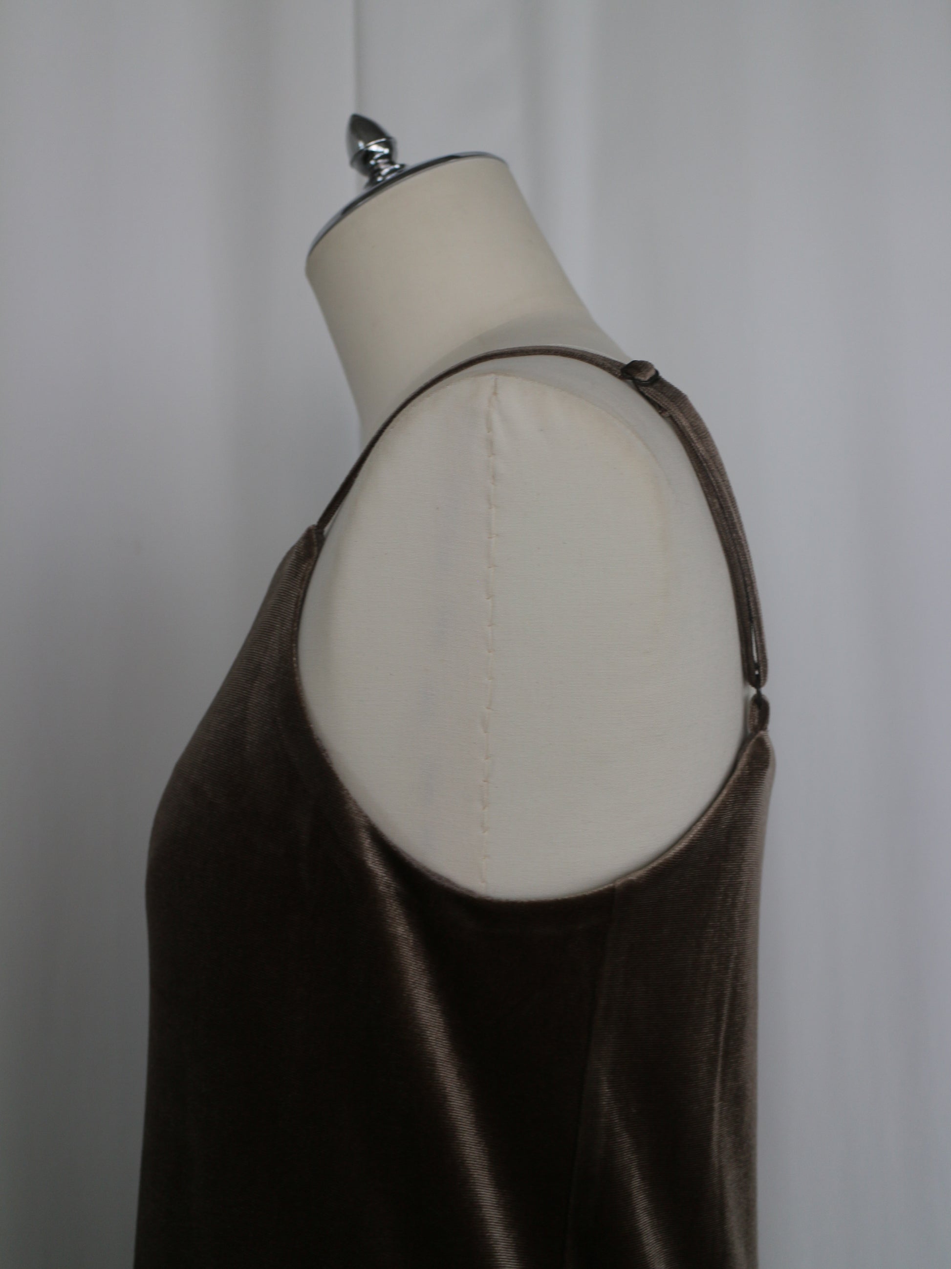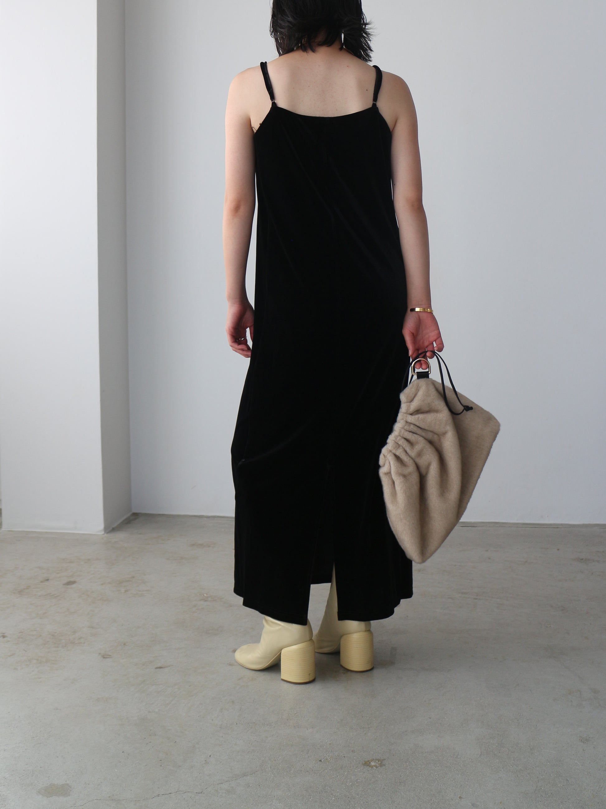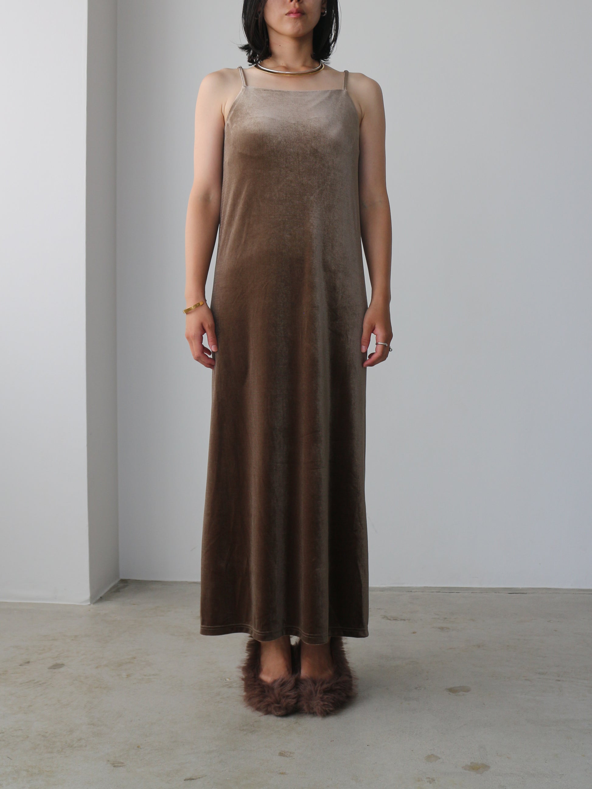 シーズンレスで着用できるベロア素材のカップ付きワンピース。