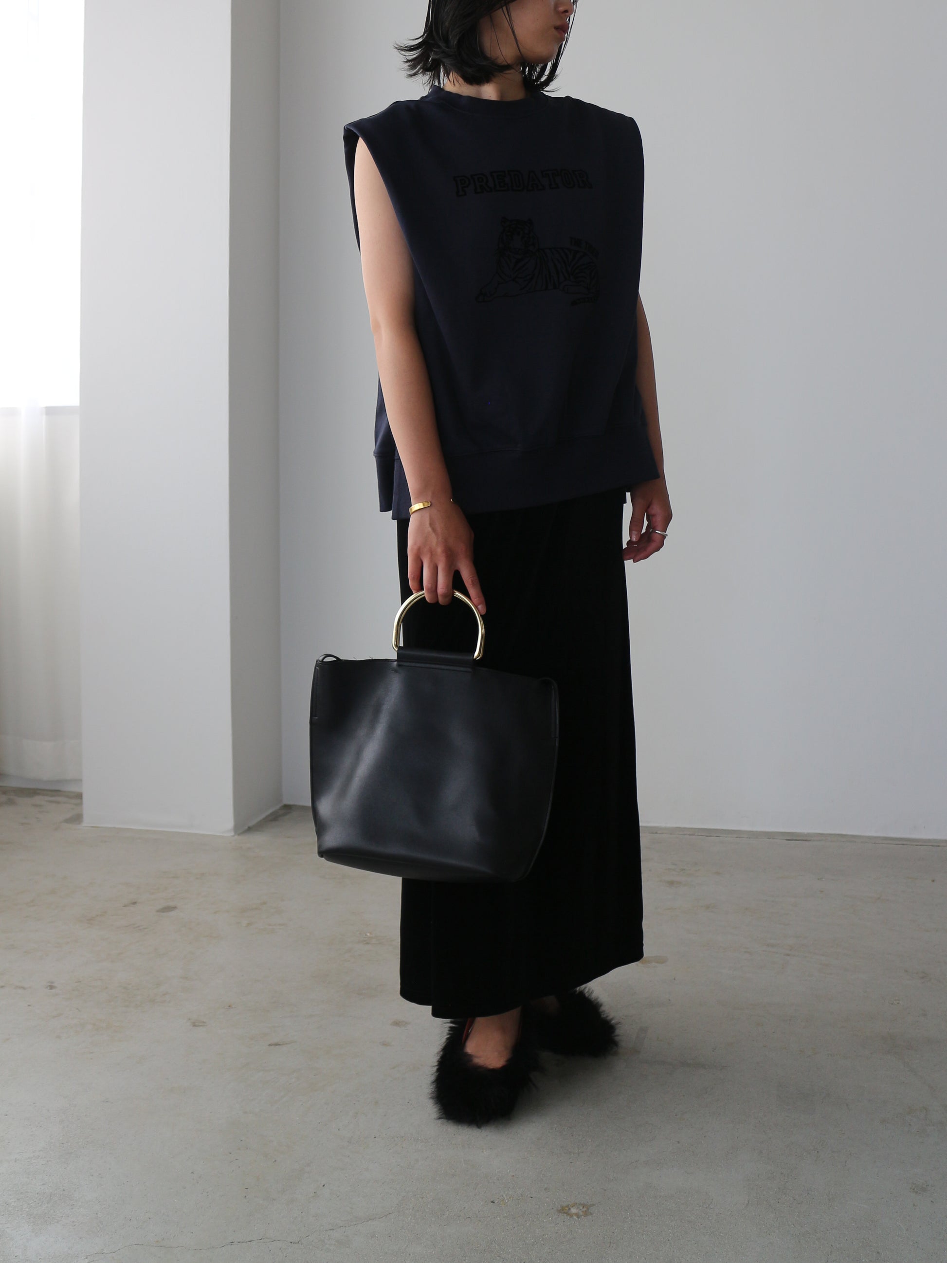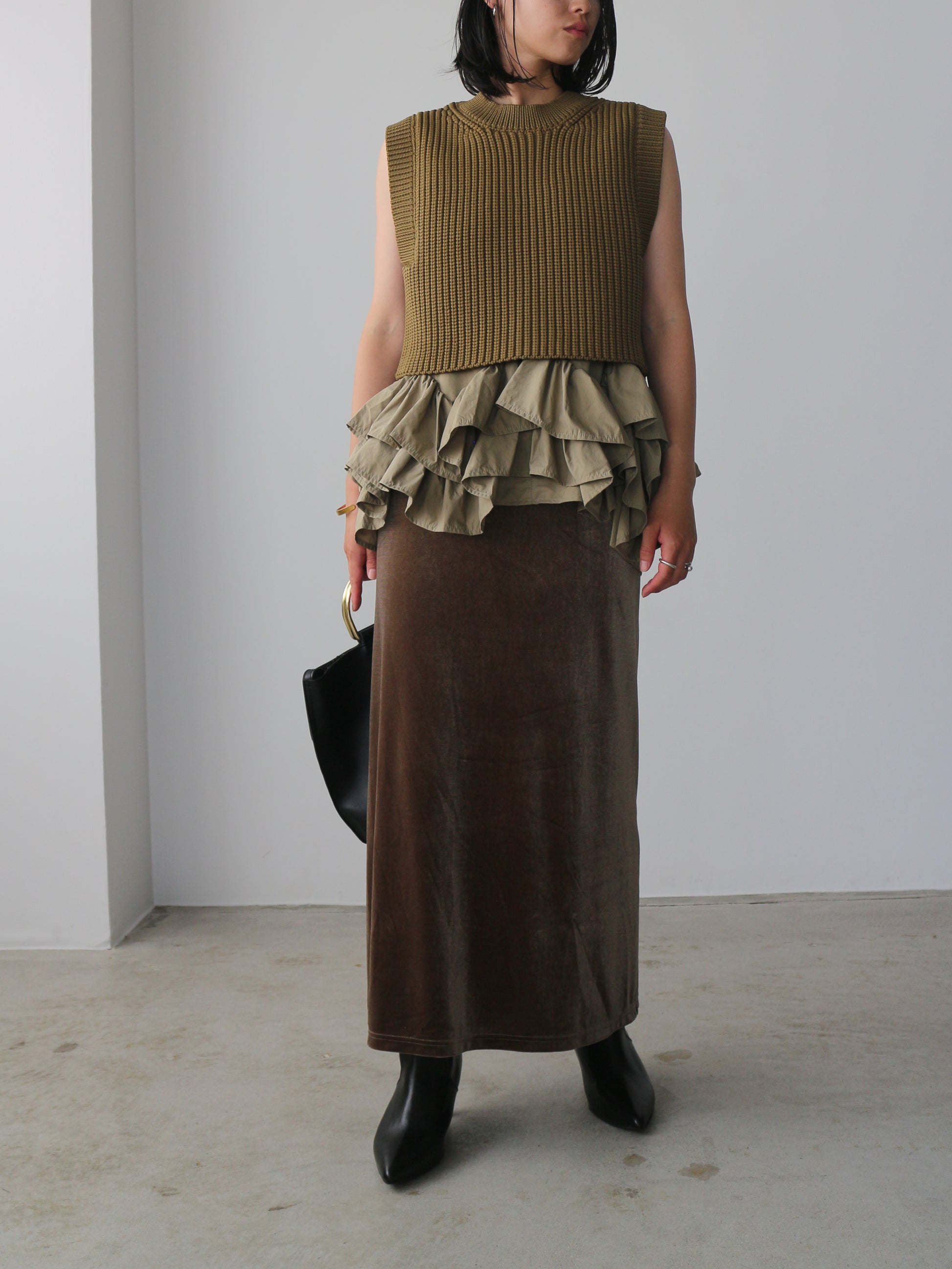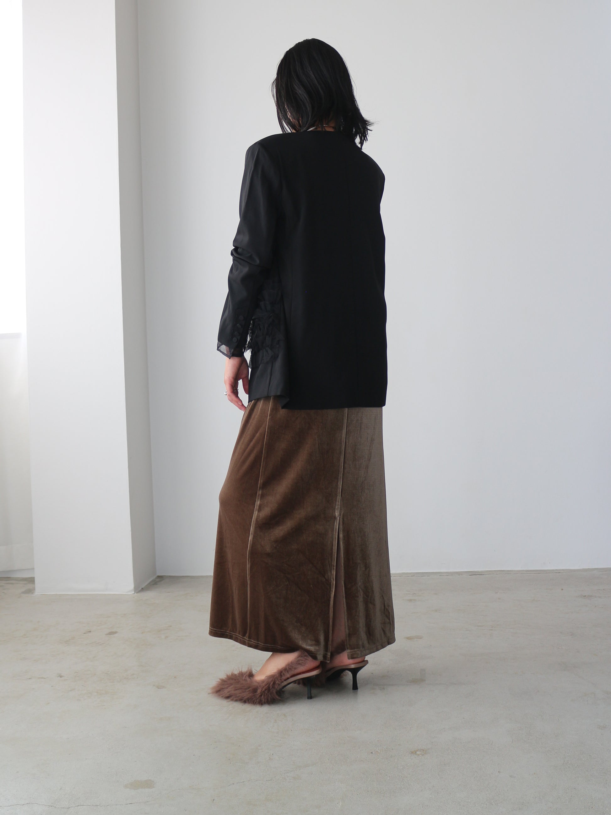 薄手のベロア素材なのでドレッシーになりすぎず、カジュアルに着用できます。
