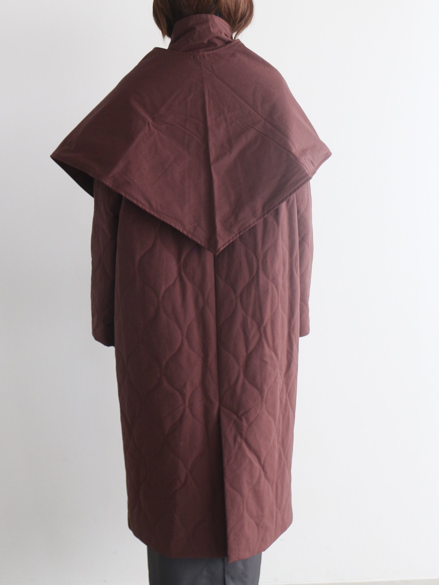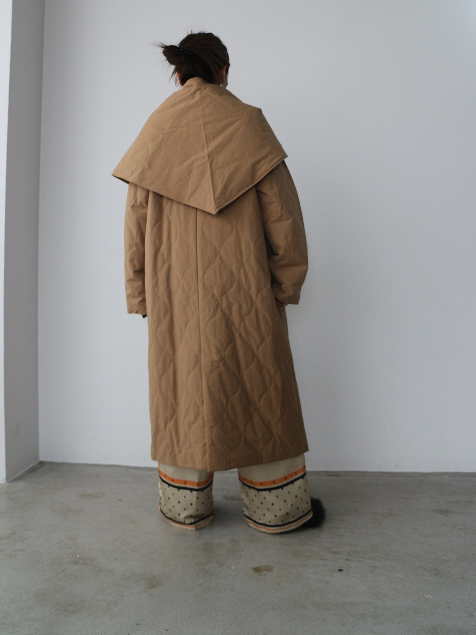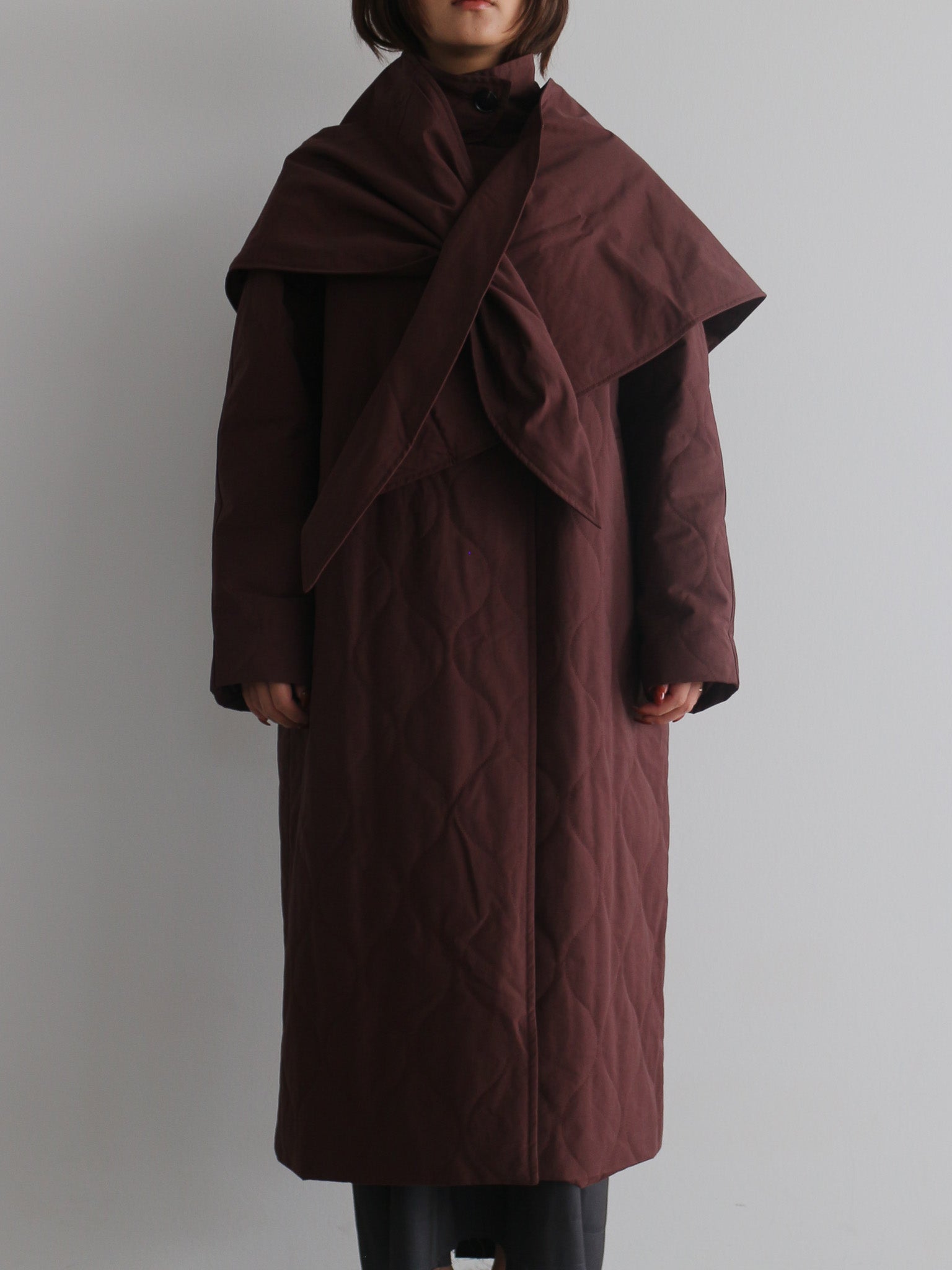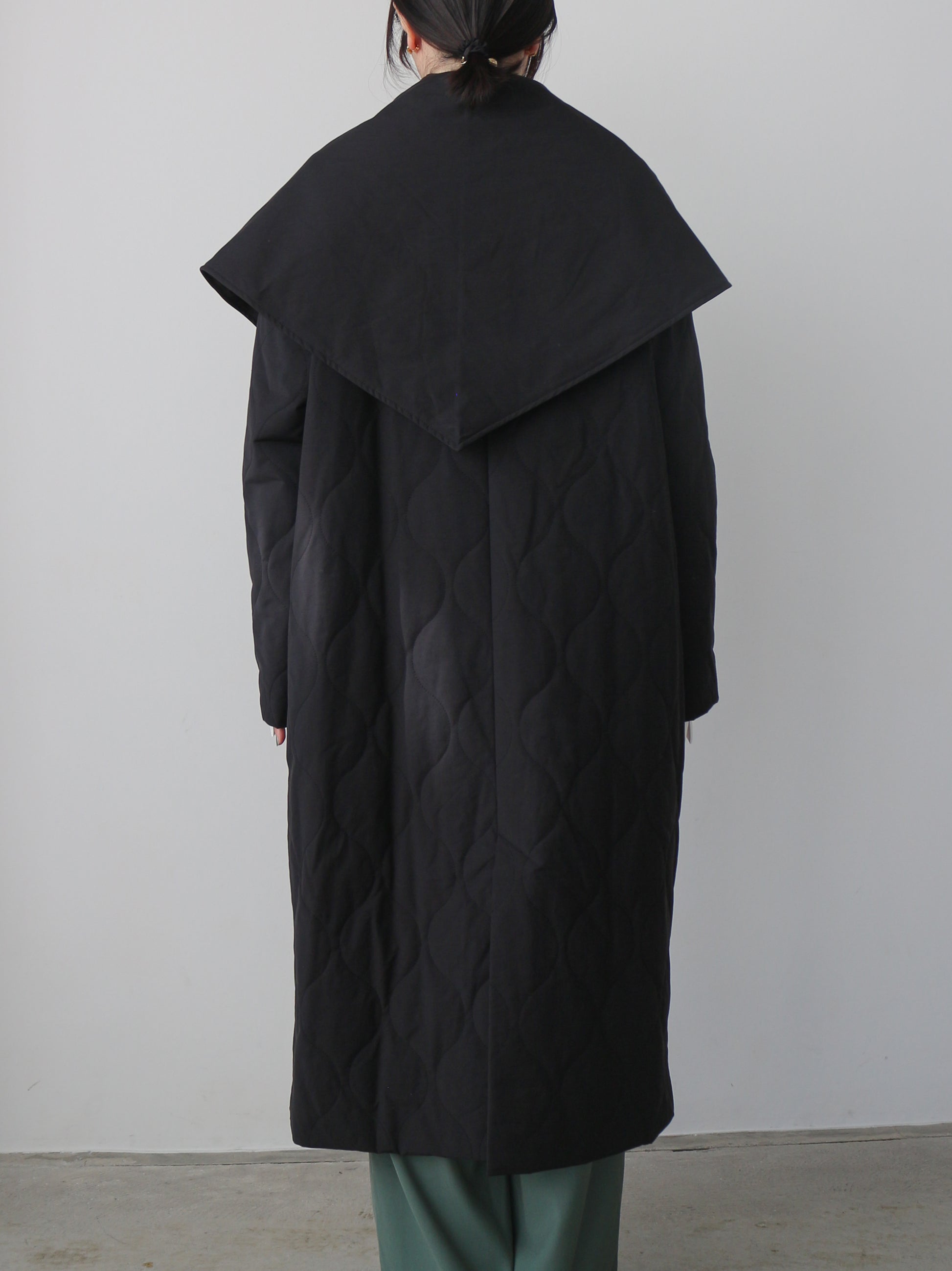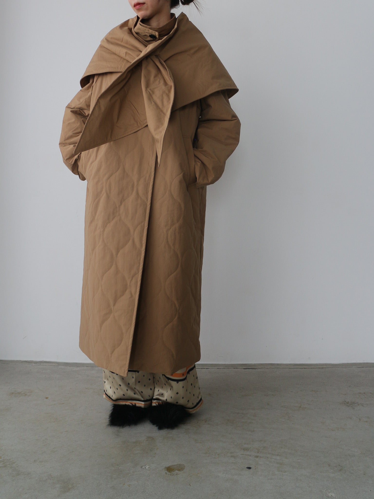 ウインターシーズンに欠かせないキルティングコートに、同素材の大判ストールをセットした今年らしいデザイン。