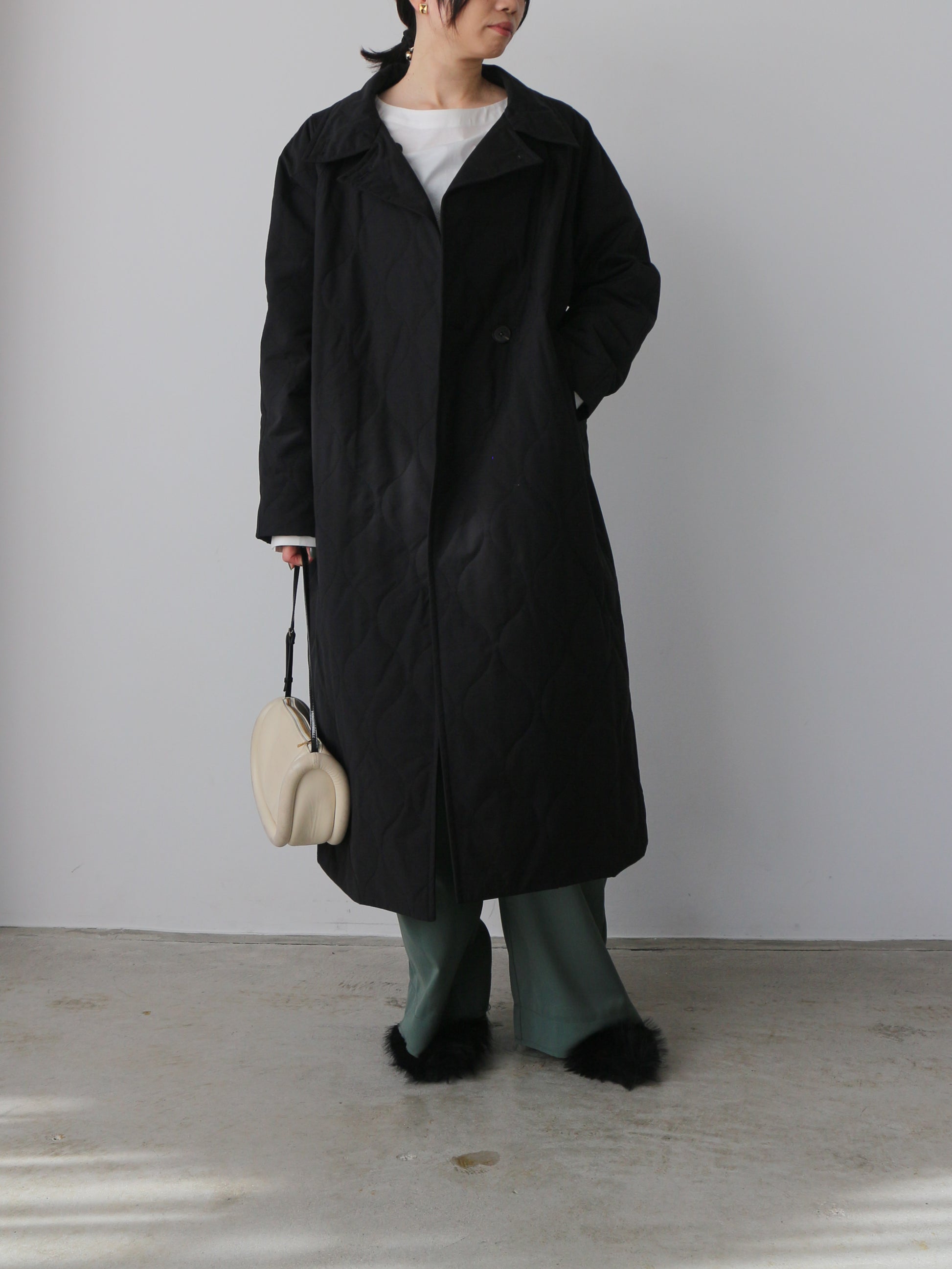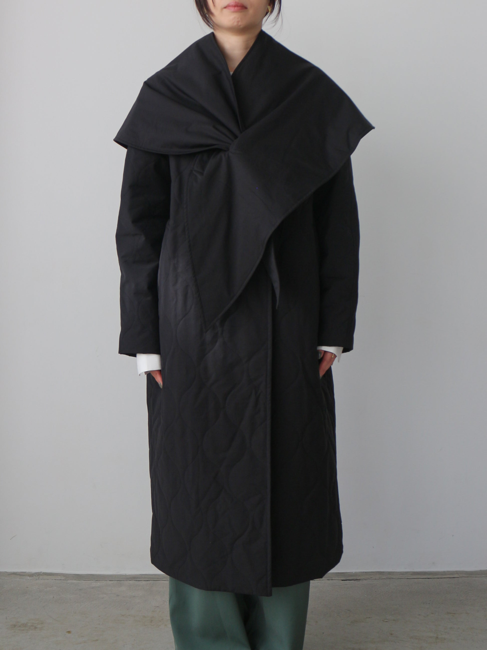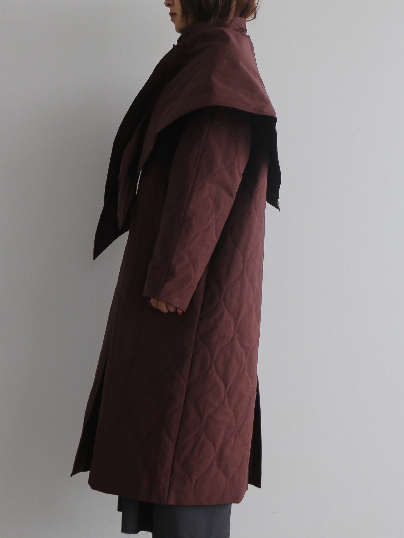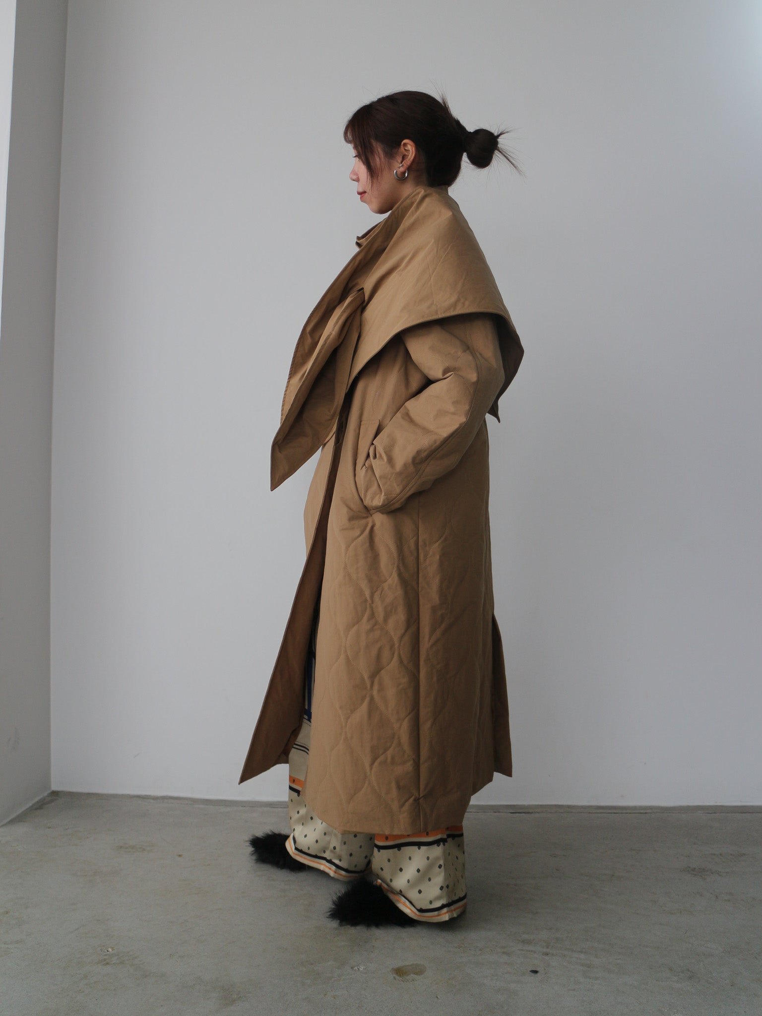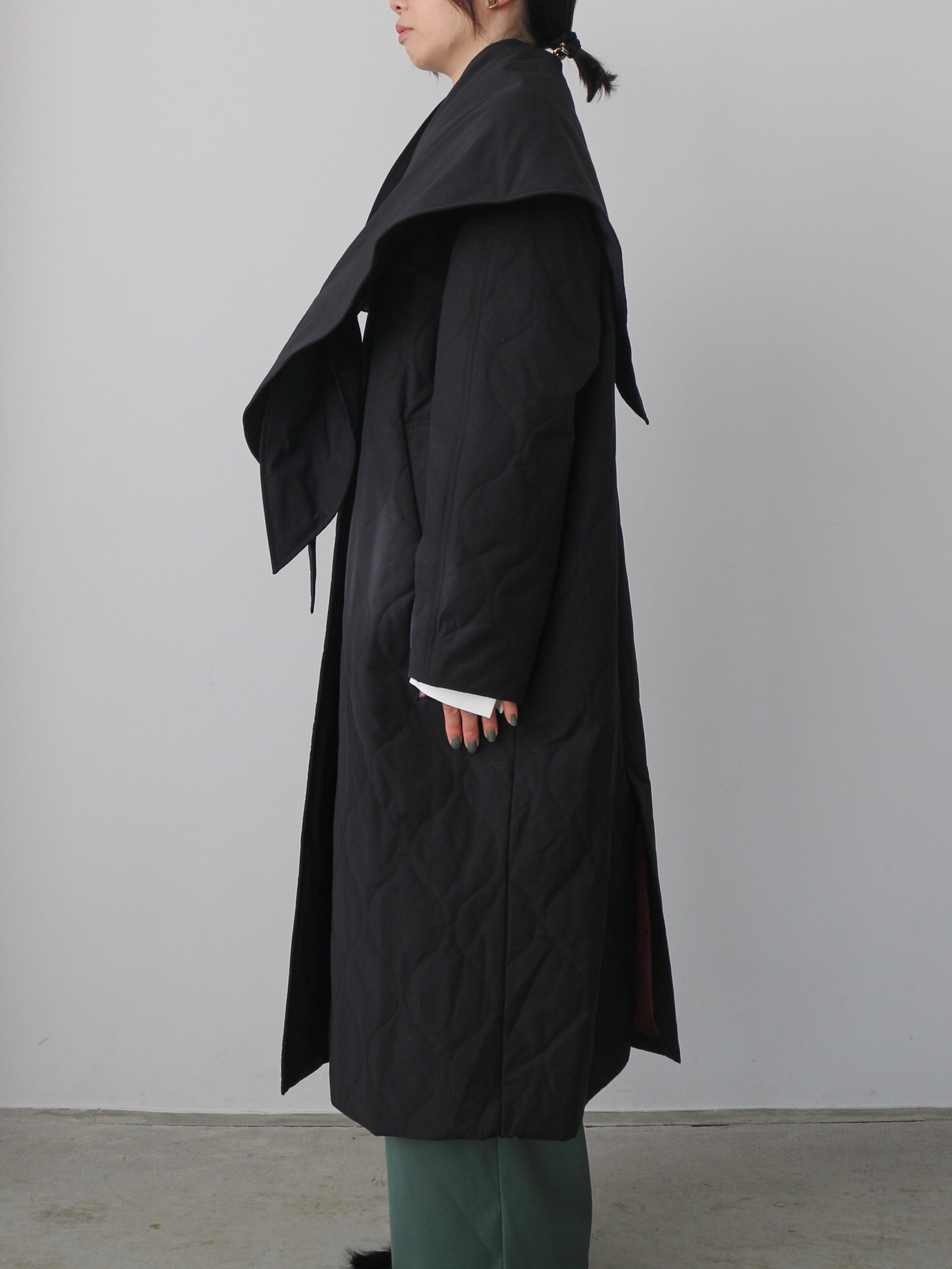ウインターシーズンに欠かせないキルティングコートに、同素材の大判ストールをセットした今年らしいデザイン。
