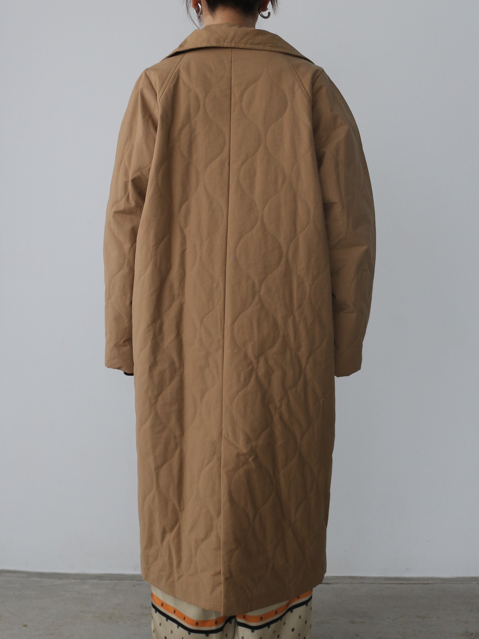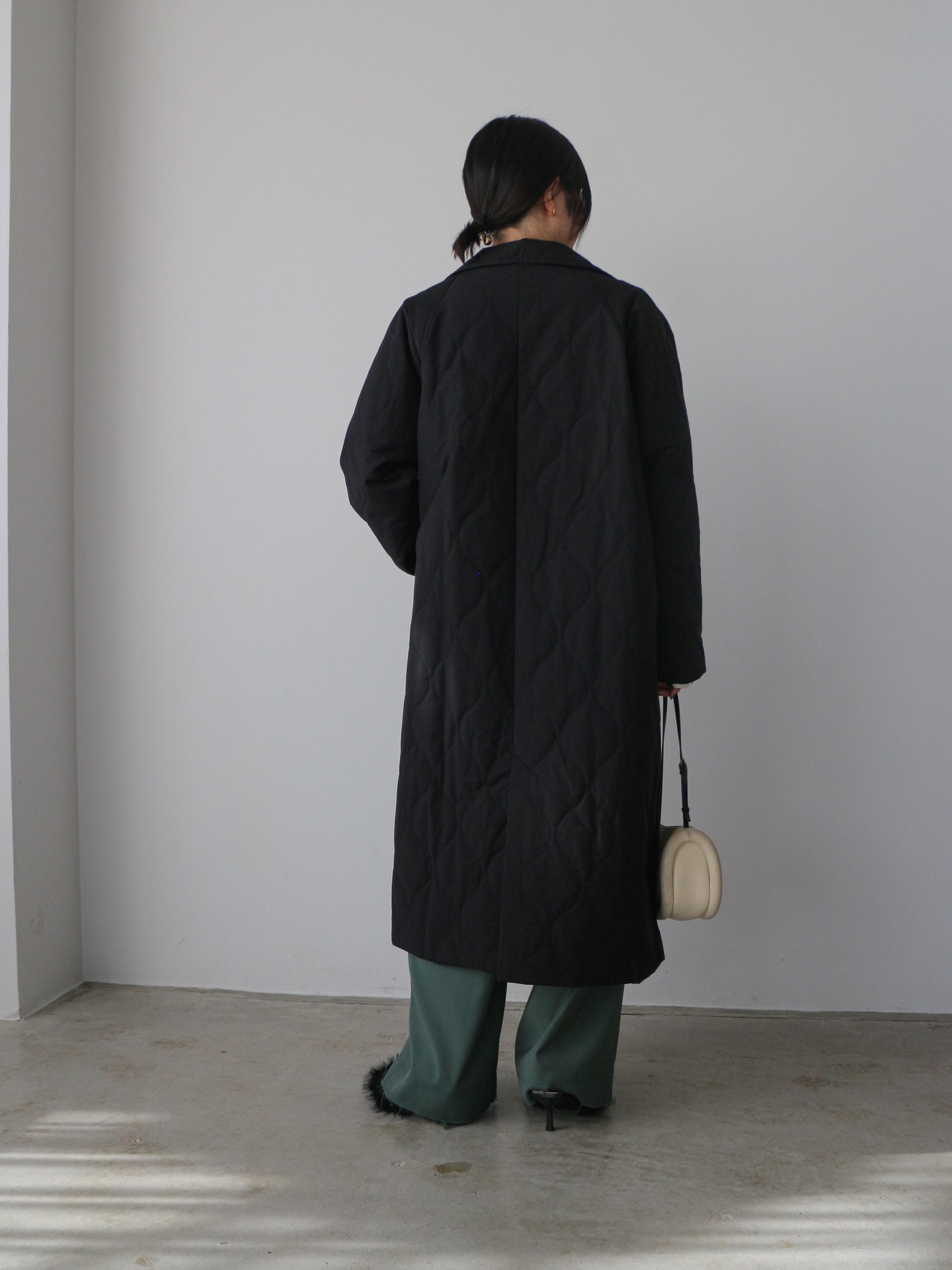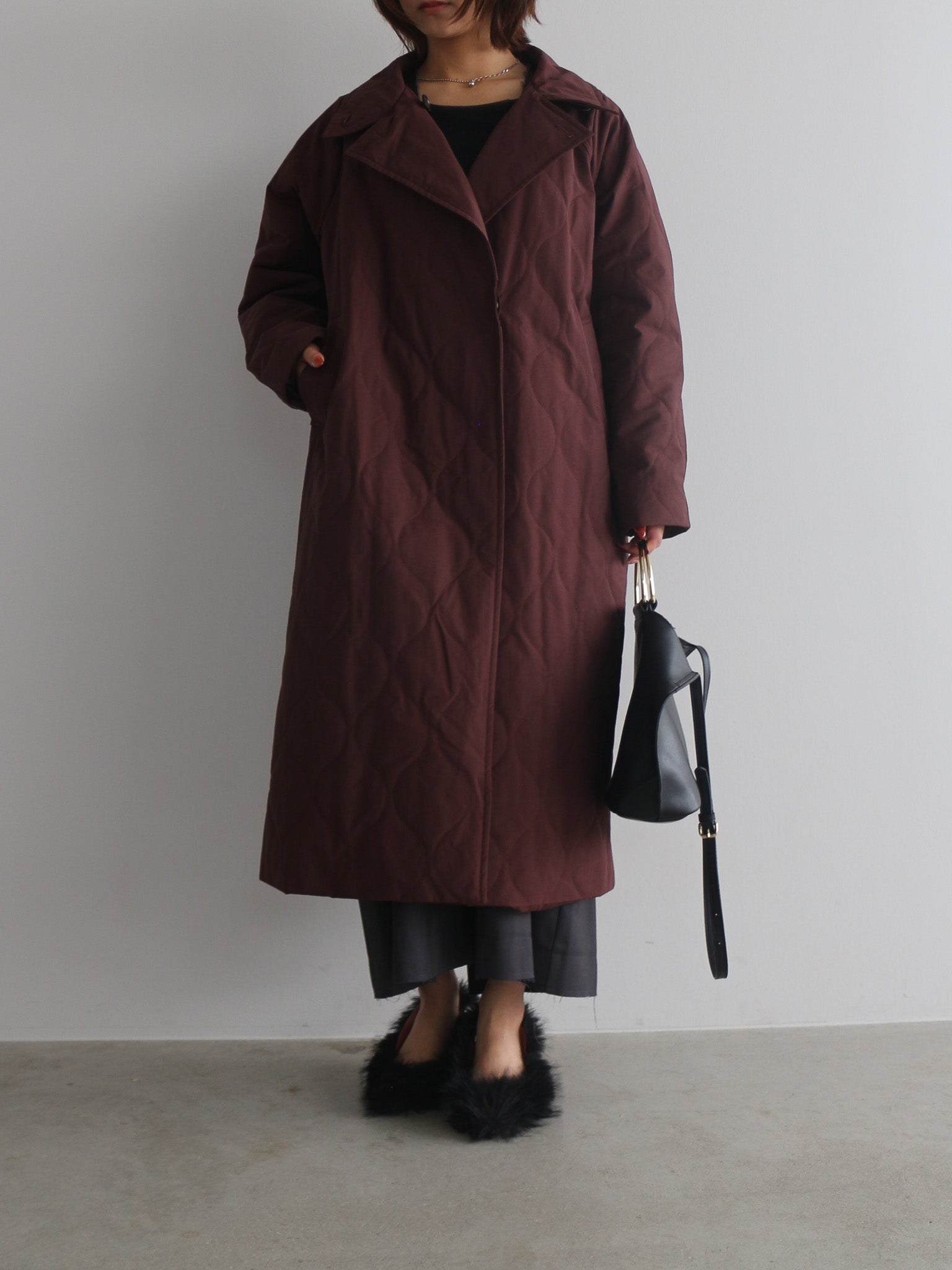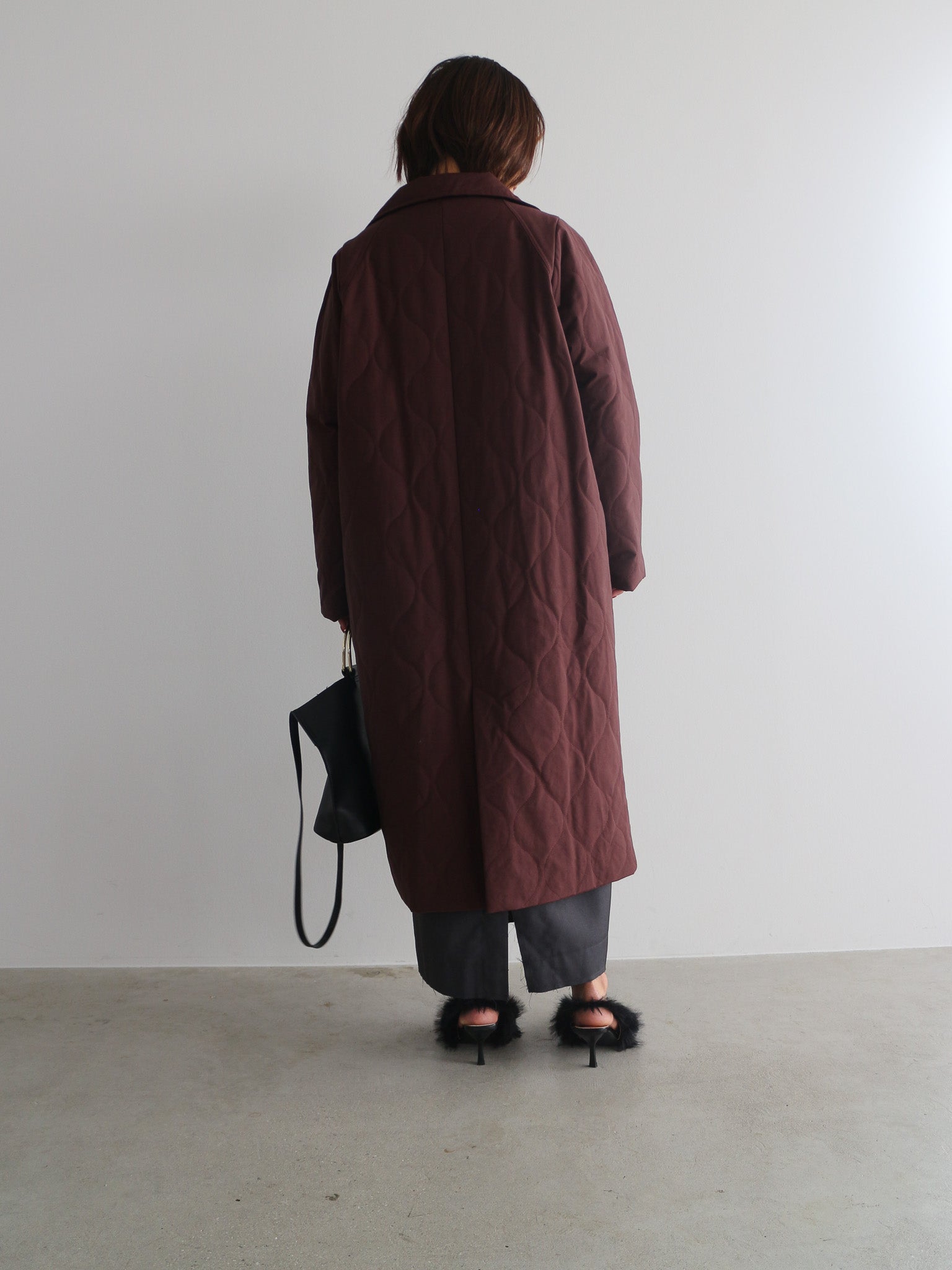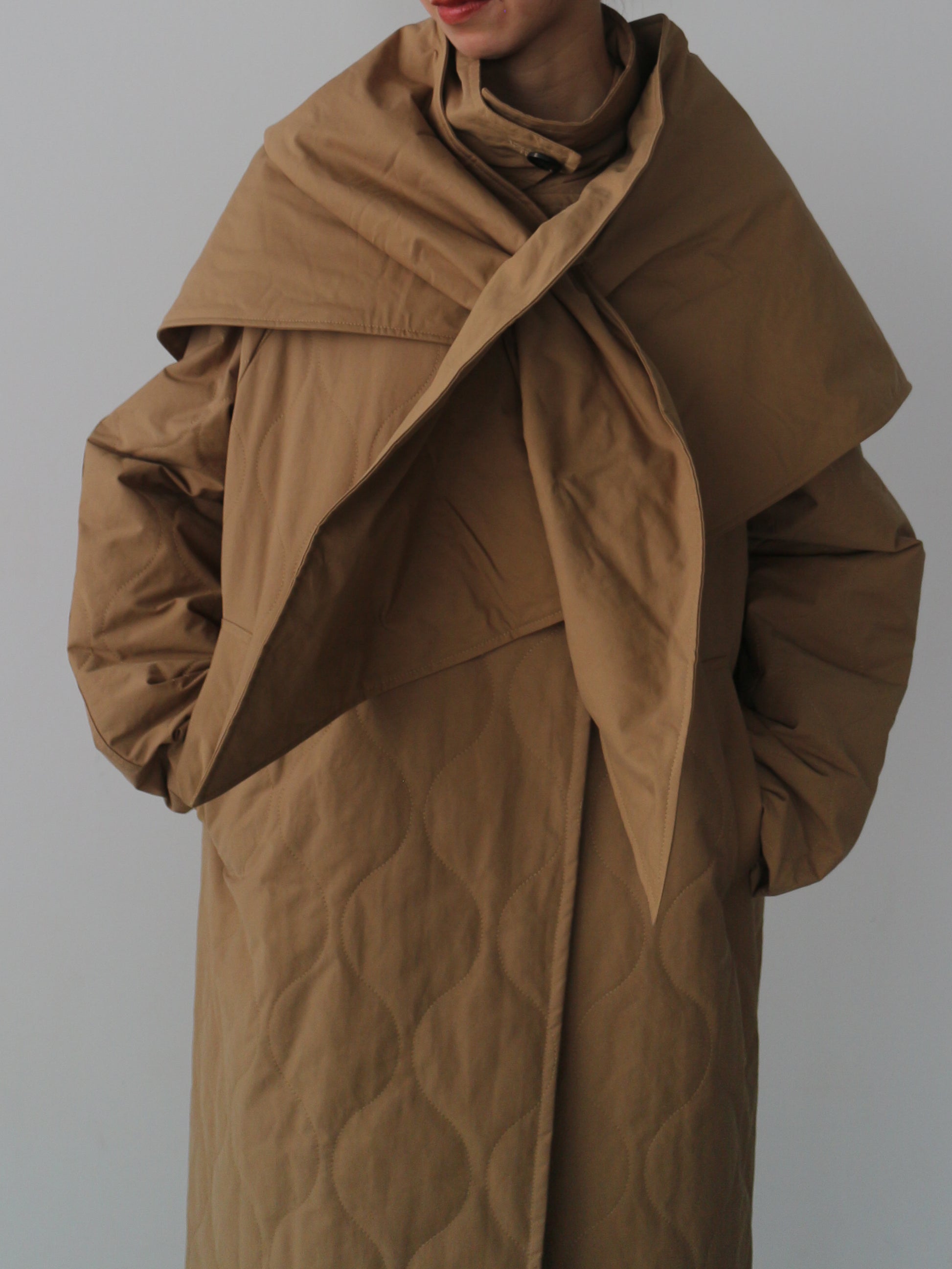 ウインターシーズンに欠かせないキルティングコートに、同素材の大判ストールをセットした今年らしいデザイン。
