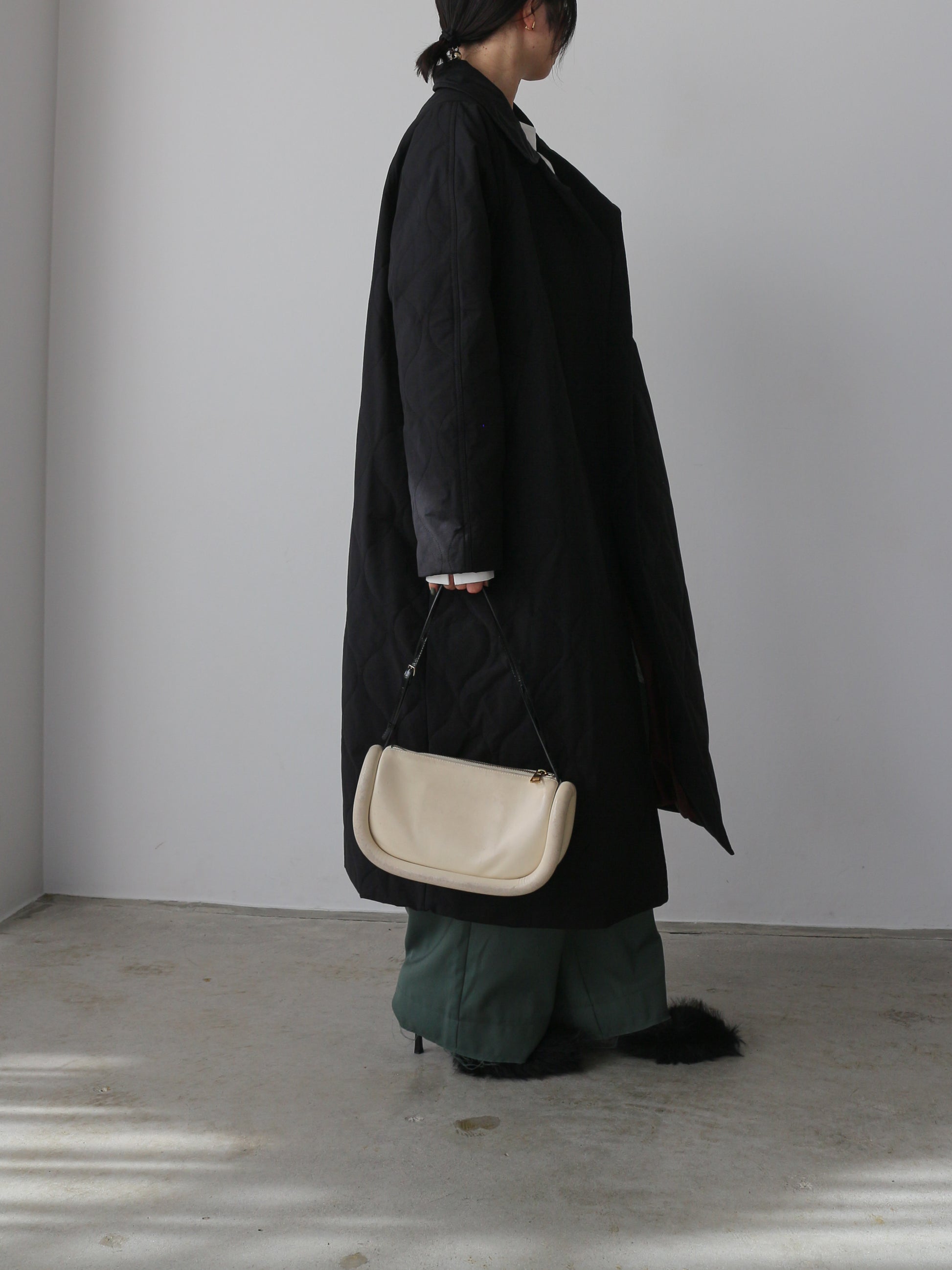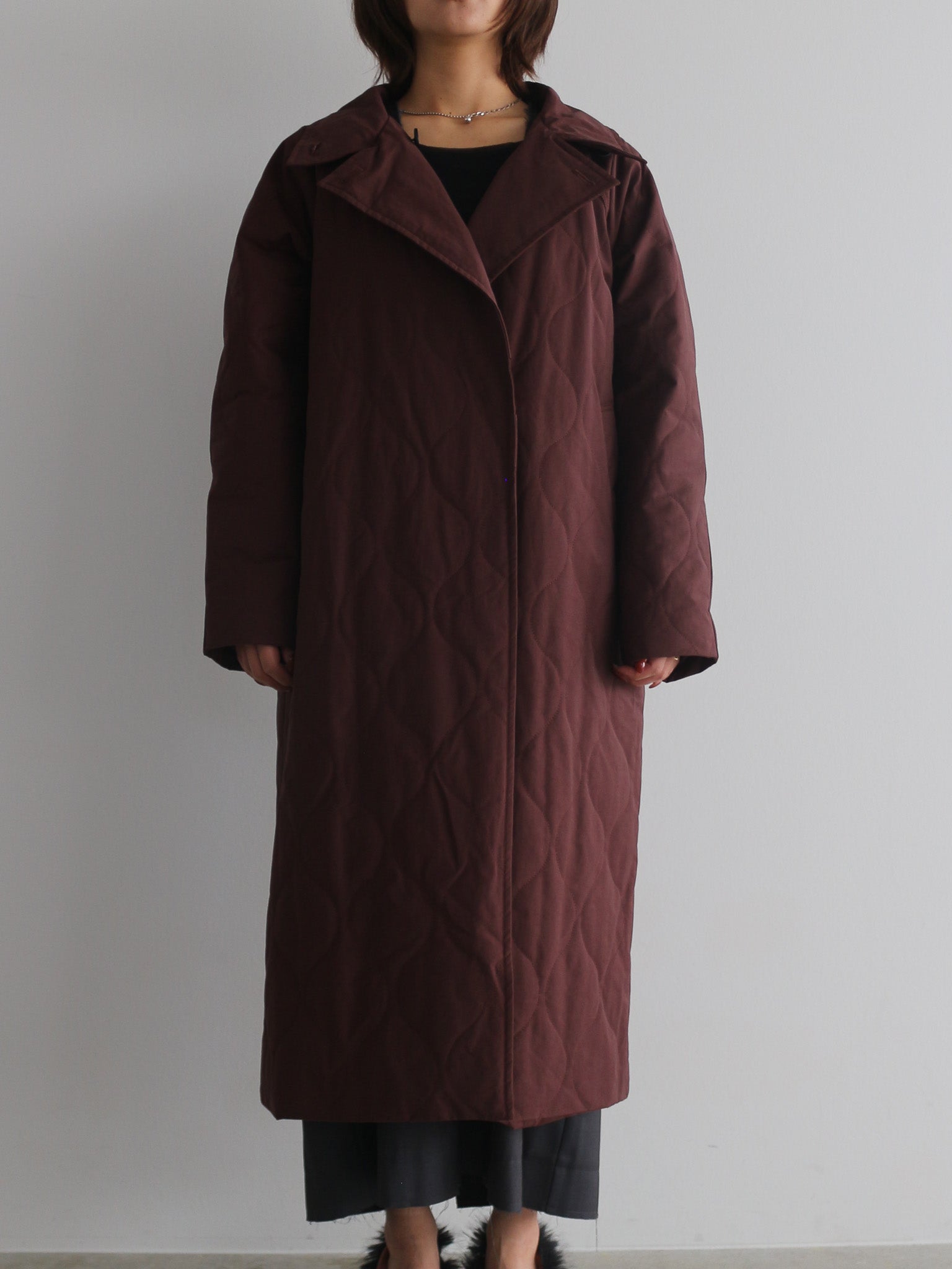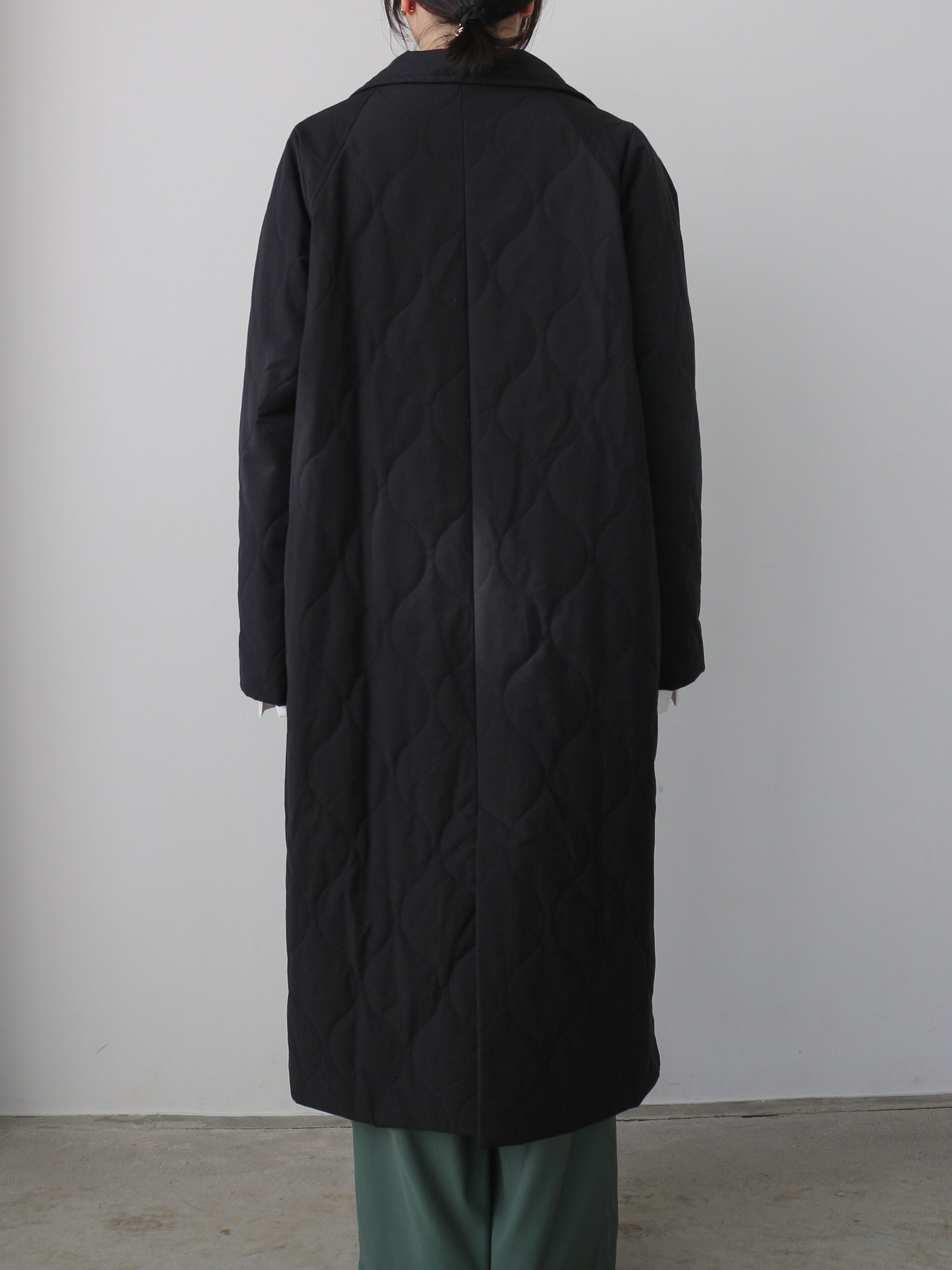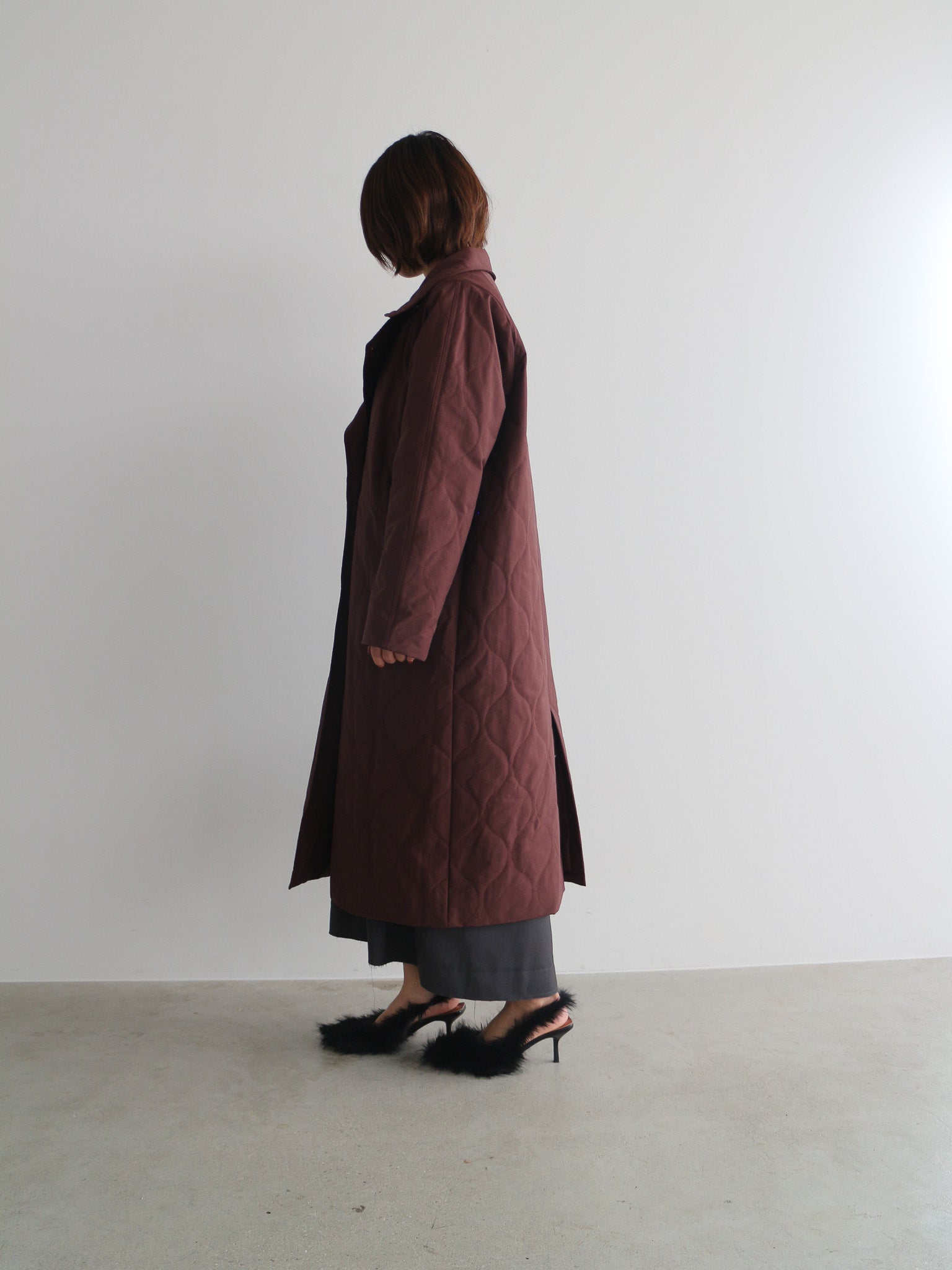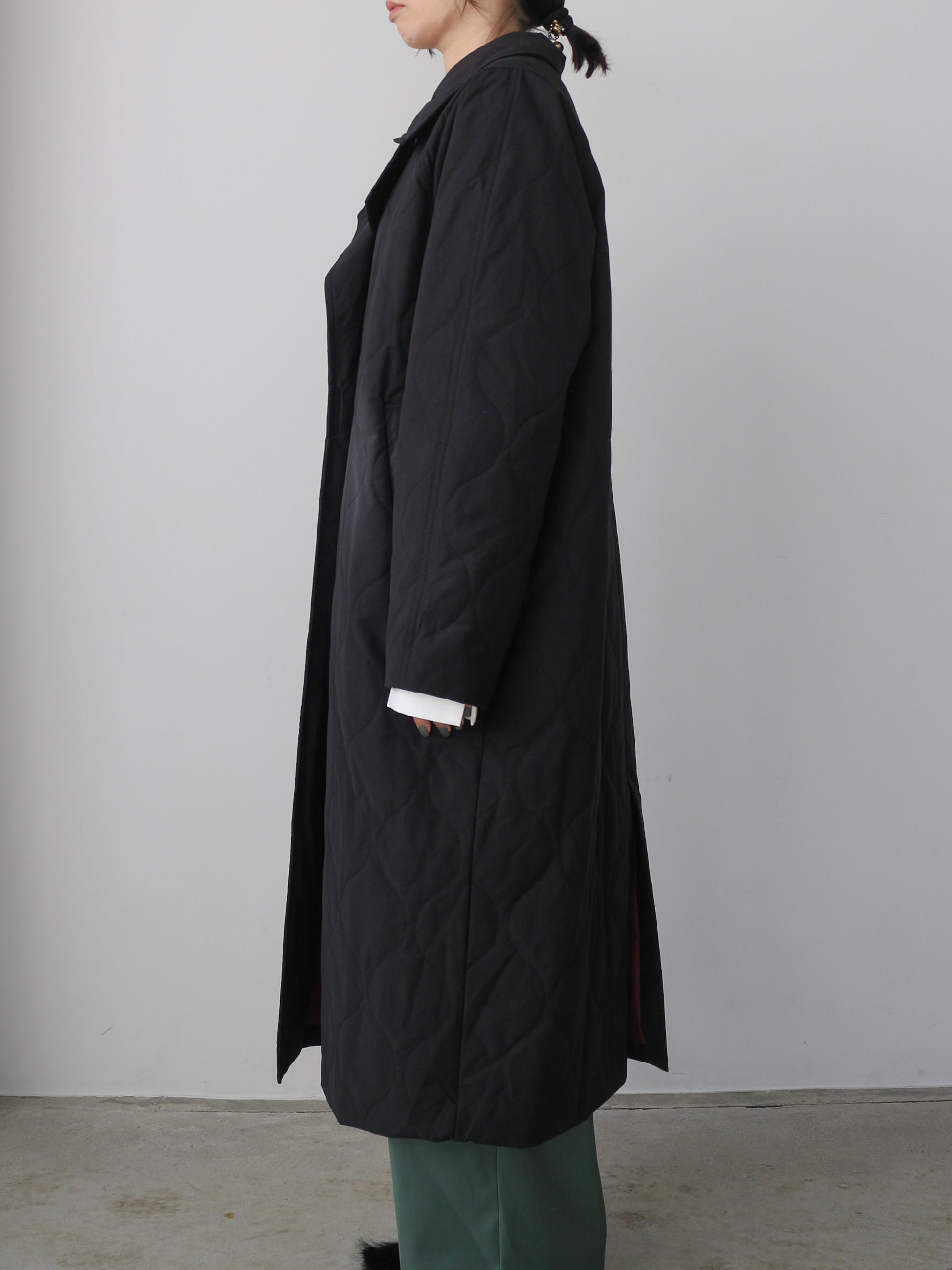 ウインターシーズンに欠かせないキルティングコートに、同素材の大判ストールをセットした今年らしいデザイン。