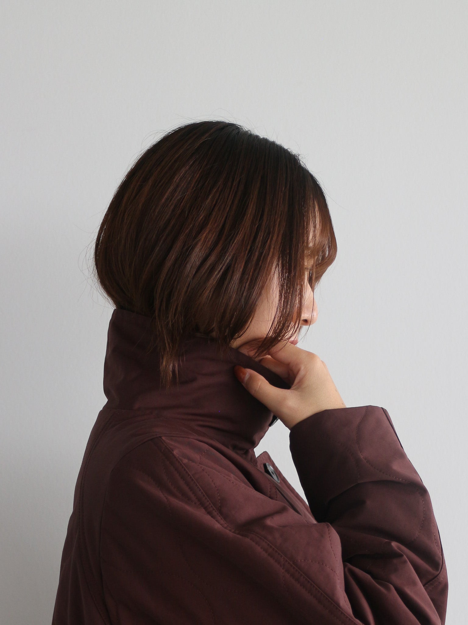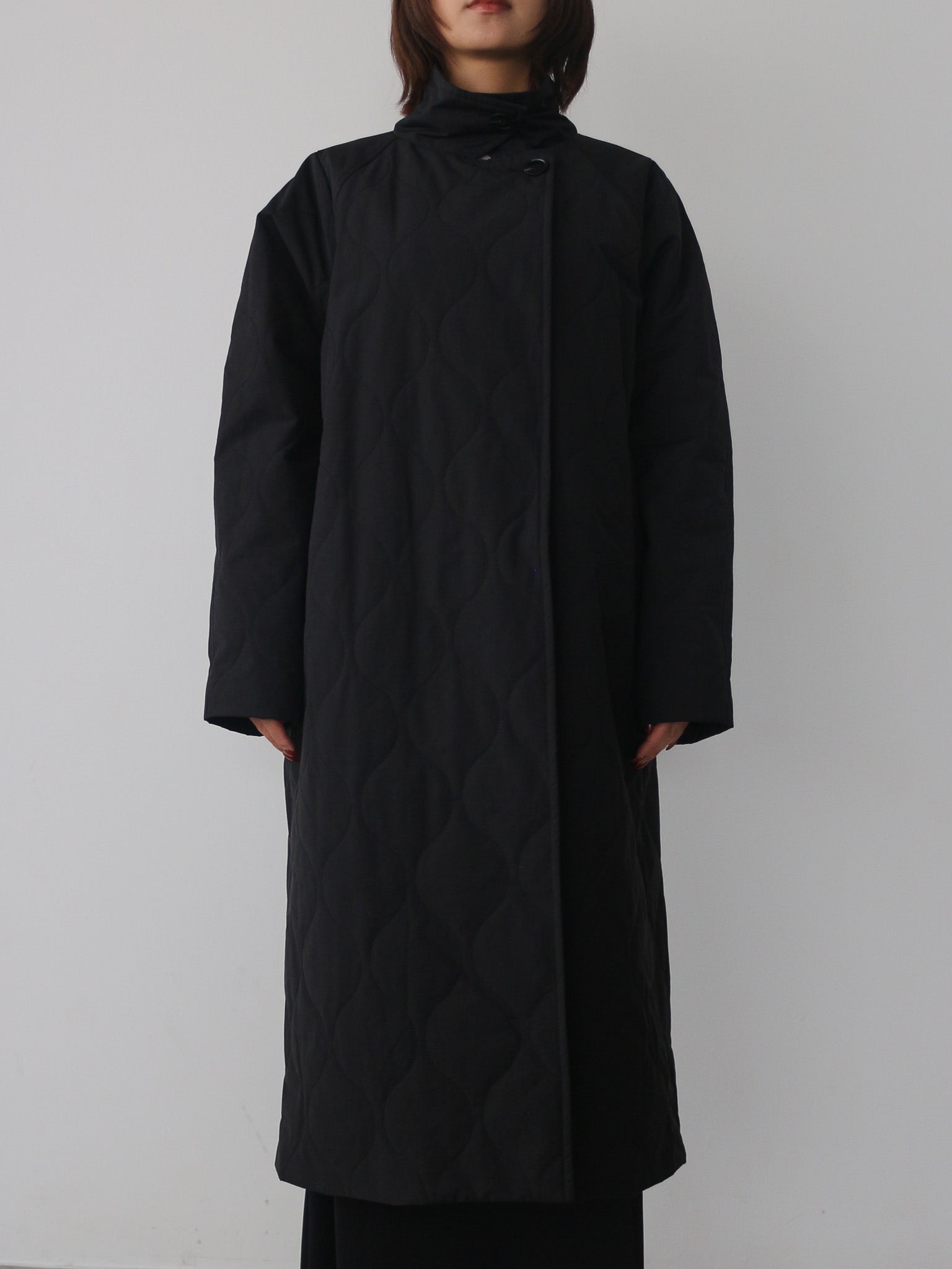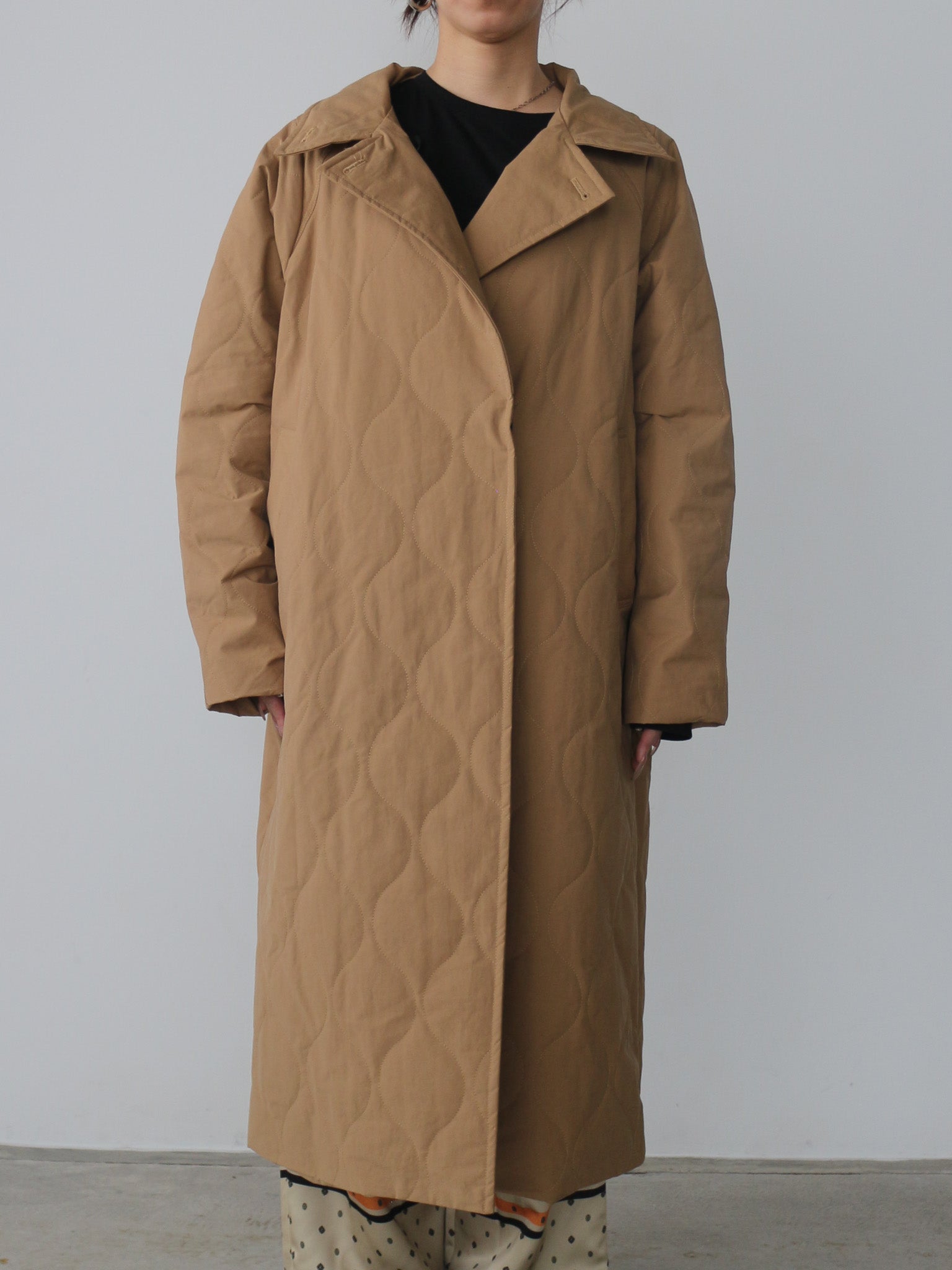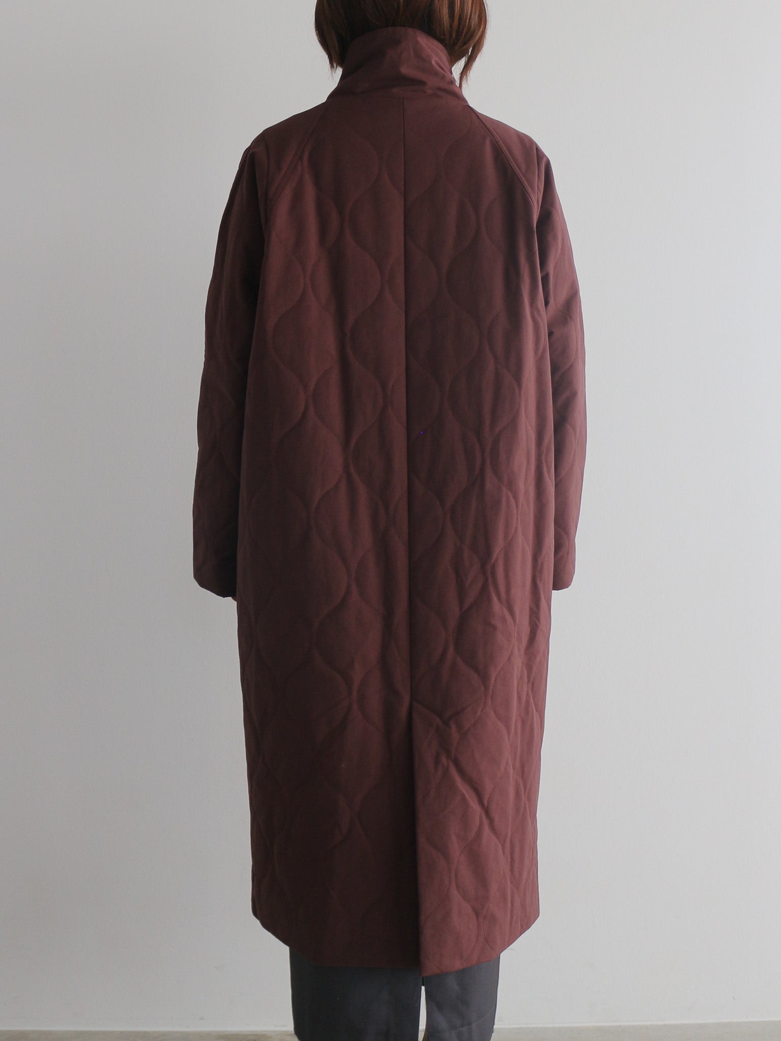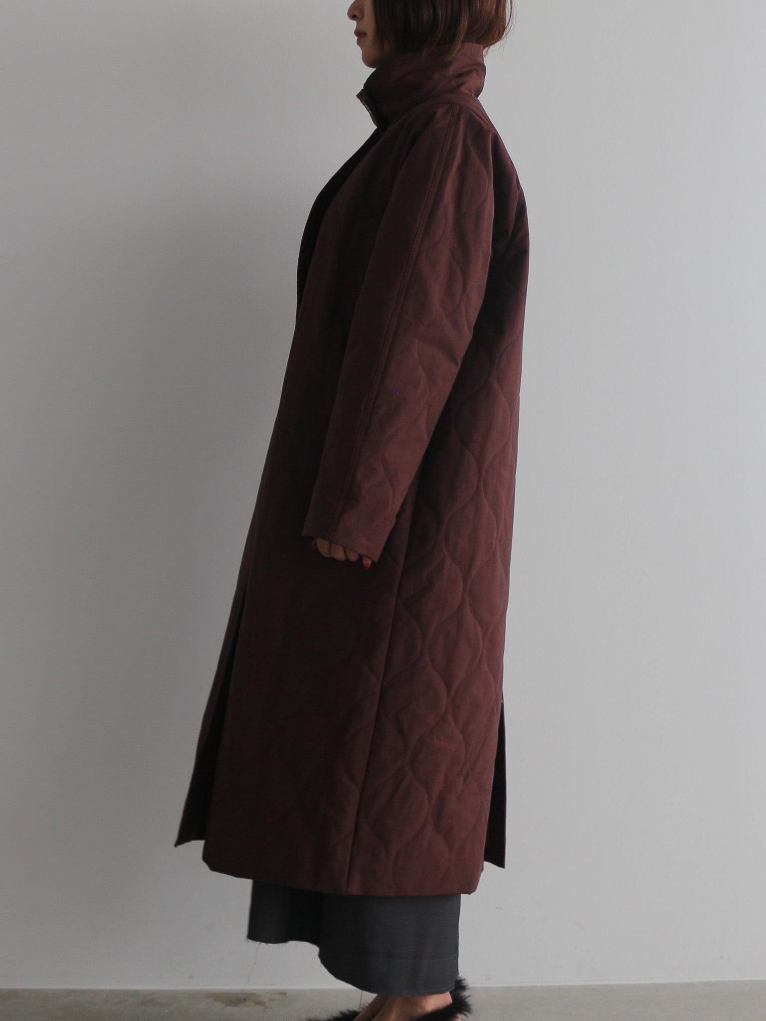 ウインターシーズンに欠かせないキルティングコートに、同素材の大判ストールをセットした今年らしいデザイン。