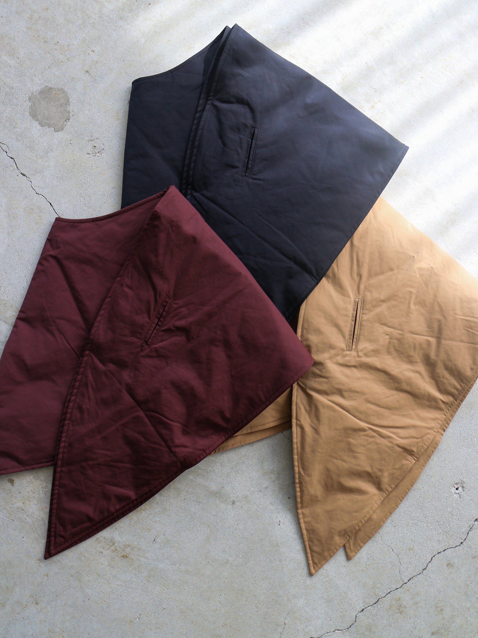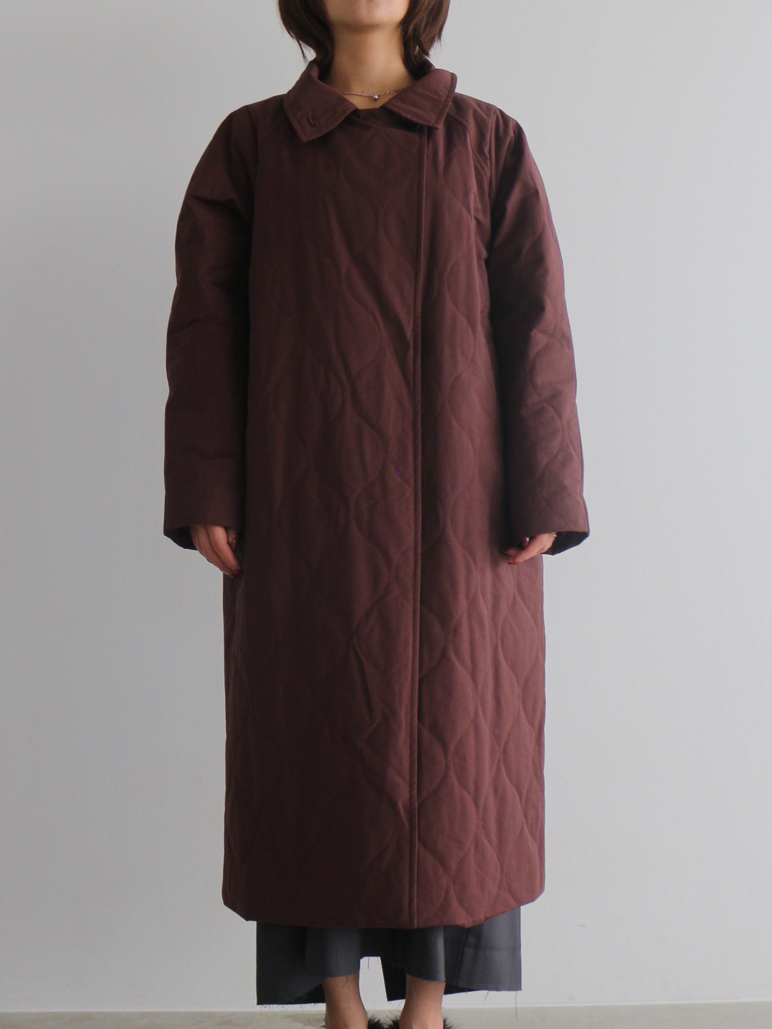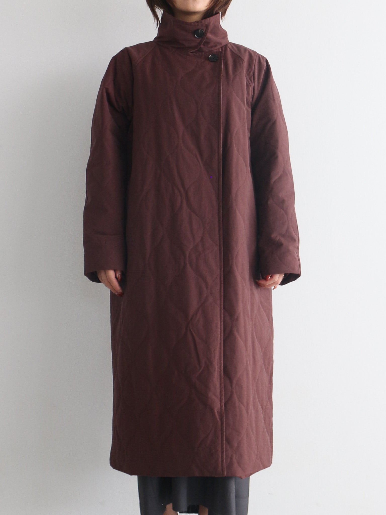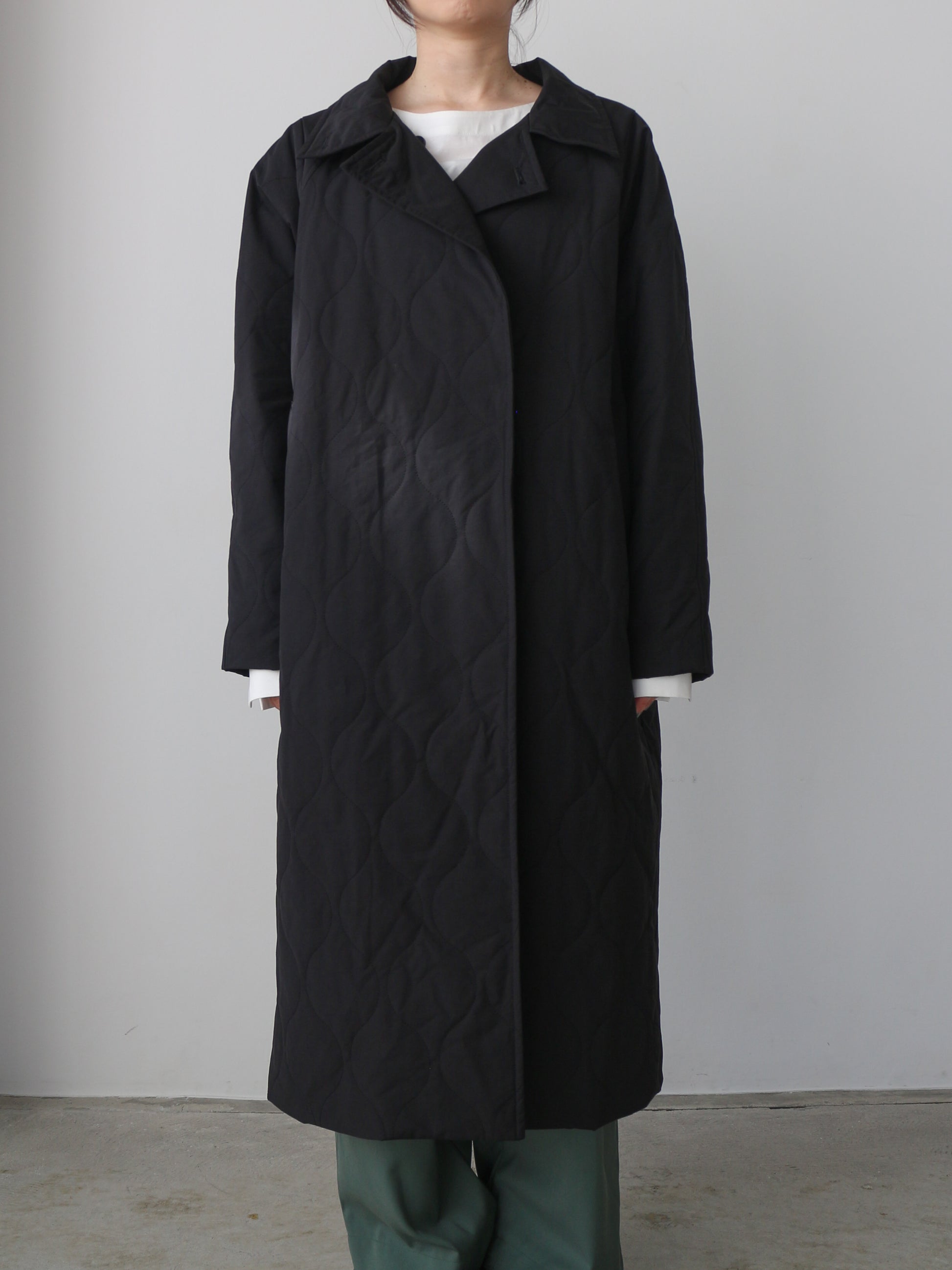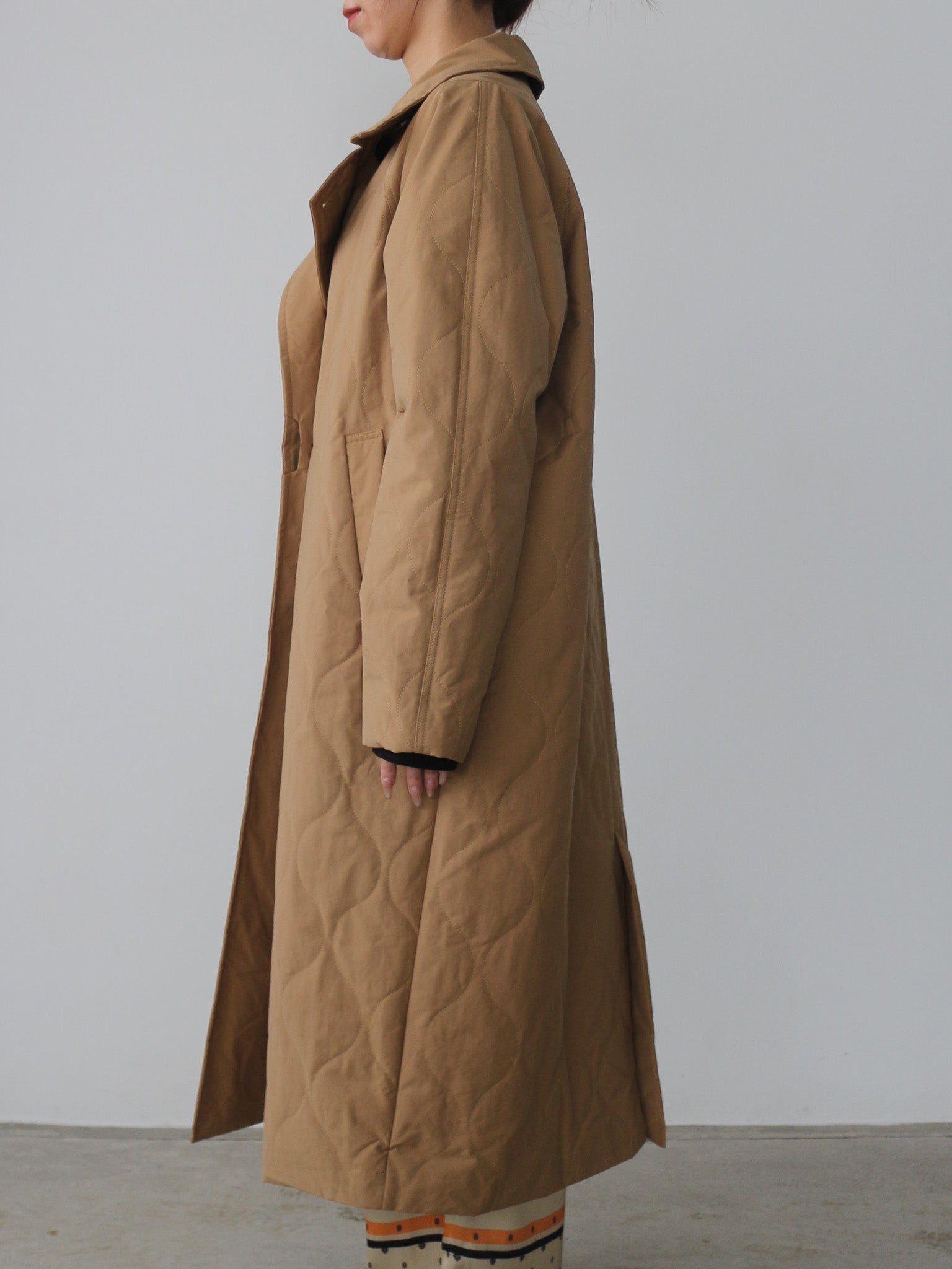 ウインターシーズンに欠かせないキルティングコートに、同素材の大判ストールをセットした今年らしいデザイン。
