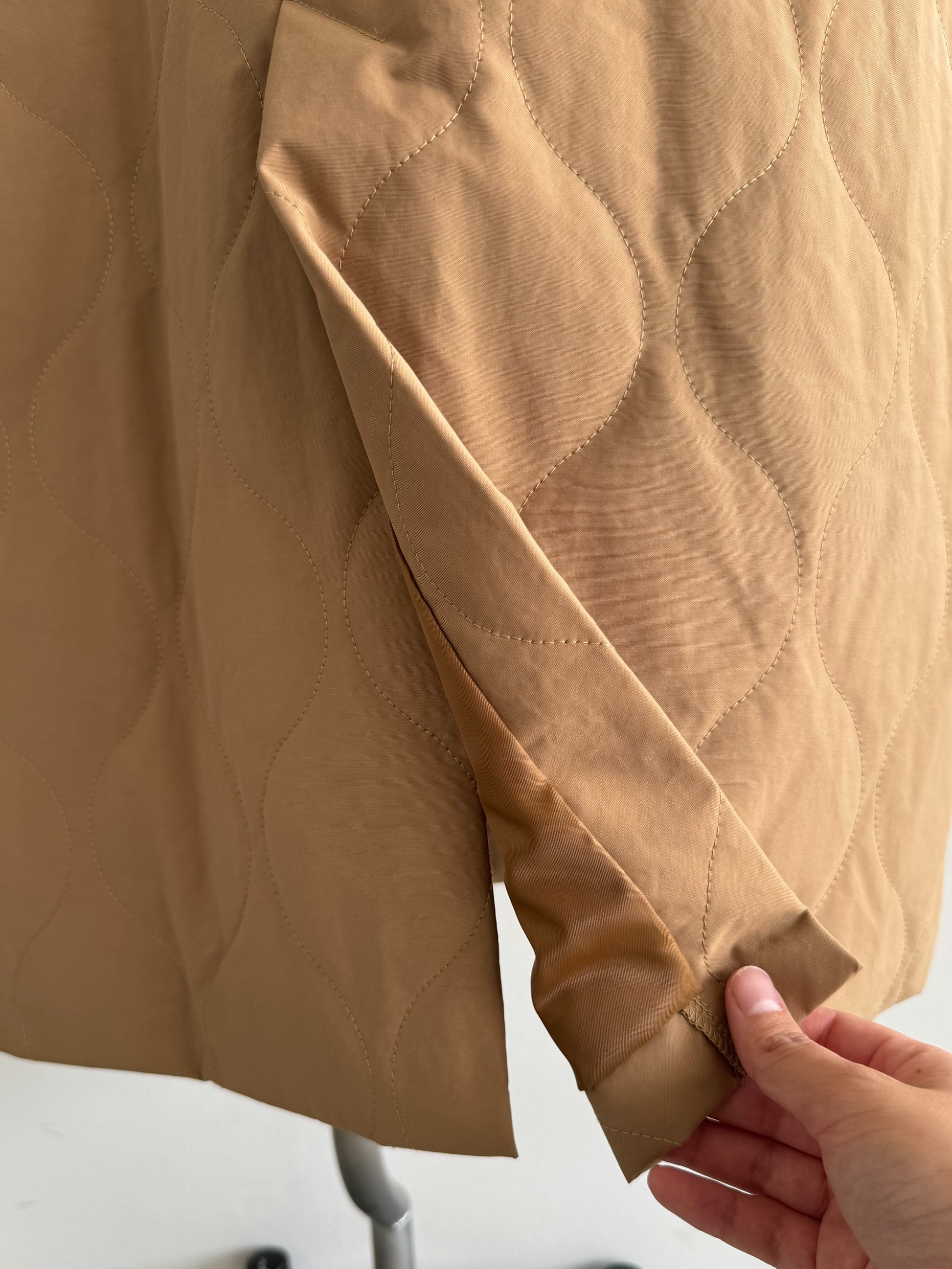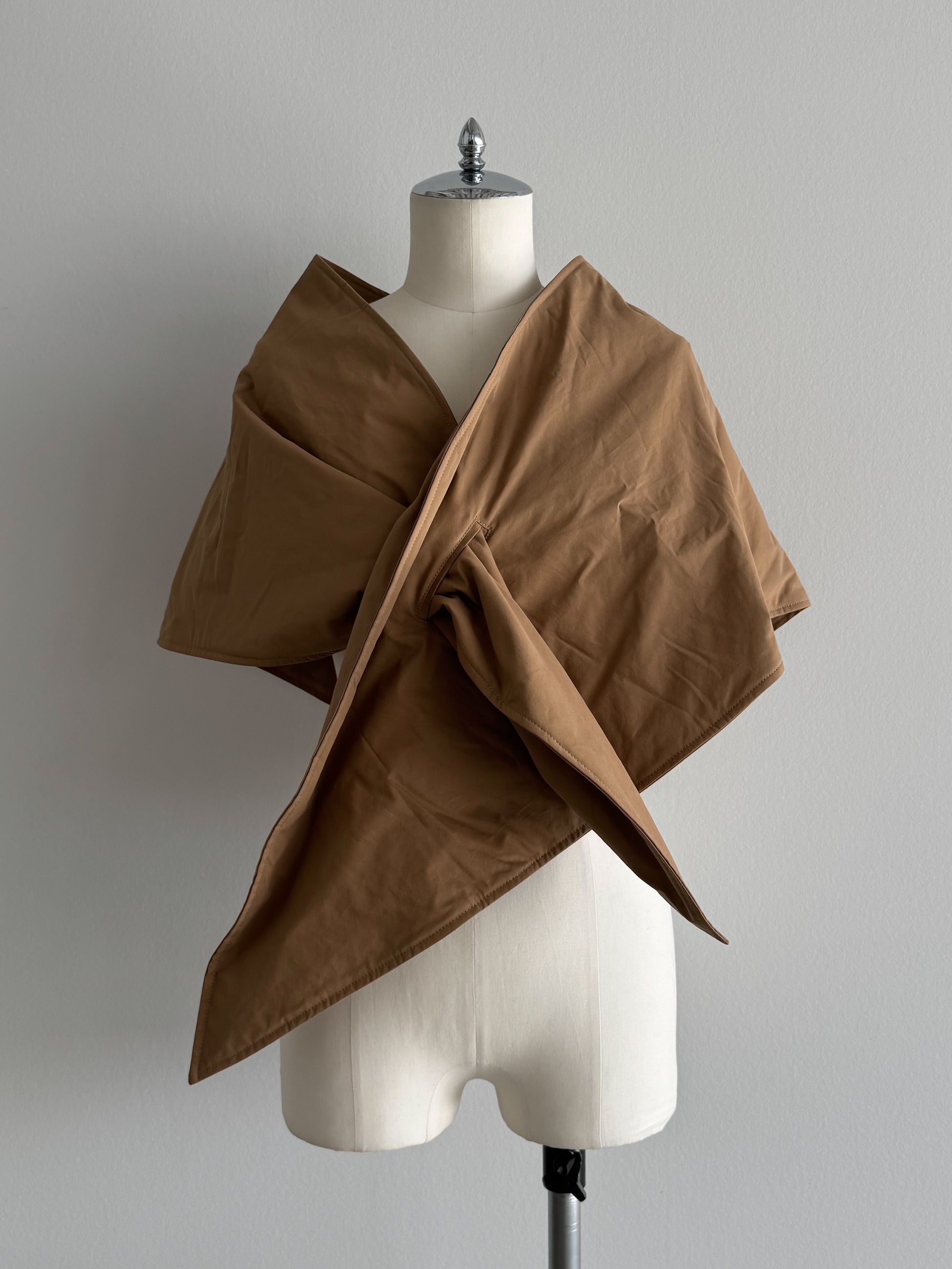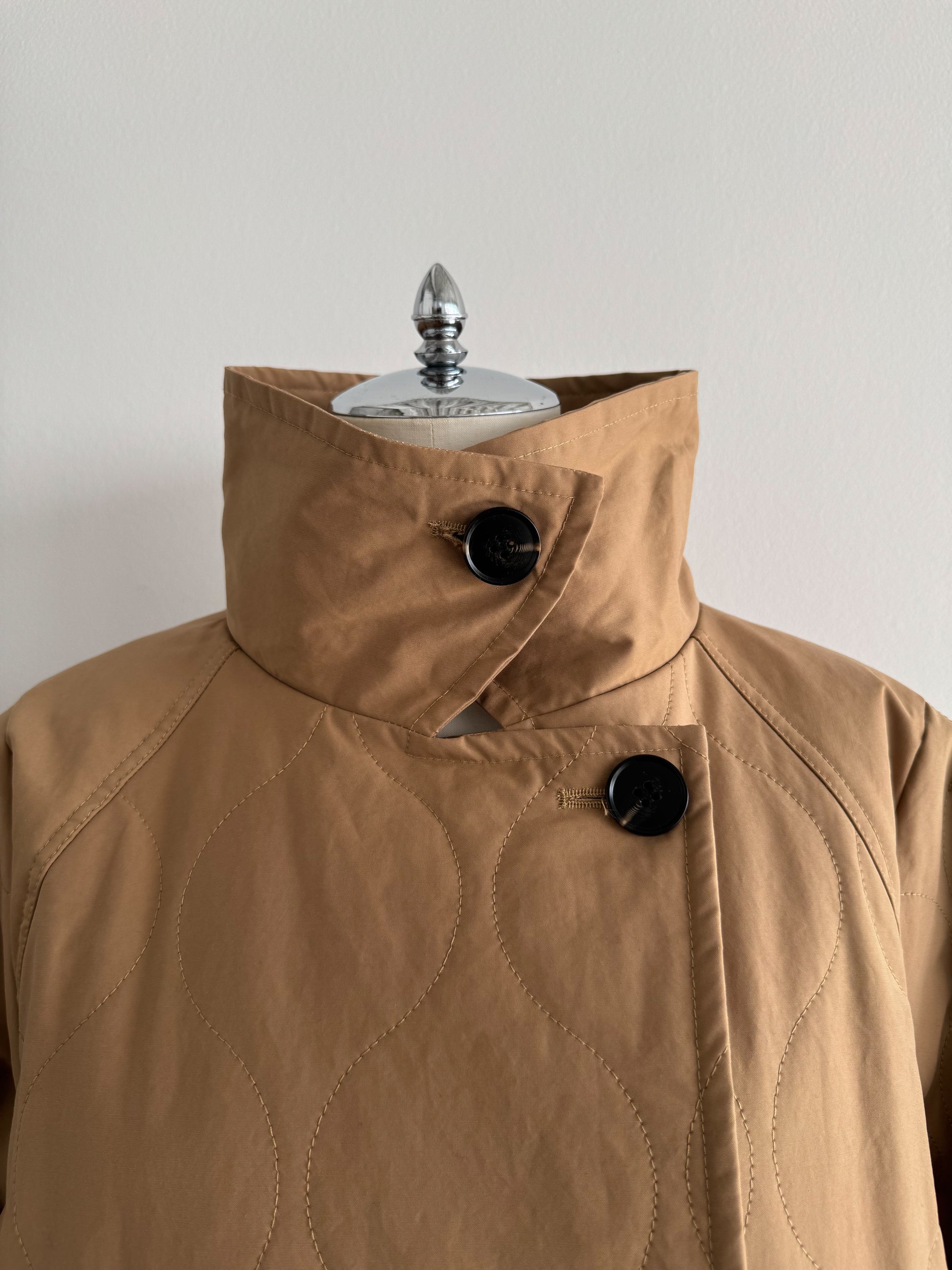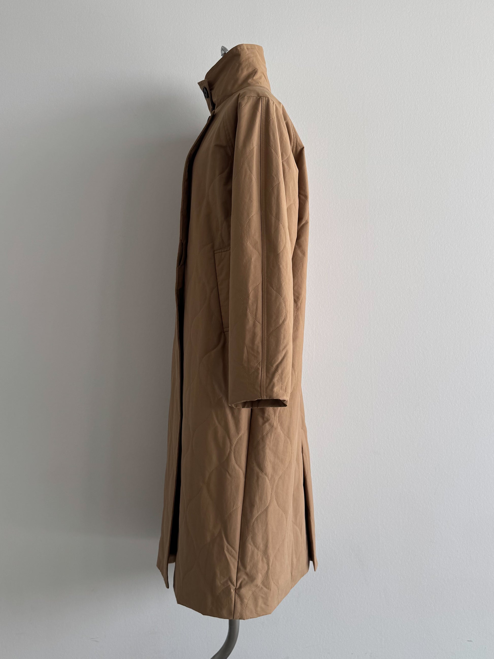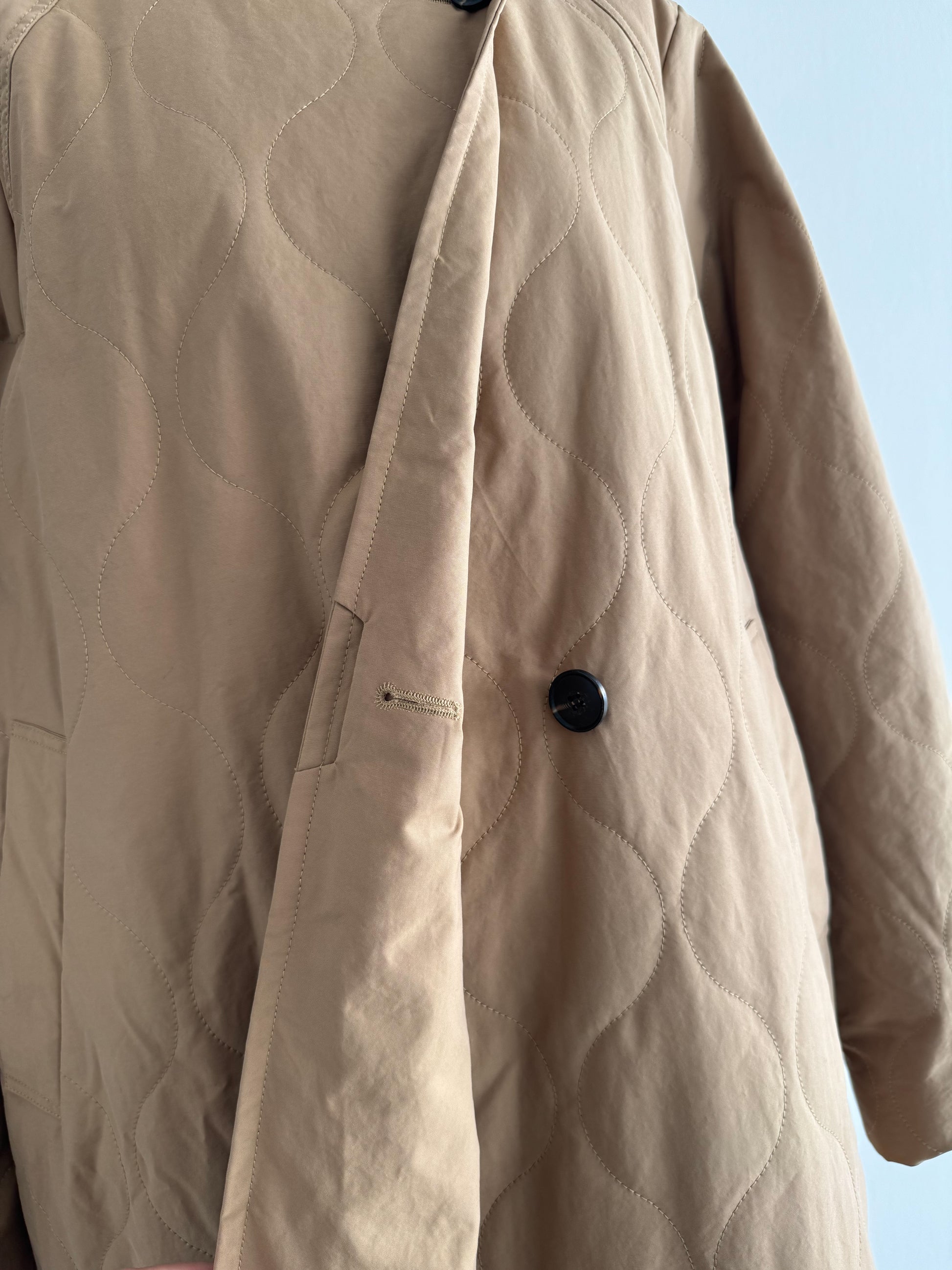 ウインターシーズンに欠かせないキルティングコートに、同素材の大判ストールをセットした今年らしいデザイン。