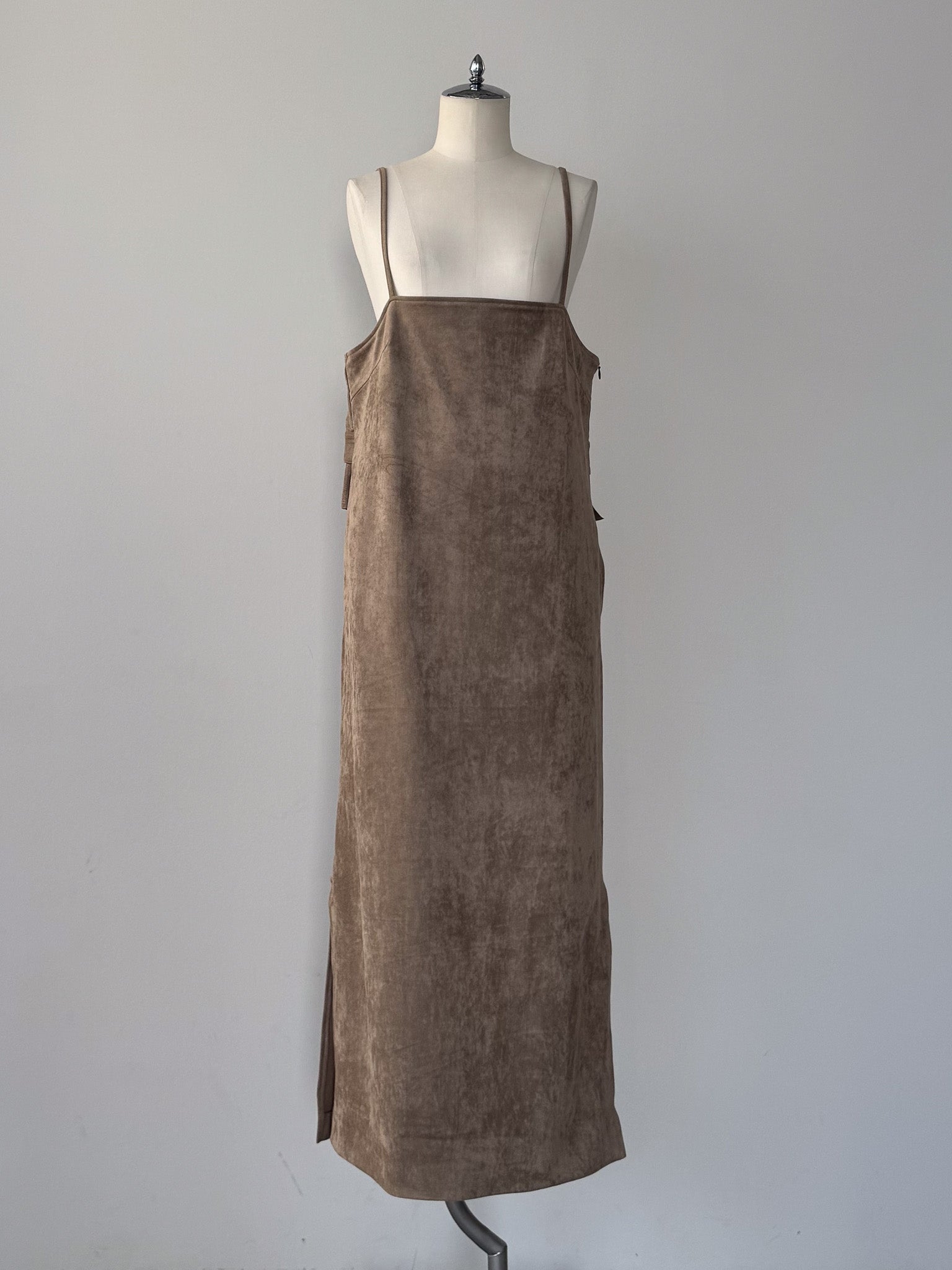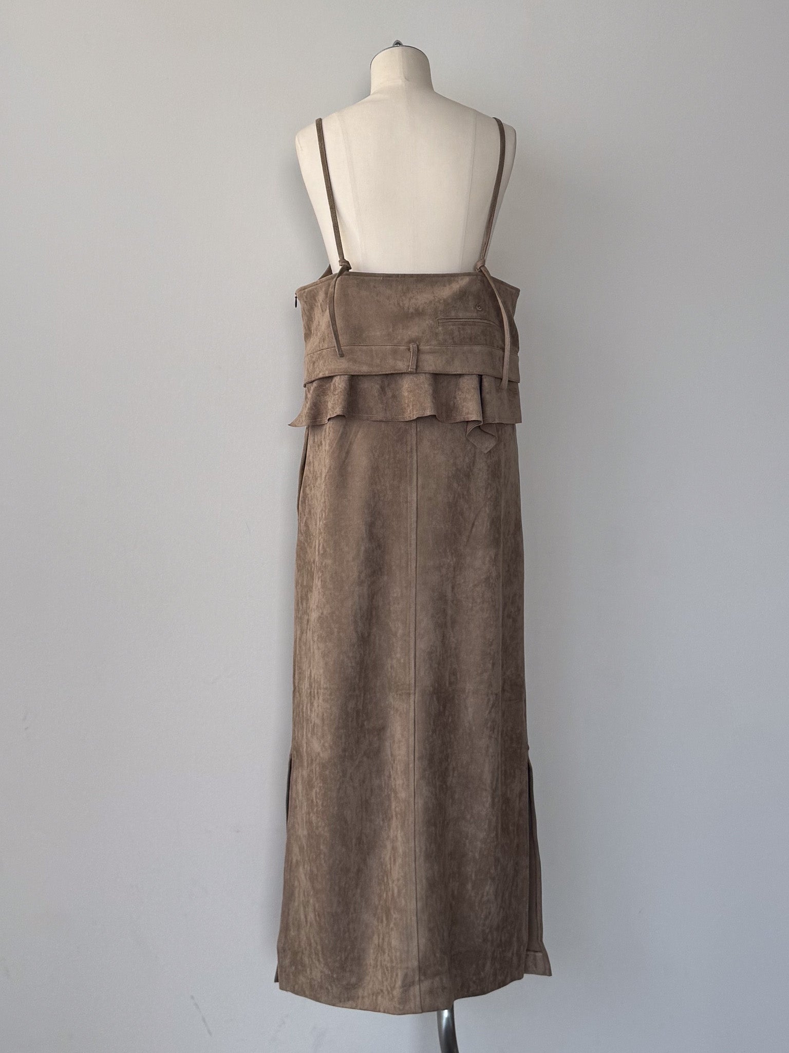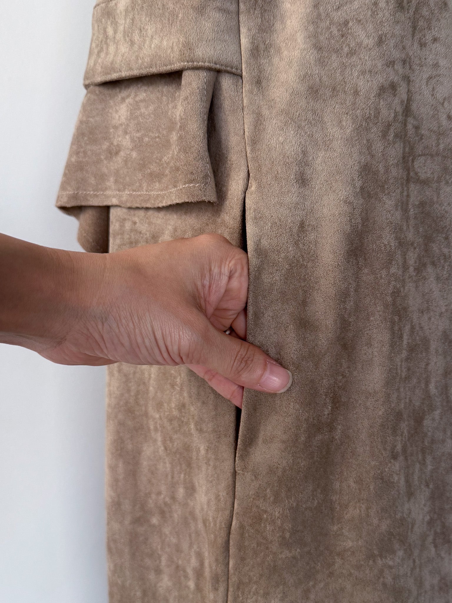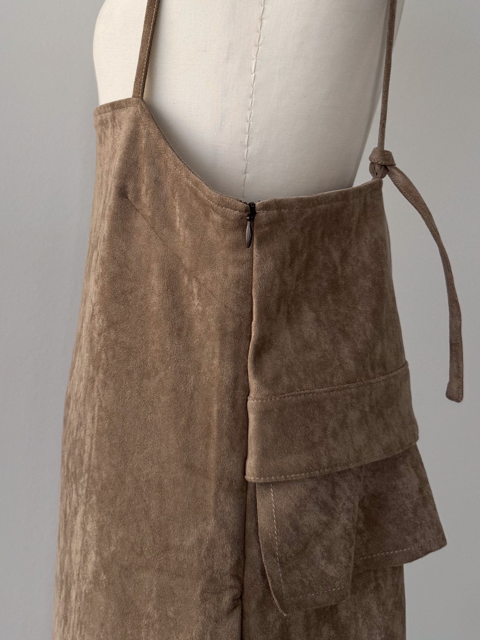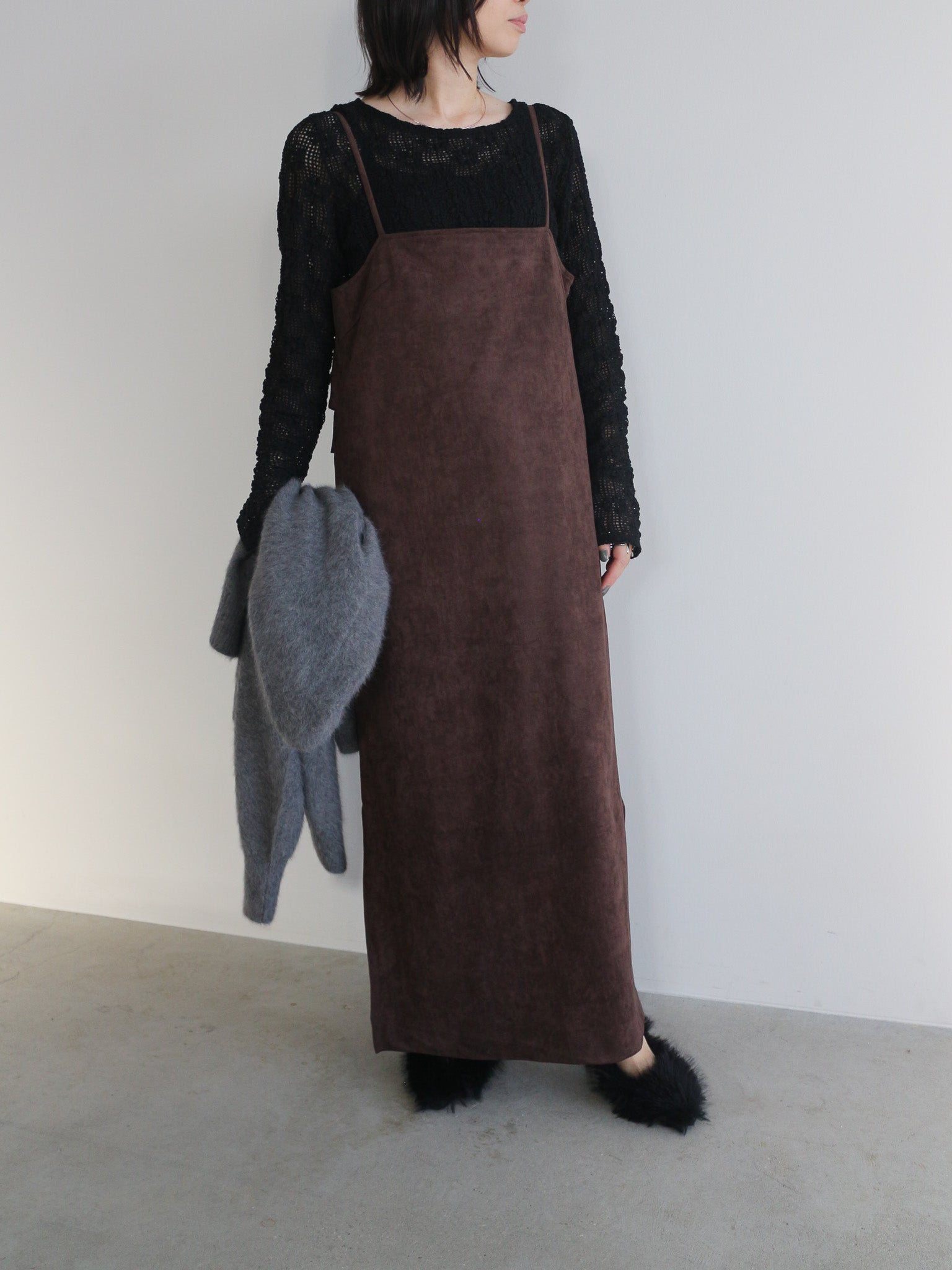 程よく厚みがあり身体のラインをきれいに見せてくれるフェイクスエード素材のワンピース。