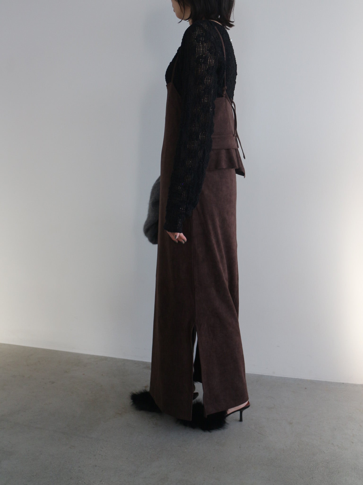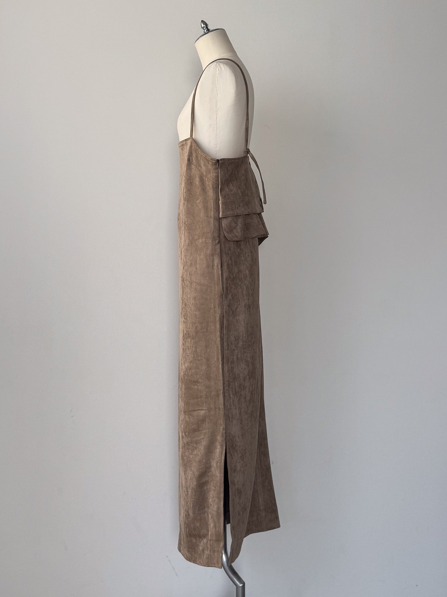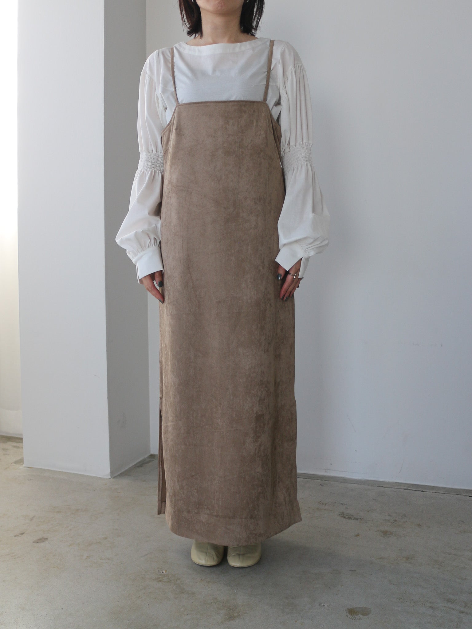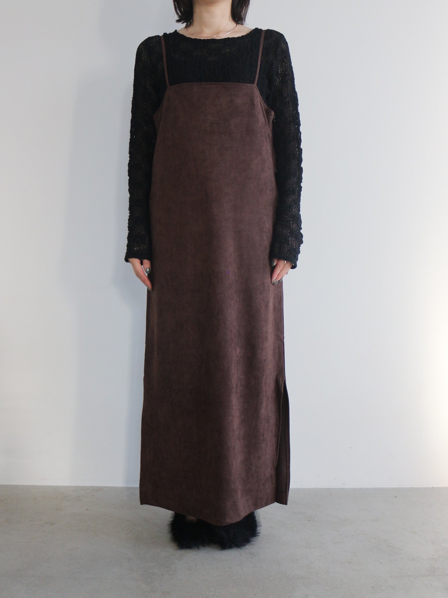 程よく厚みがあり身体のラインをきれいに見せてくれるフェイクスエード素材のワンピース。