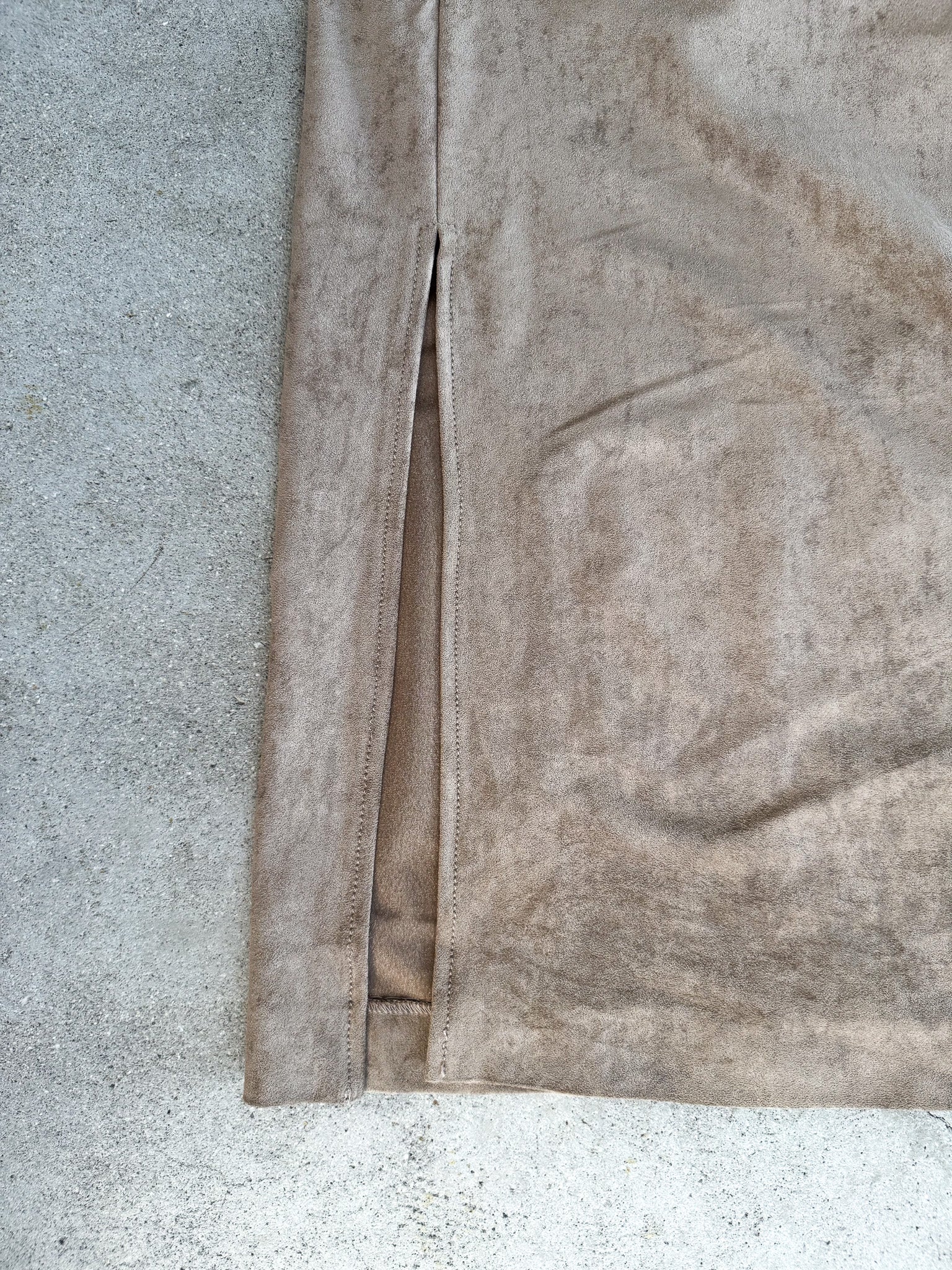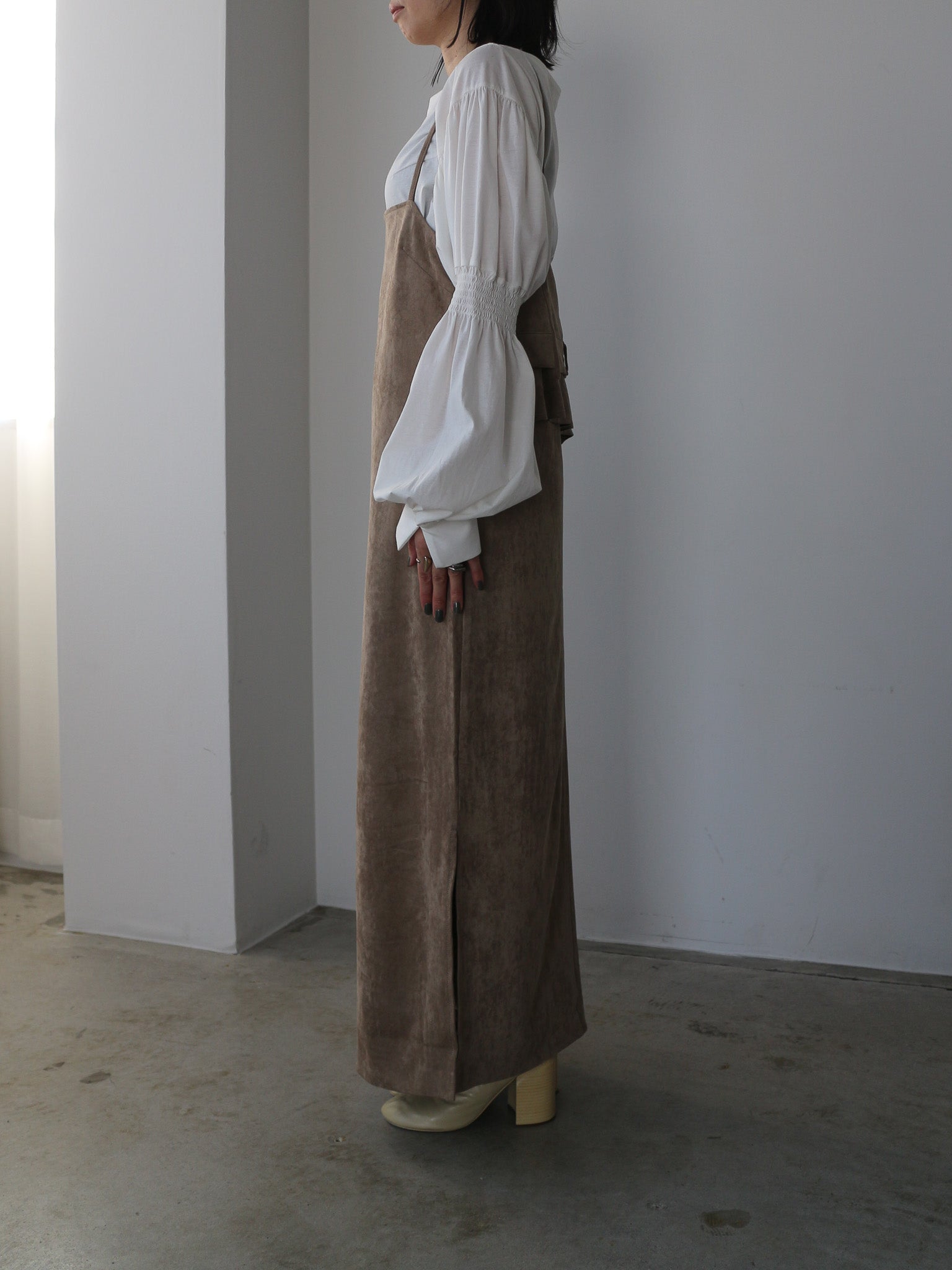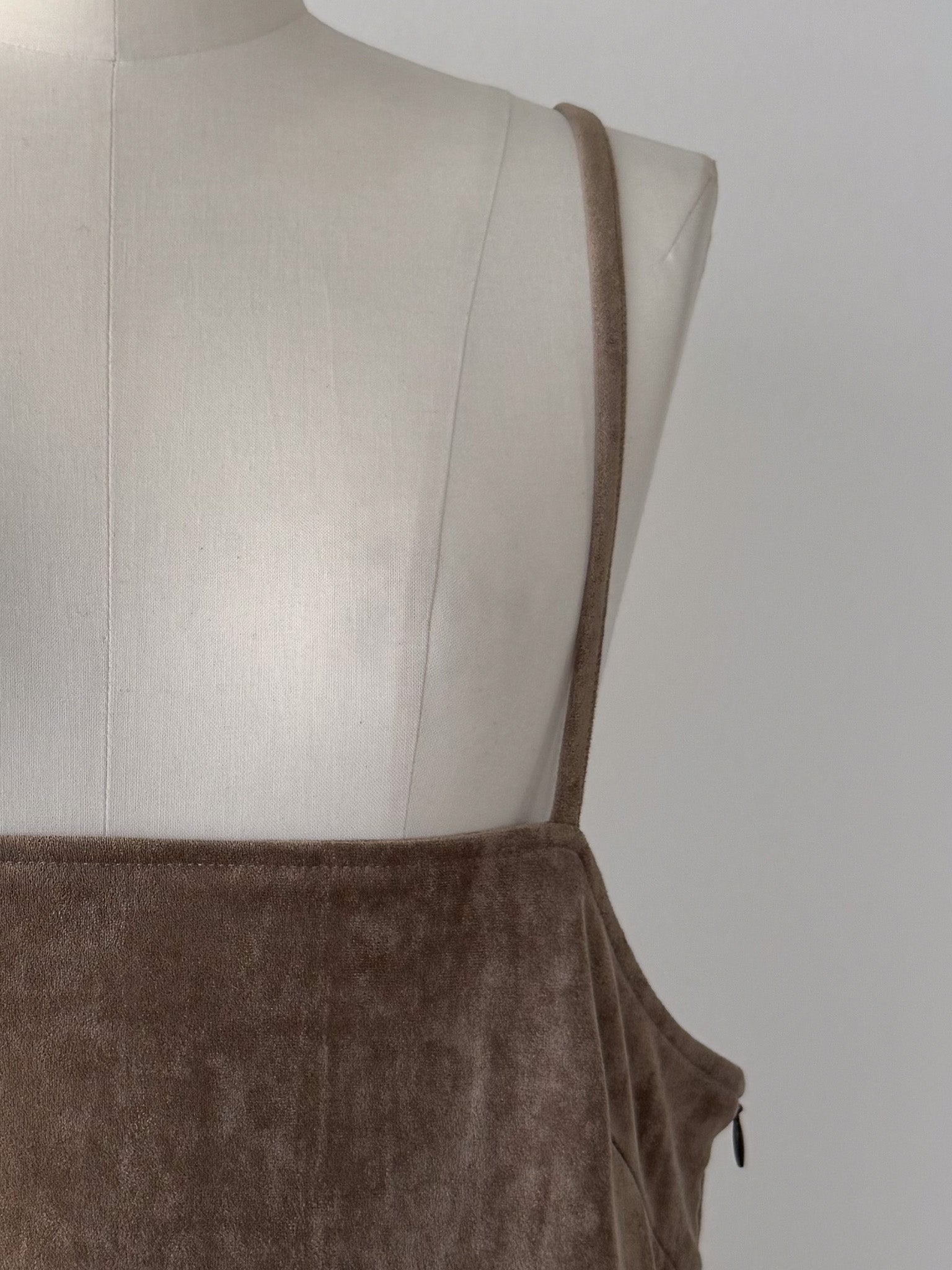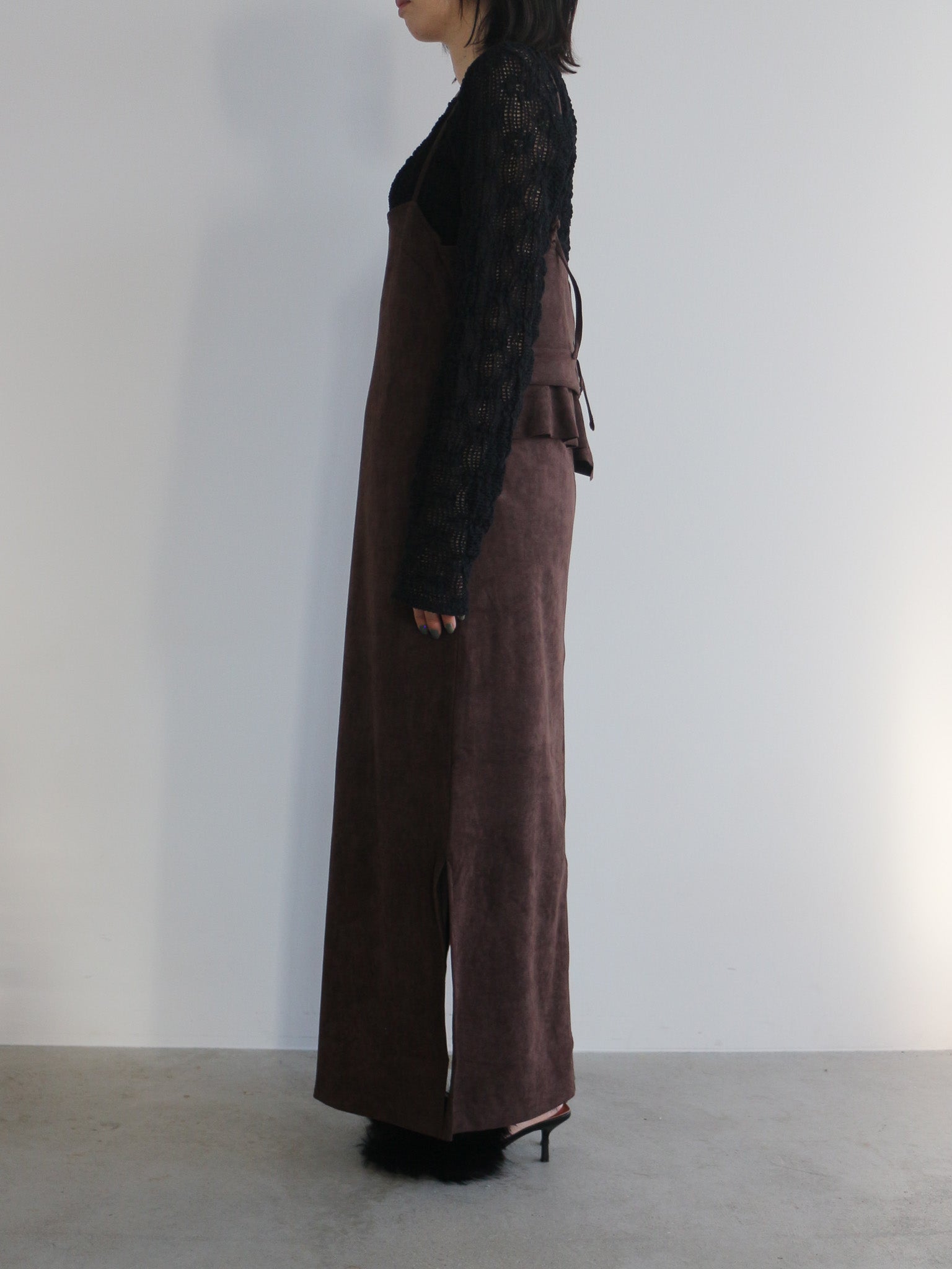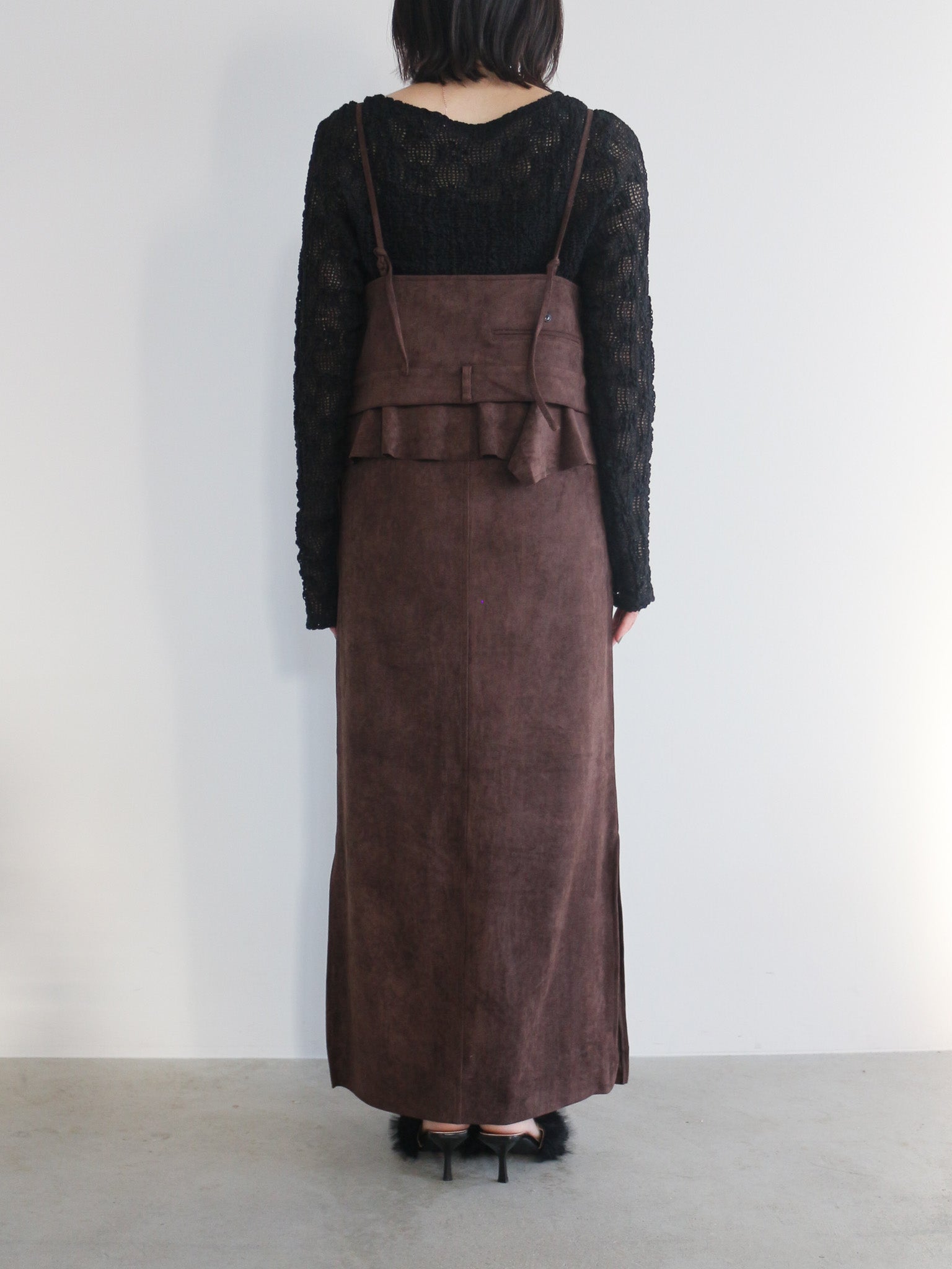 程よく厚みがあり身体のラインをきれいに見せてくれるフェイクスエード素材のワンピース。