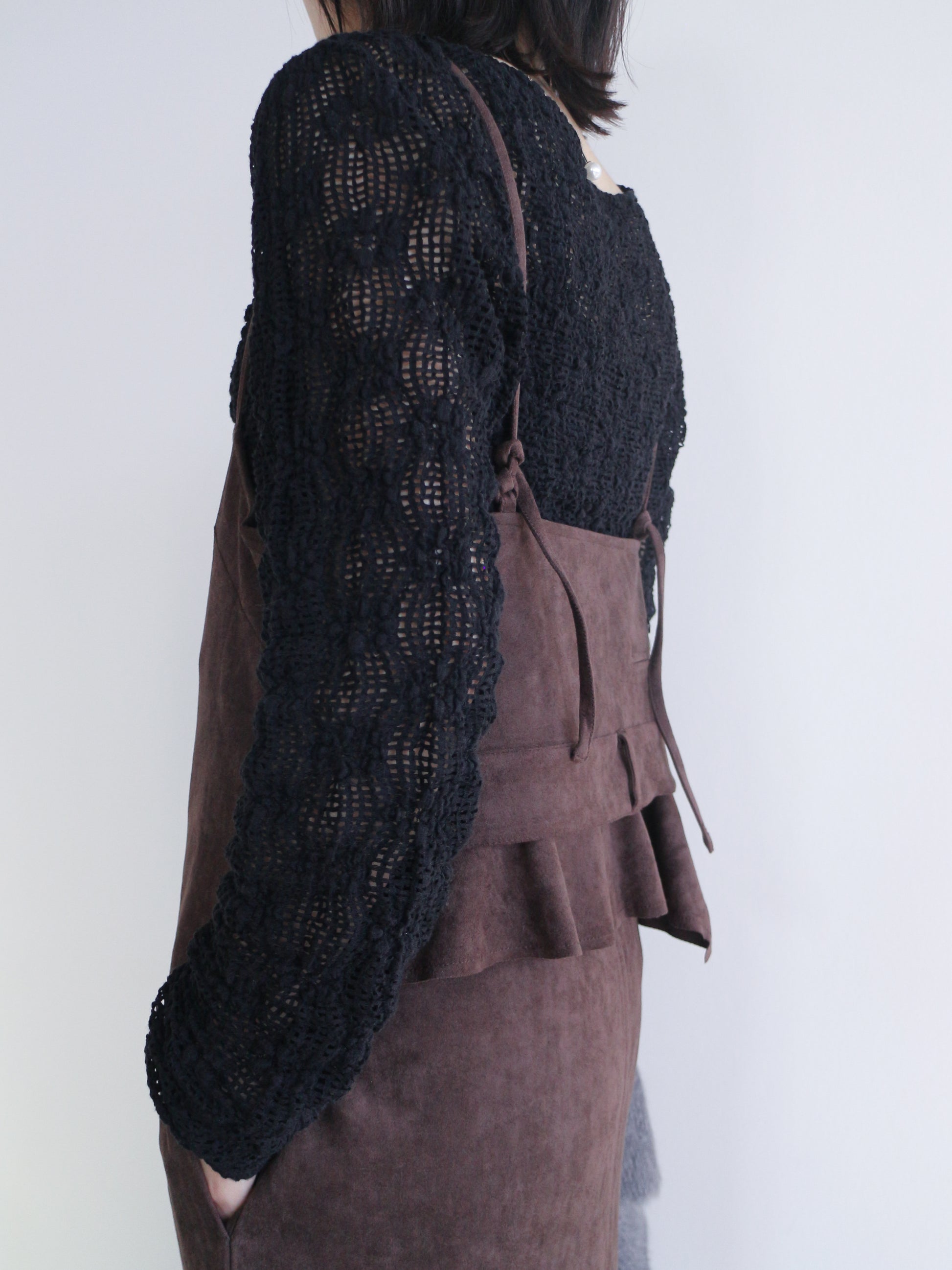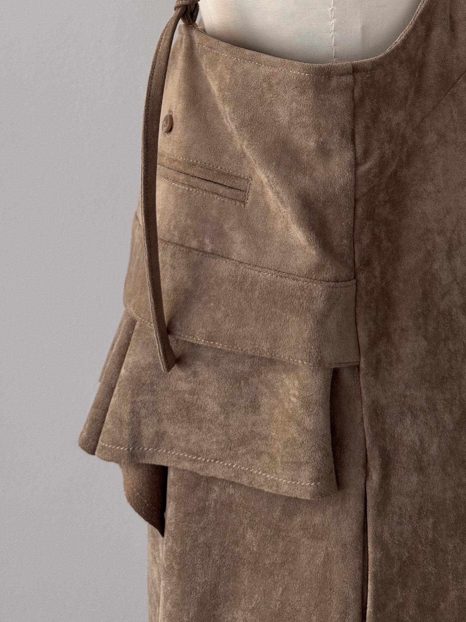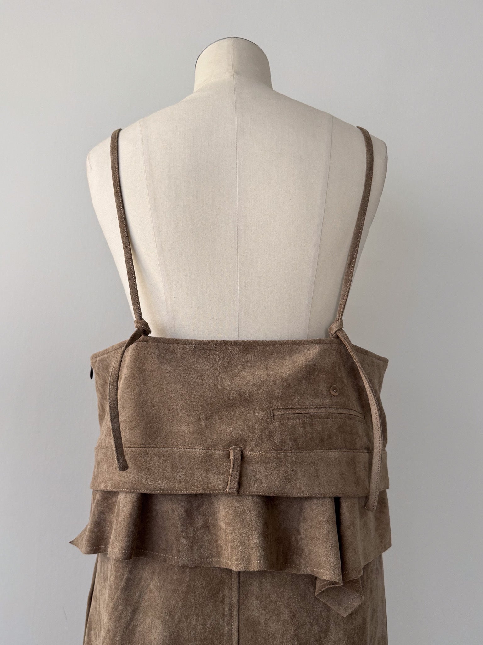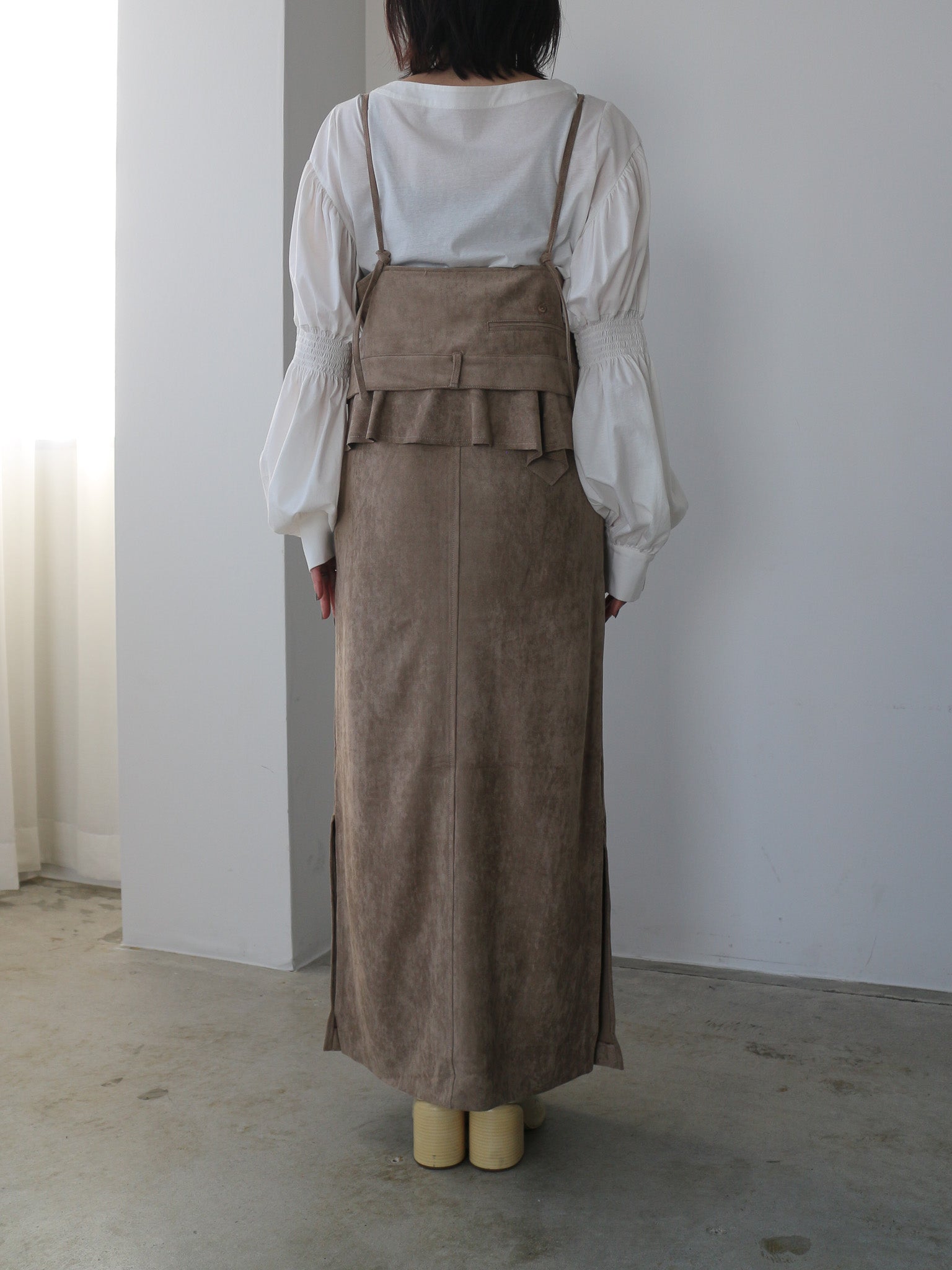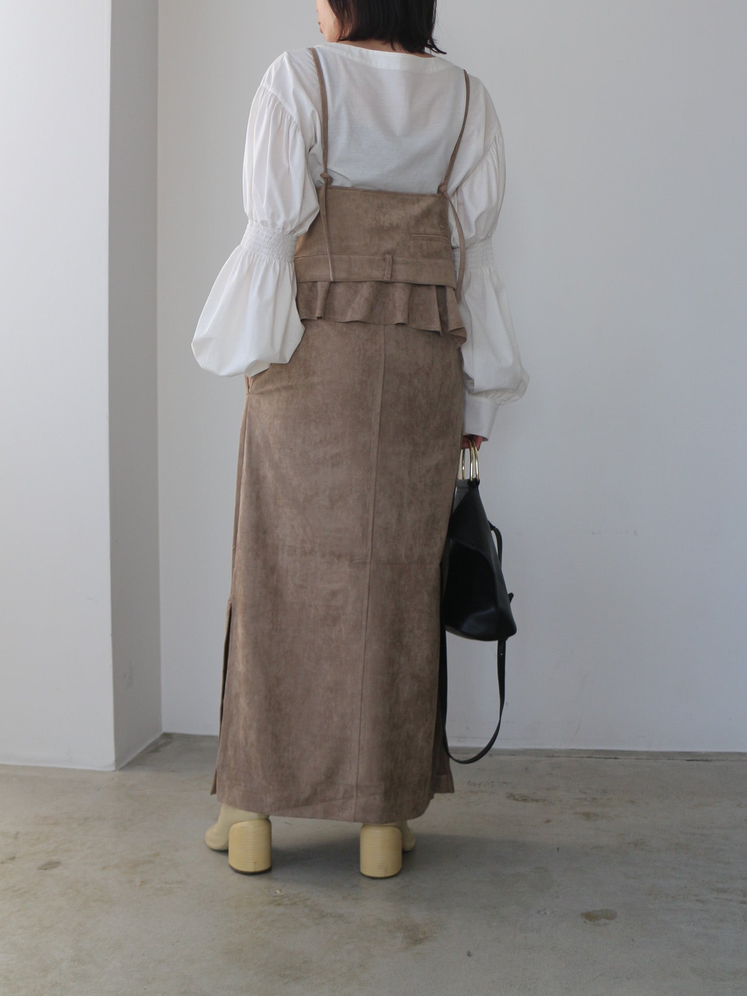 程よく厚みがあり身体のラインをきれいに見せてくれるフェイクスエード素材のワンピース。