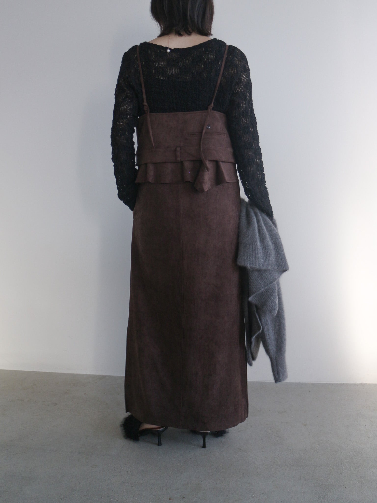 Pqran スエードキャミワンピース