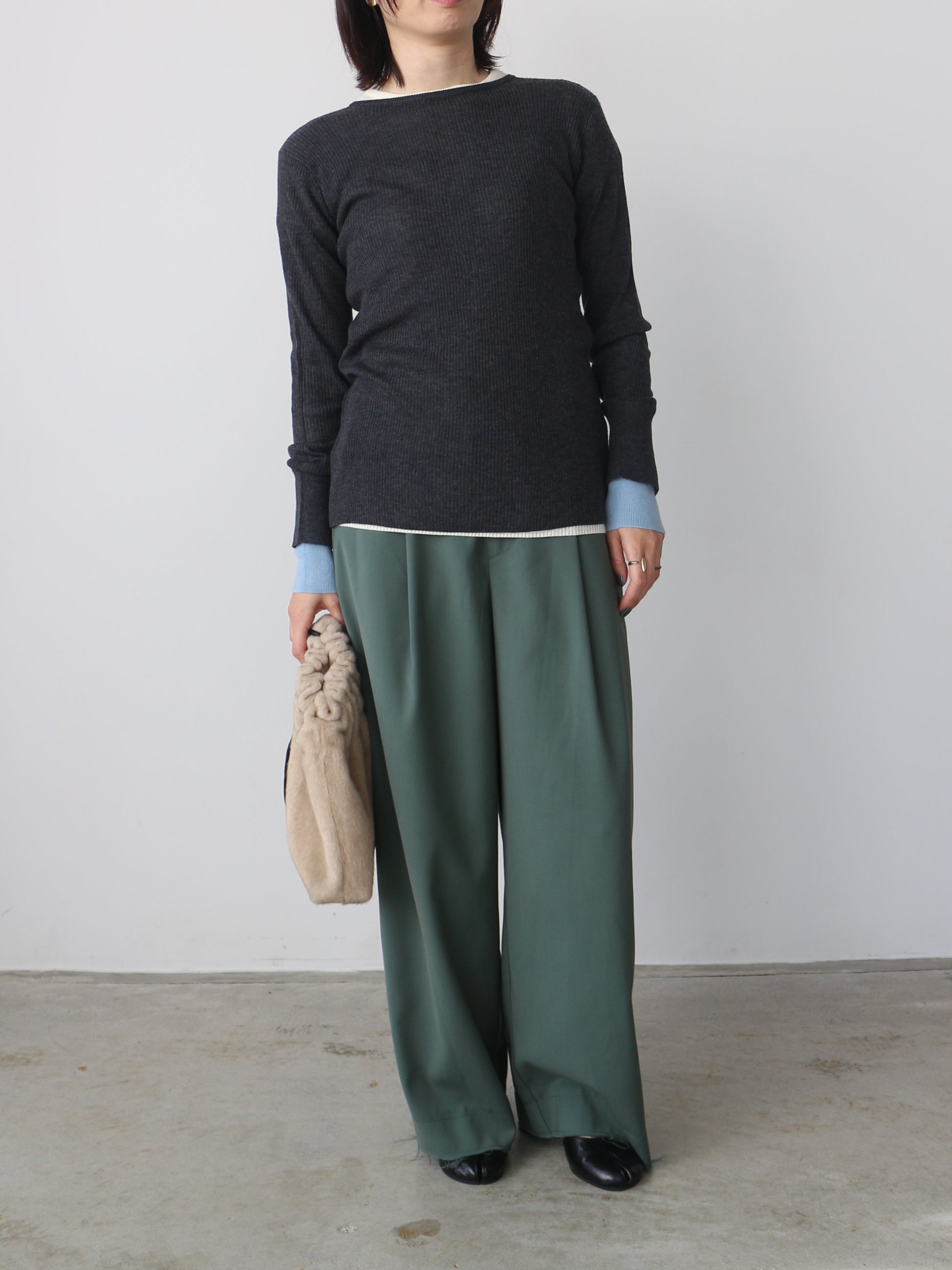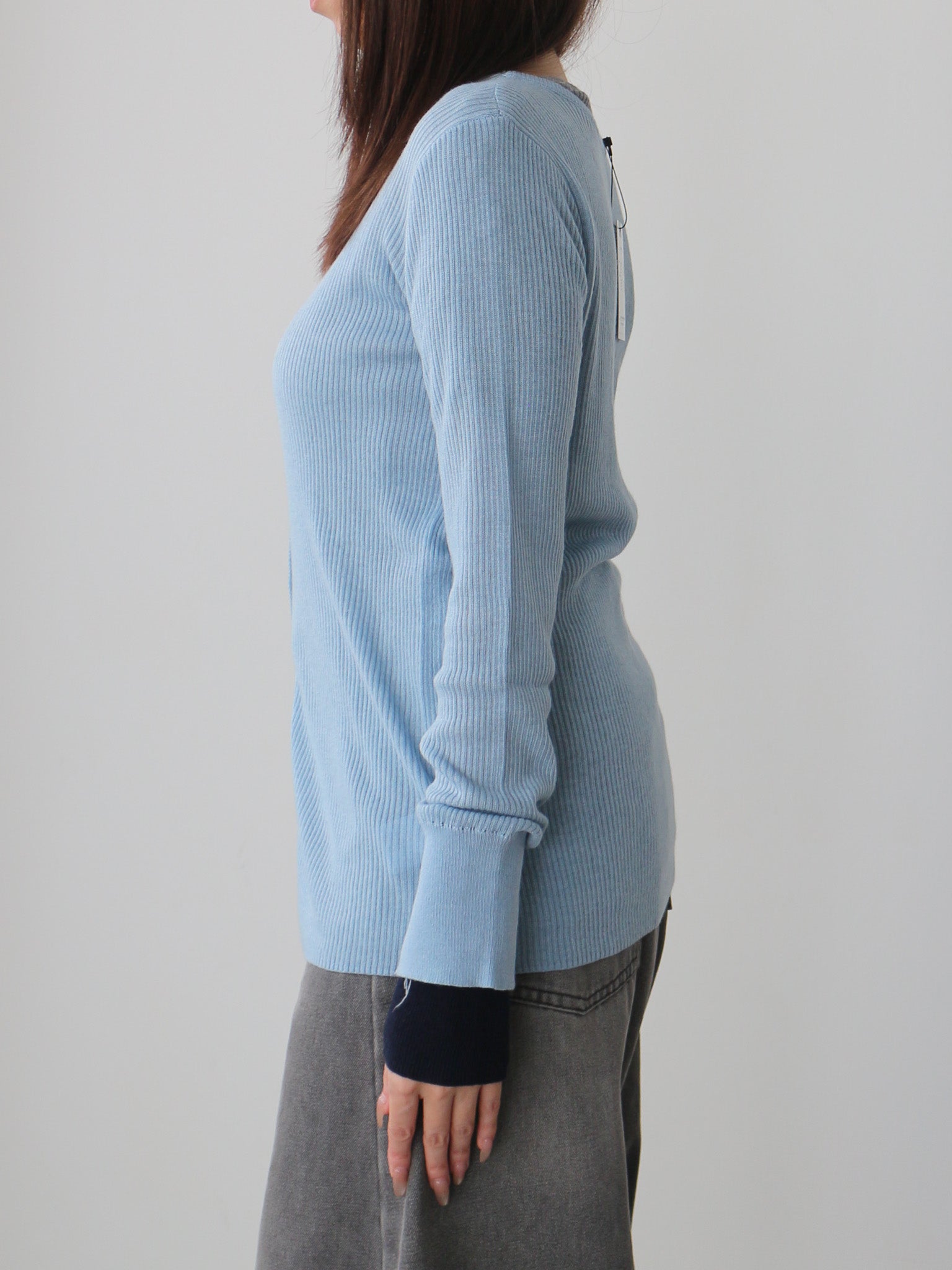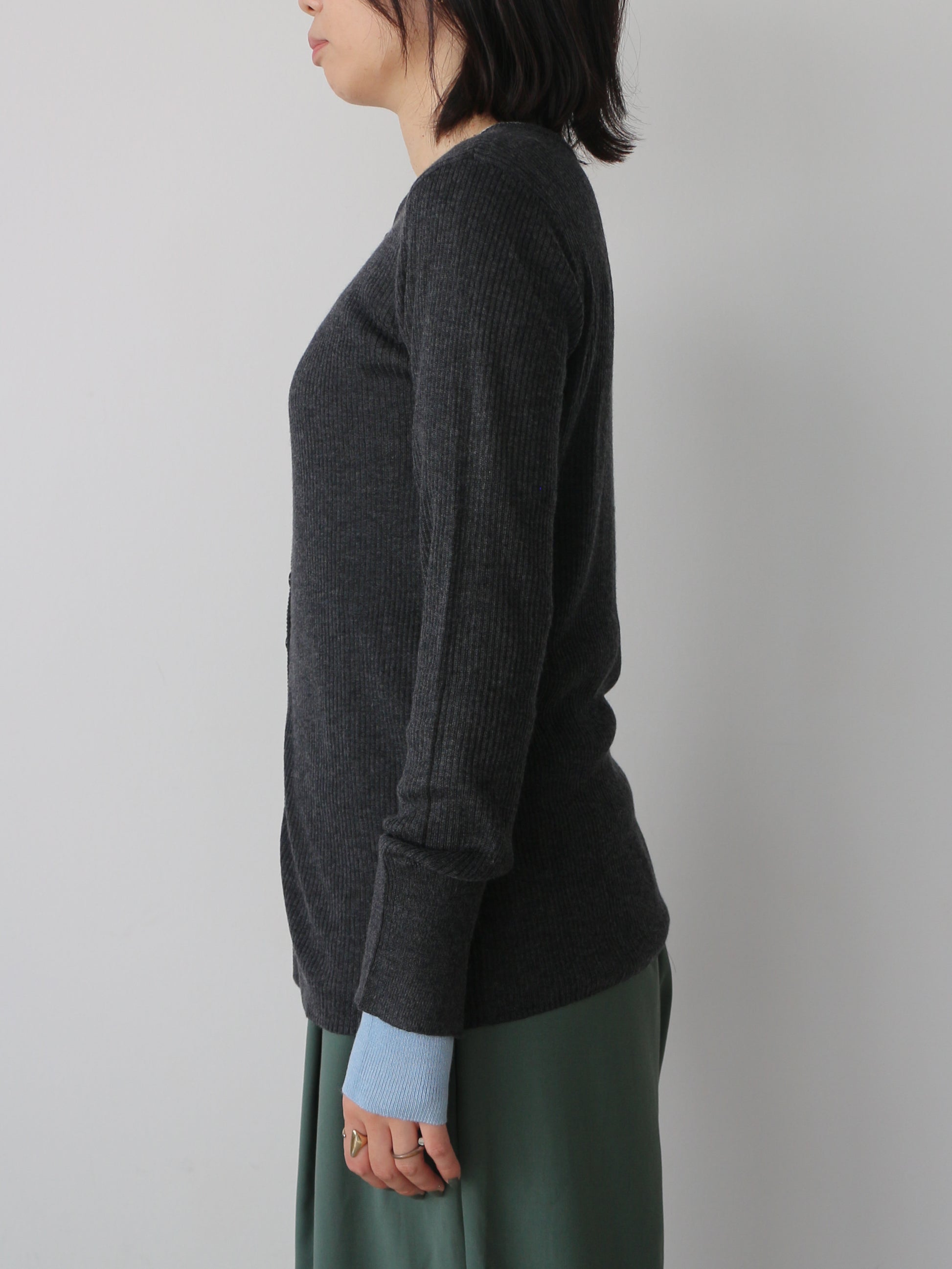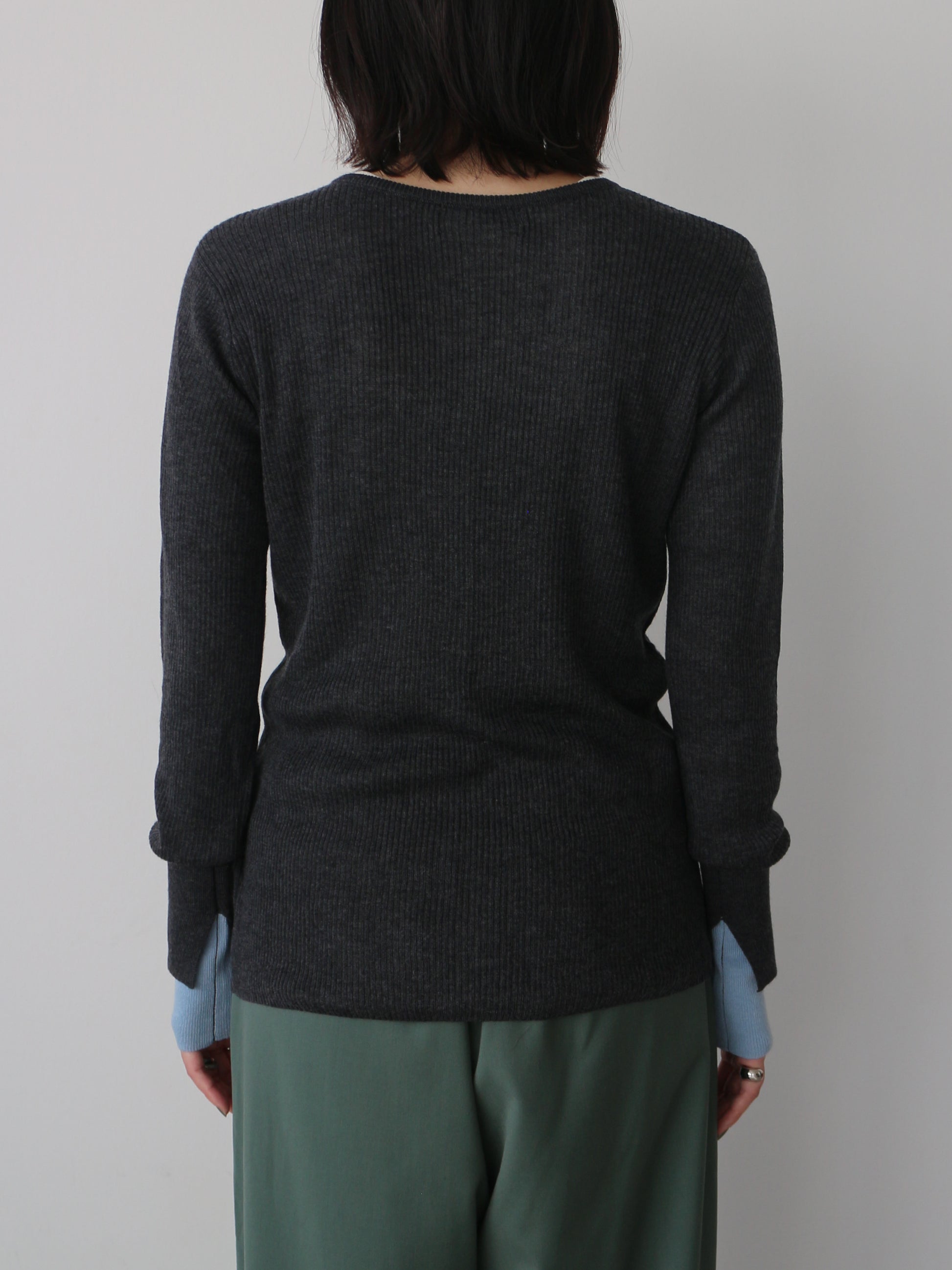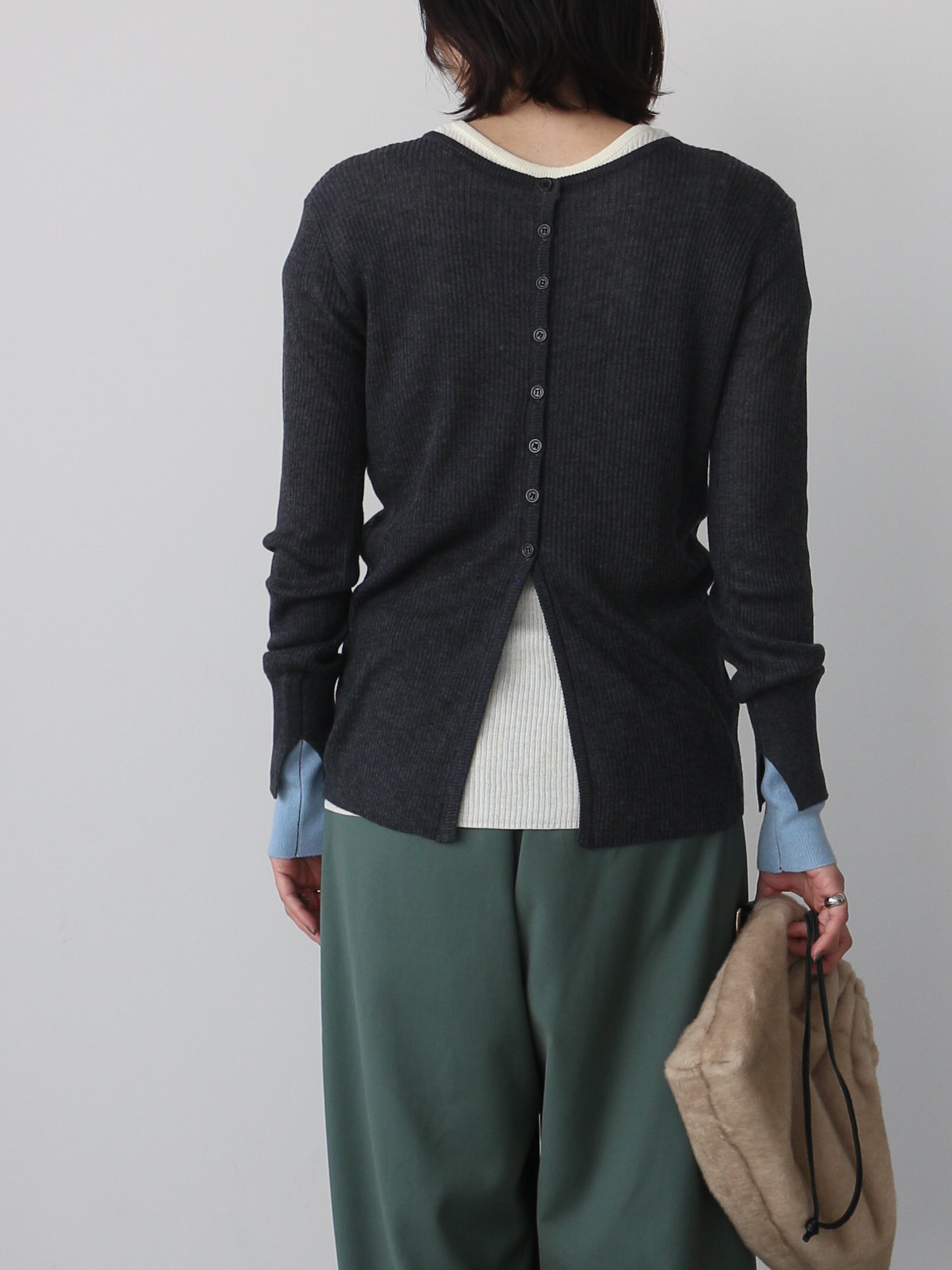 なめらかな肌触りのリブ編みが心地よく、ストレスフリーな着用感に仕上がっています。