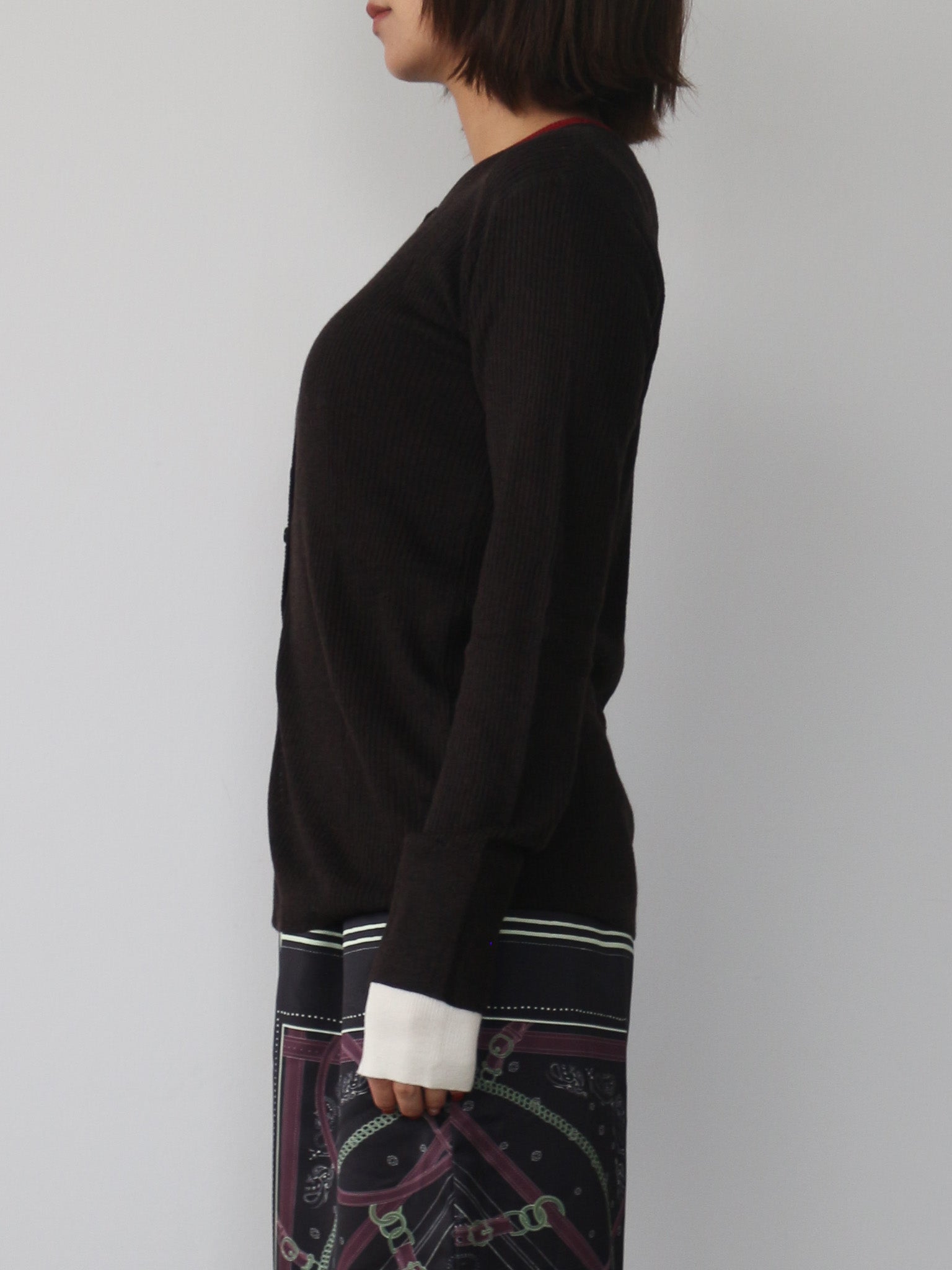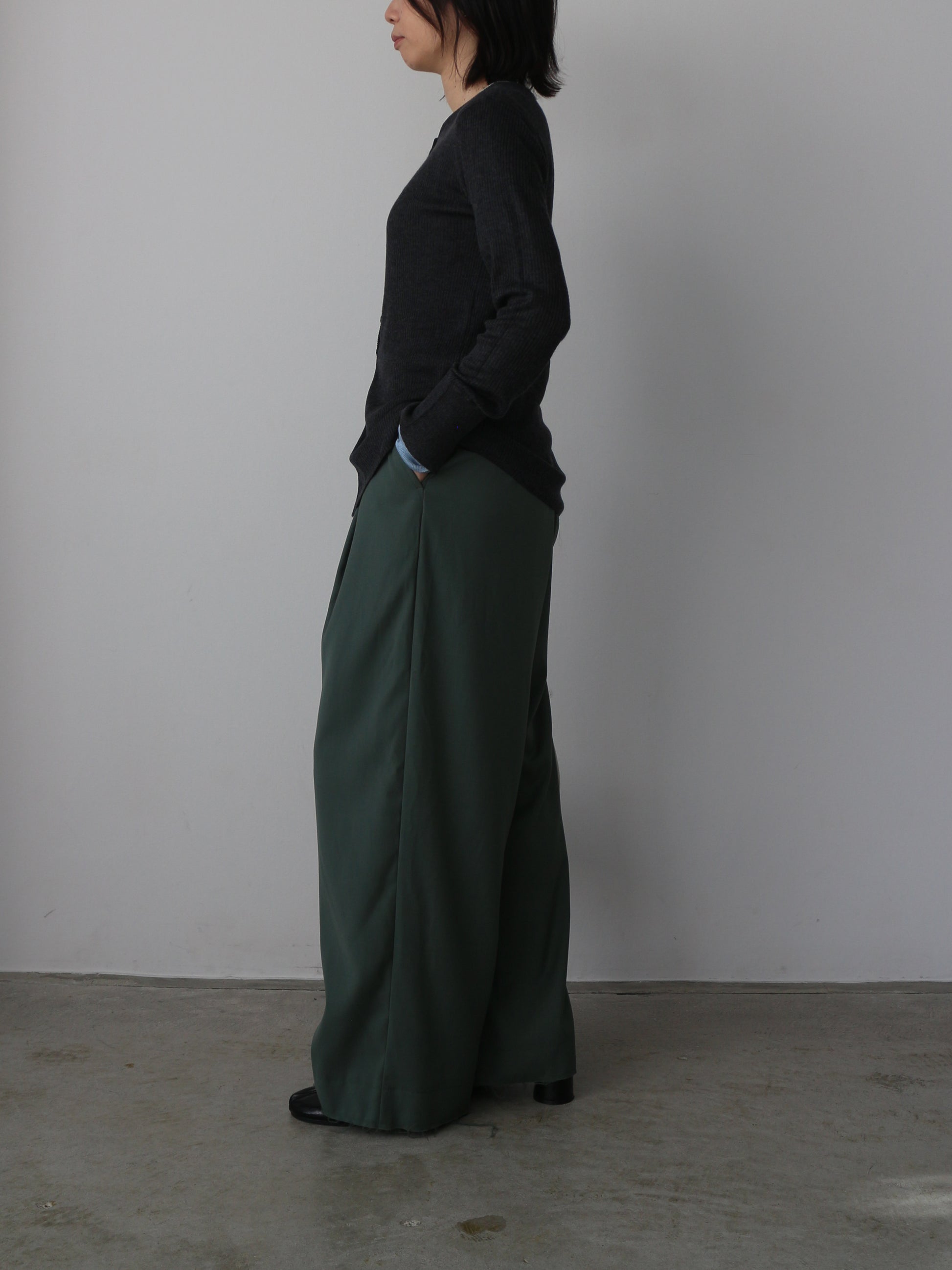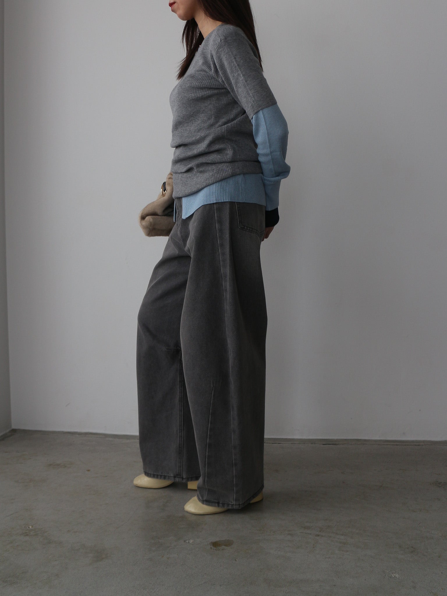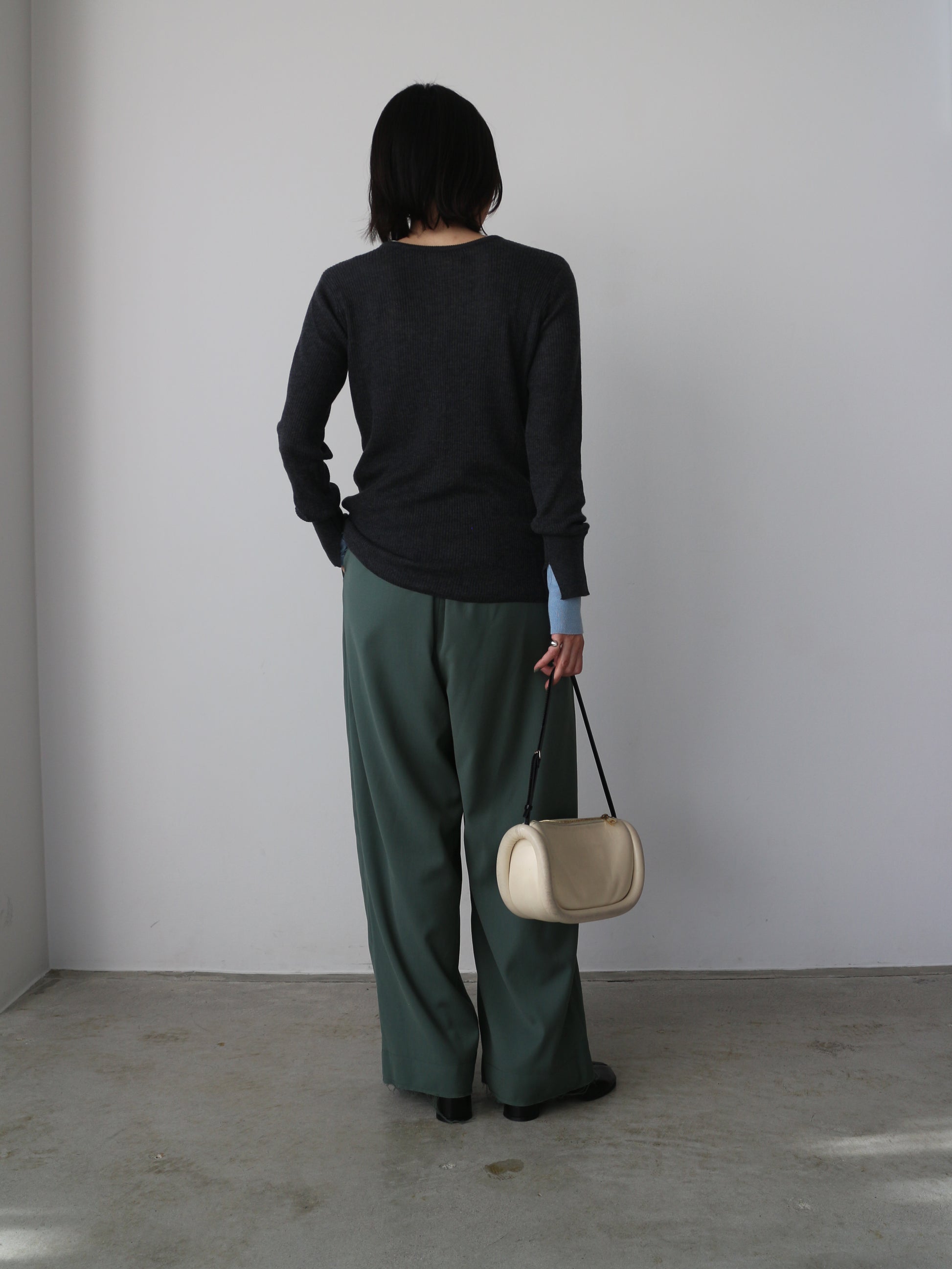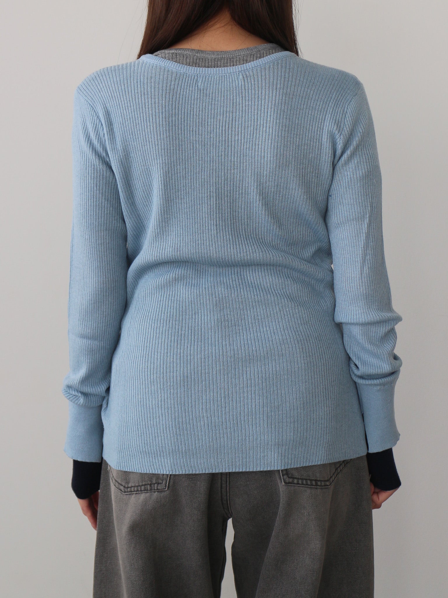 なめらかな肌触りのリブ編みが心地よく、ストレスフリーな着用感に仕上がっています。