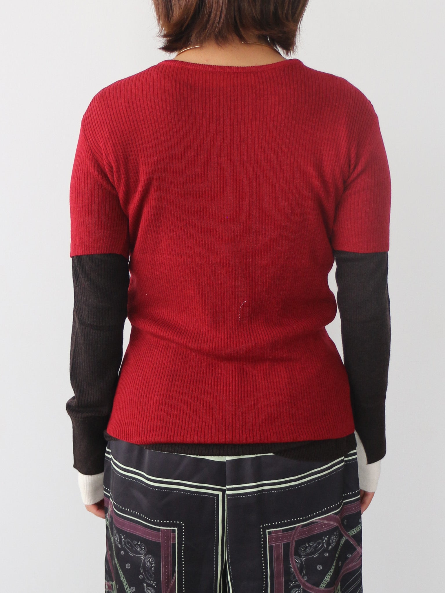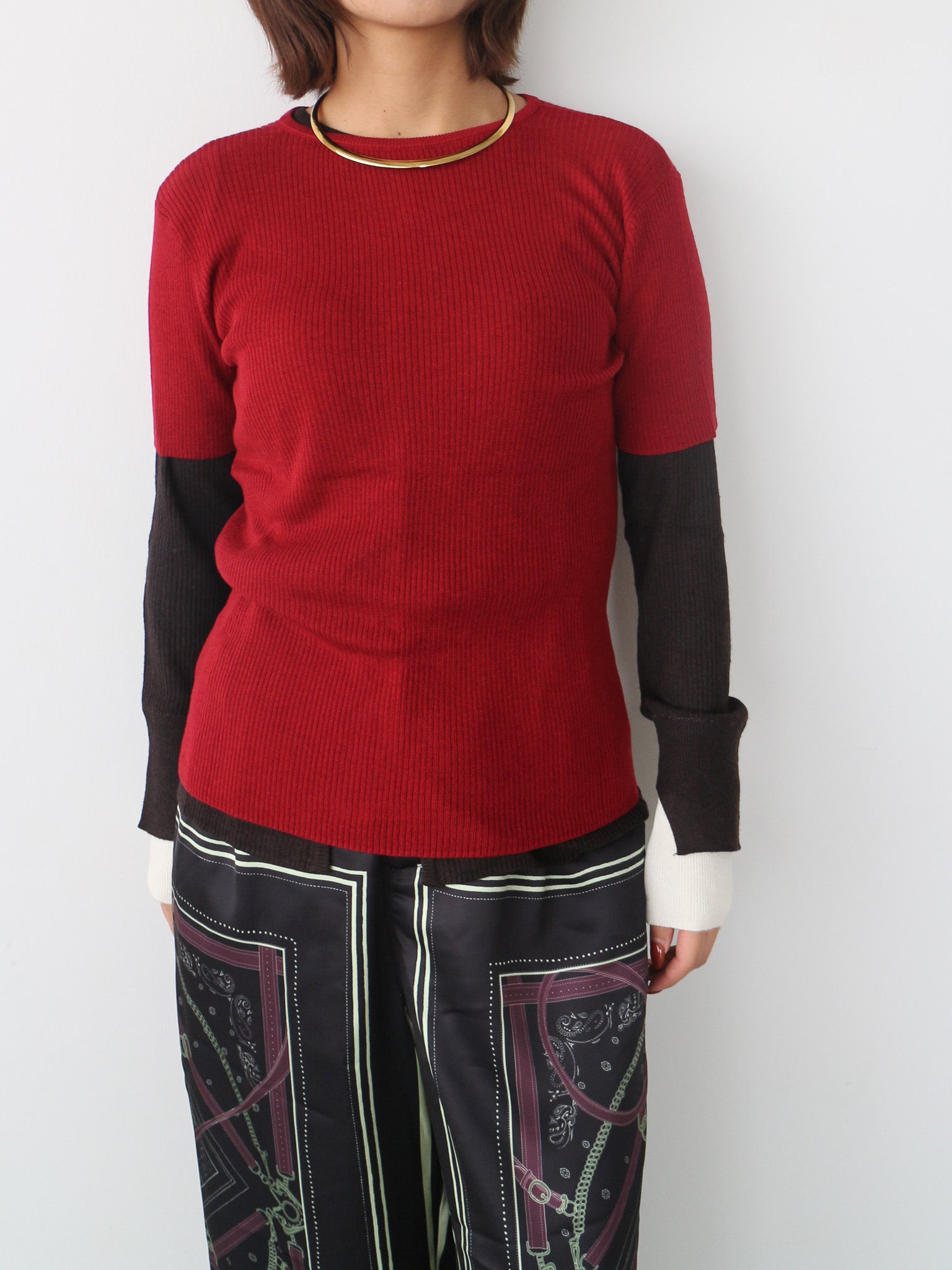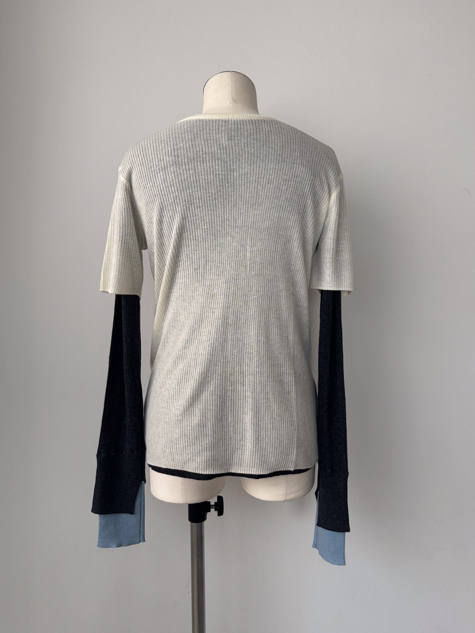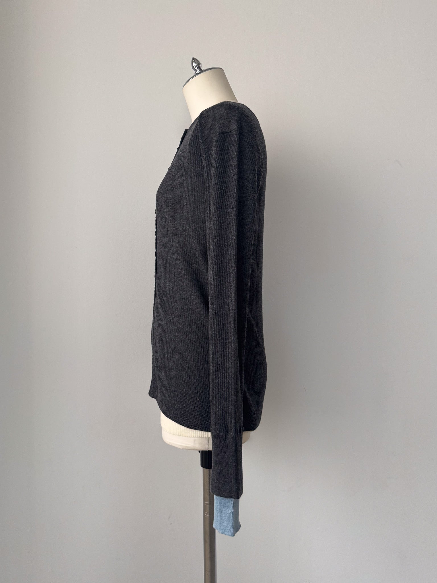 袖口にはスリットと配色仕様を入れる事でさりげない抜け感をプラス。
