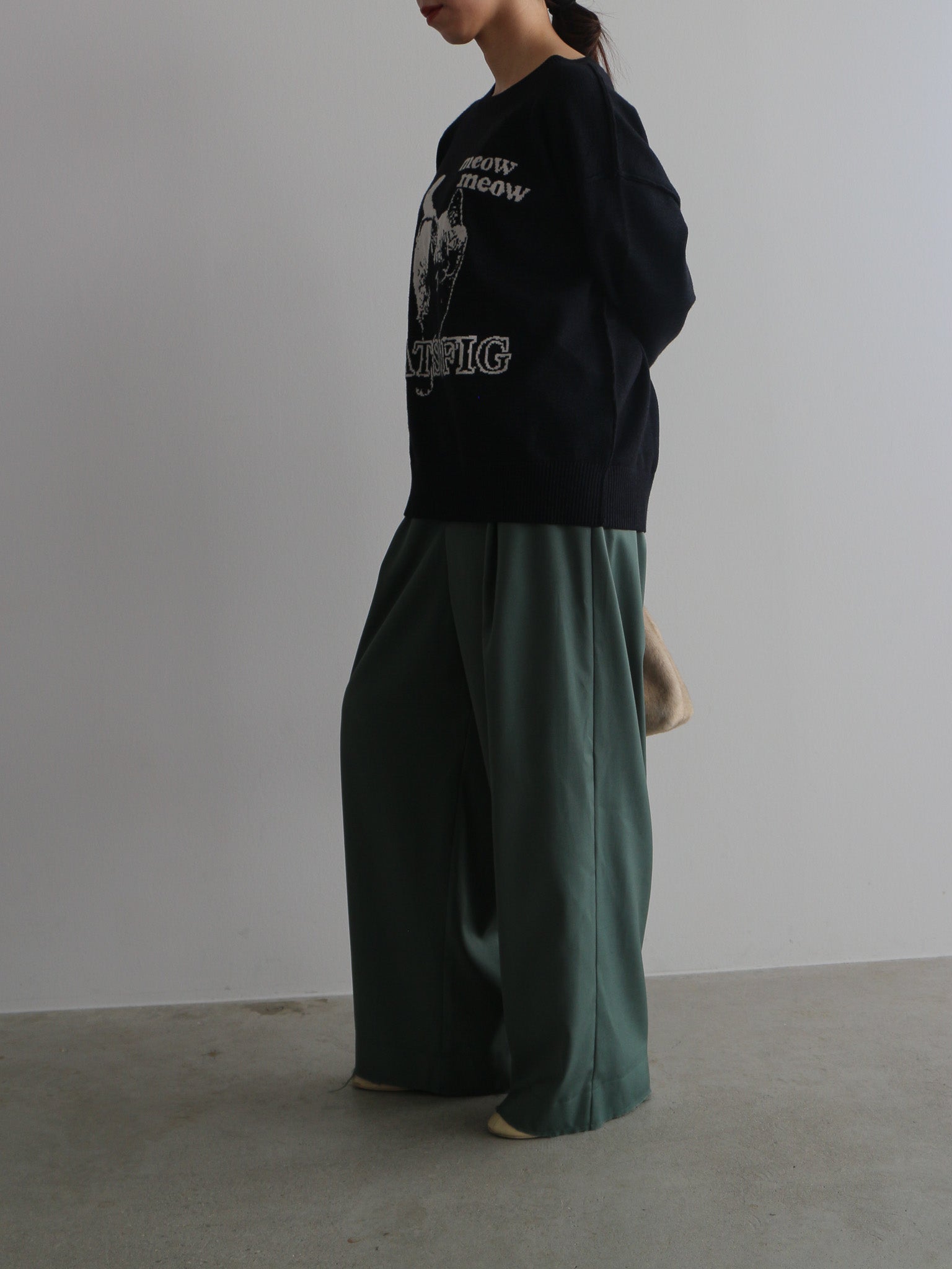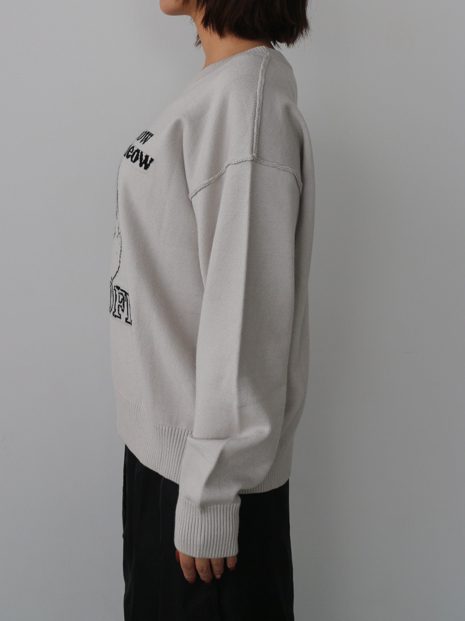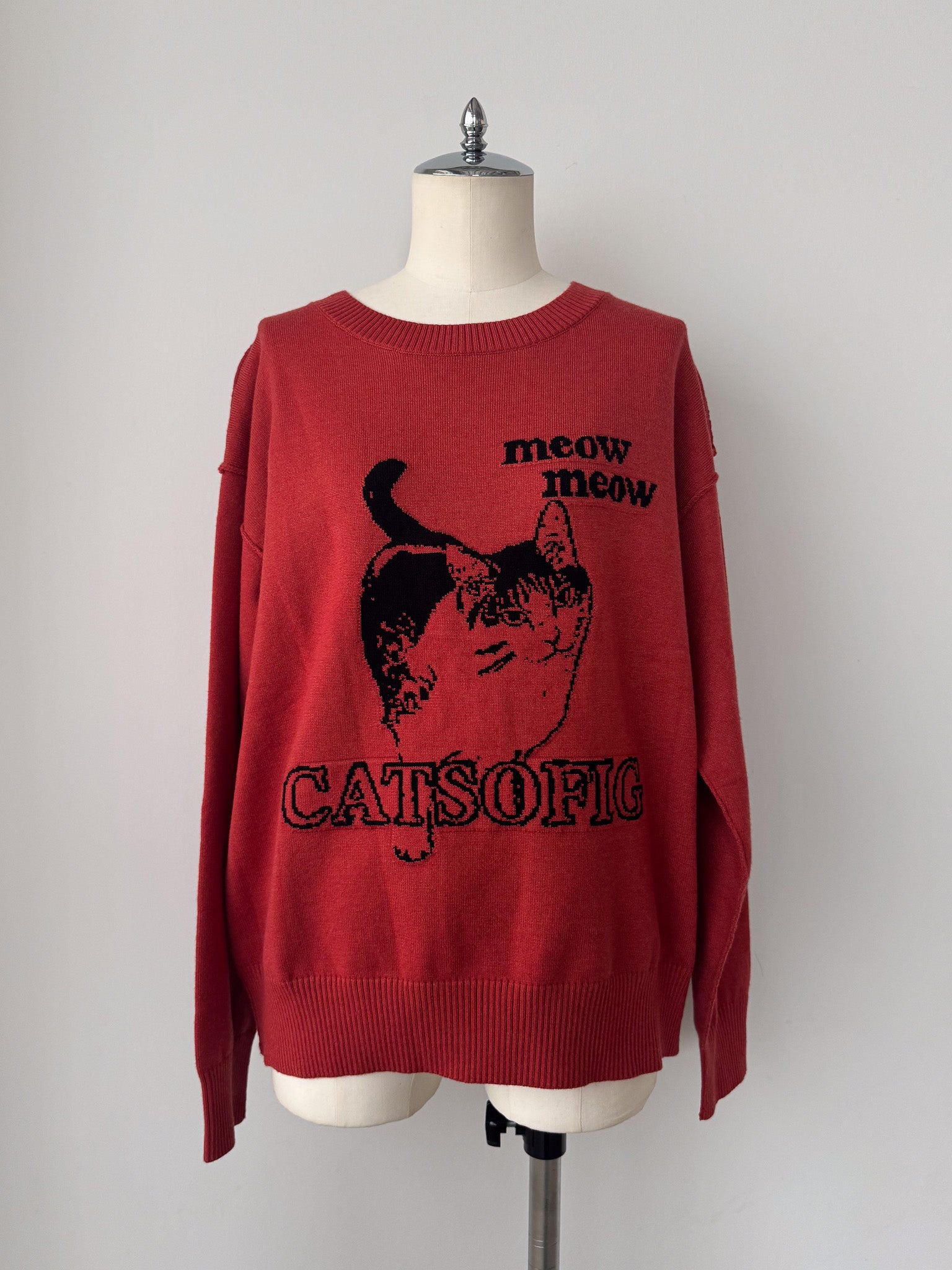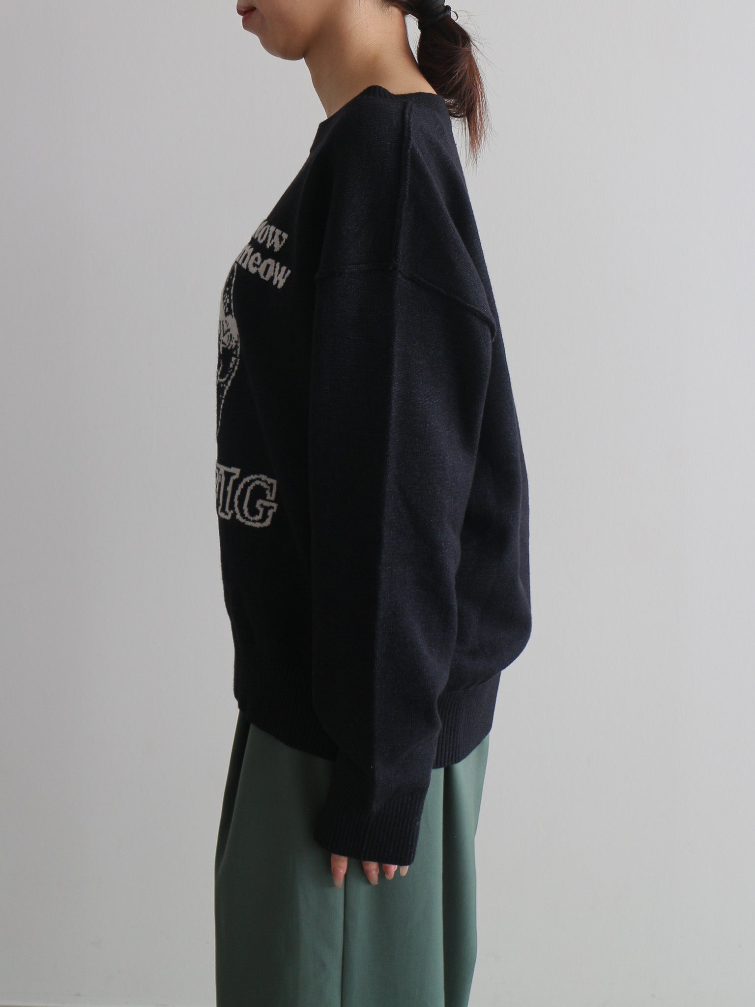 Pqranオリジナルのネコ柄を施した、1枚でスタイリングが決まる大人のデザインニット。