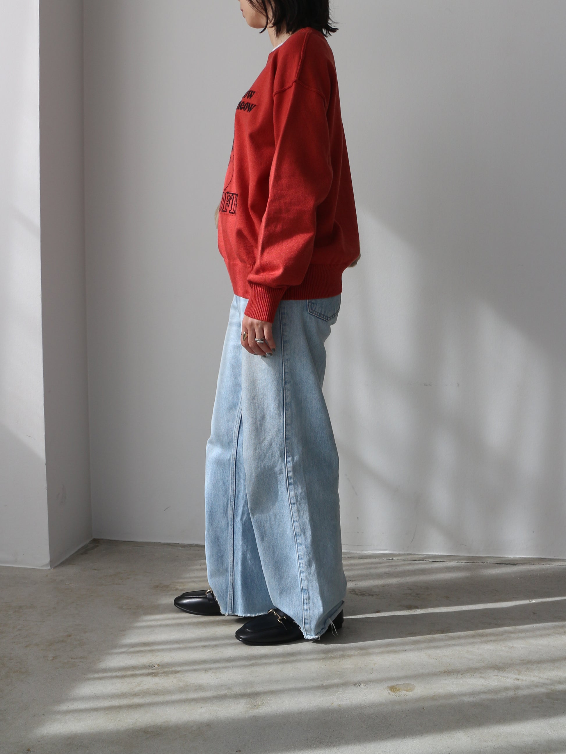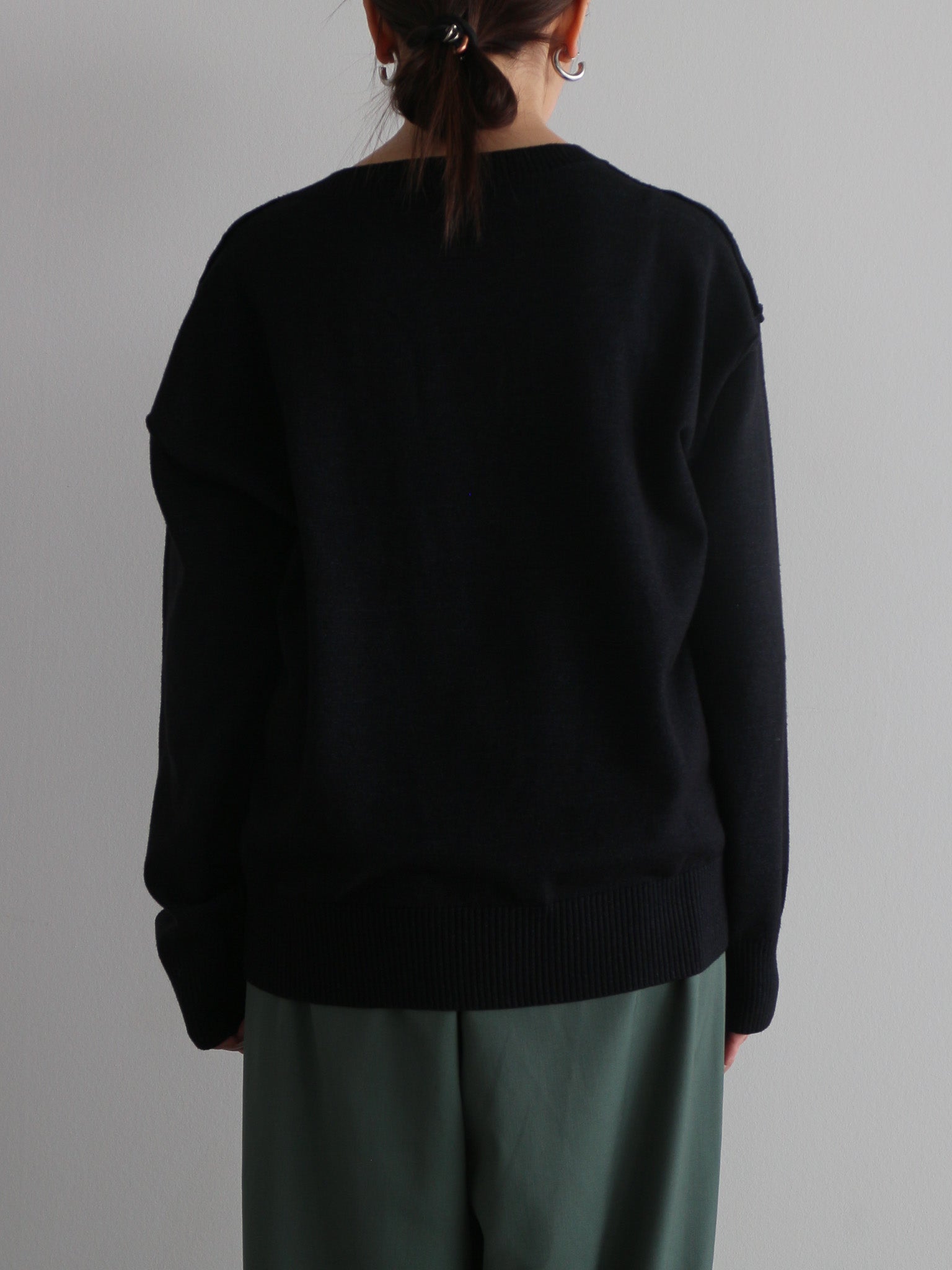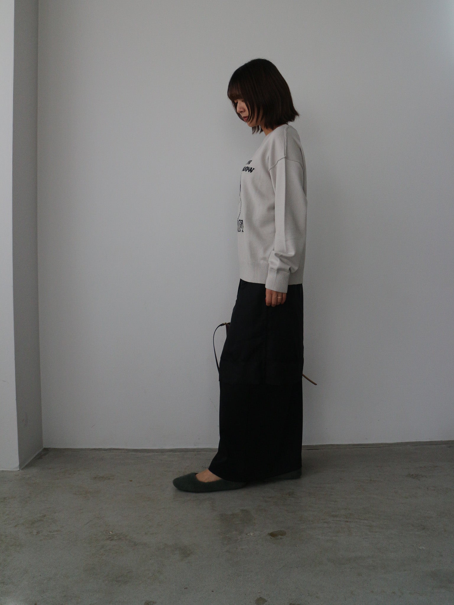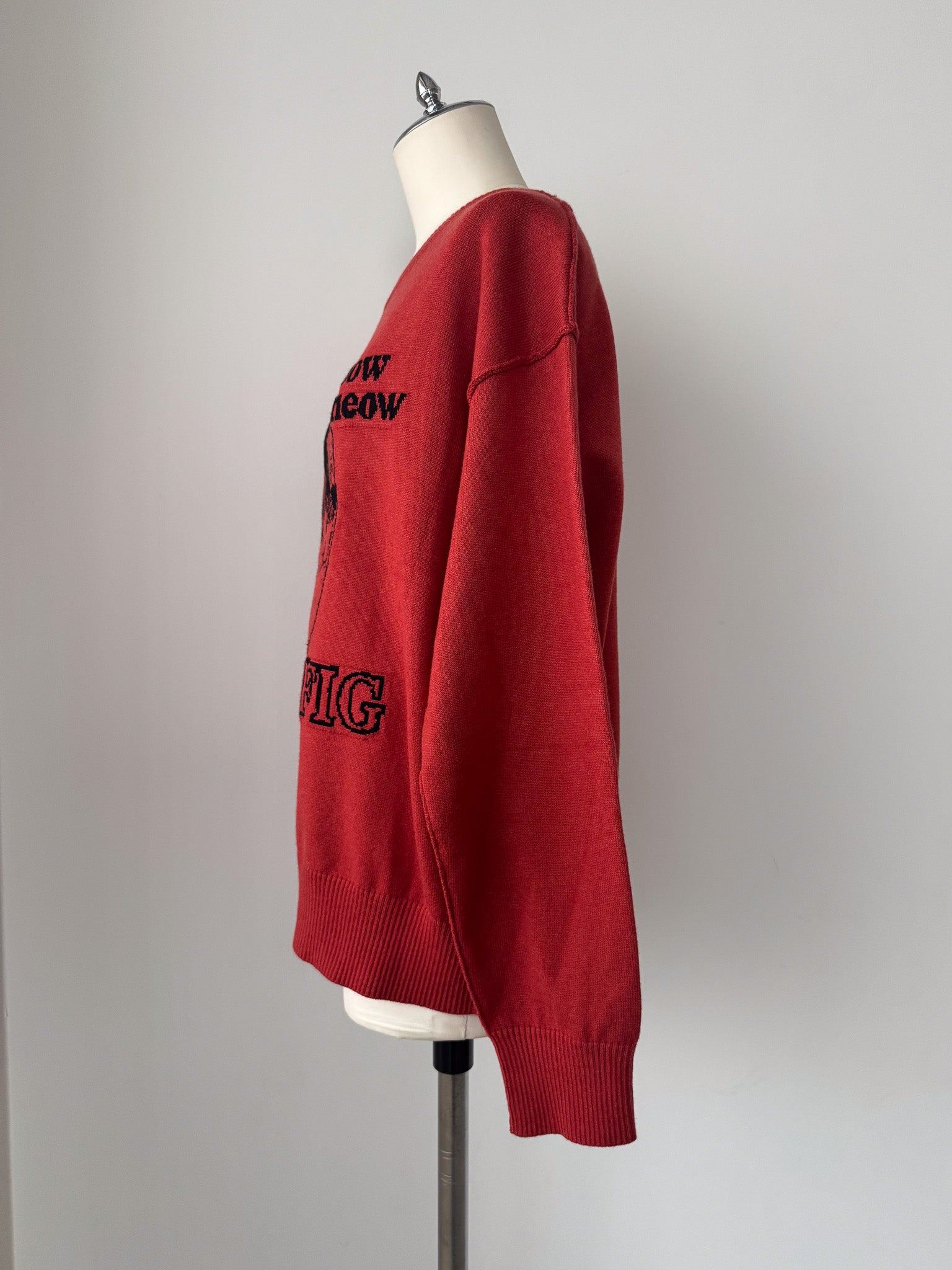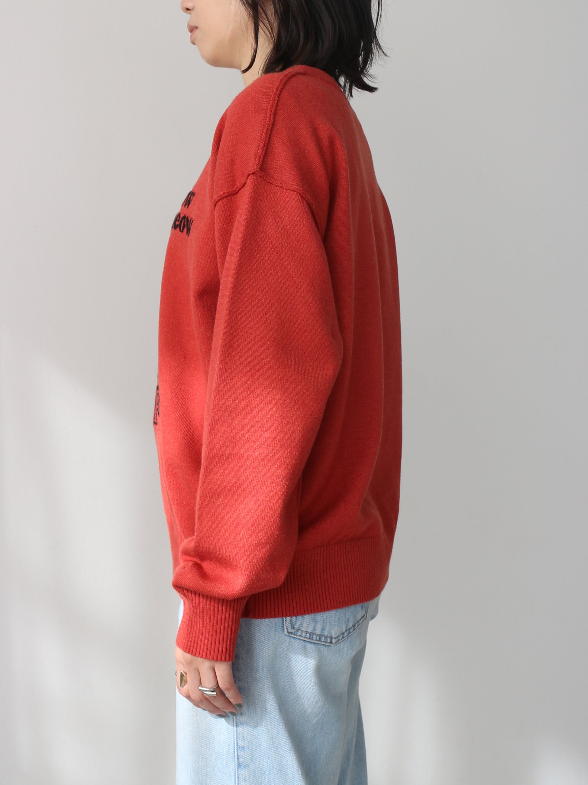 Pqranオリジナルのネコ柄を施した、1枚でスタイリングが決まる大人のデザインニット。