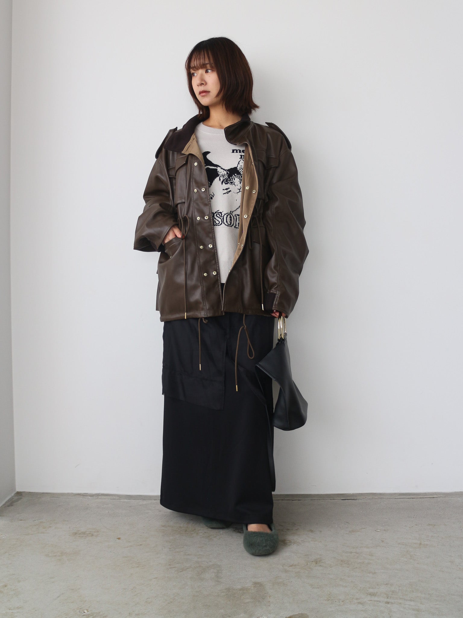 オーバーシルエットが体型をカバーしながらも、すっきりとした印象を与えてくれます。。