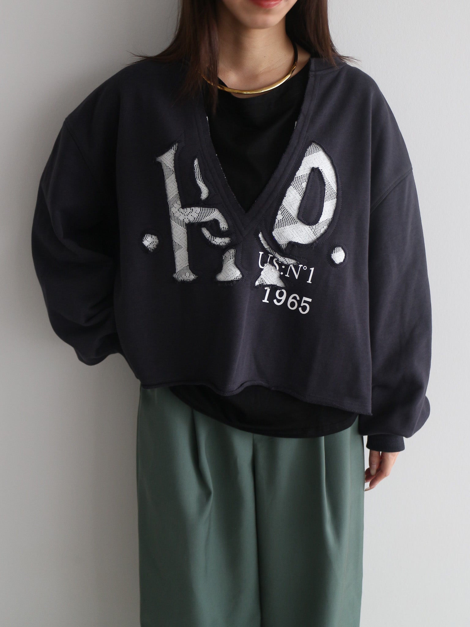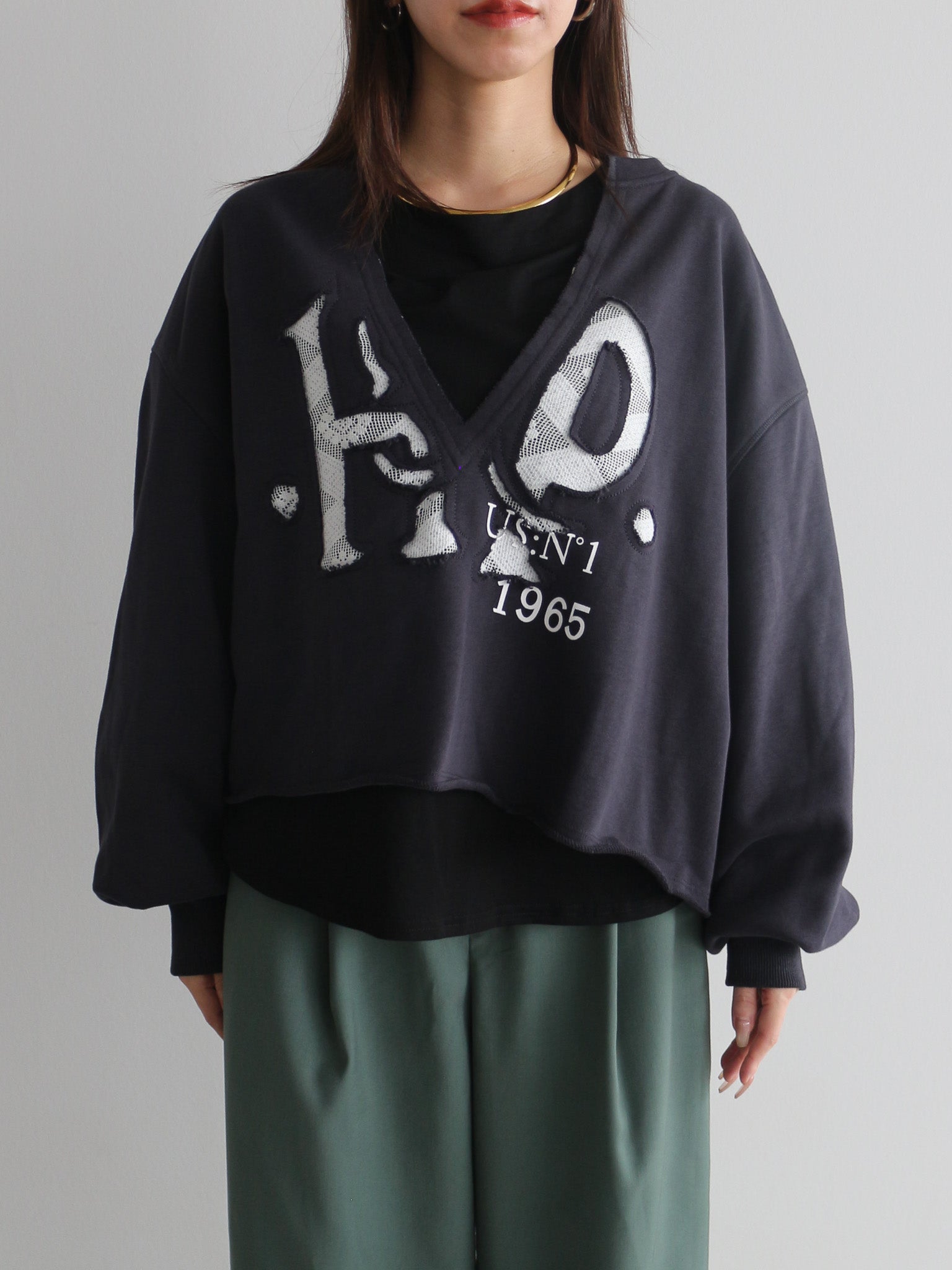ロゴデザインとフェミニンなレースのバランスが絶妙なスウェット。