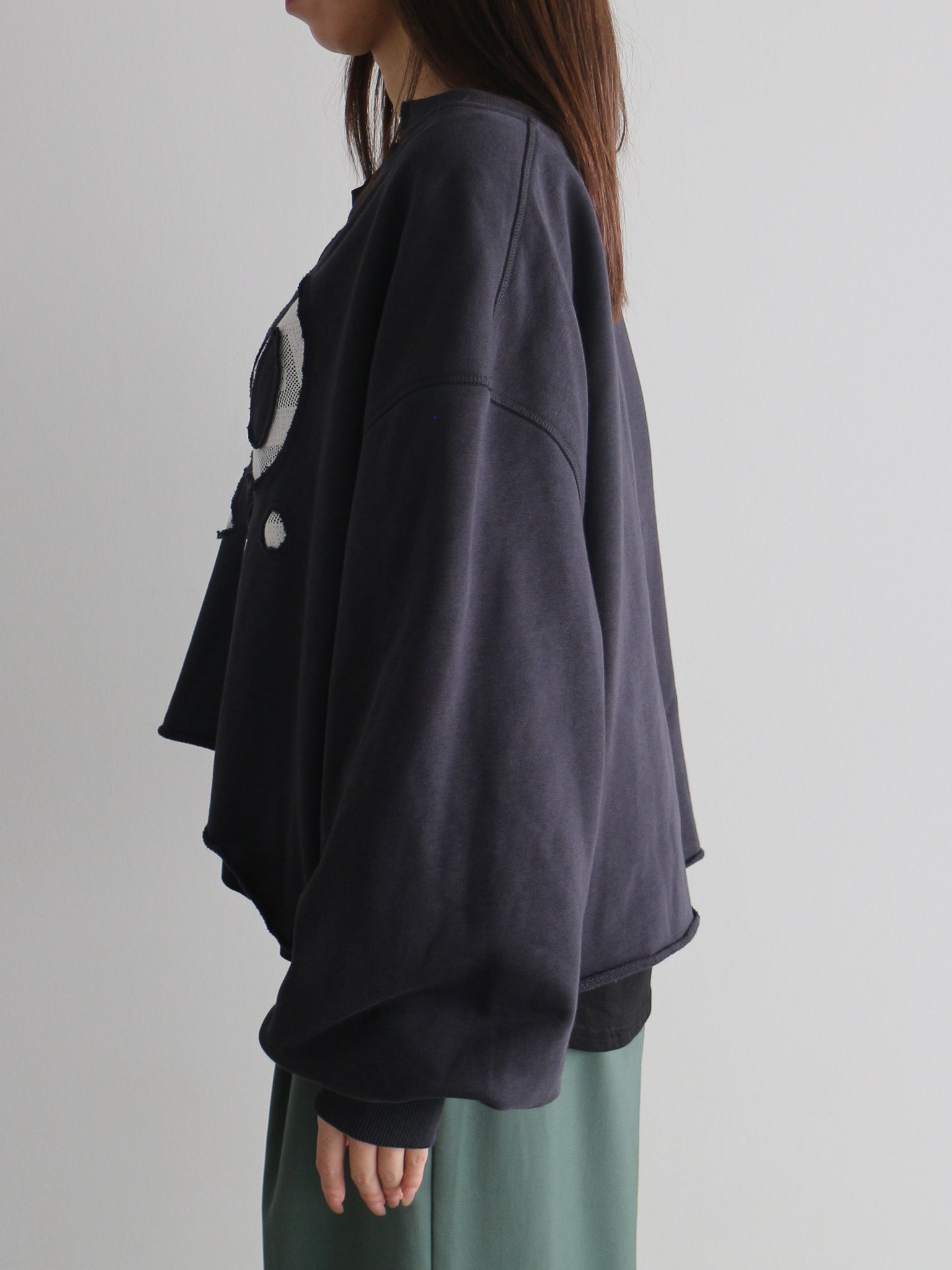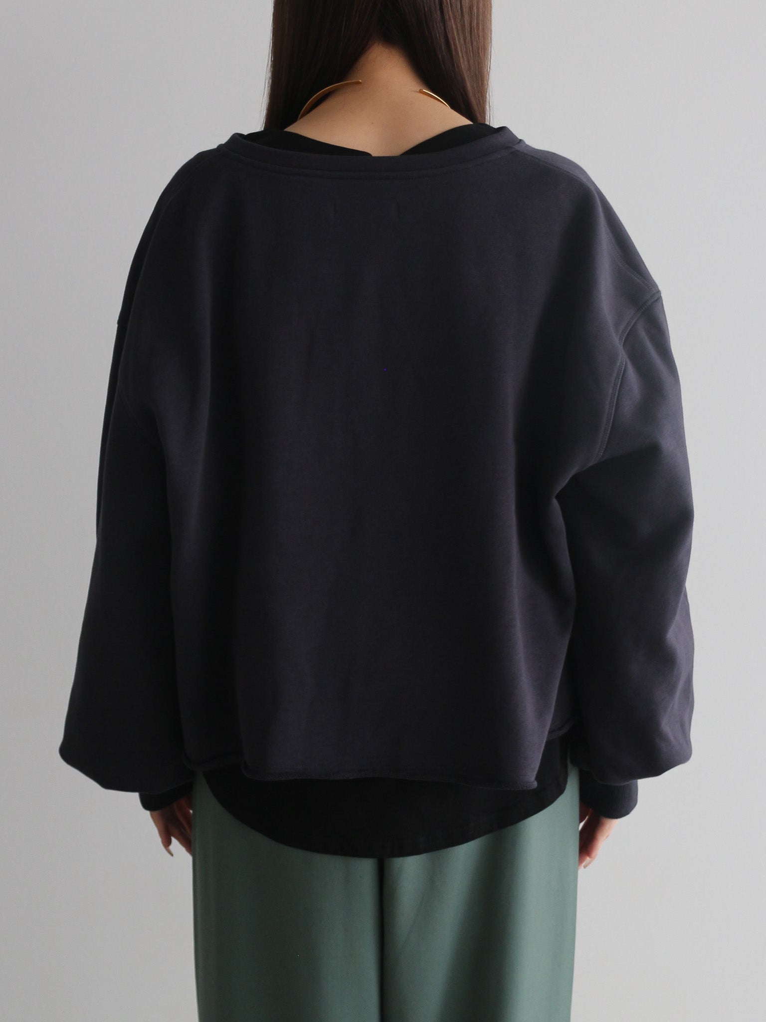 程よくゆとりのあるシルエットは、体のラインを拾わず、リラックスした着心地。