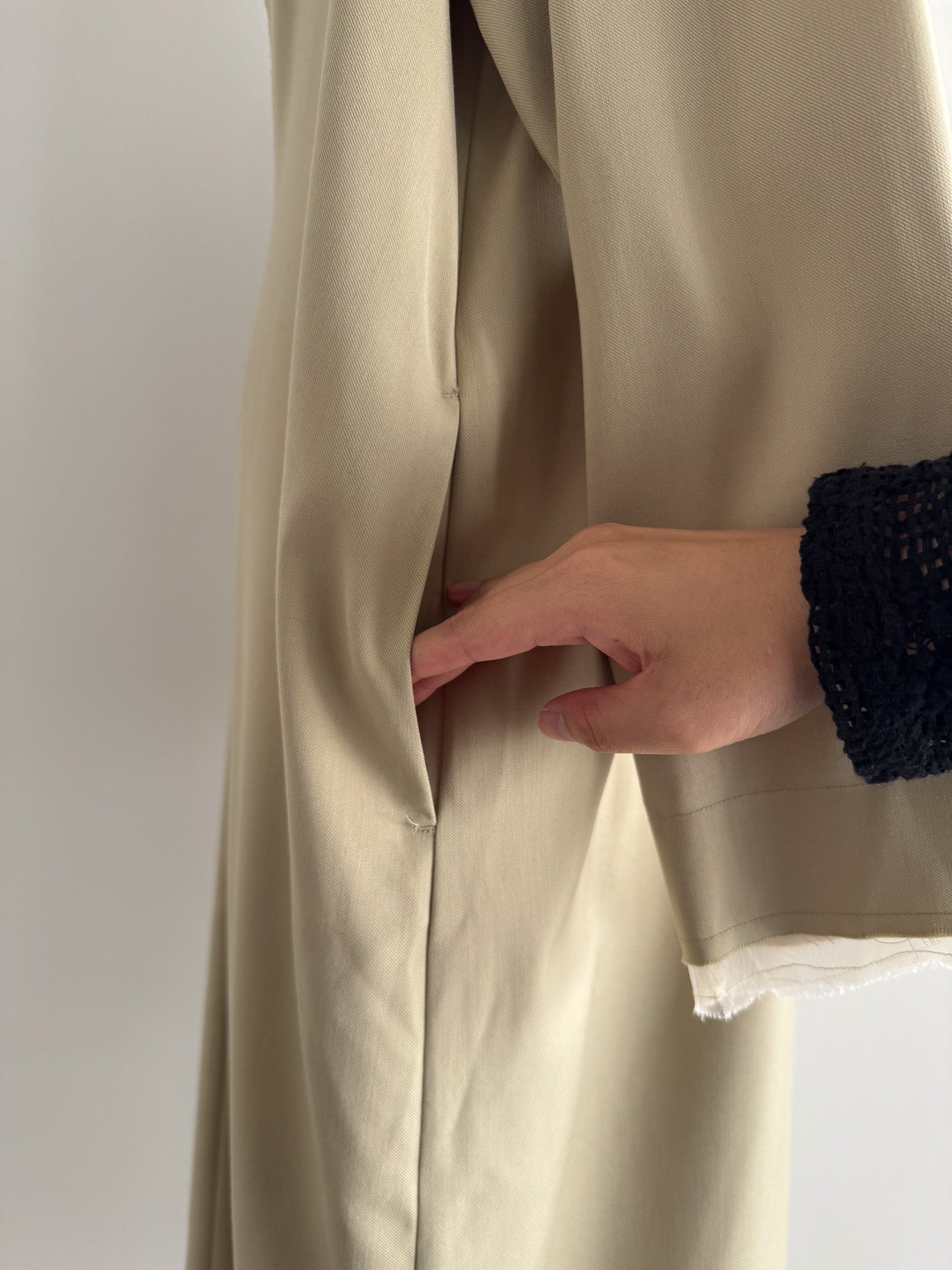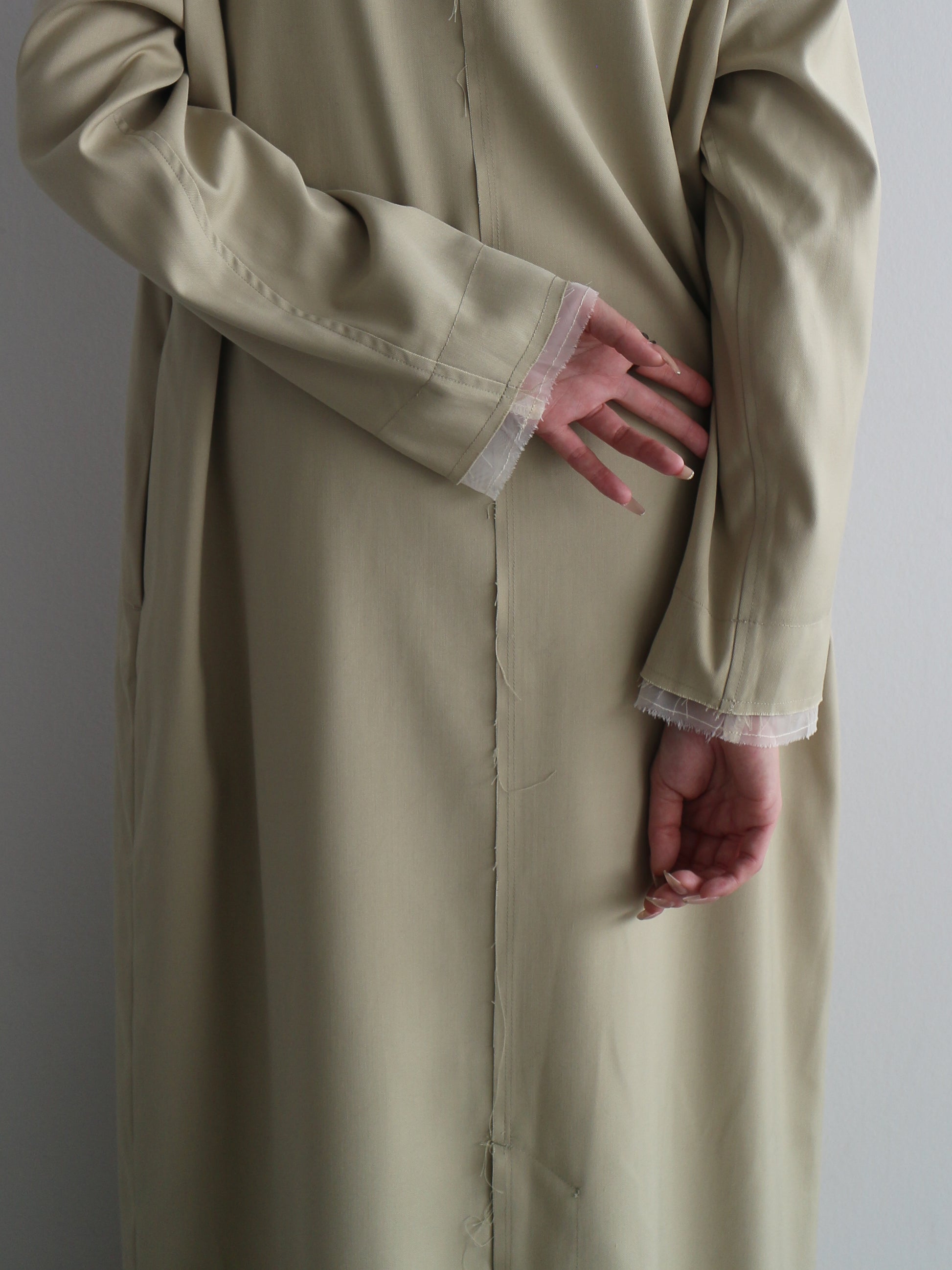 切りっぱなしのカットオフディテールを施し、抜け感をプラス。