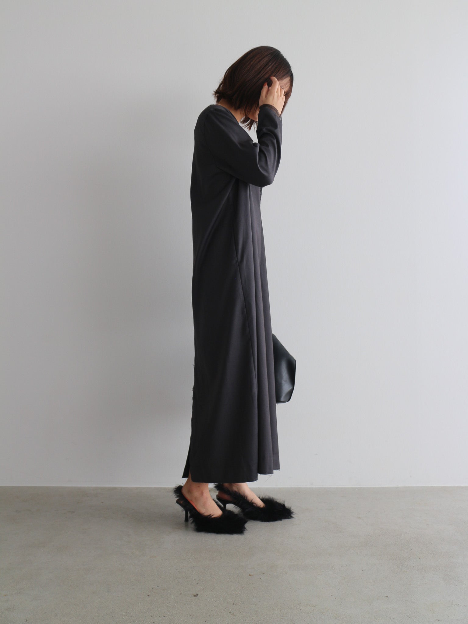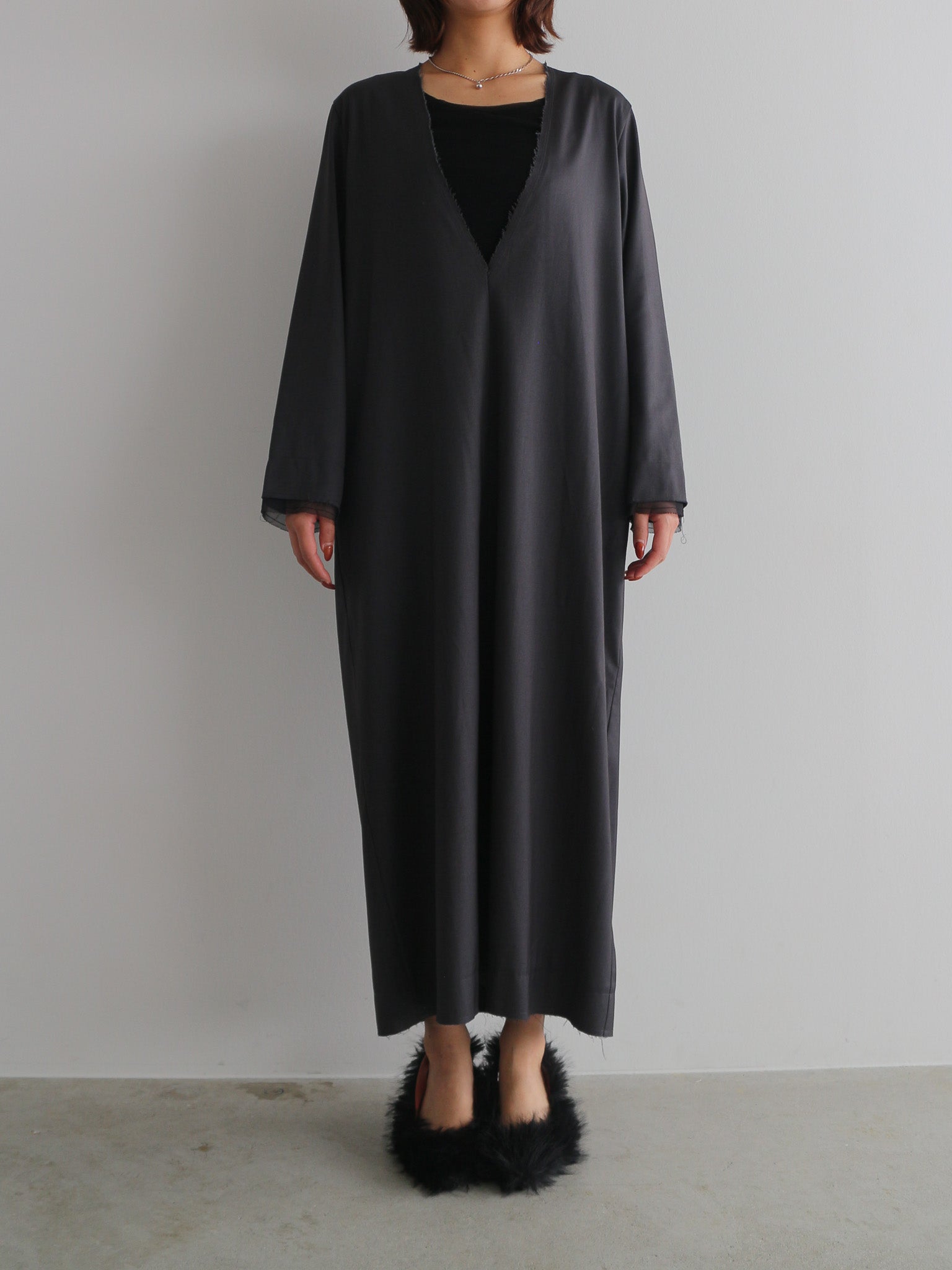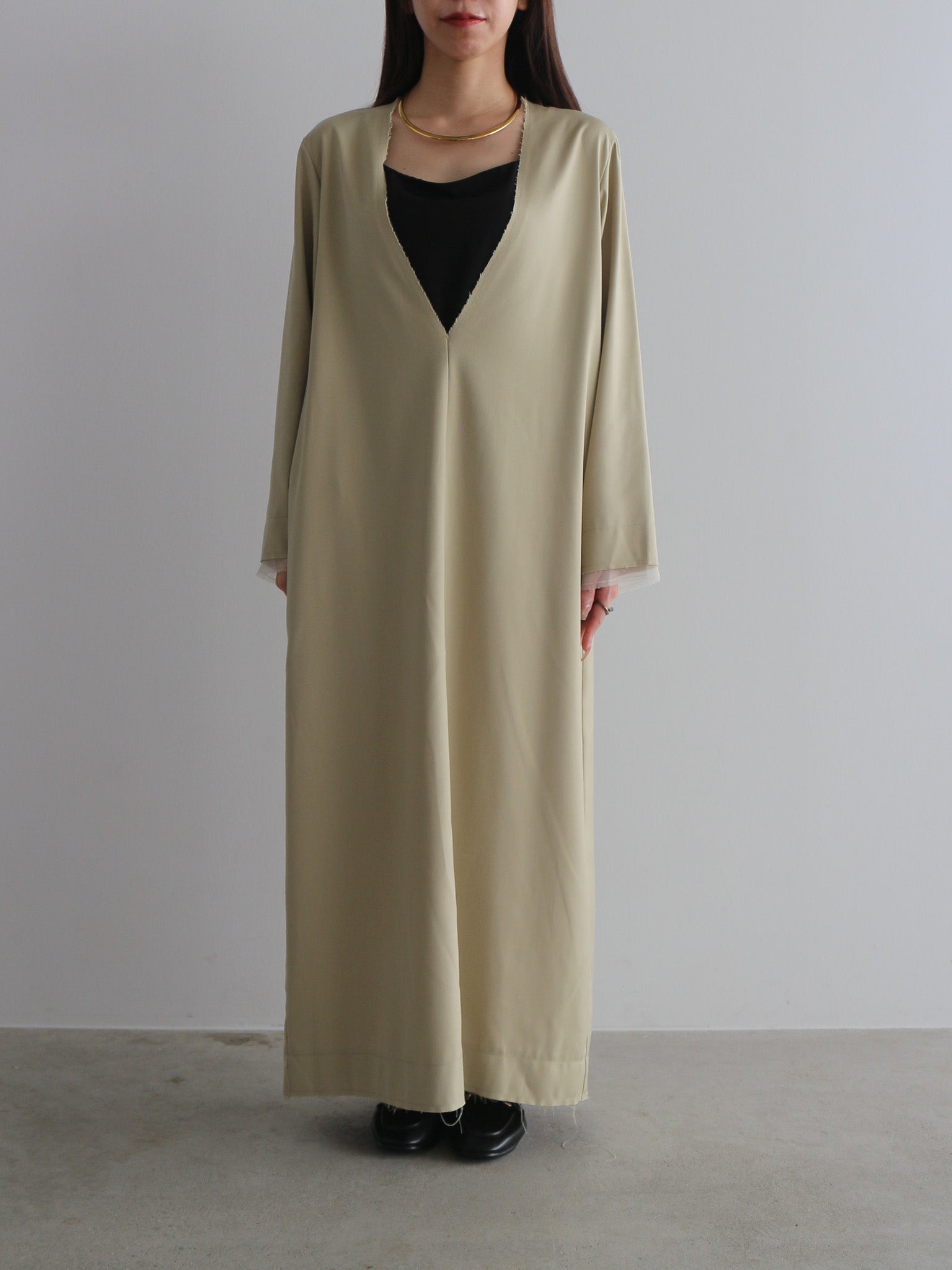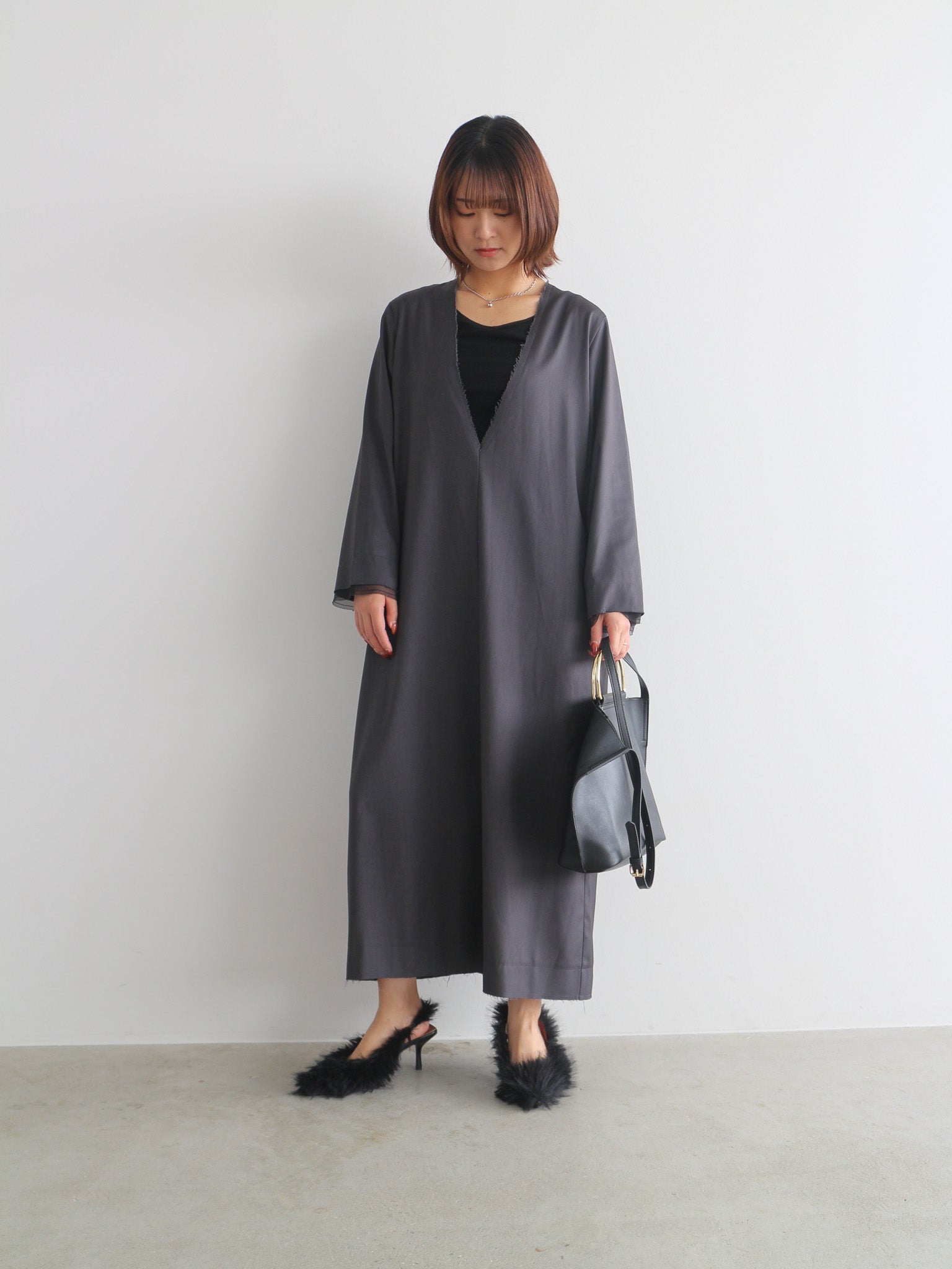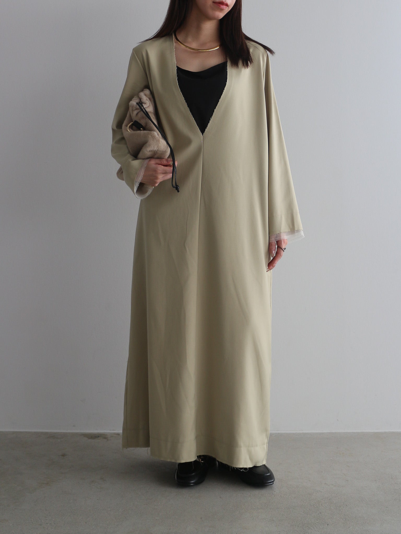カットオフディテールがアクセントのVネックワンピース。