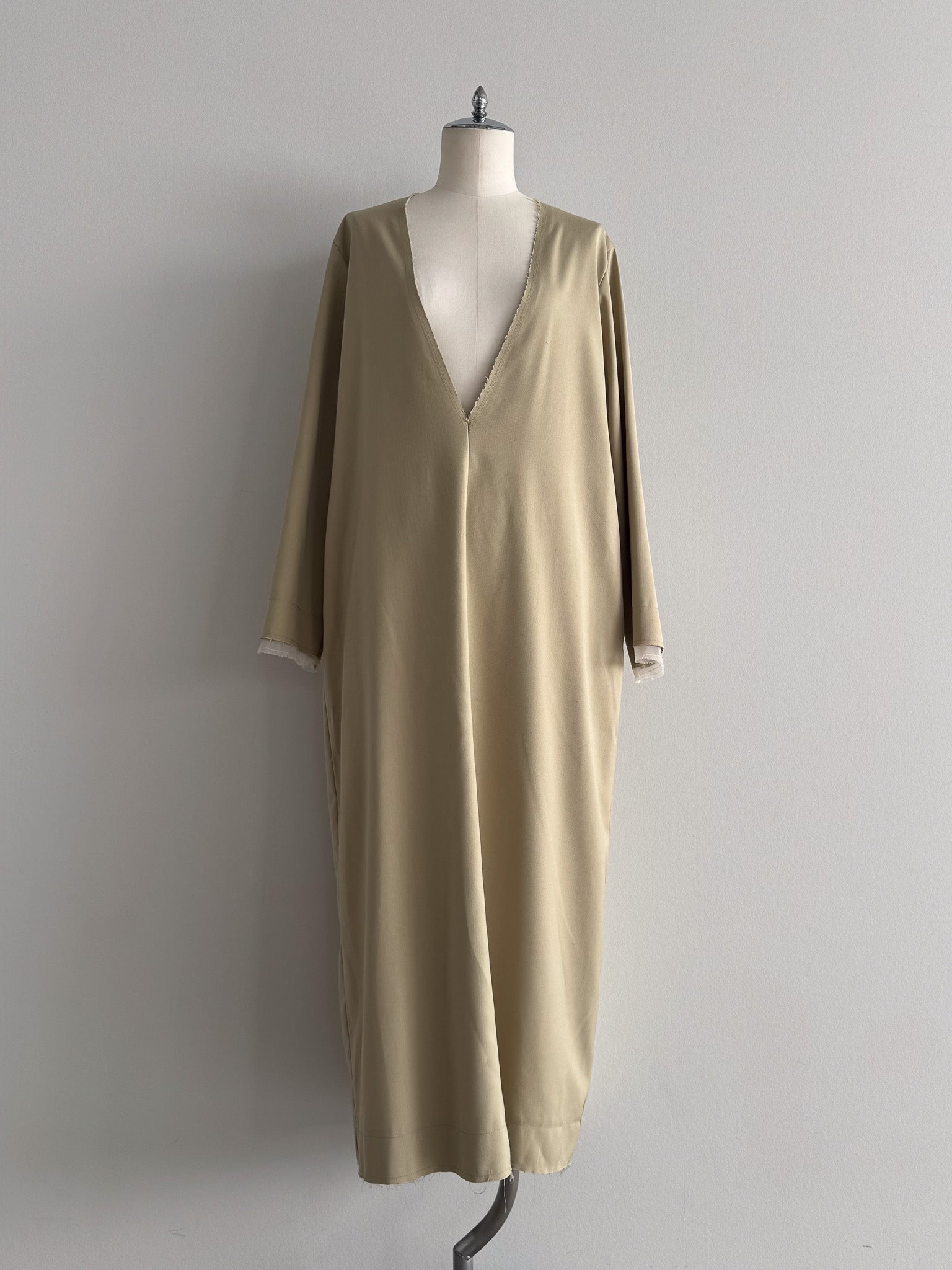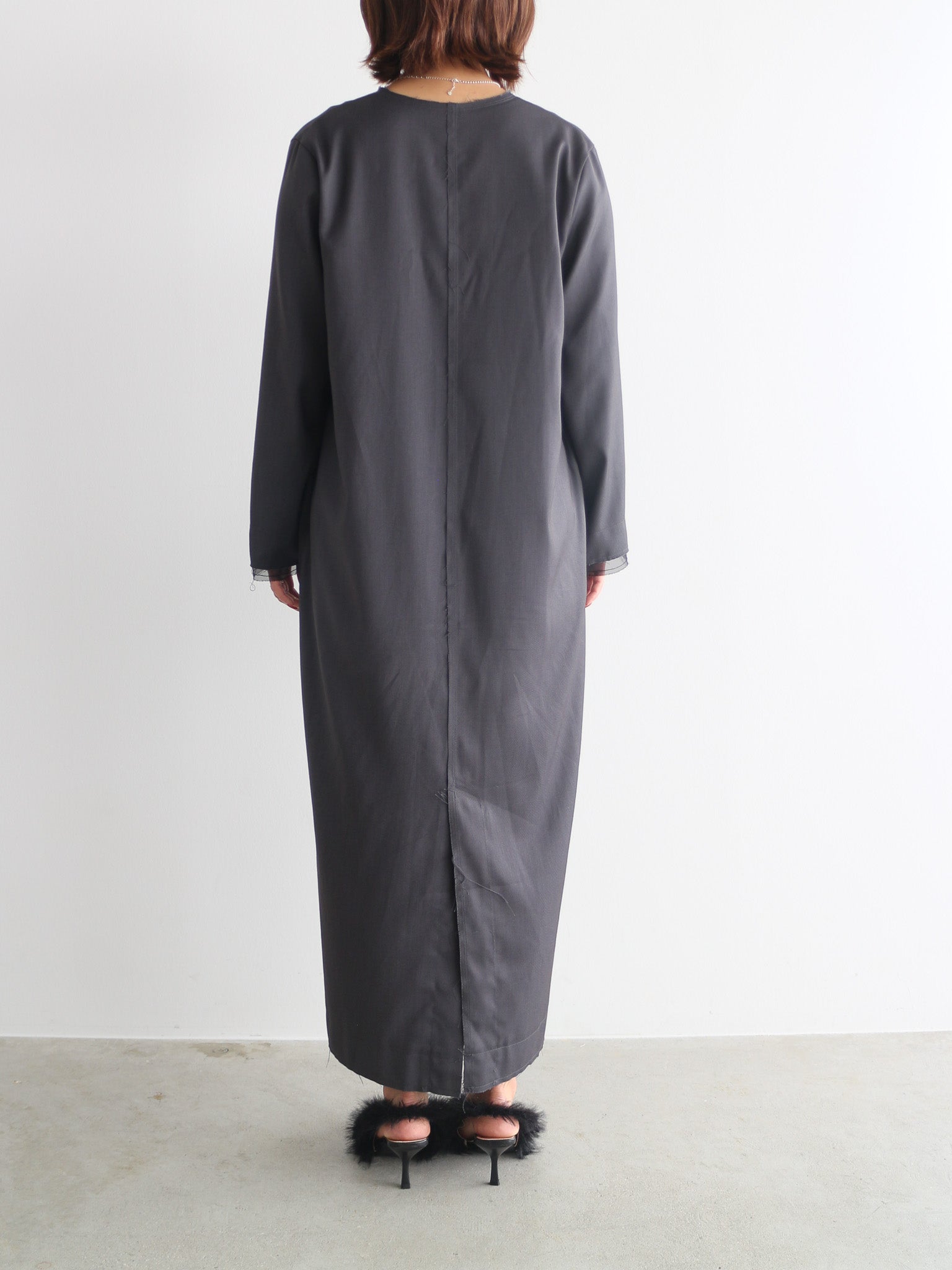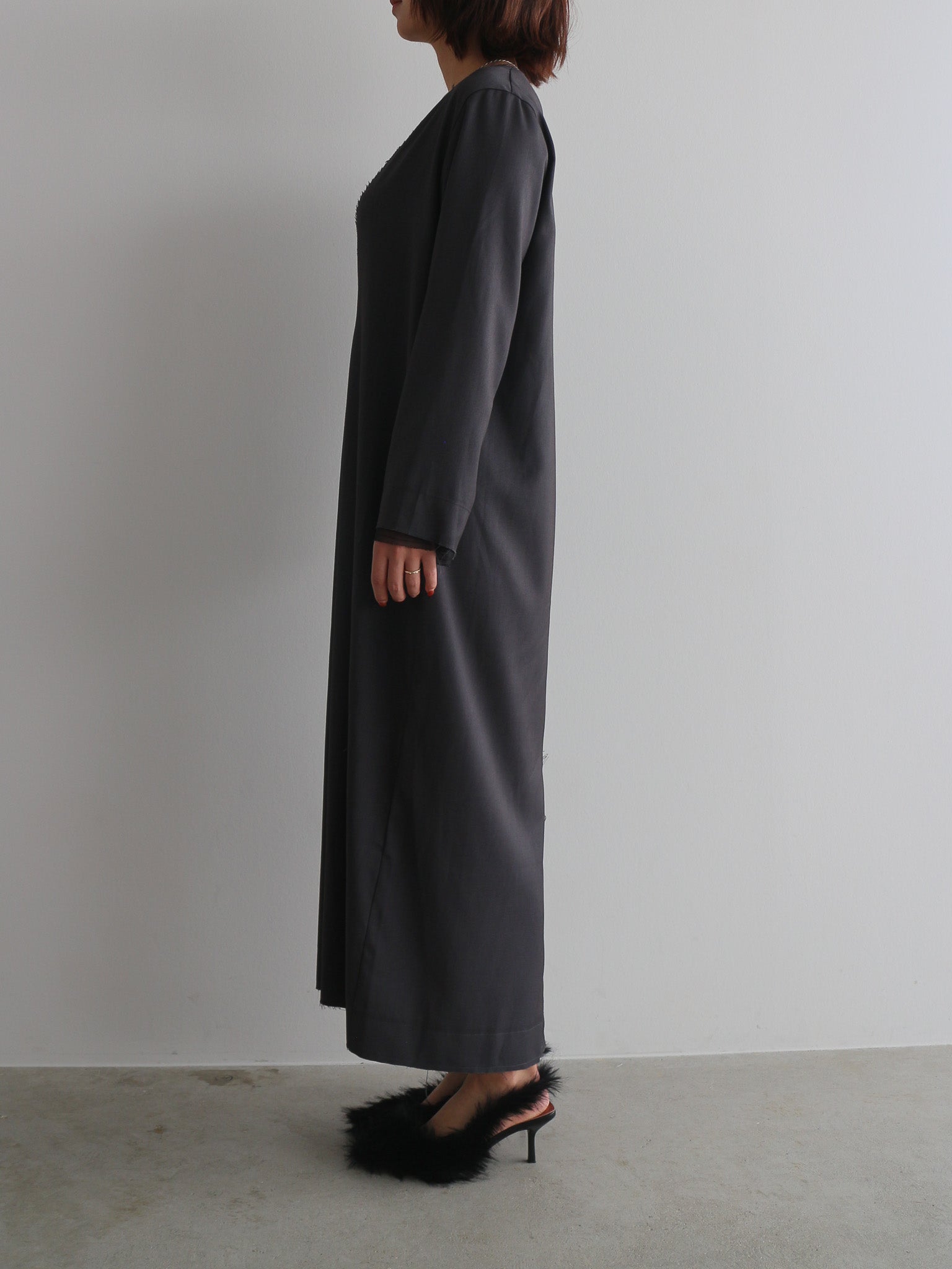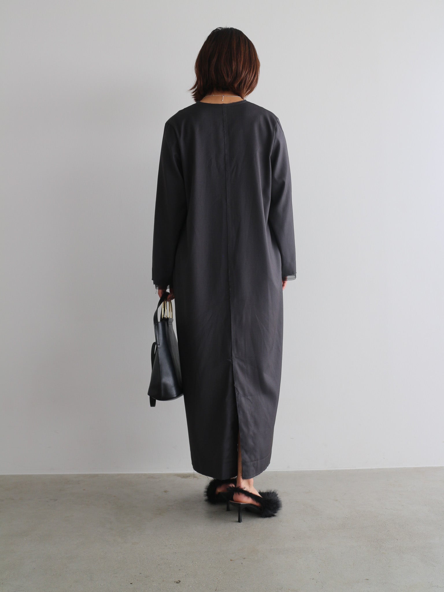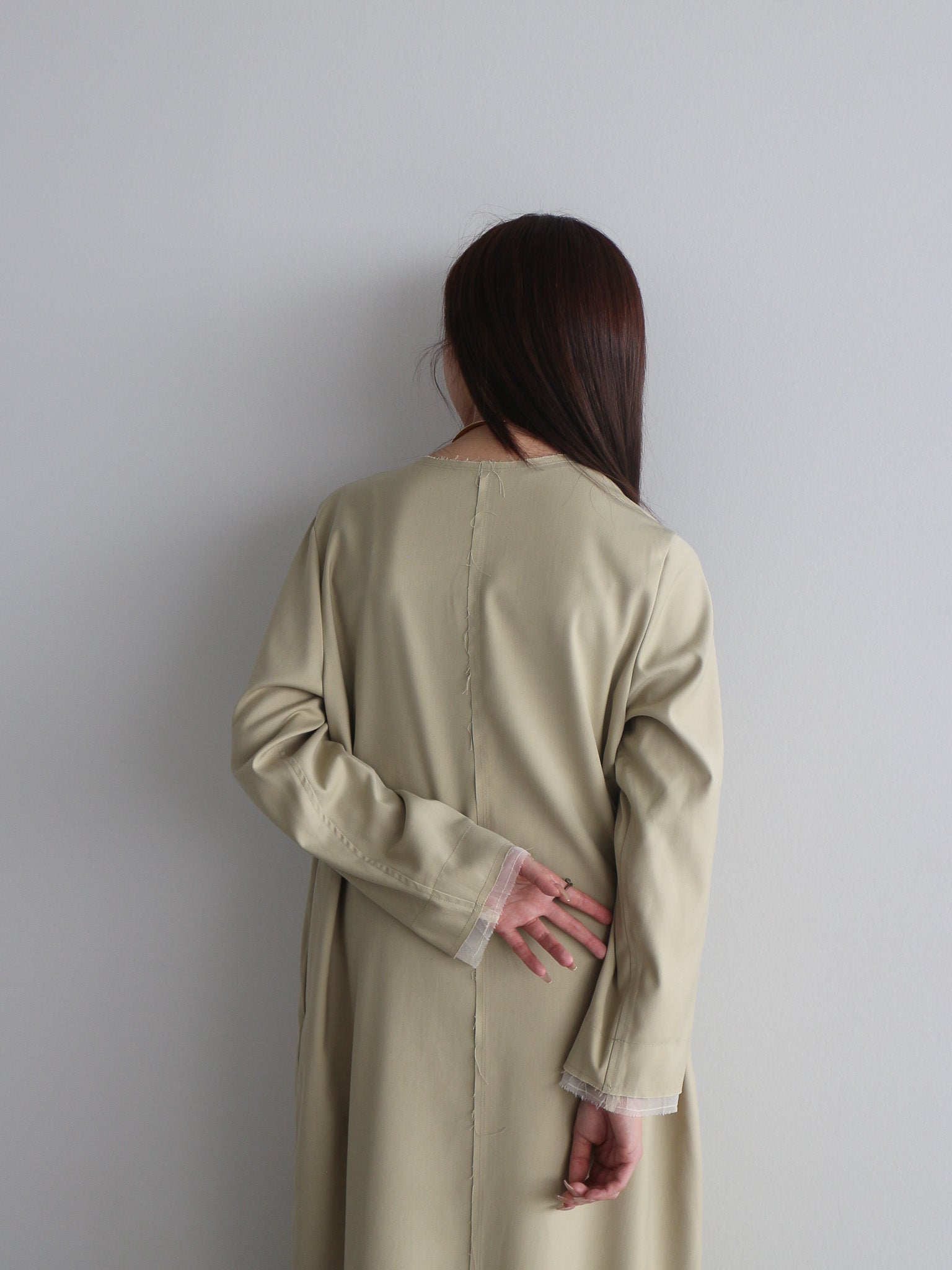 カットオフディテールがアクセントのVネックワンピース。