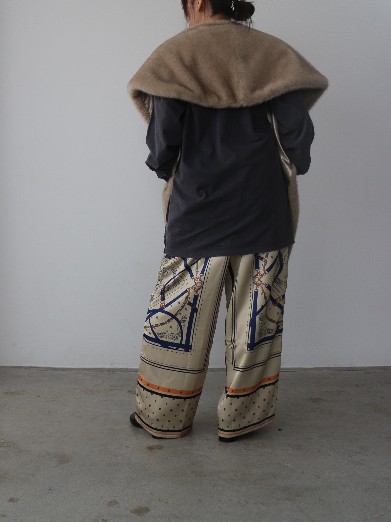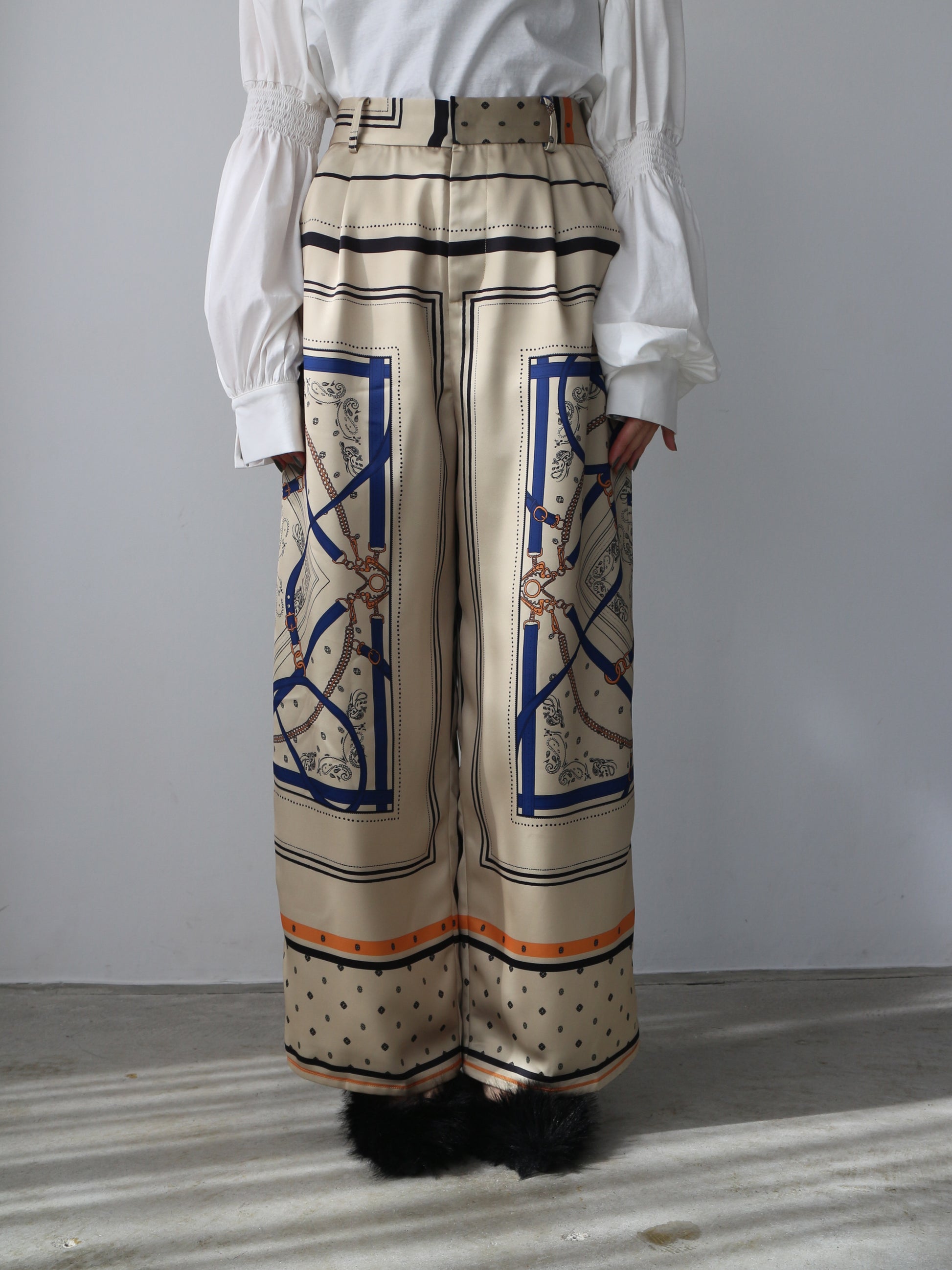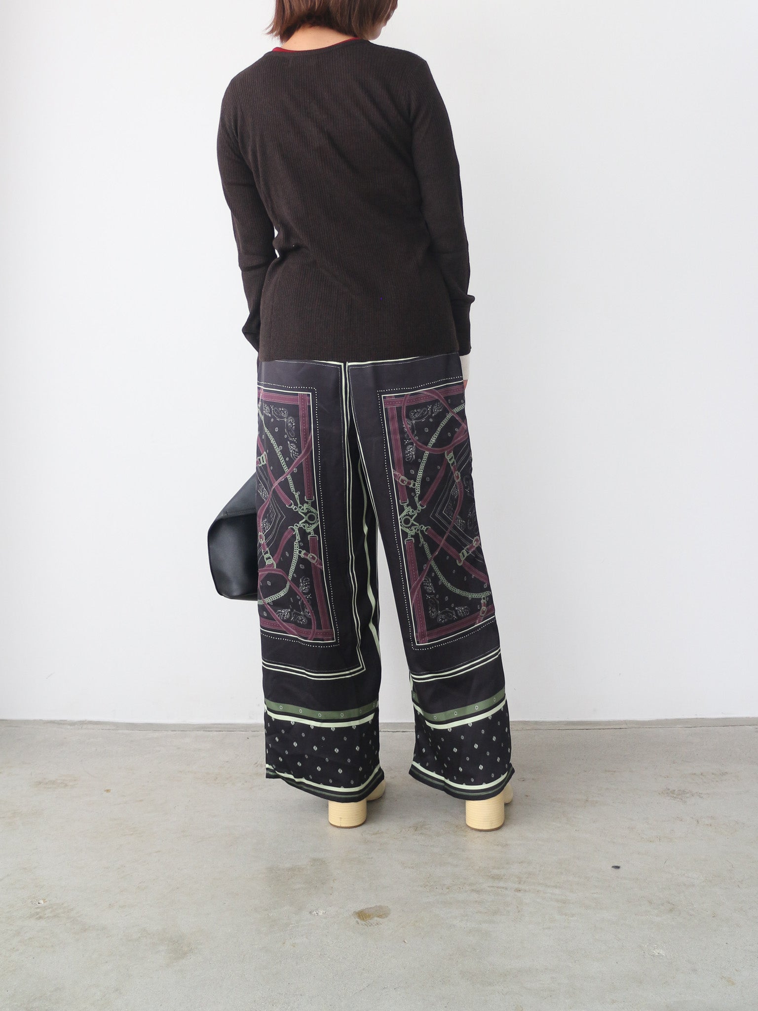 繊細なタッチのスカーフプリントはPqranオリジナル。