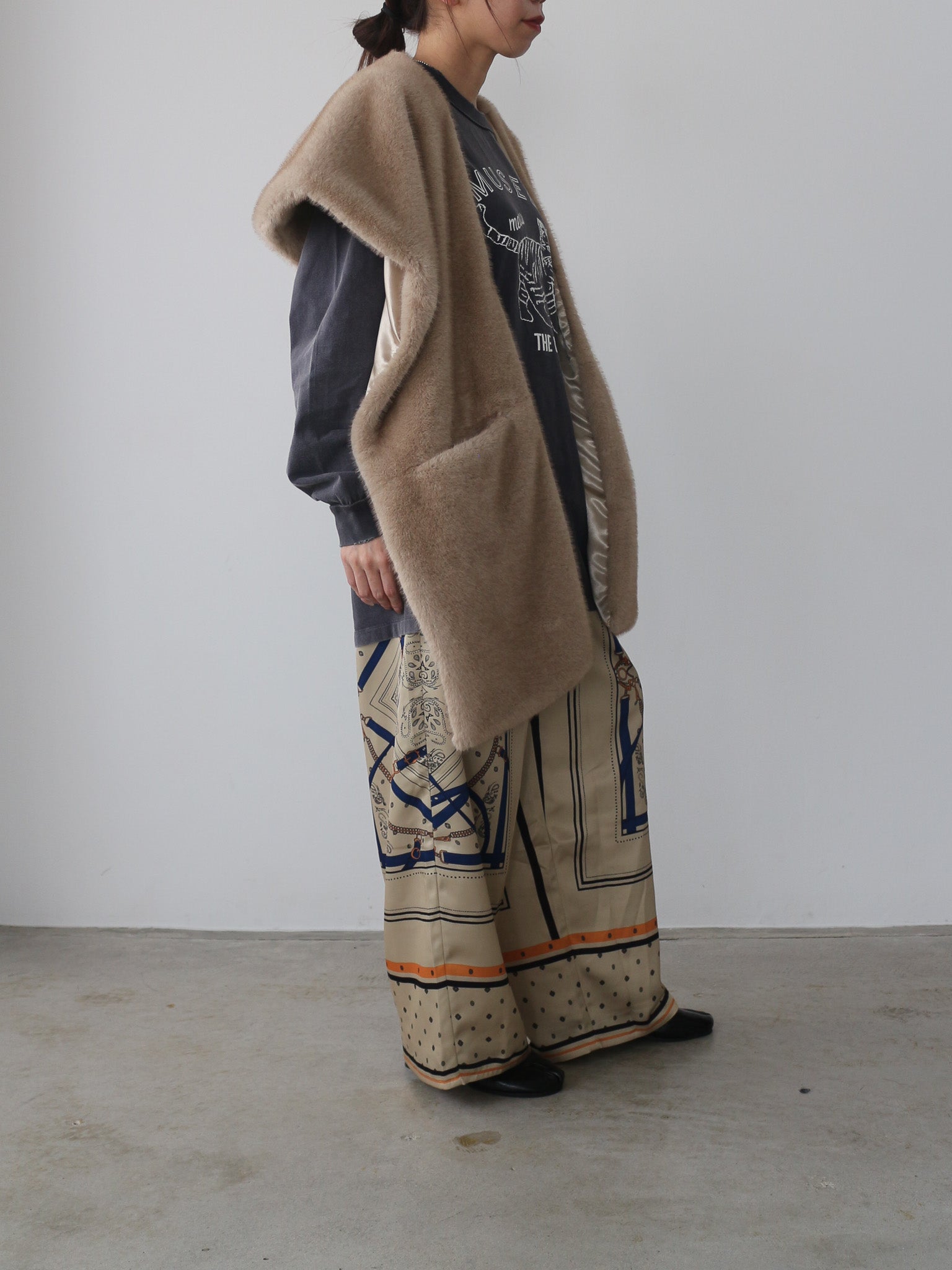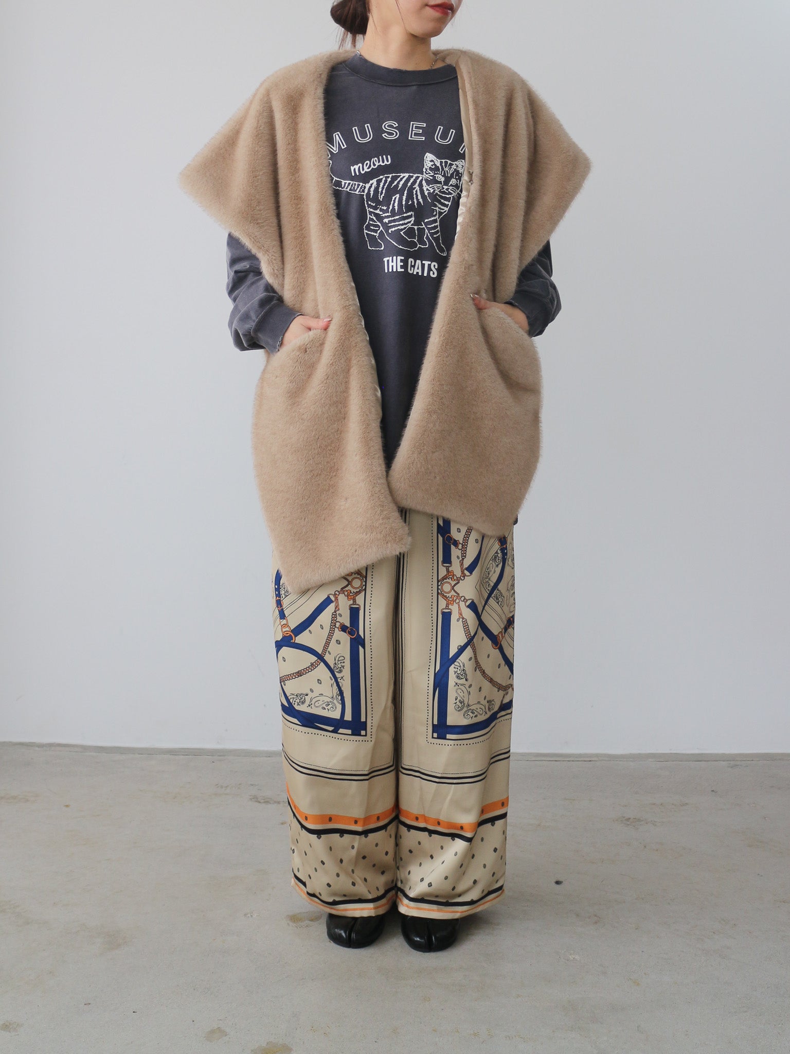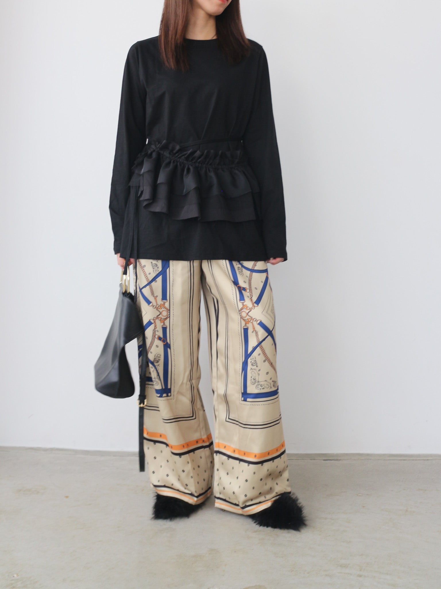 繊細なタッチのスカーフプリントはPqranオリジナル。