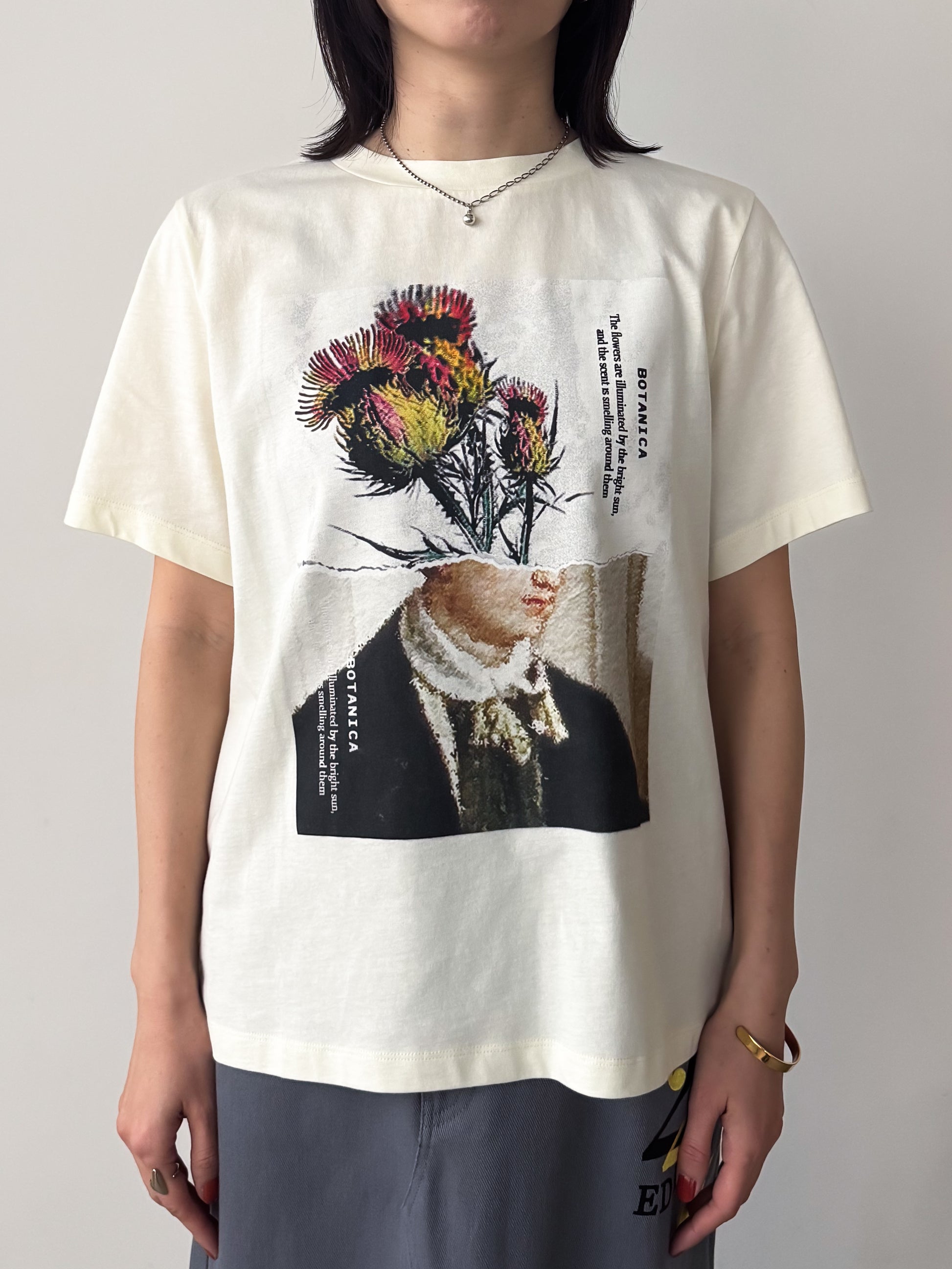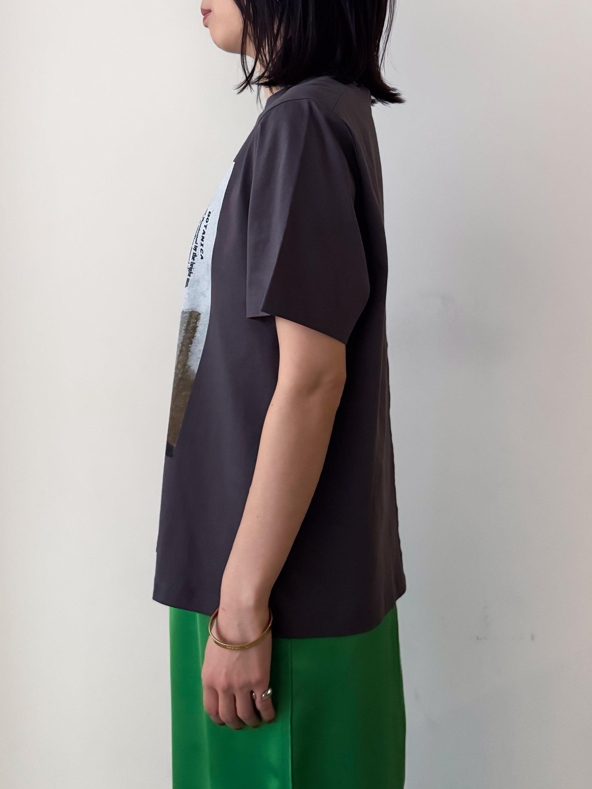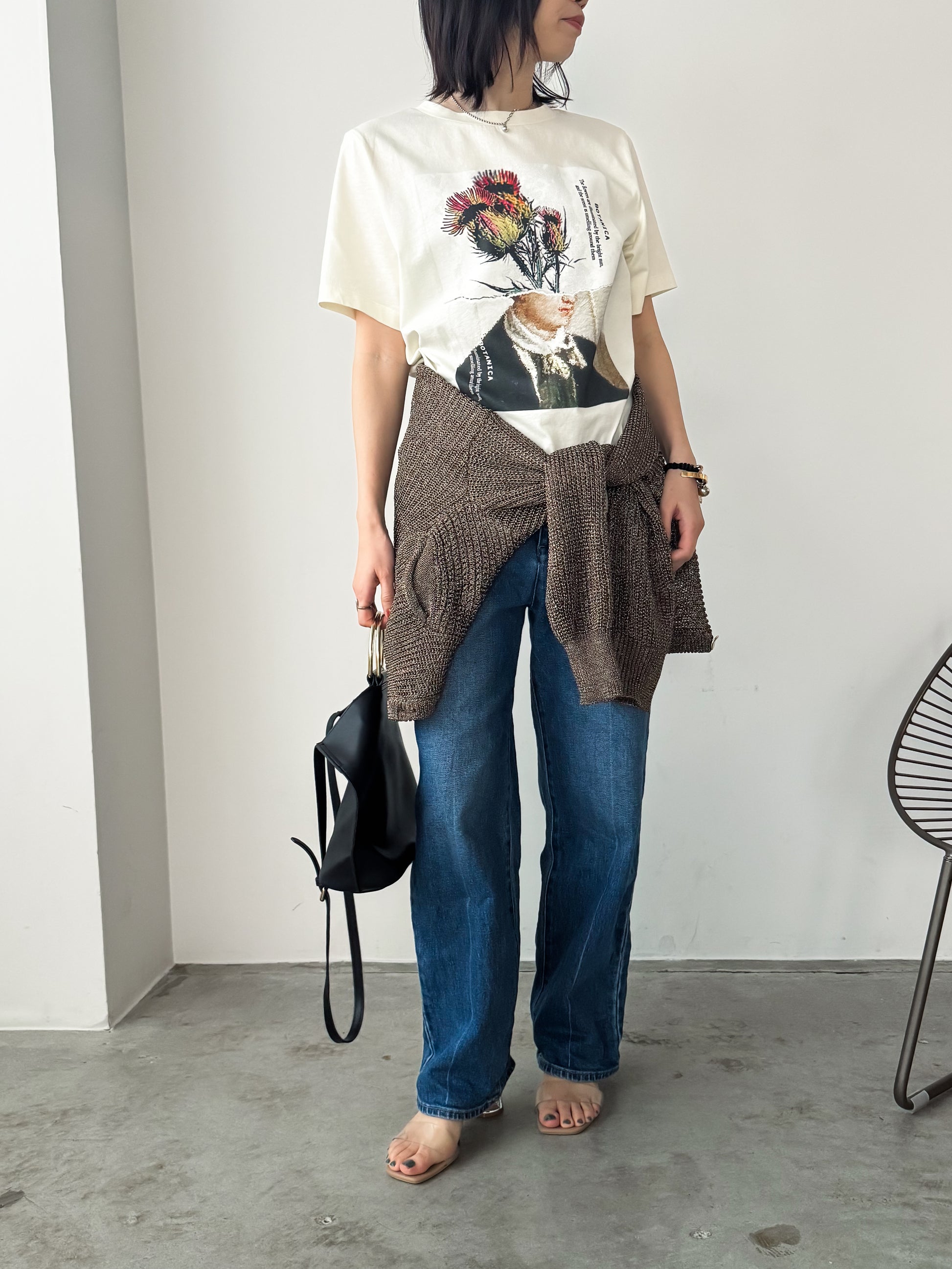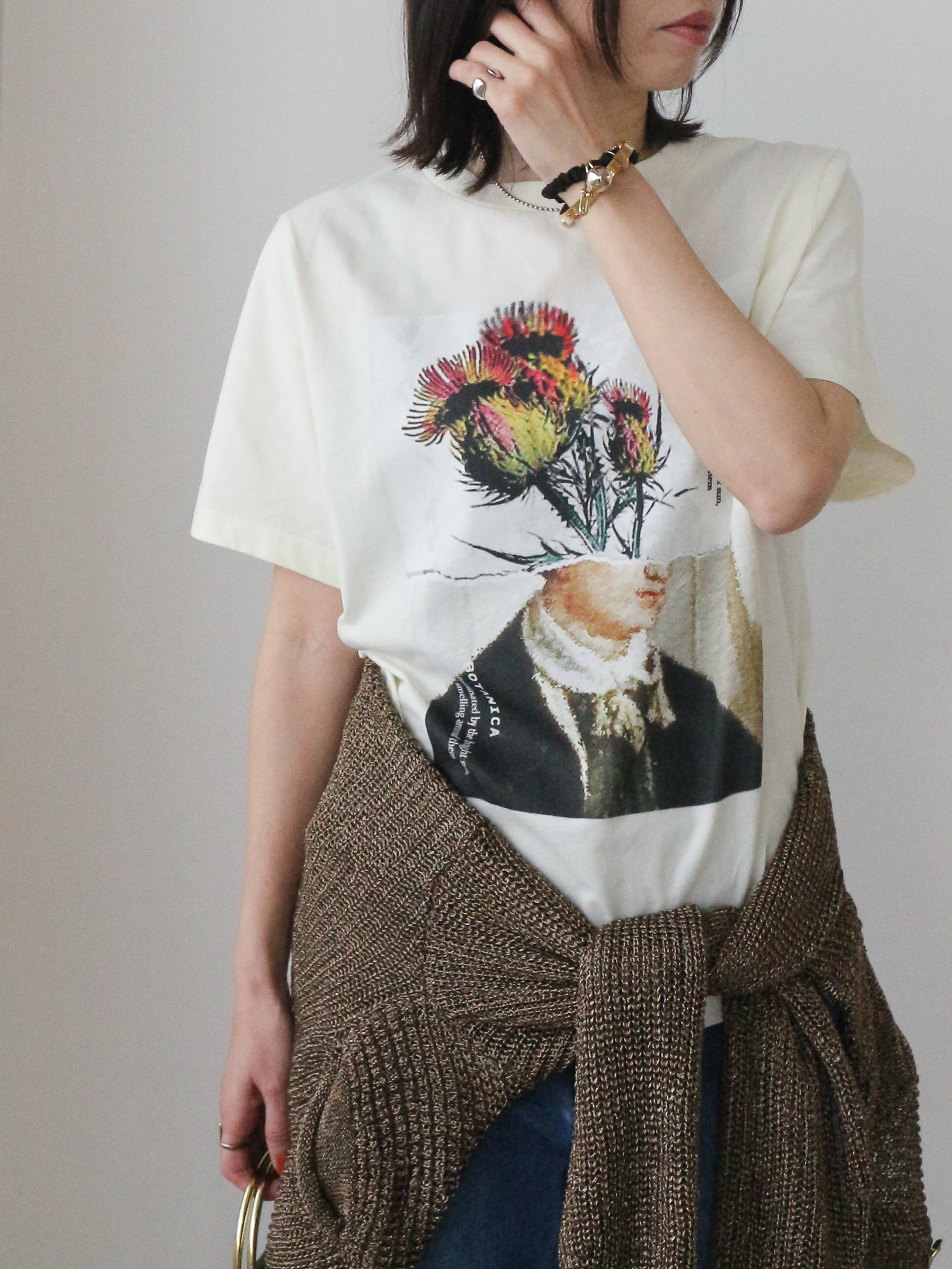 まるでキャンバスのように、大胆なアートプリントをのせた主役Tシャツ。
