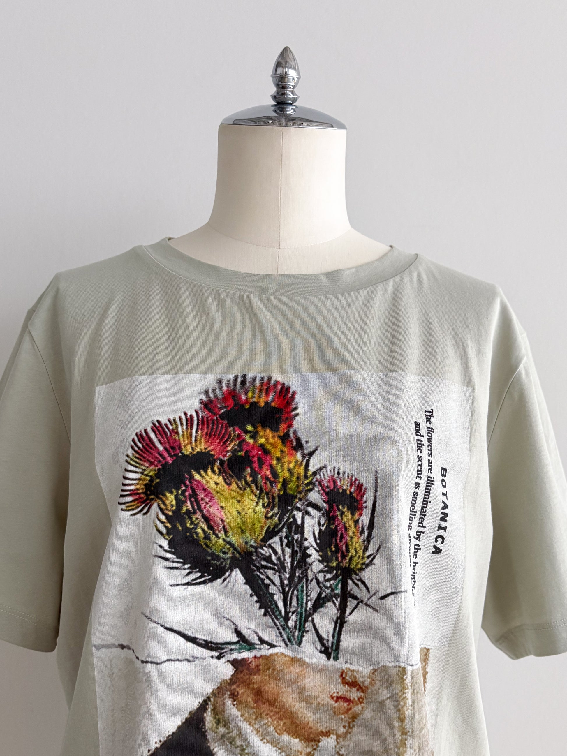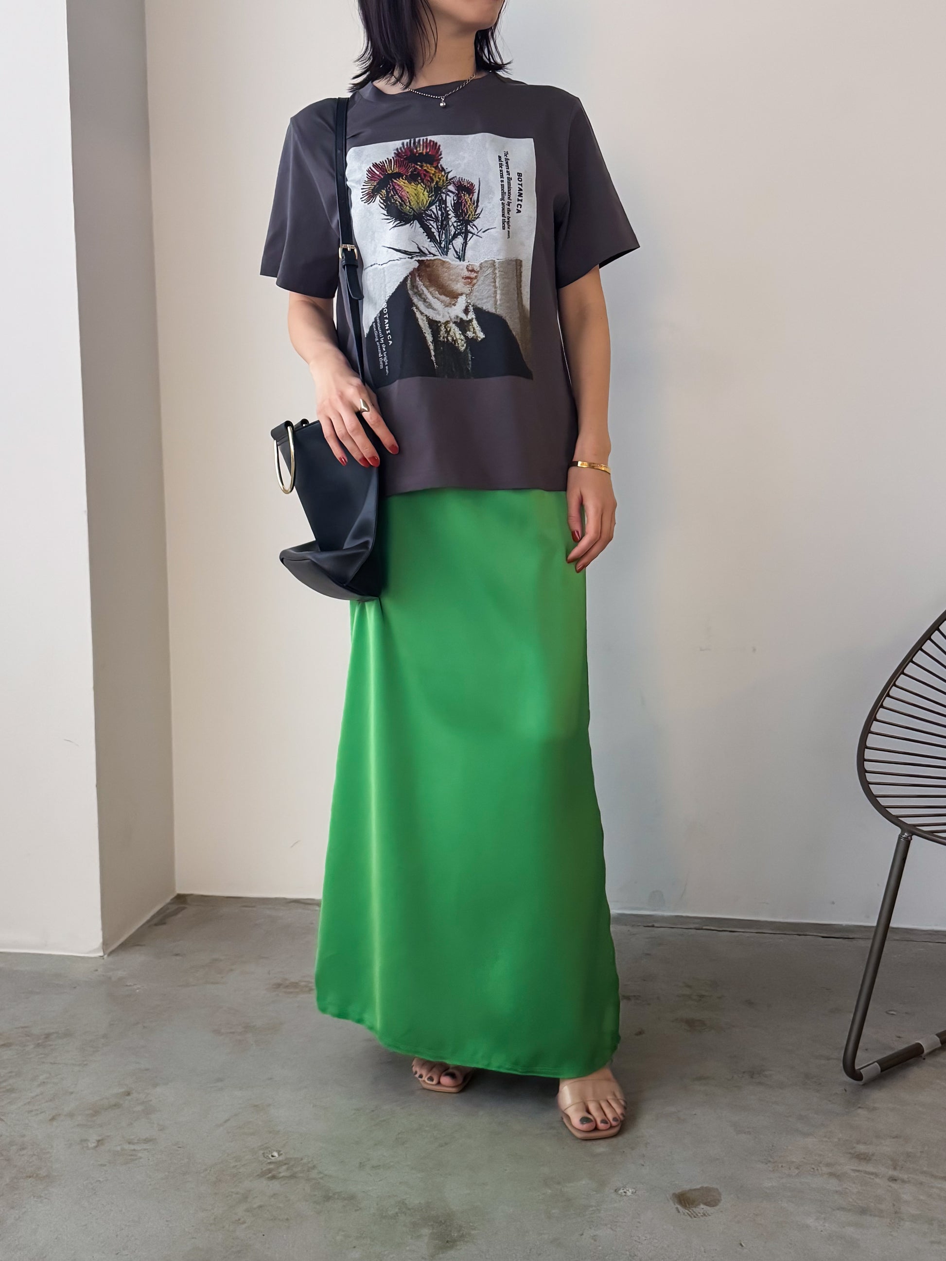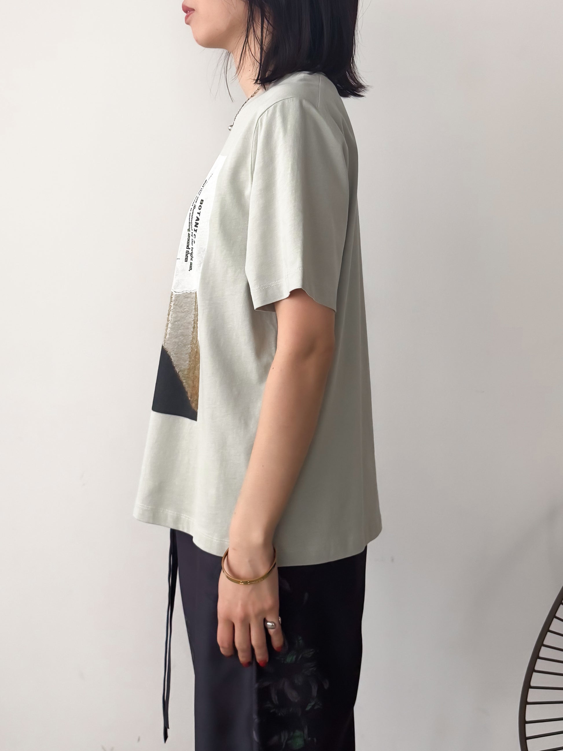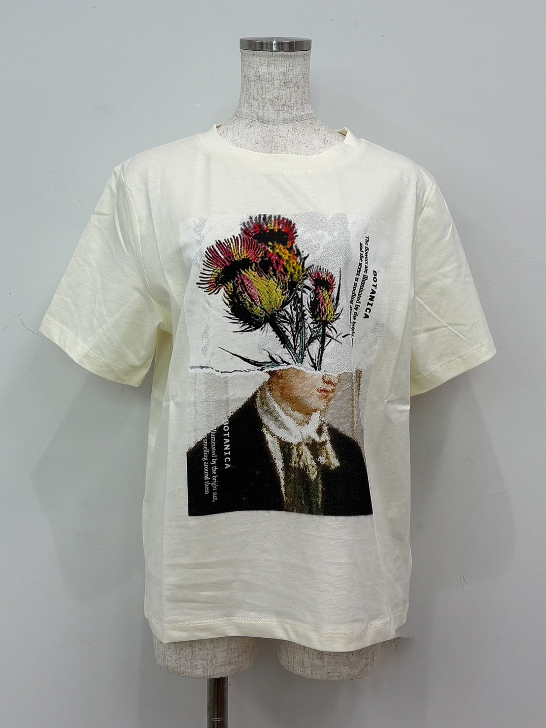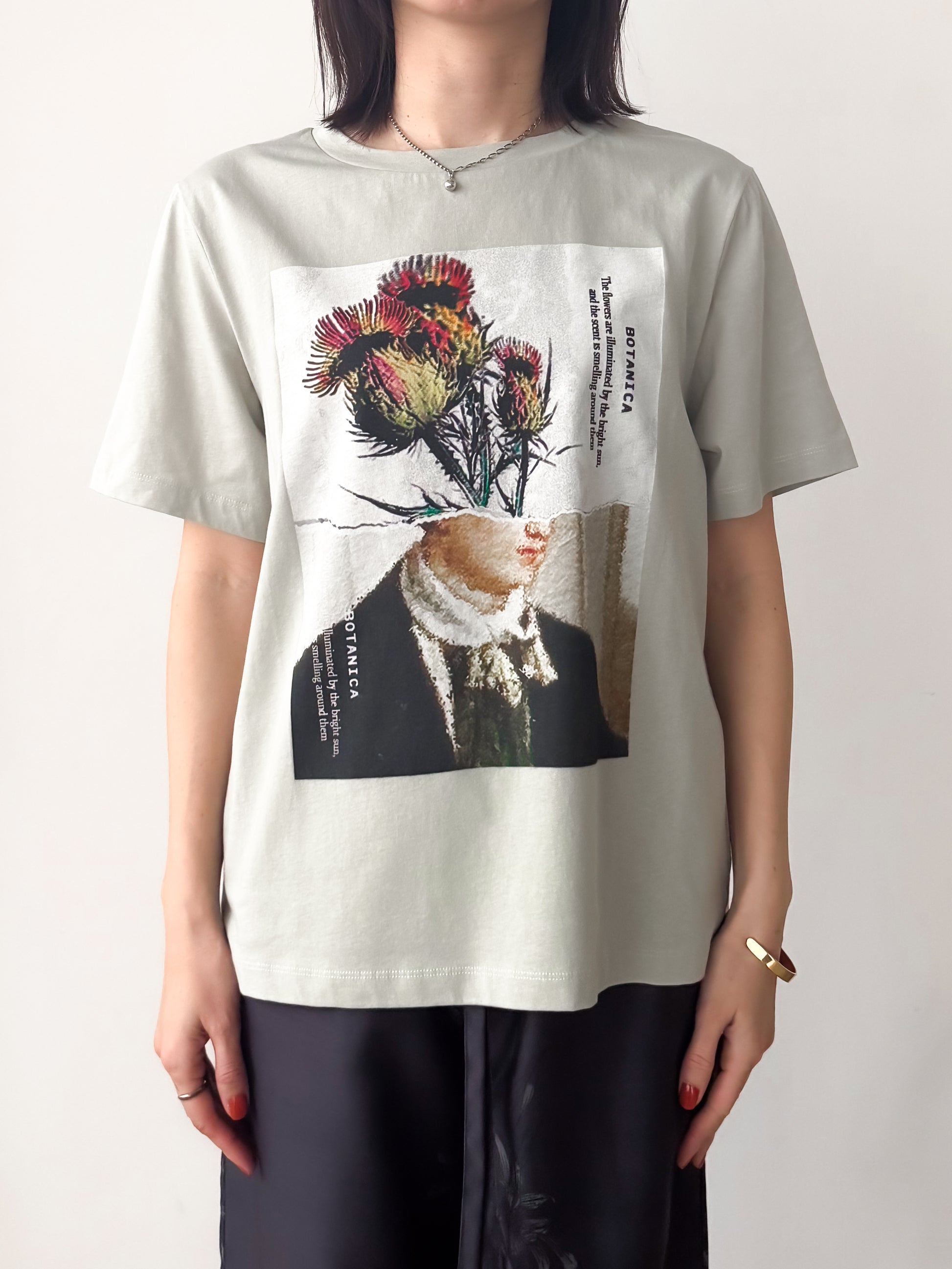 まるでキャンバスのように、大胆なアートプリントをのせた主役Tシャツ。