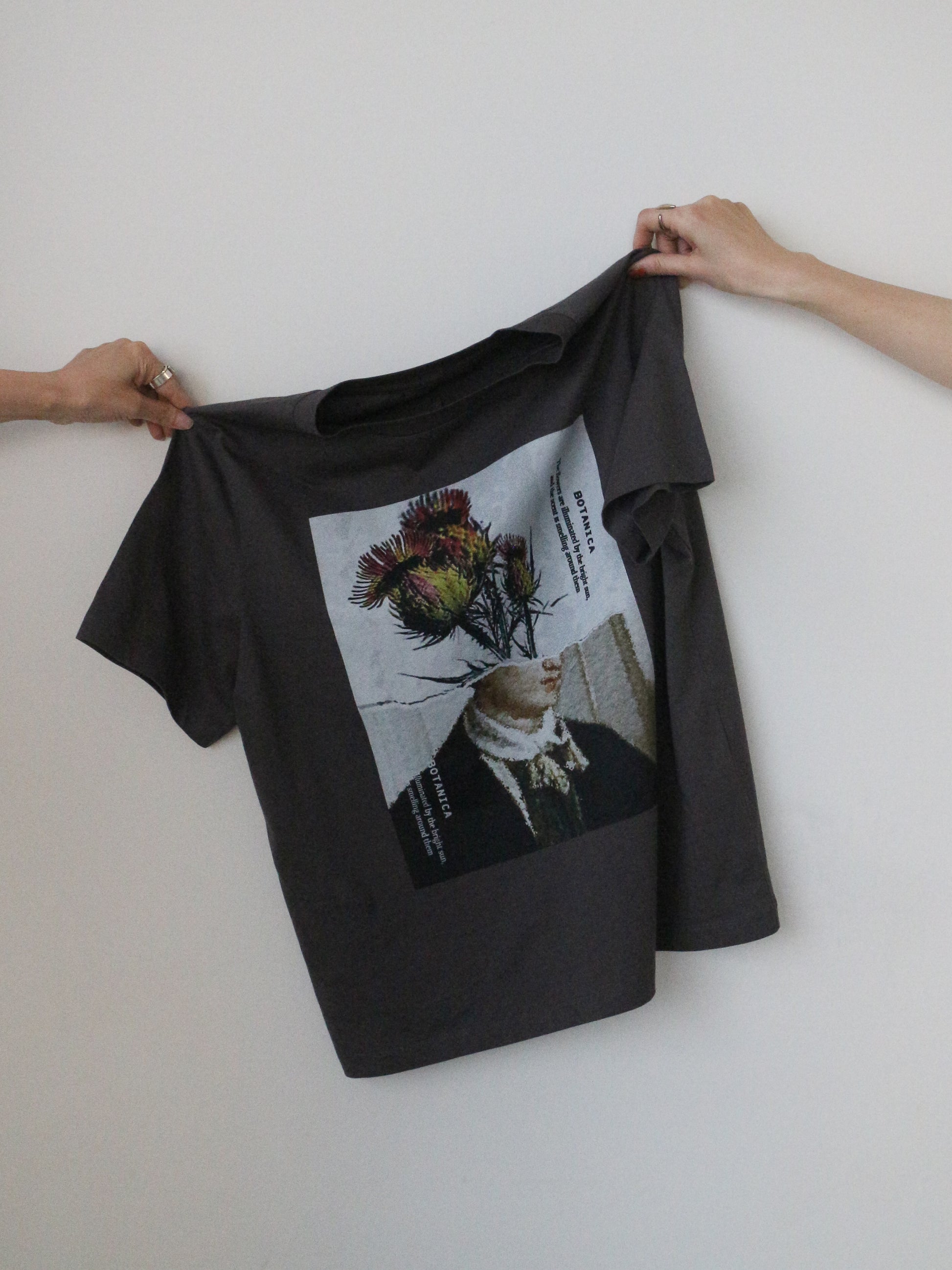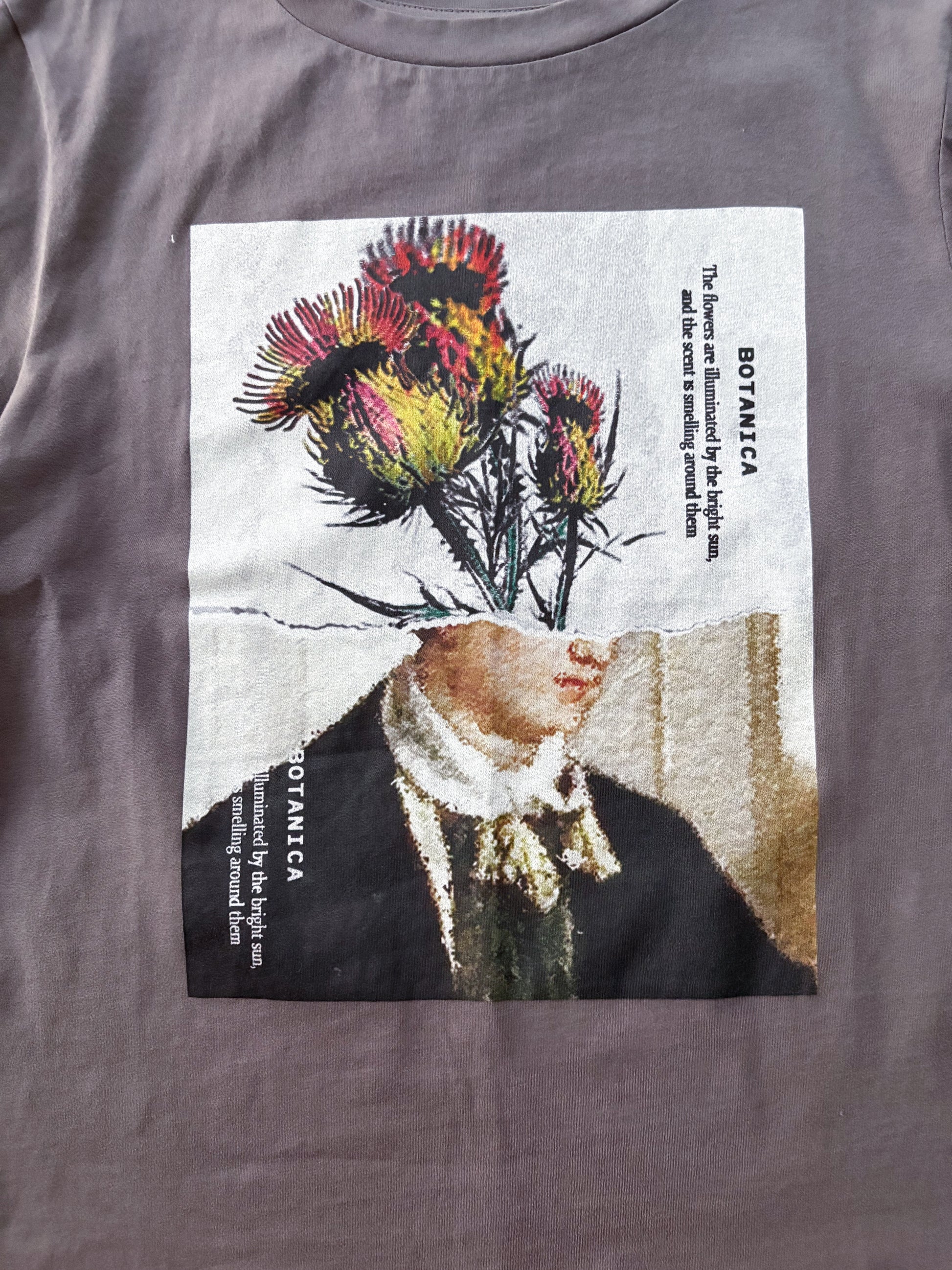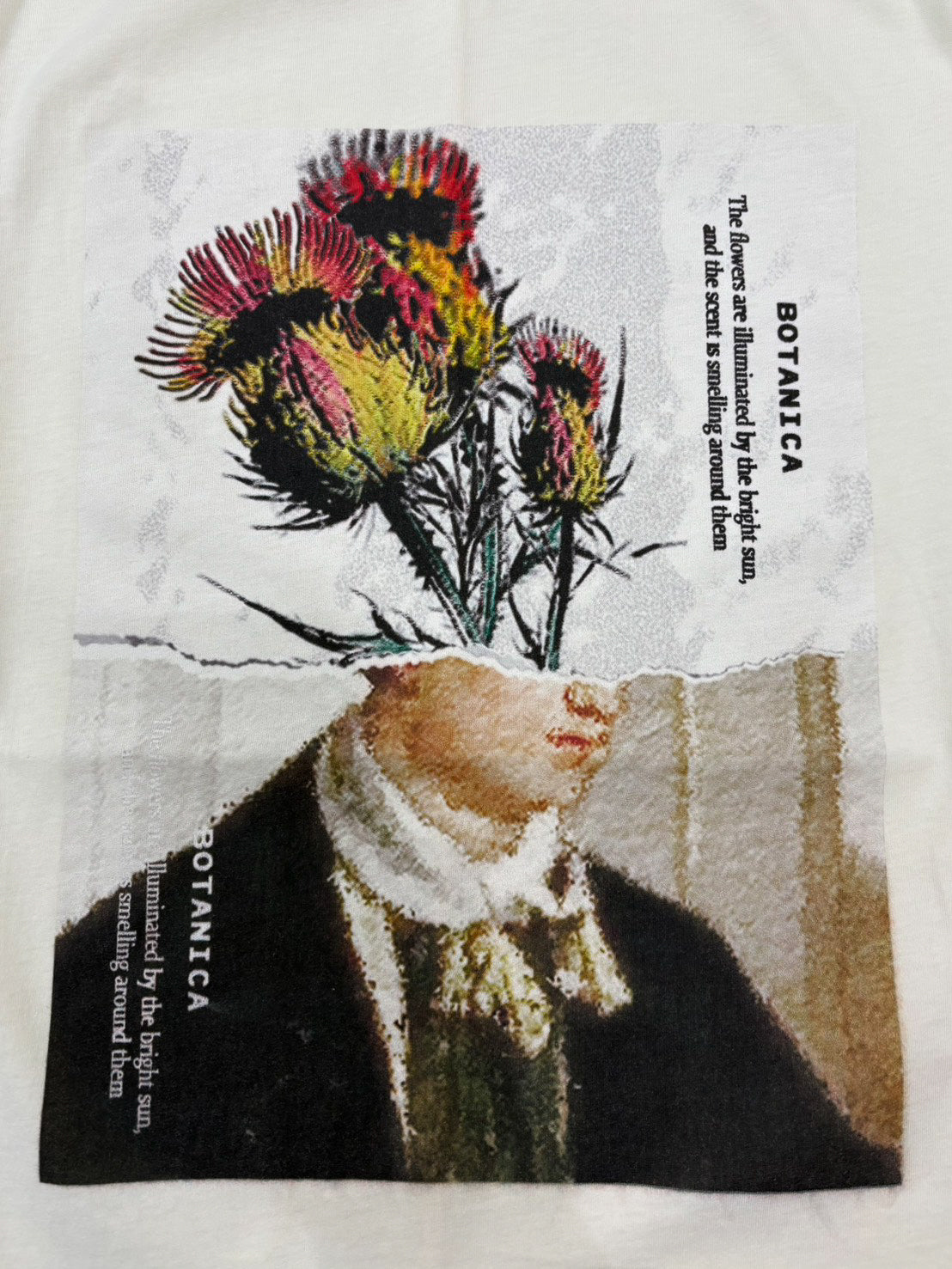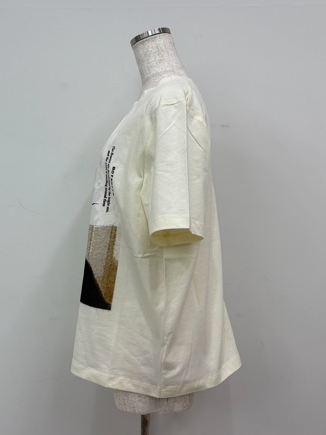 まるでキャンバスのように、大胆なアートプリントをのせた主役Tシャツ。